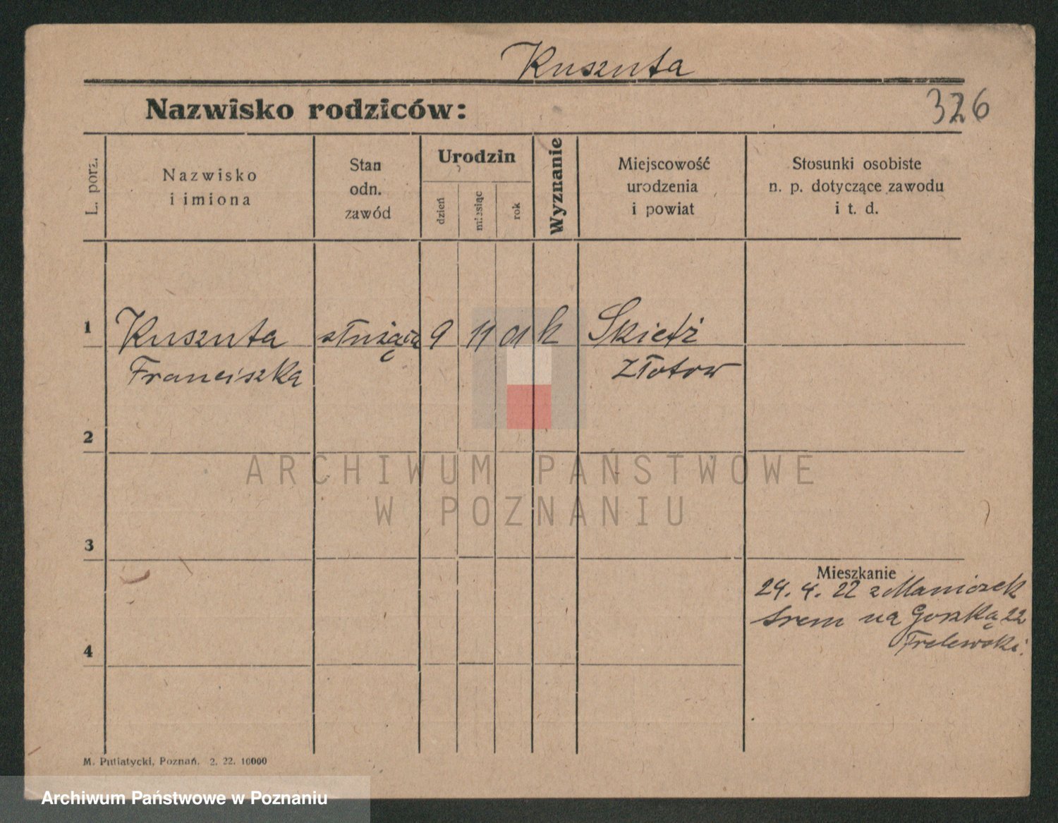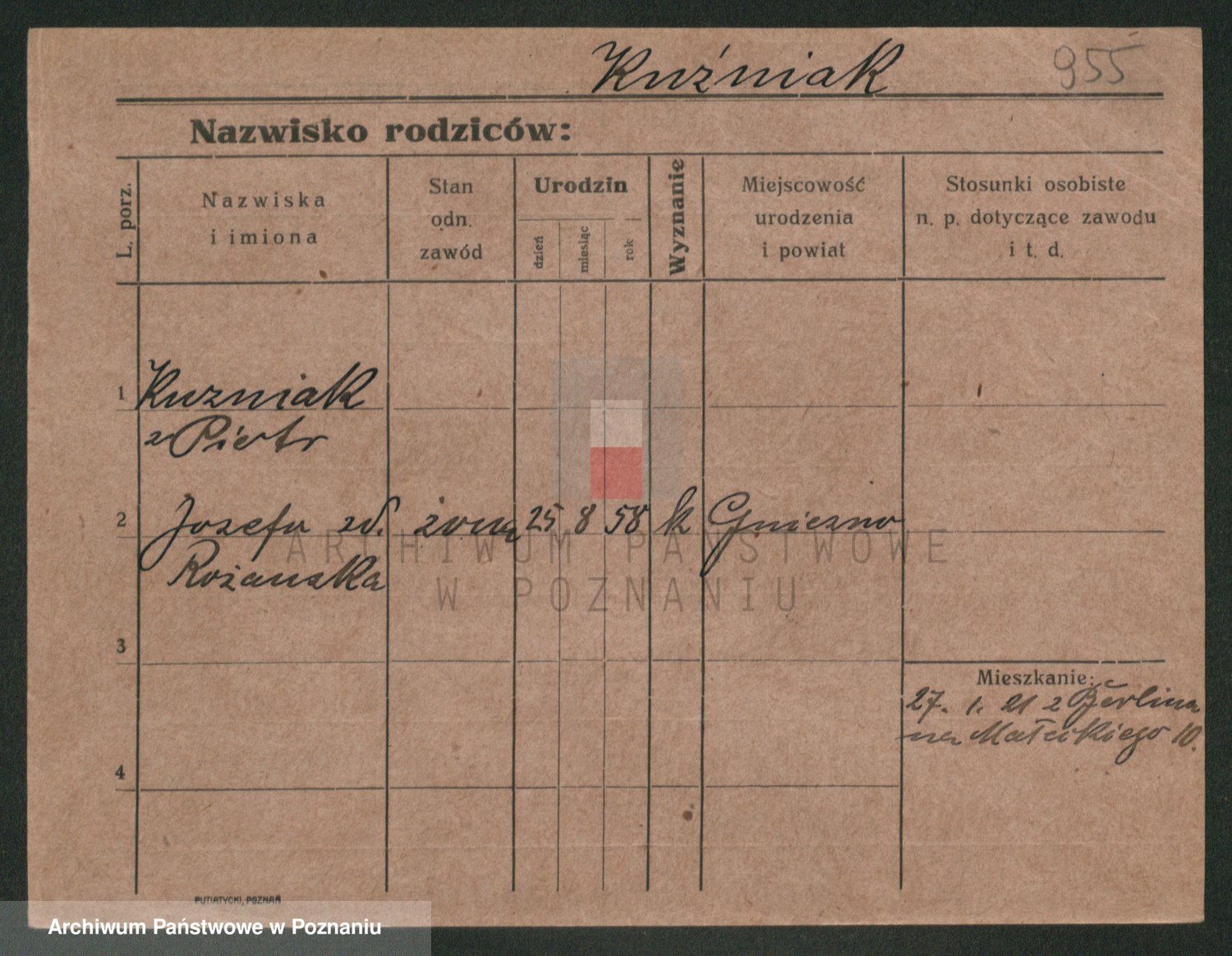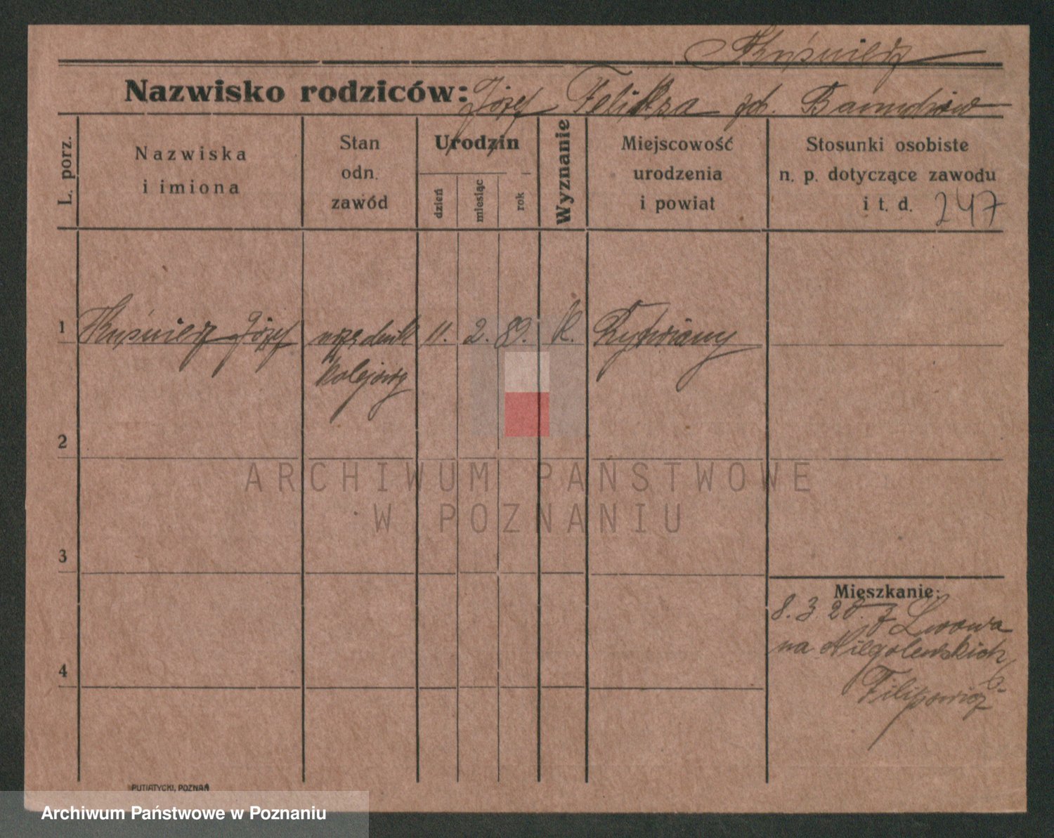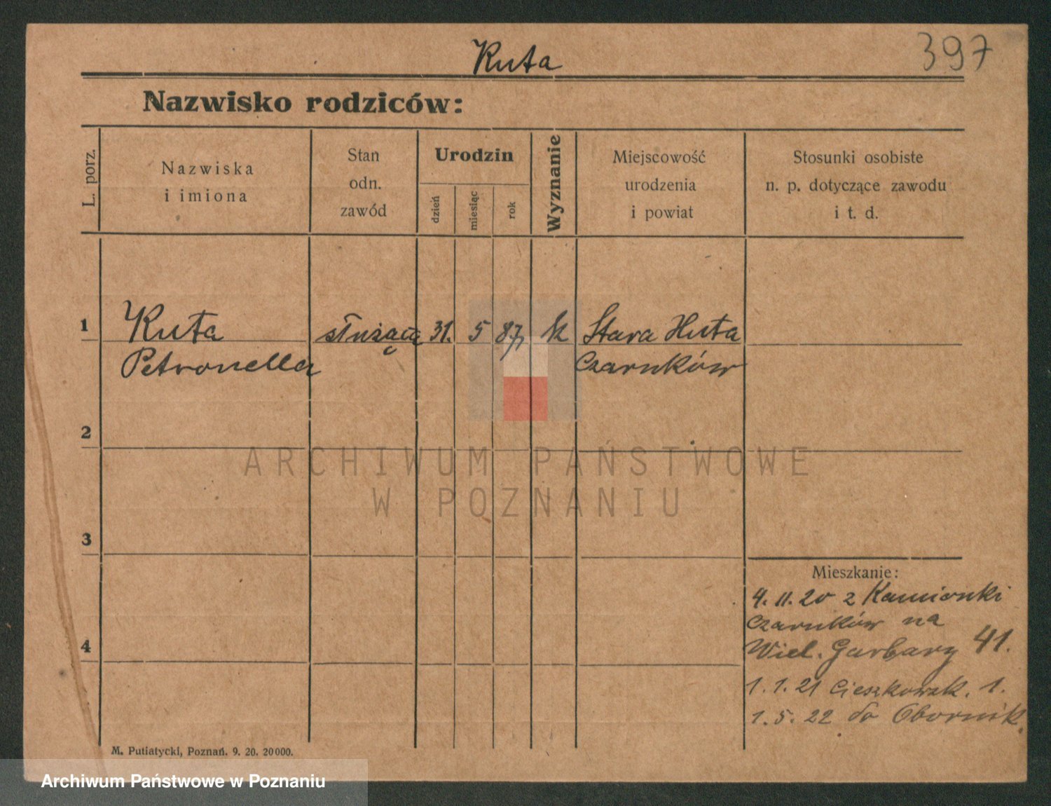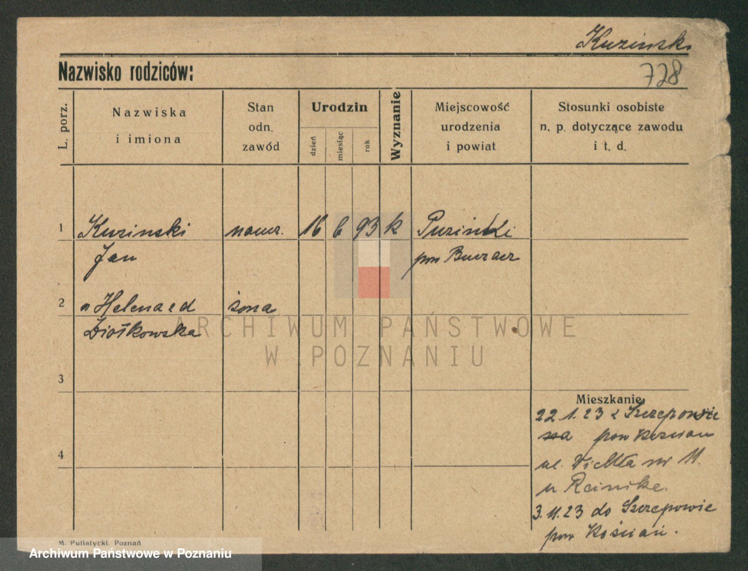 Podgląd karty osobowej dostępny jest po kliknięciu na nazwisko lub ikonkę karty. Można dokonywać powiększenia (ikony na górze) lub przechodzić między kolejnymi skanami (strzałki po bokach).