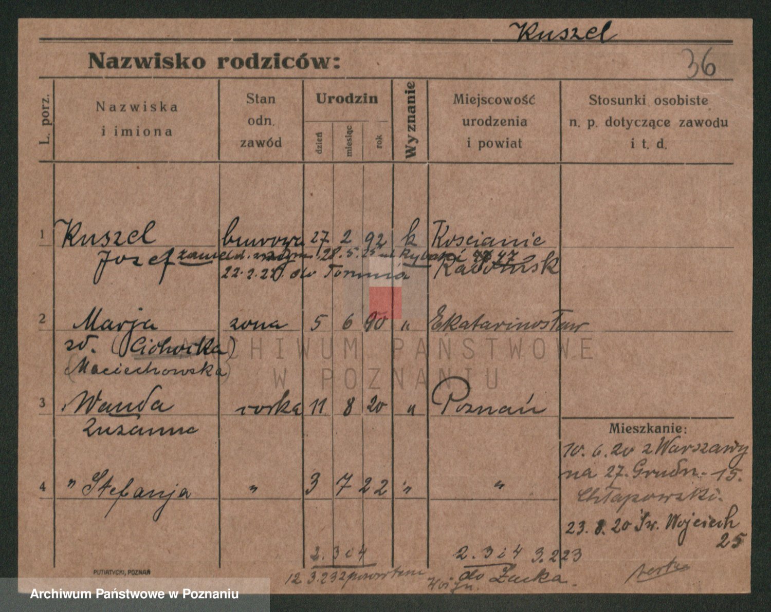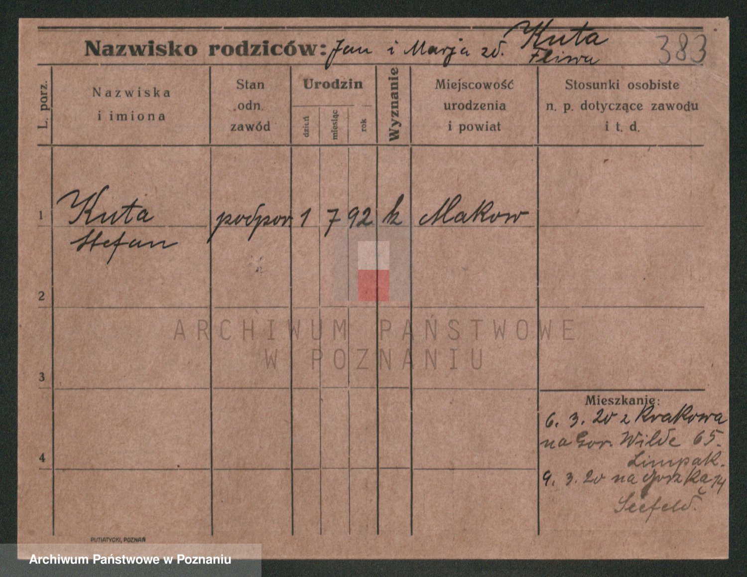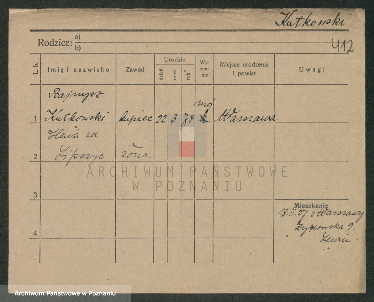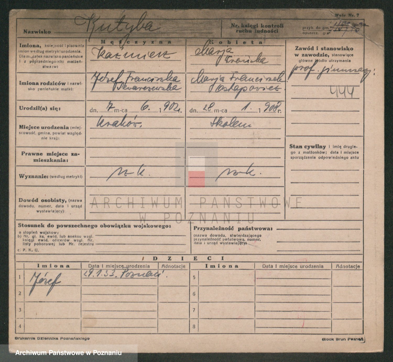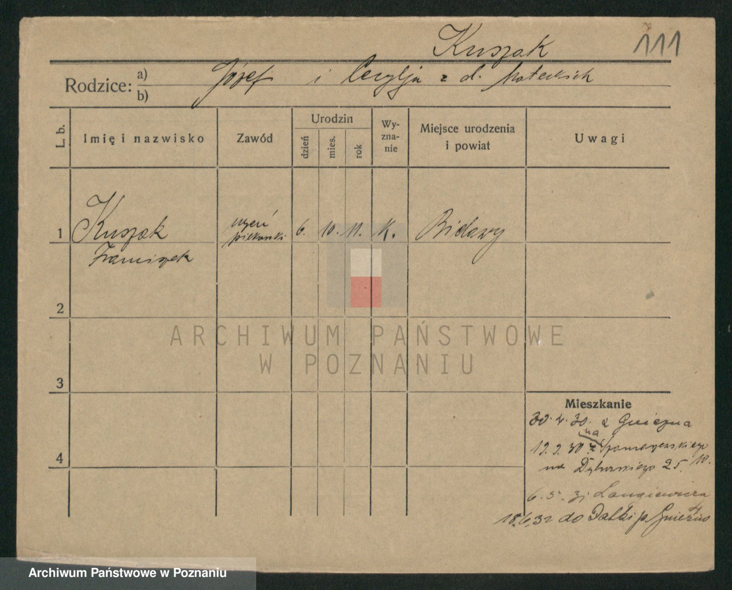 Podgląd karty osobowej dostępny jest po kliknięciu na nazwisko lub ikonkę karty. Można dokonywać powiększenia (ikony na górze) lub przechodzić między kolejnymi skanami (strzałki po bokach).