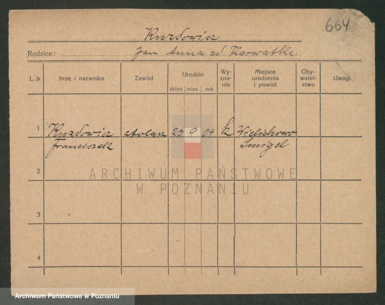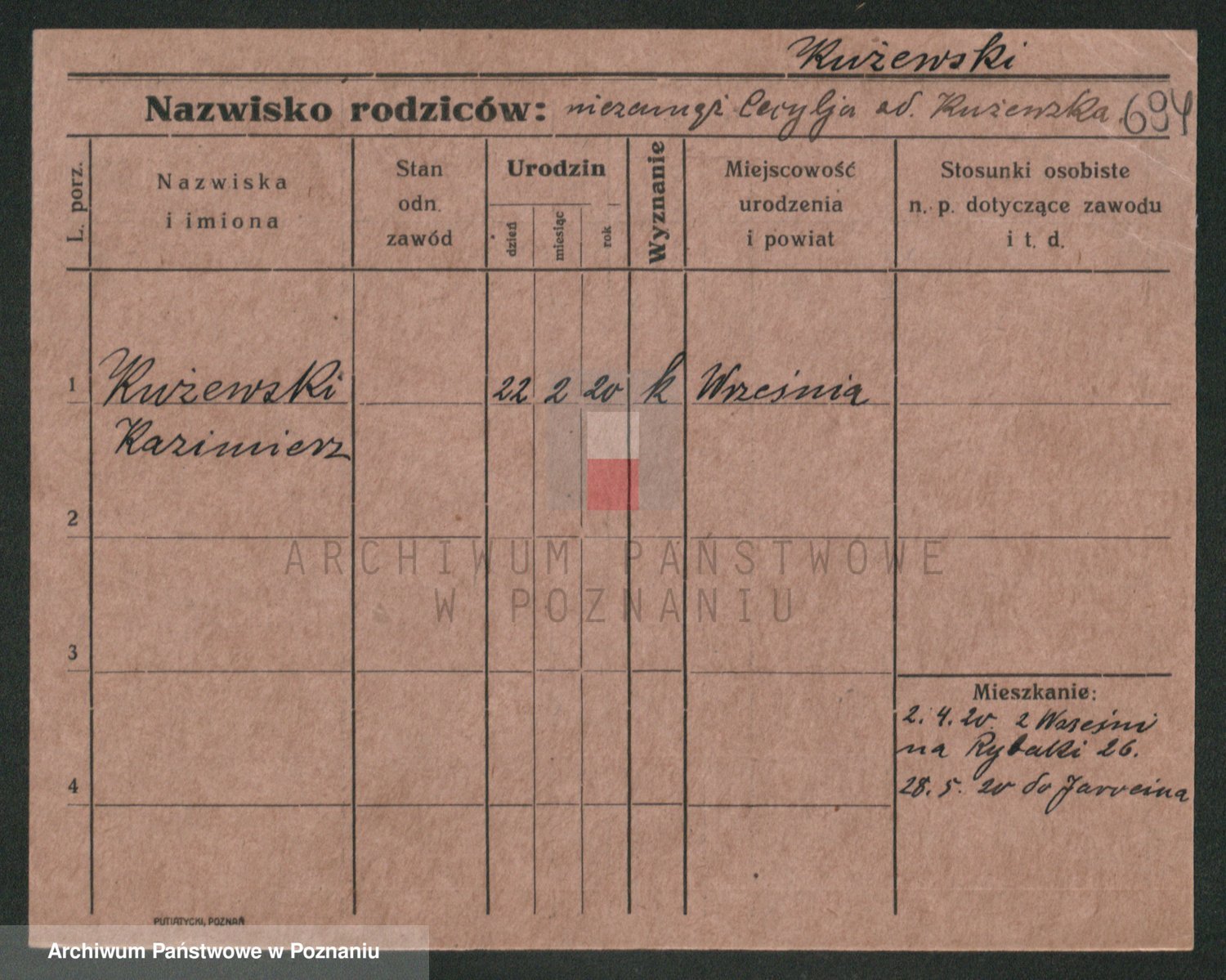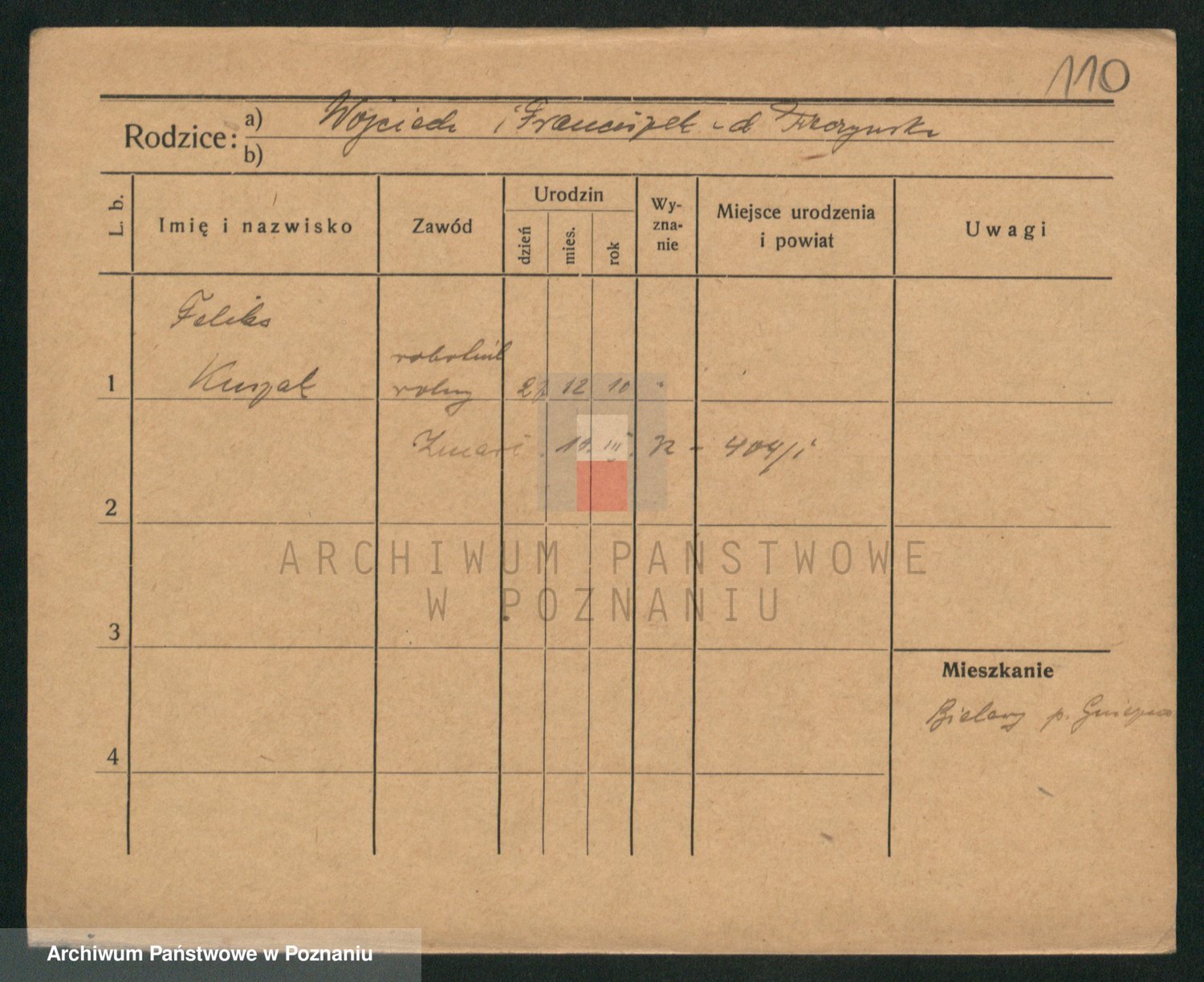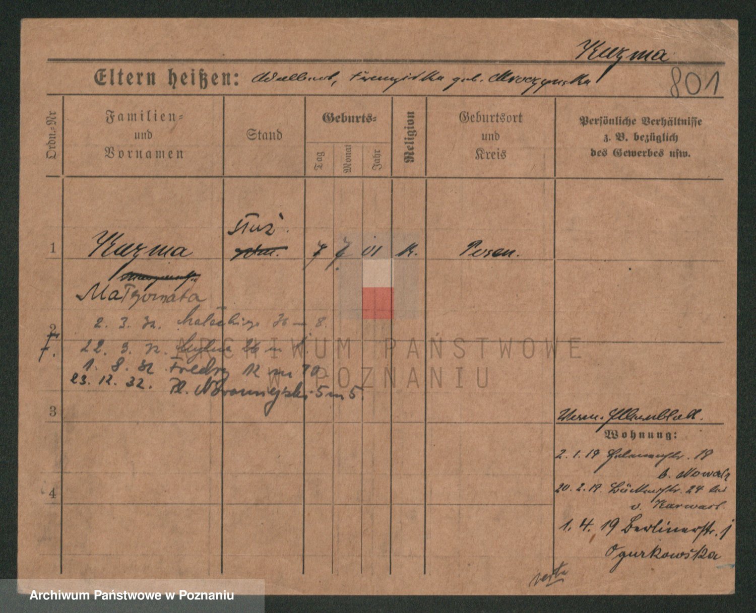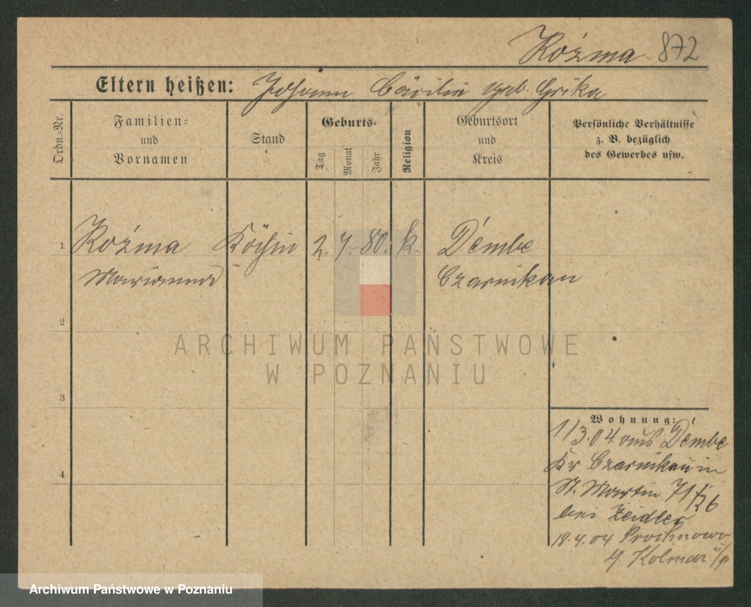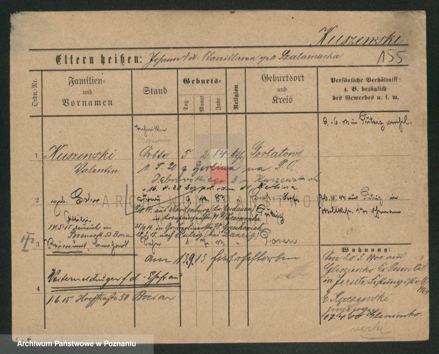 Podgląd karty osobowej dostępny jest po kliknięciu na nazwisko lub ikonkę karty. Można dokonywać powiększenia (ikony na górze) lub przechodzić między kolejnymi skanami (strzałki po bokach).
