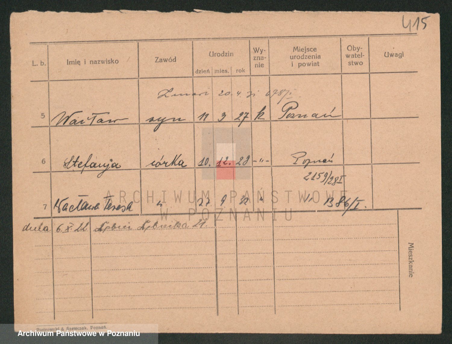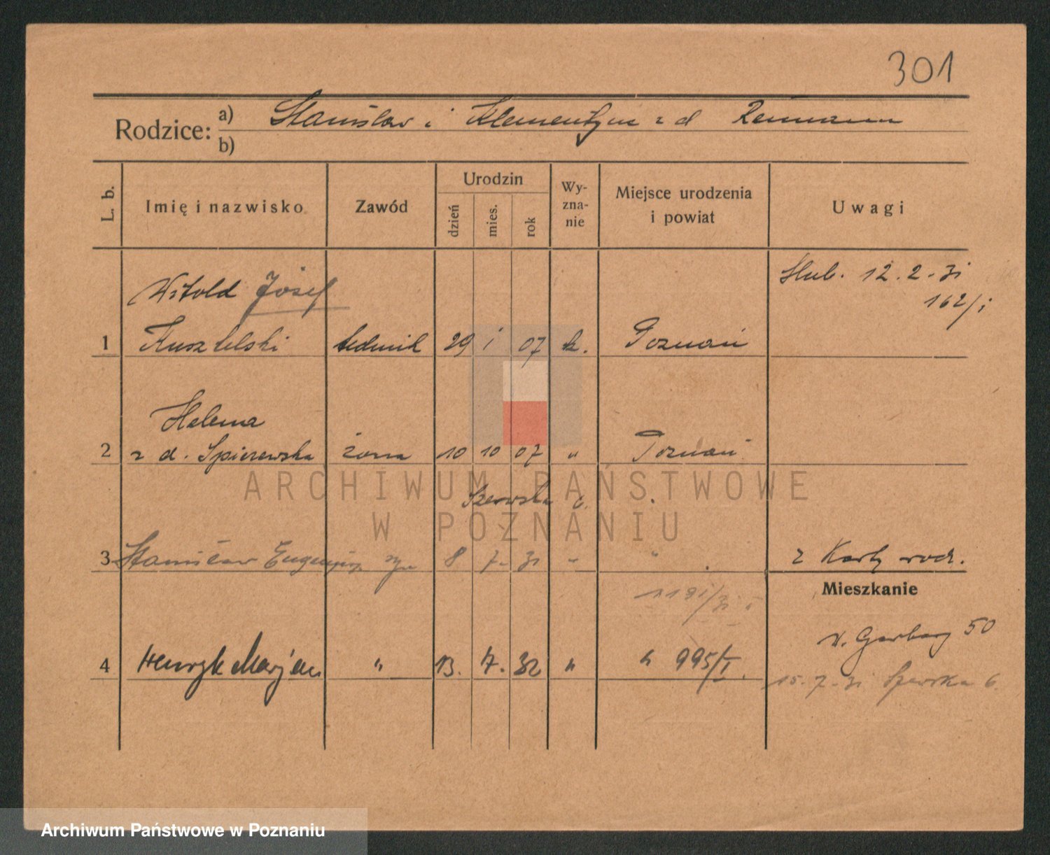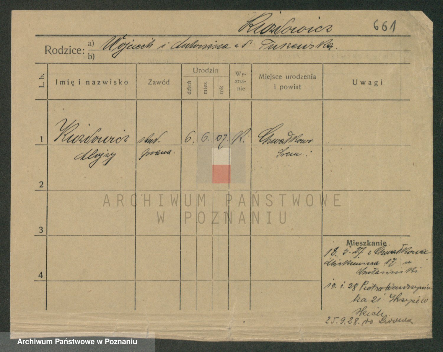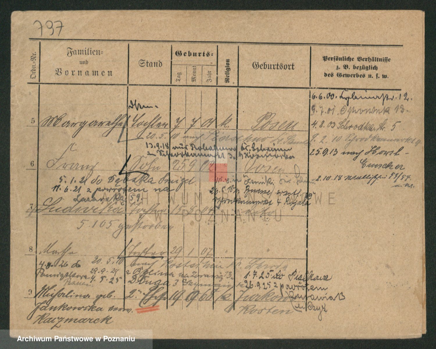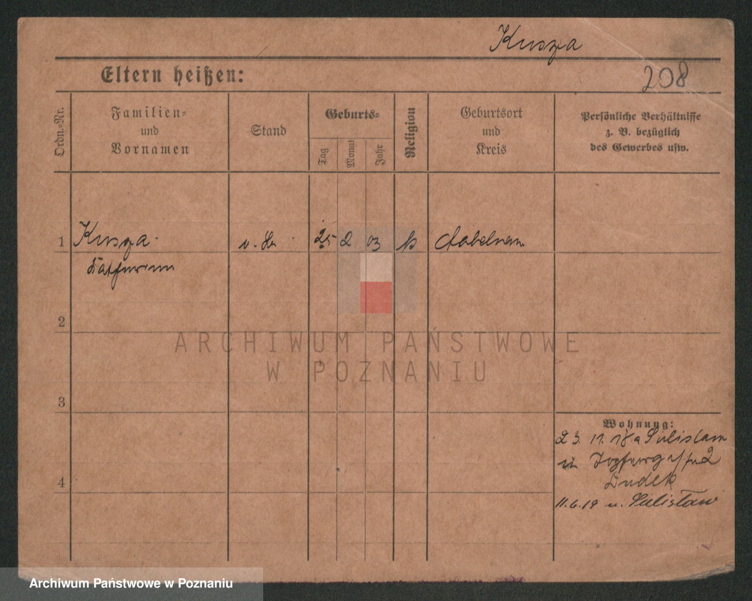 Podgląd karty osobowej dostępny jest po kliknięciu na nazwisko lub ikonkę karty. Można dokonywać powiększenia (ikony na górze) lub przechodzić między kolejnymi skanami (strzałki po bokach).