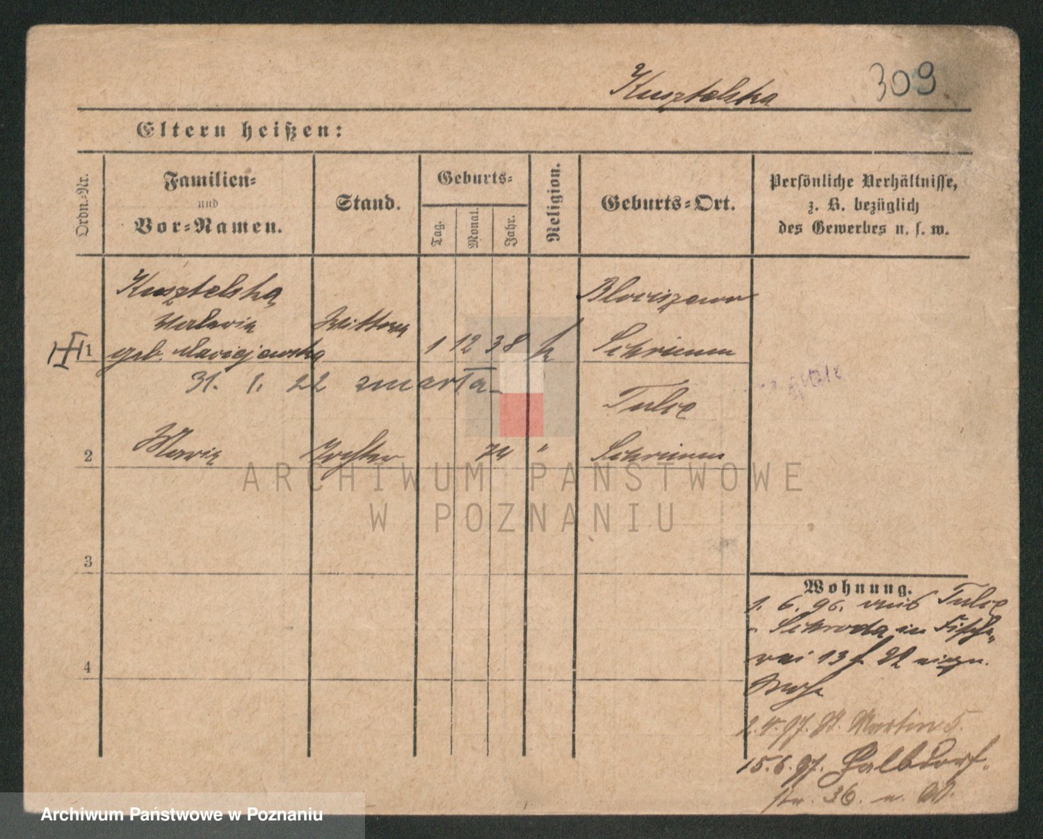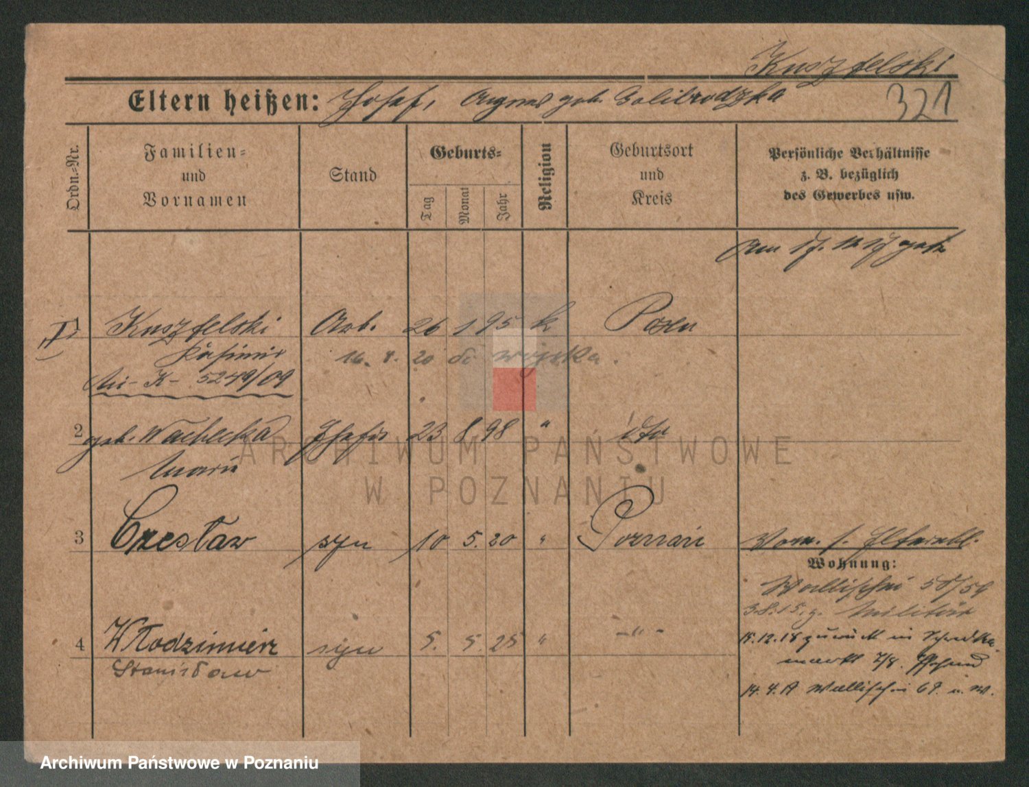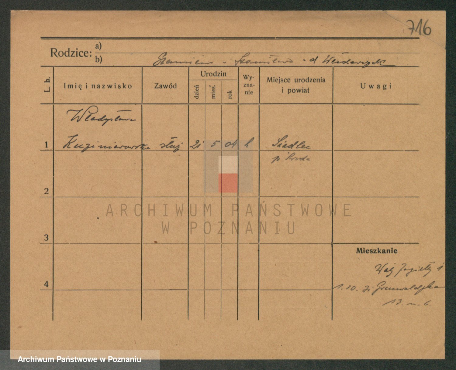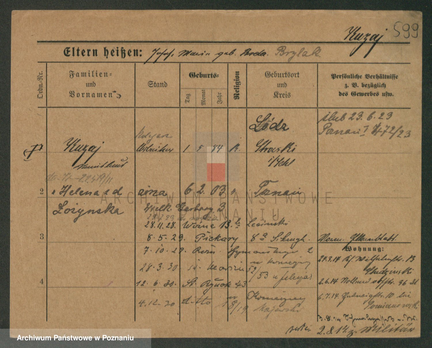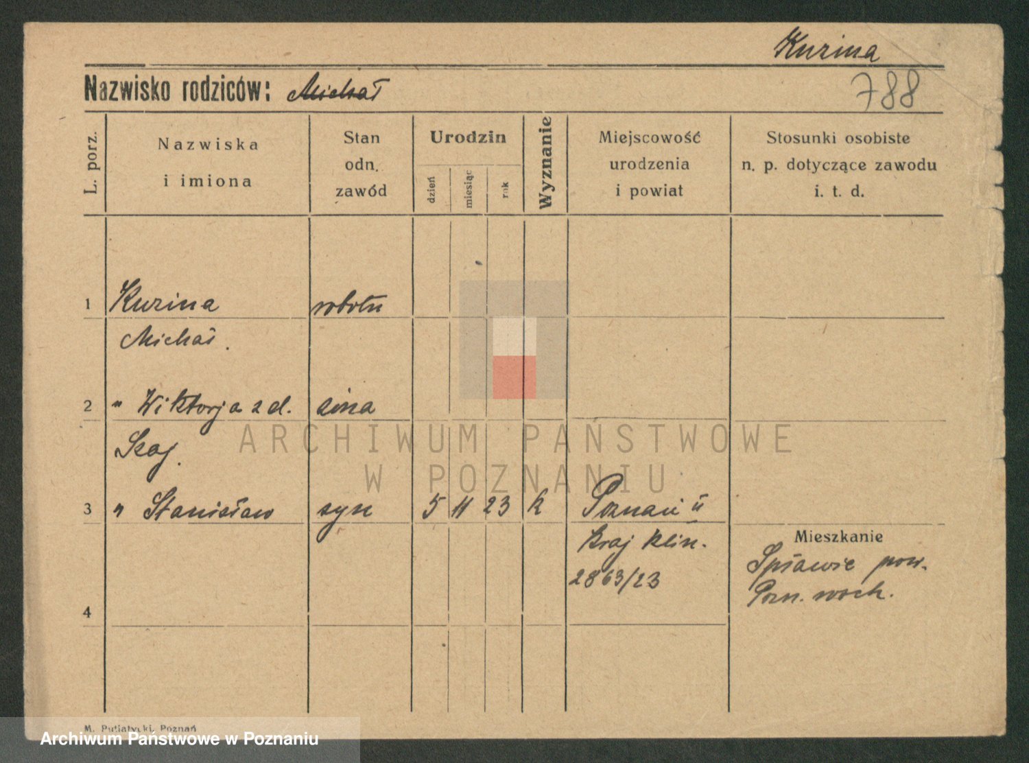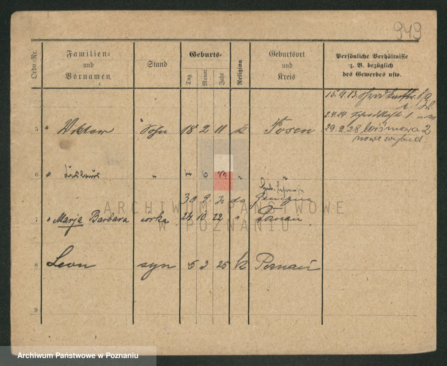 Podgląd karty osobowej dostępny jest po kliknięciu na nazwisko lub ikonkę karty. Można dokonywać powiększenia (ikony na górze) lub przechodzić między kolejnymi skanami (strzałki po bokach).