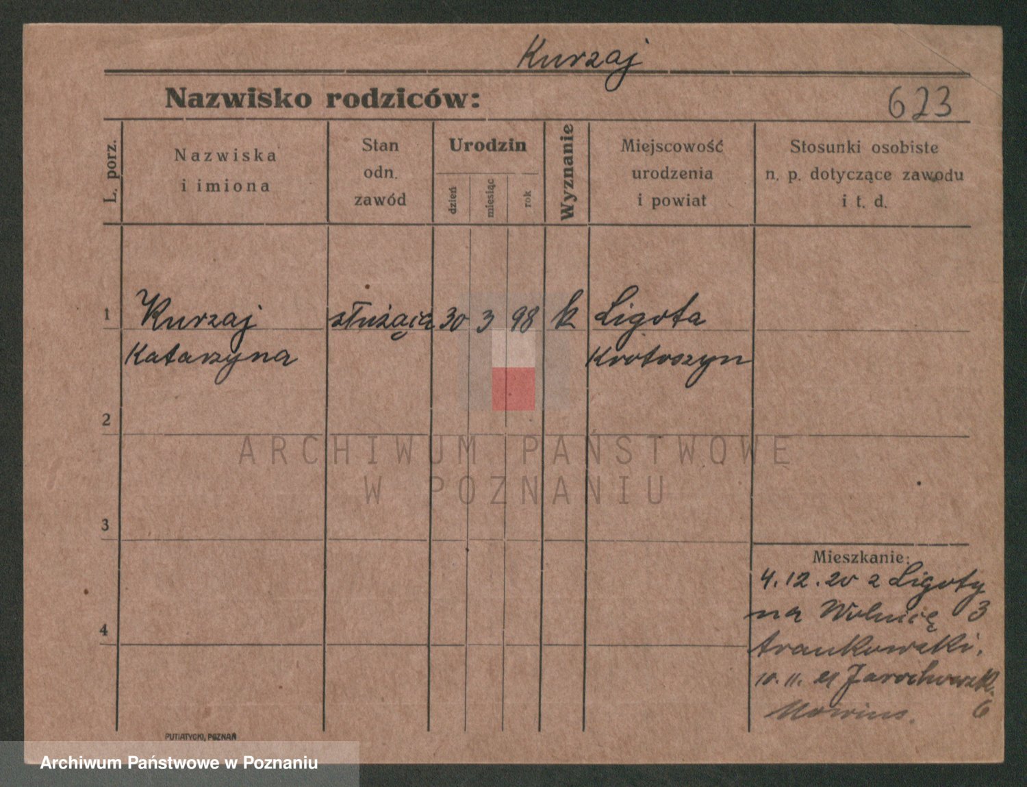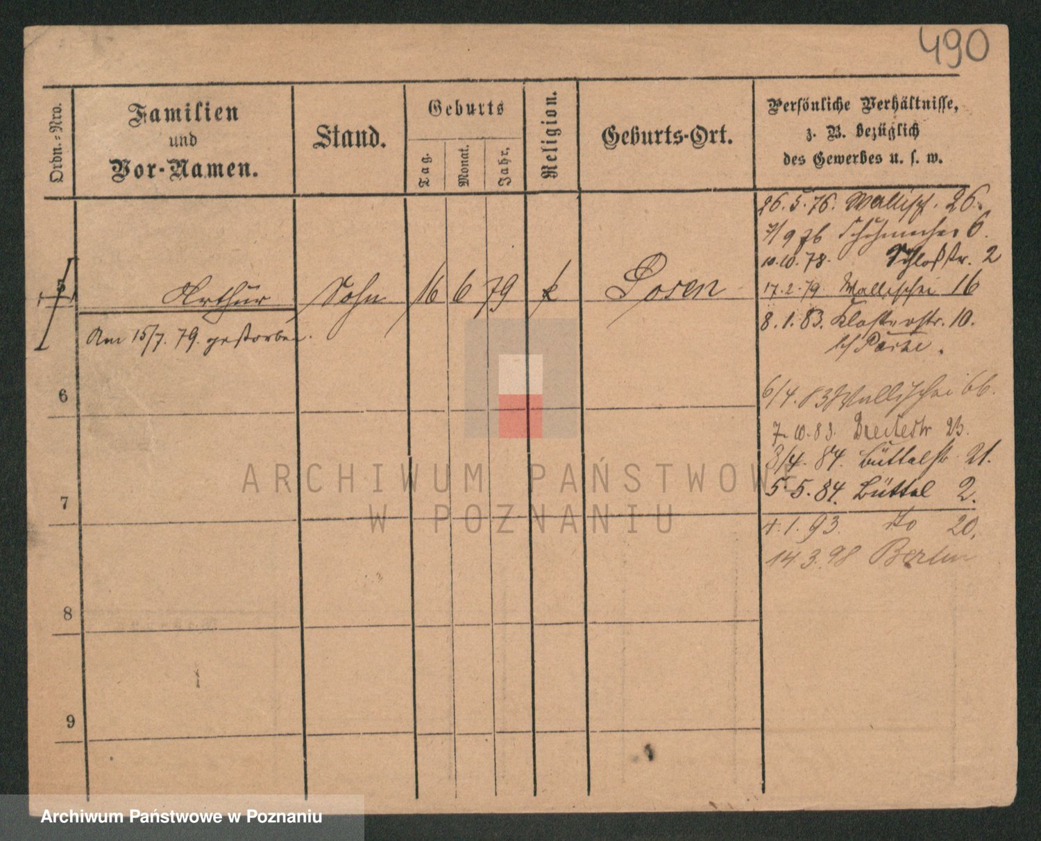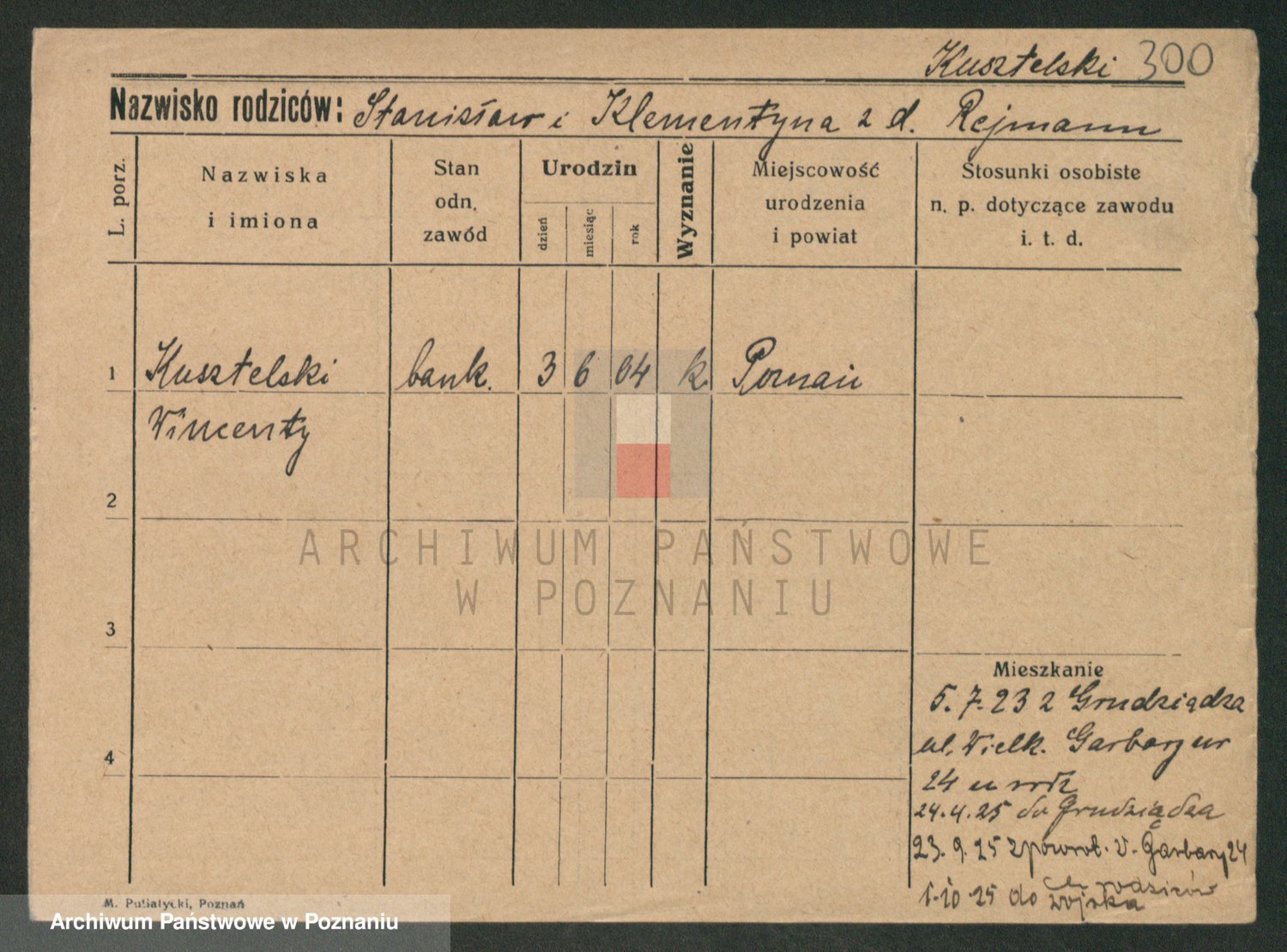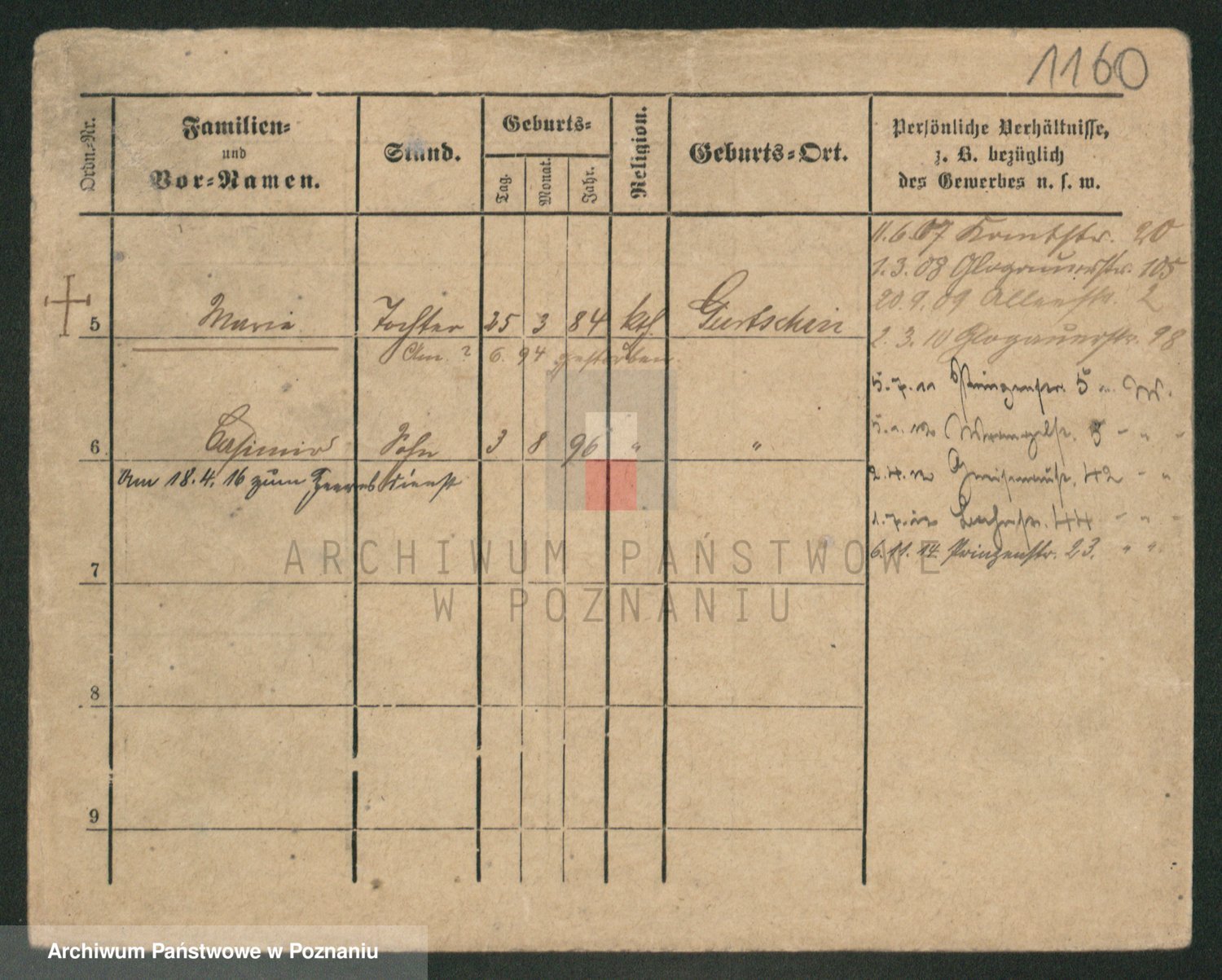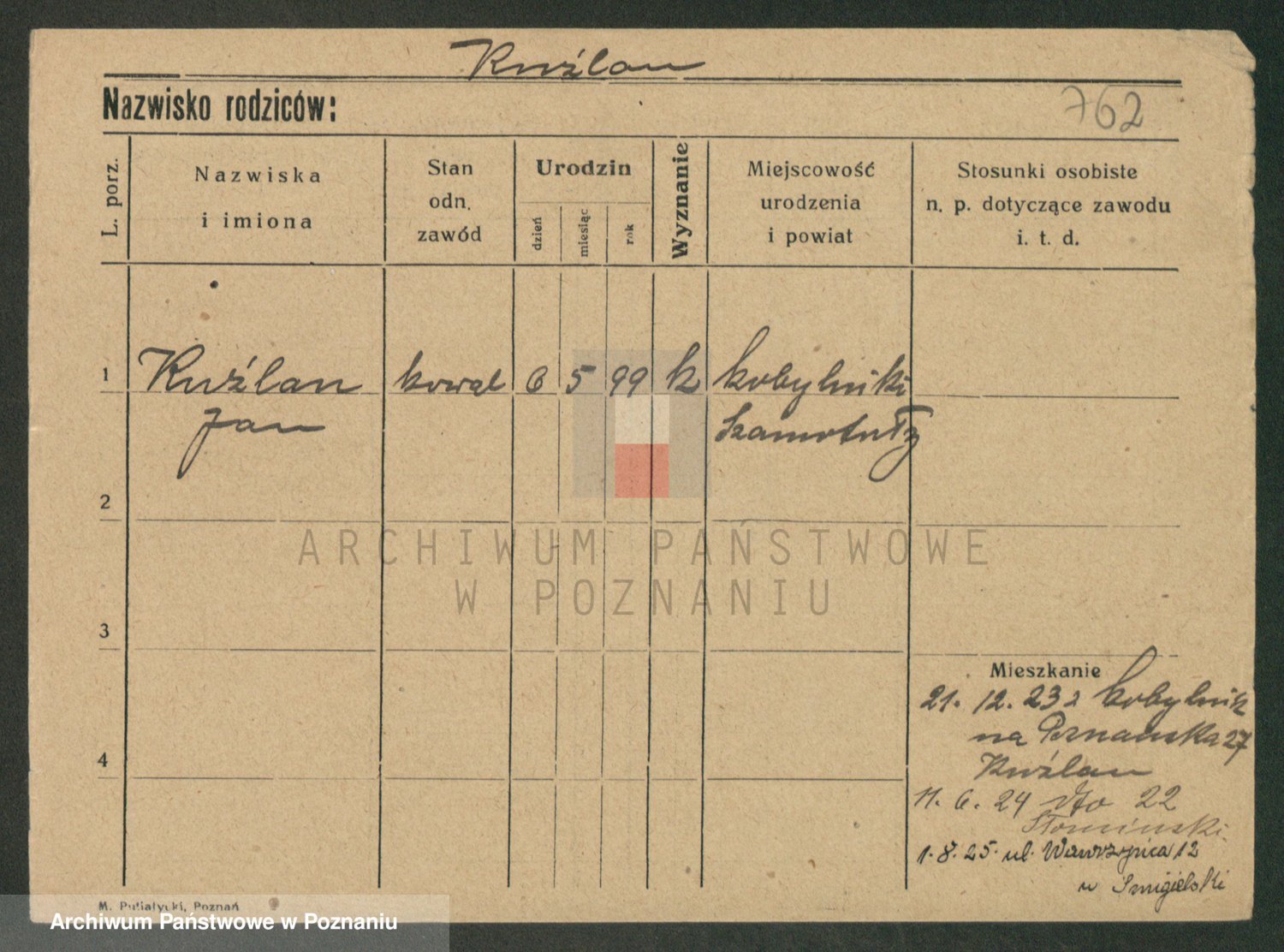 Podgląd karty osobowej dostępny jest po kliknięciu na nazwisko lub ikonkę karty. Można dokonywać powiększenia (ikony na górze) lub przechodzić między kolejnymi skanami (strzałki po bokach).