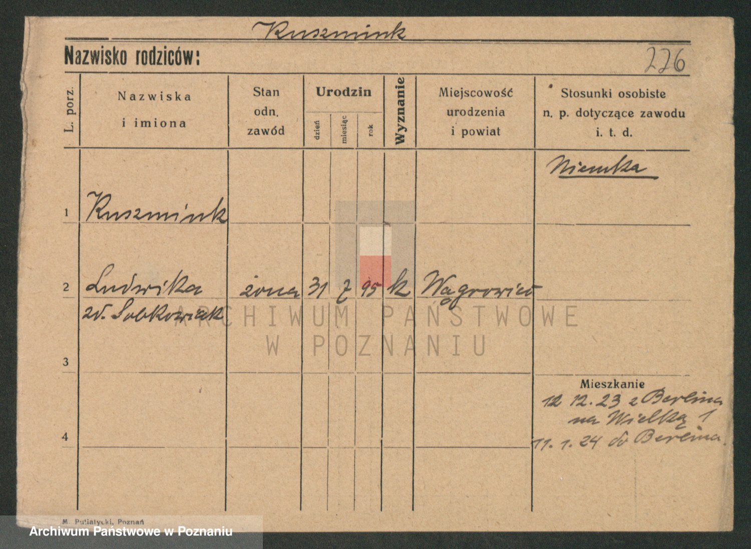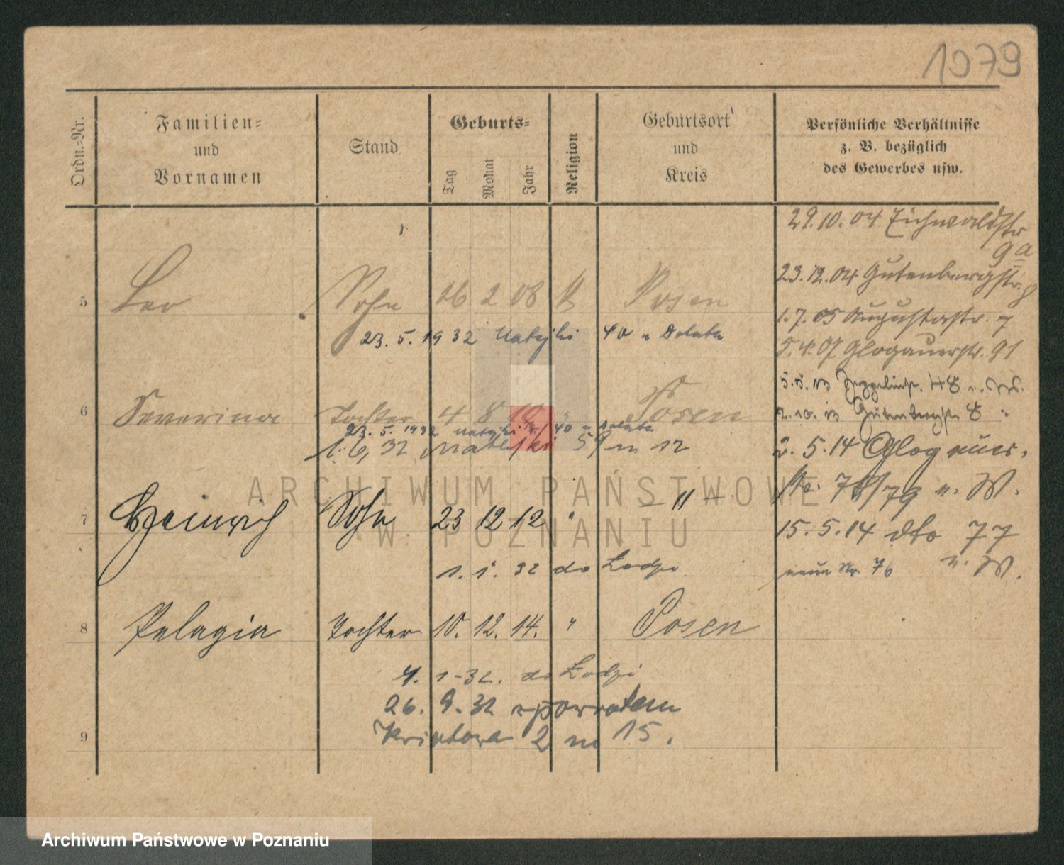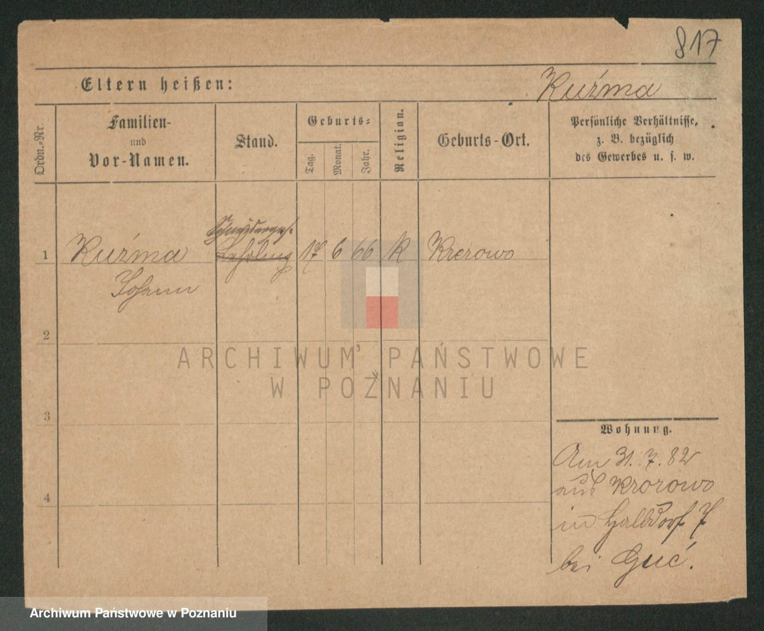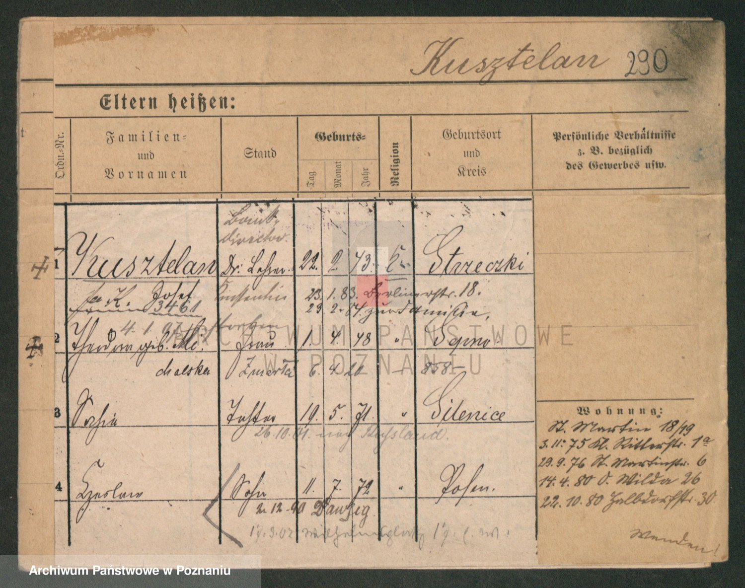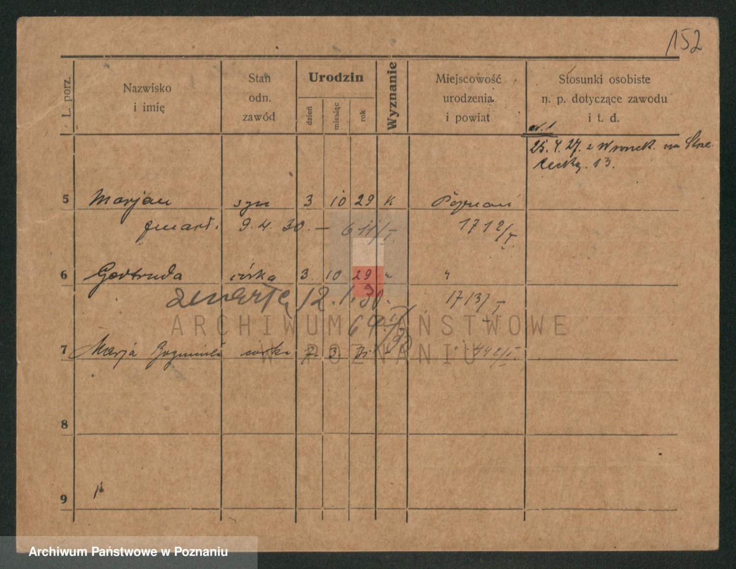 Podgląd karty osobowej dostępny jest po kliknięciu na nazwisko lub ikonkę karty. Można dokonywać powiększenia (ikony na górze) lub przechodzić między kolejnymi skanami (strzałki po bokach).