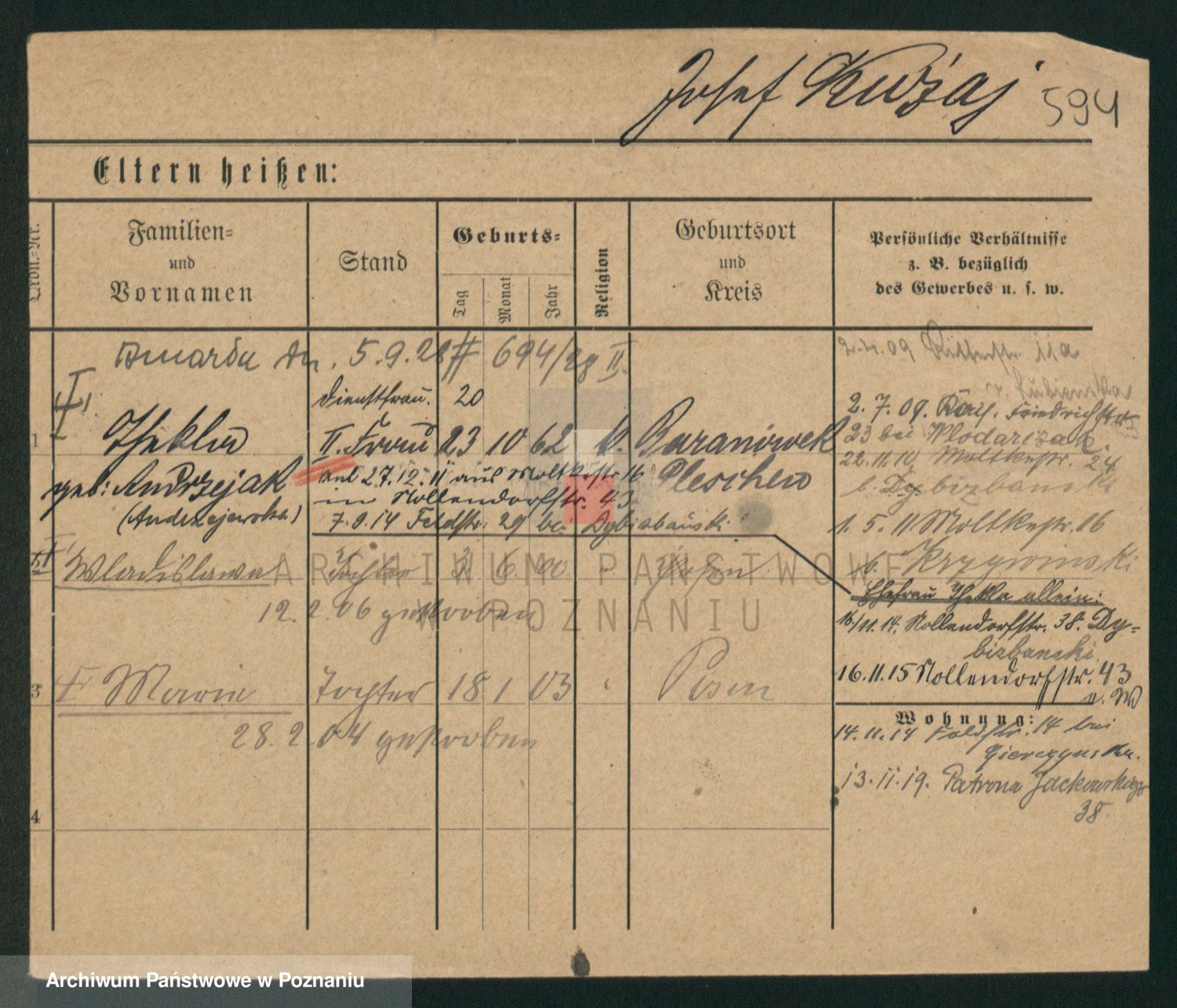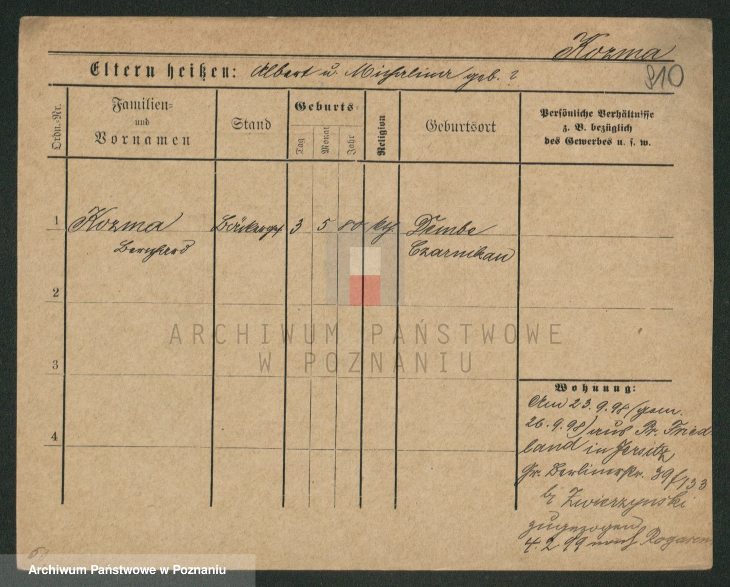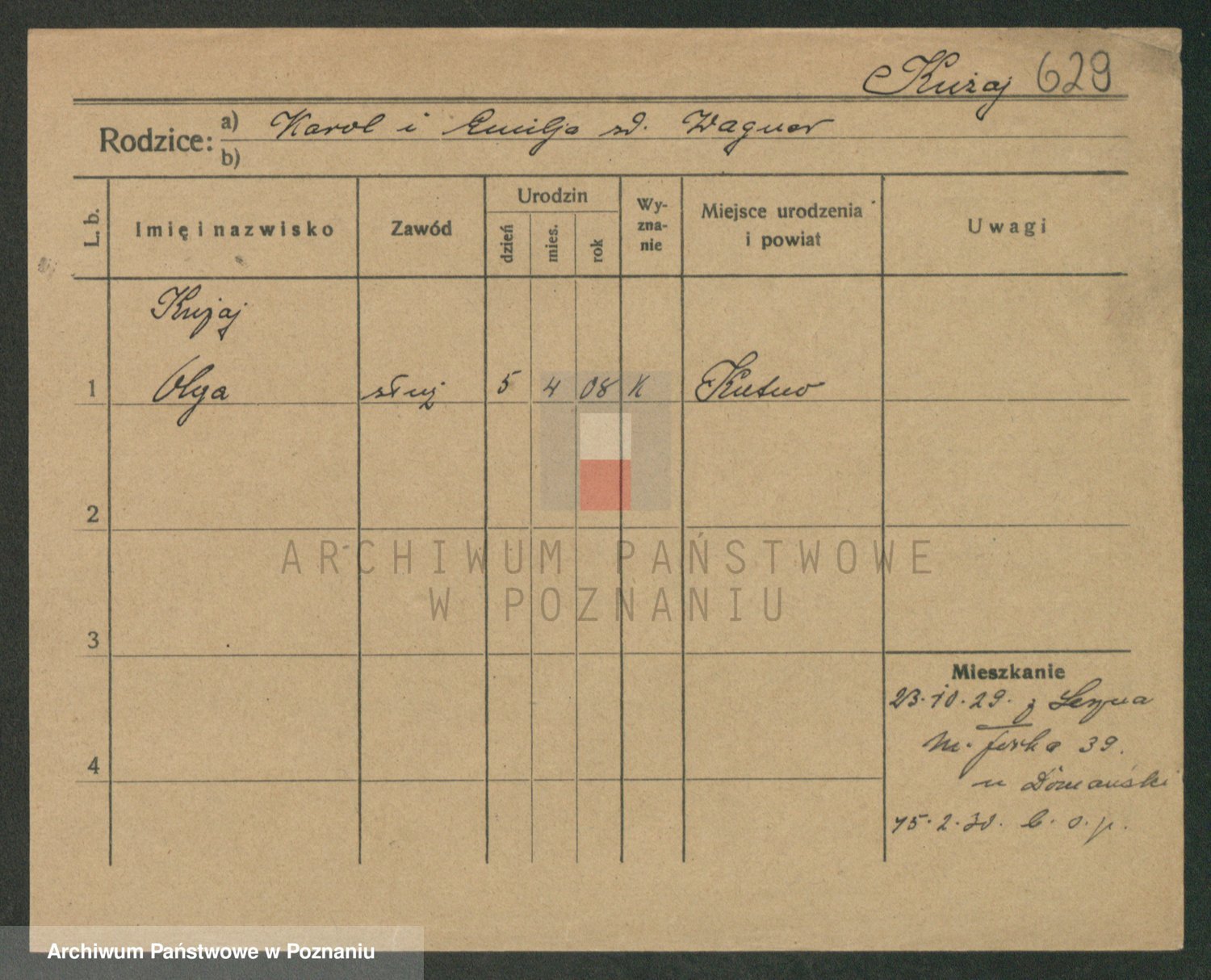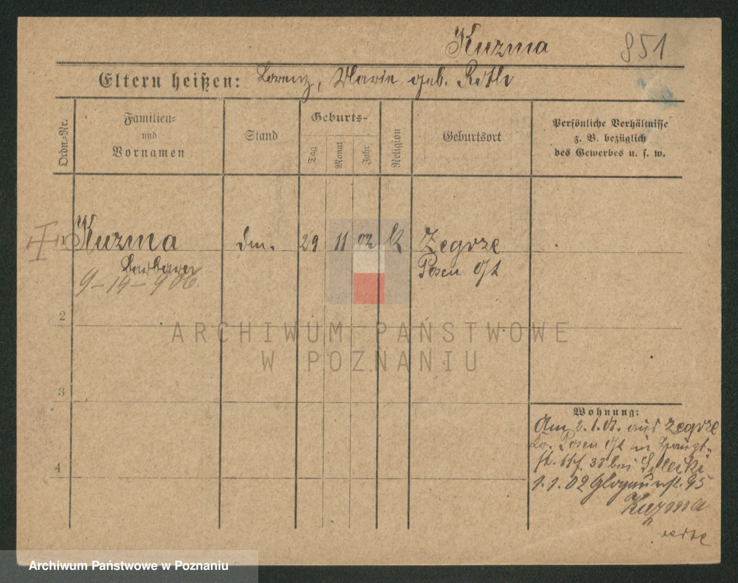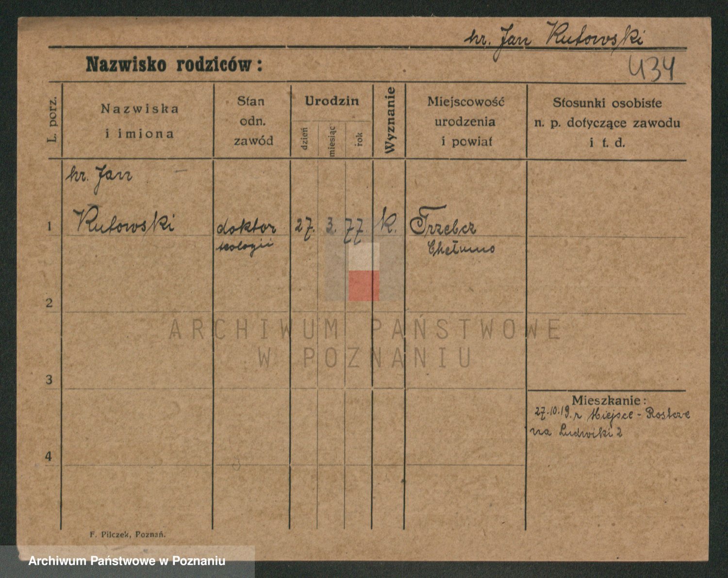 Podgląd karty osobowej dostępny jest po kliknięciu na nazwisko lub ikonkę karty. Można dokonywać powiększenia (ikony na górze) lub przechodzić między kolejnymi skanami (strzałki po bokach).