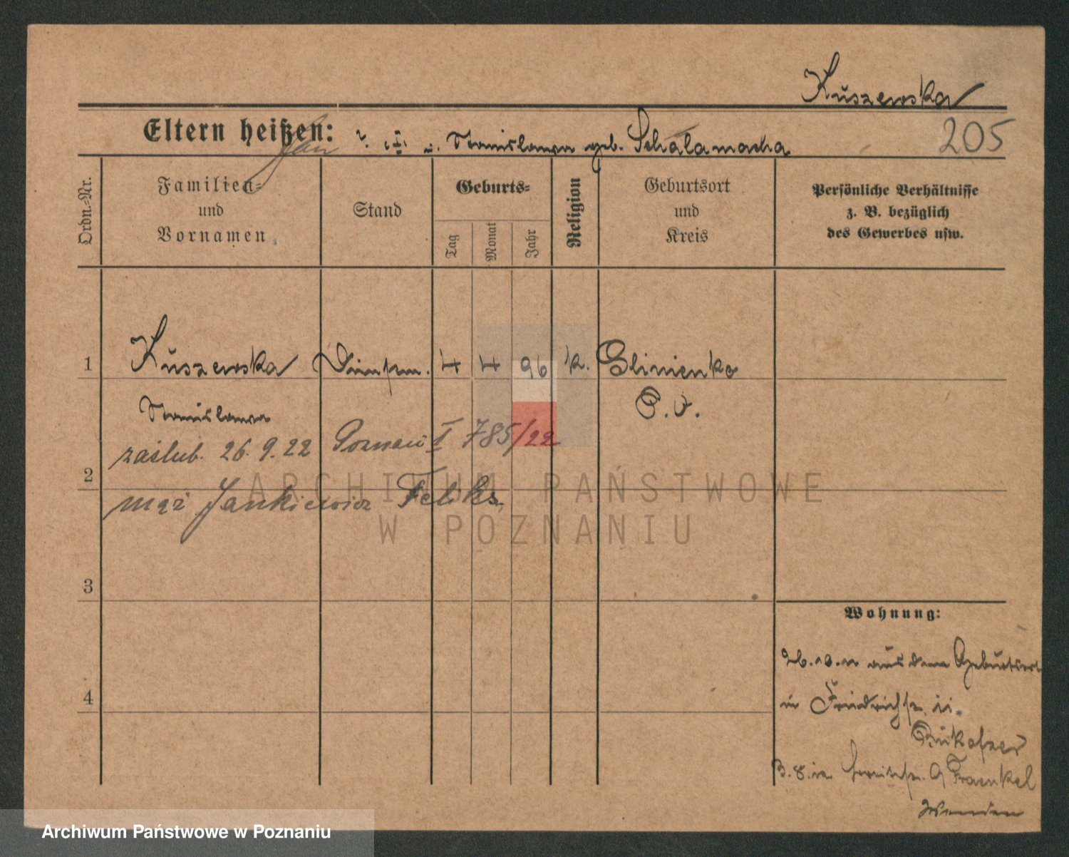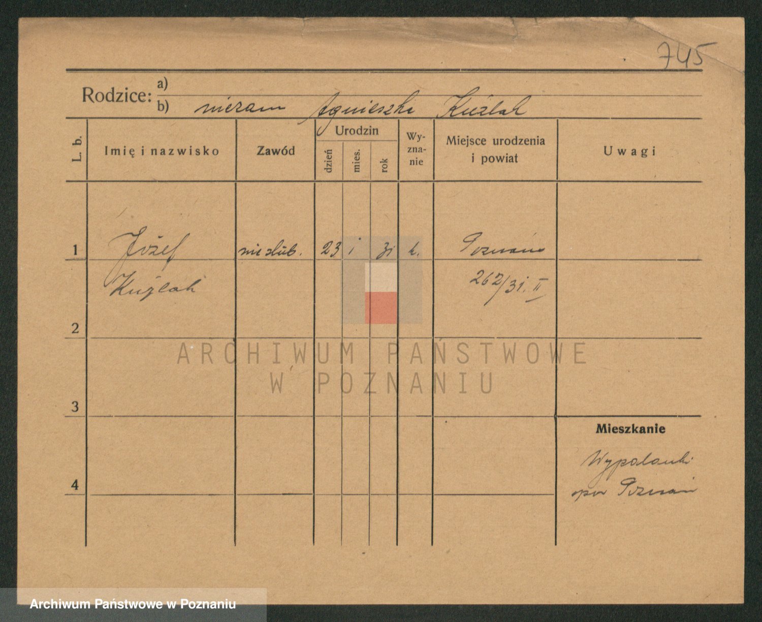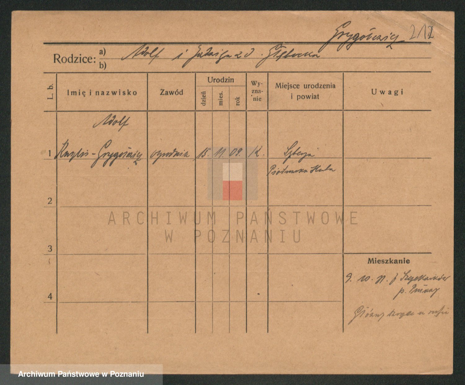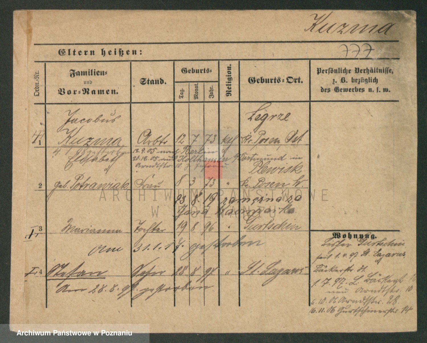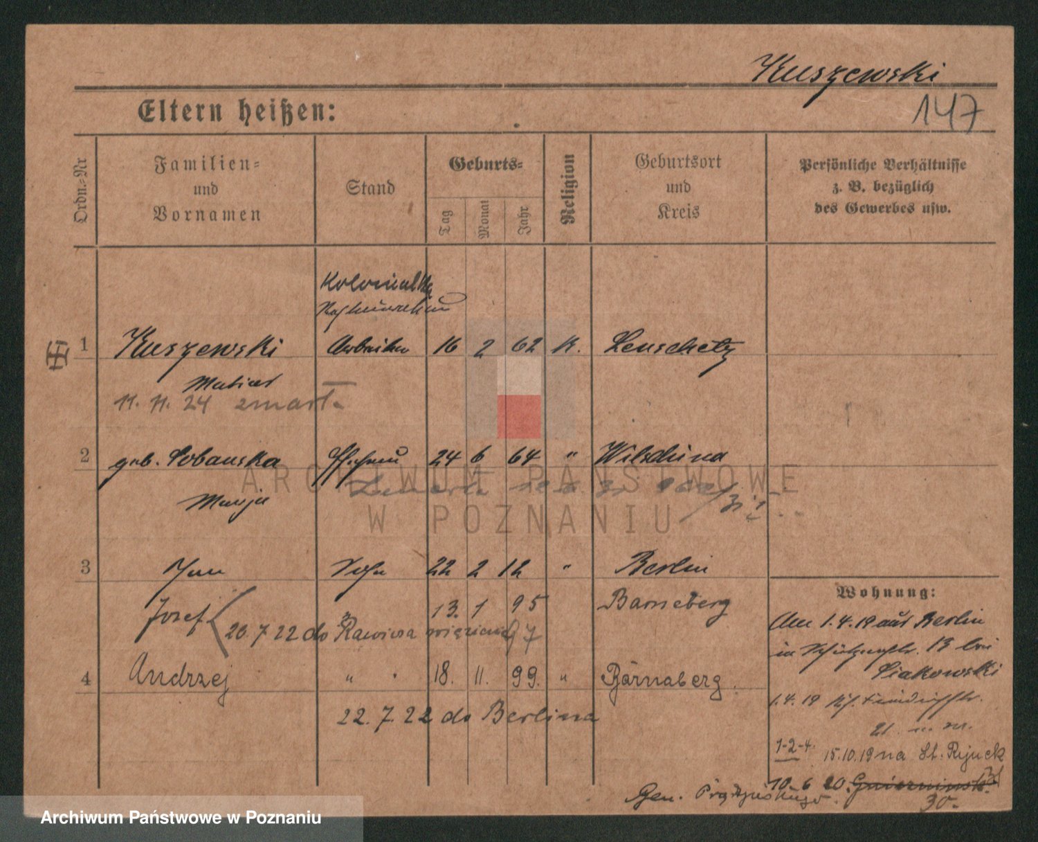 Podgląd karty osobowej dostępny jest po kliknięciu na nazwisko lub ikonkę karty. Można dokonywać powiększenia (ikony na górze) lub przechodzić między kolejnymi skanami (strzałki po bokach).