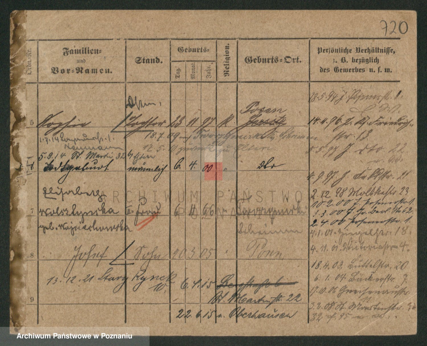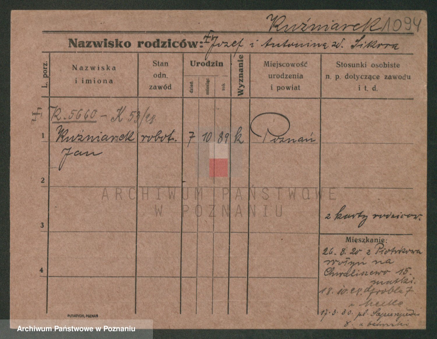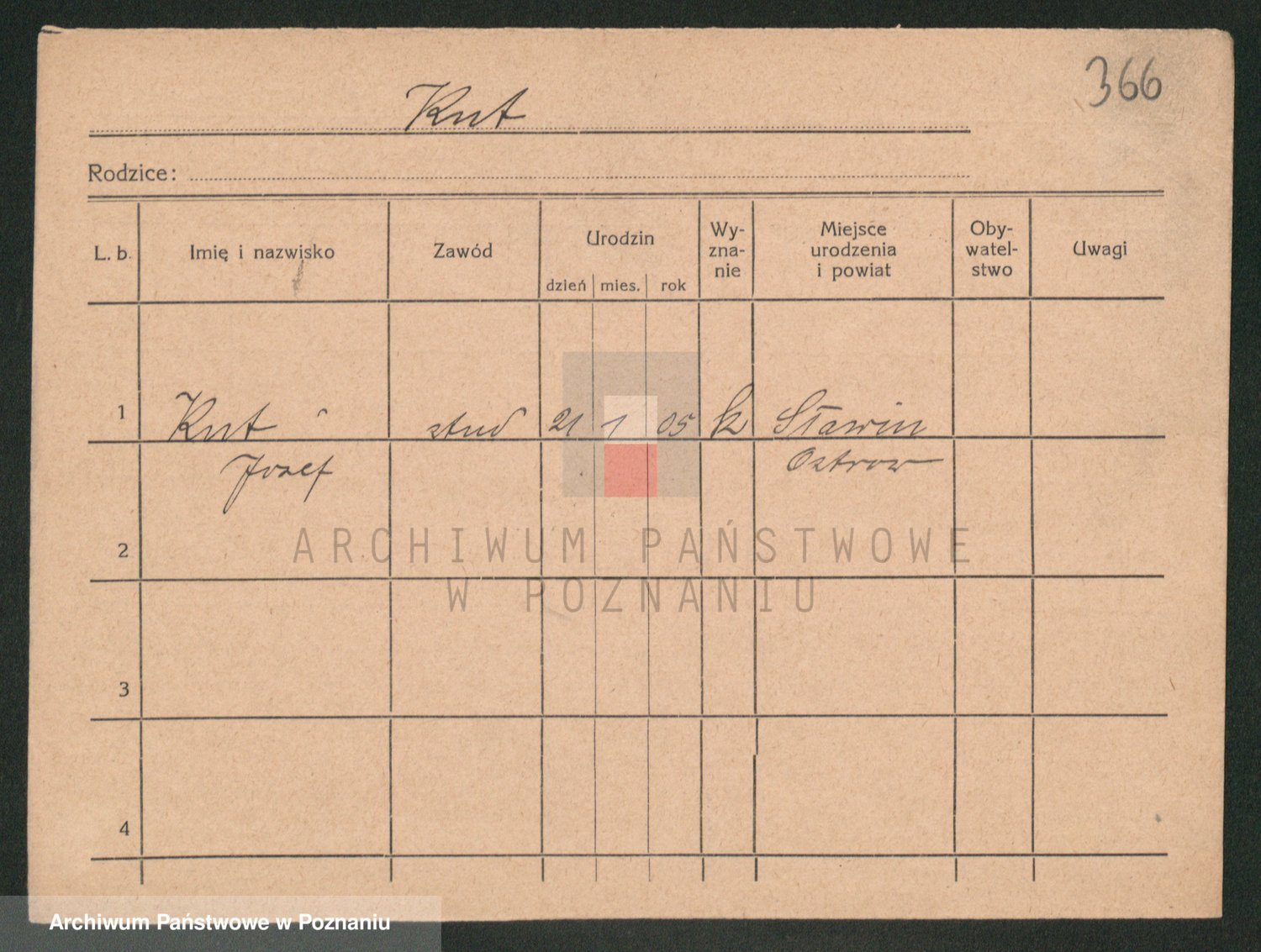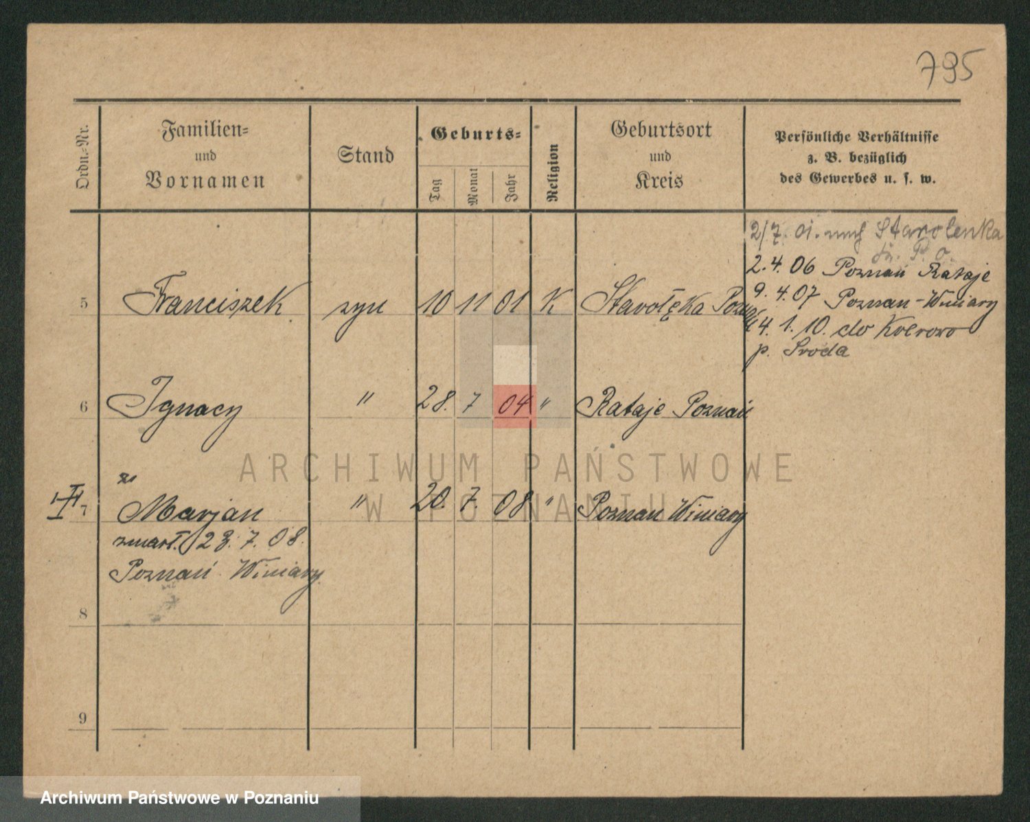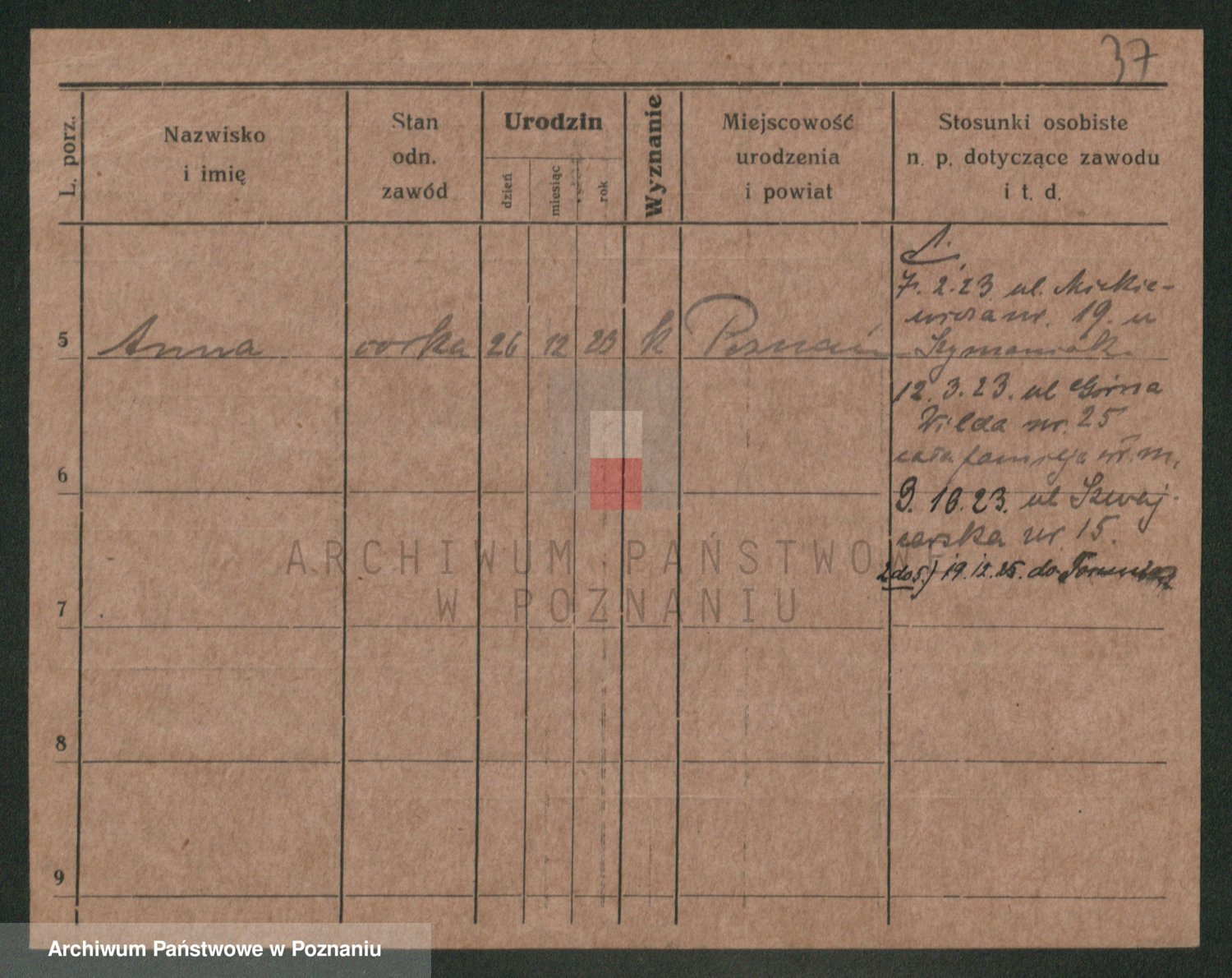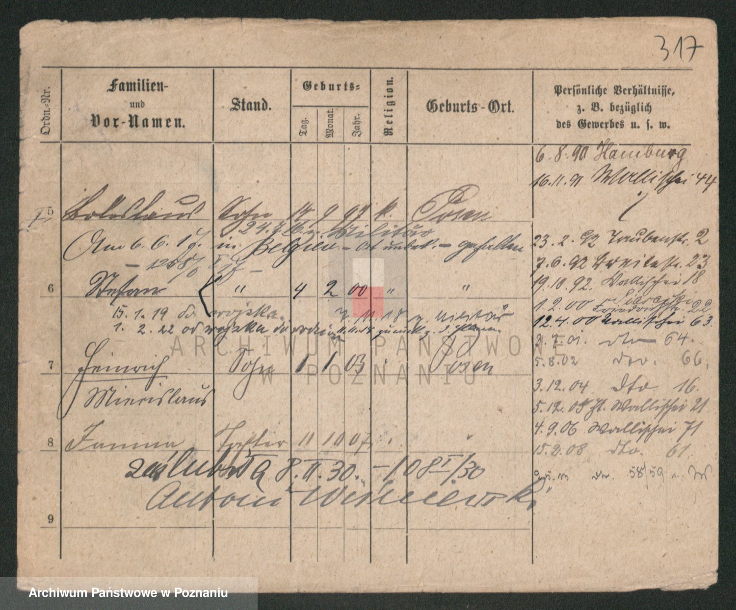 Podgląd karty osobowej dostępny jest po kliknięciu na nazwisko lub ikonkę karty. Można dokonywać powiększenia (ikony na górze) lub przechodzić między kolejnymi skanami (strzałki po bokach).