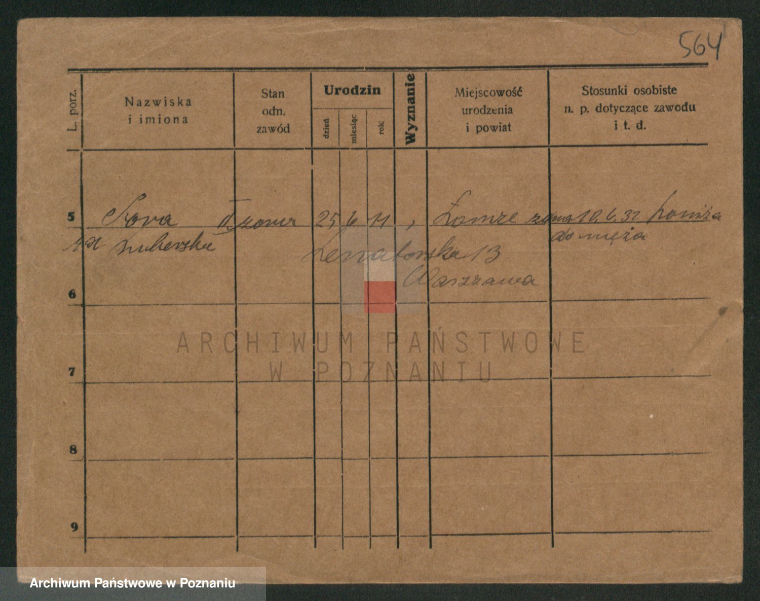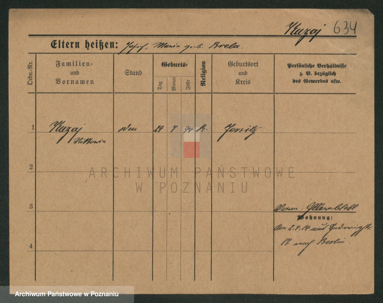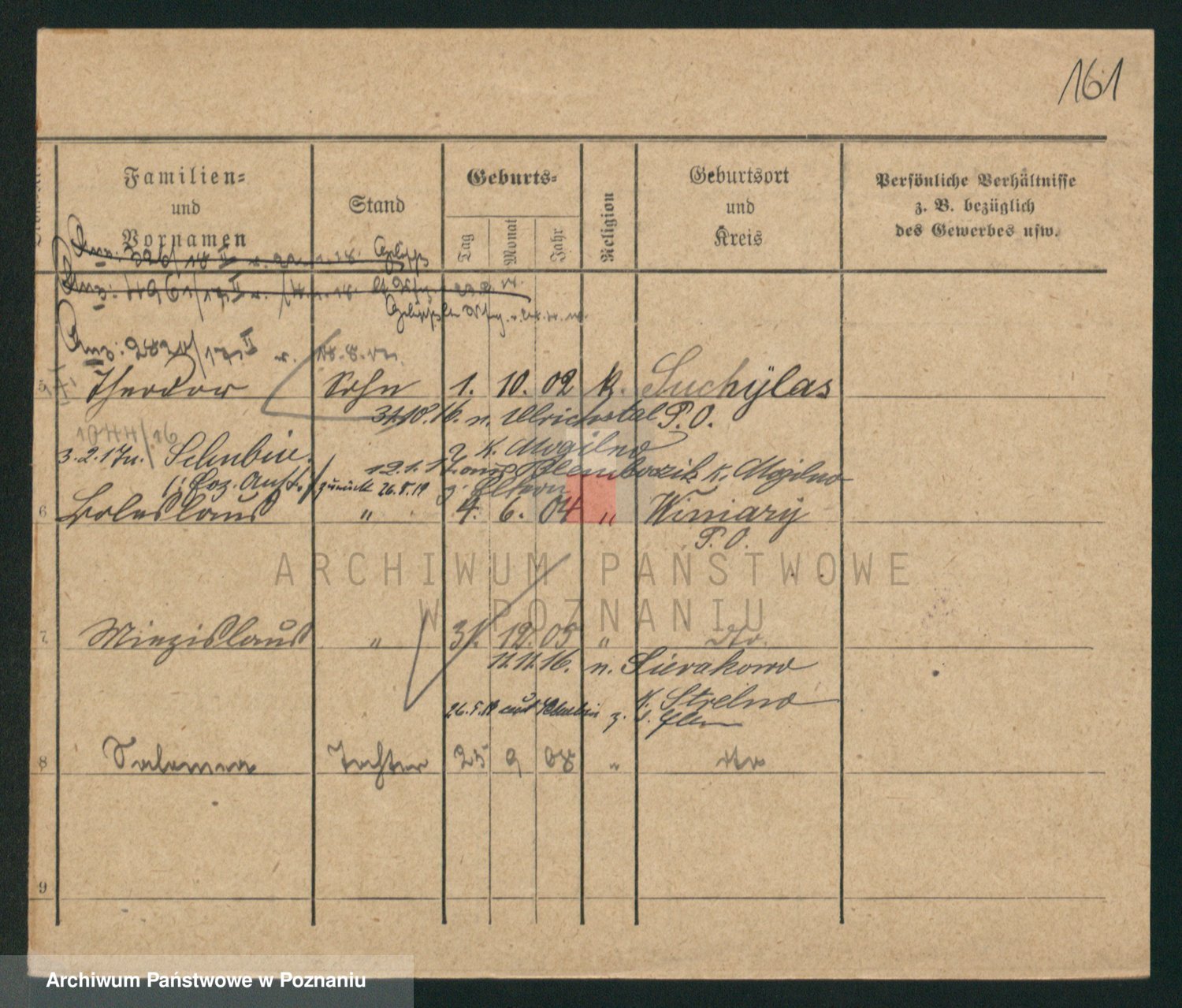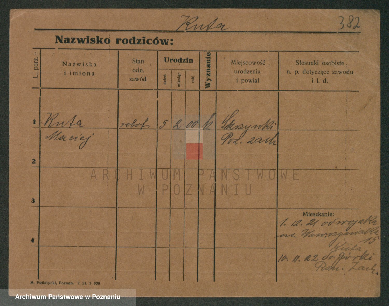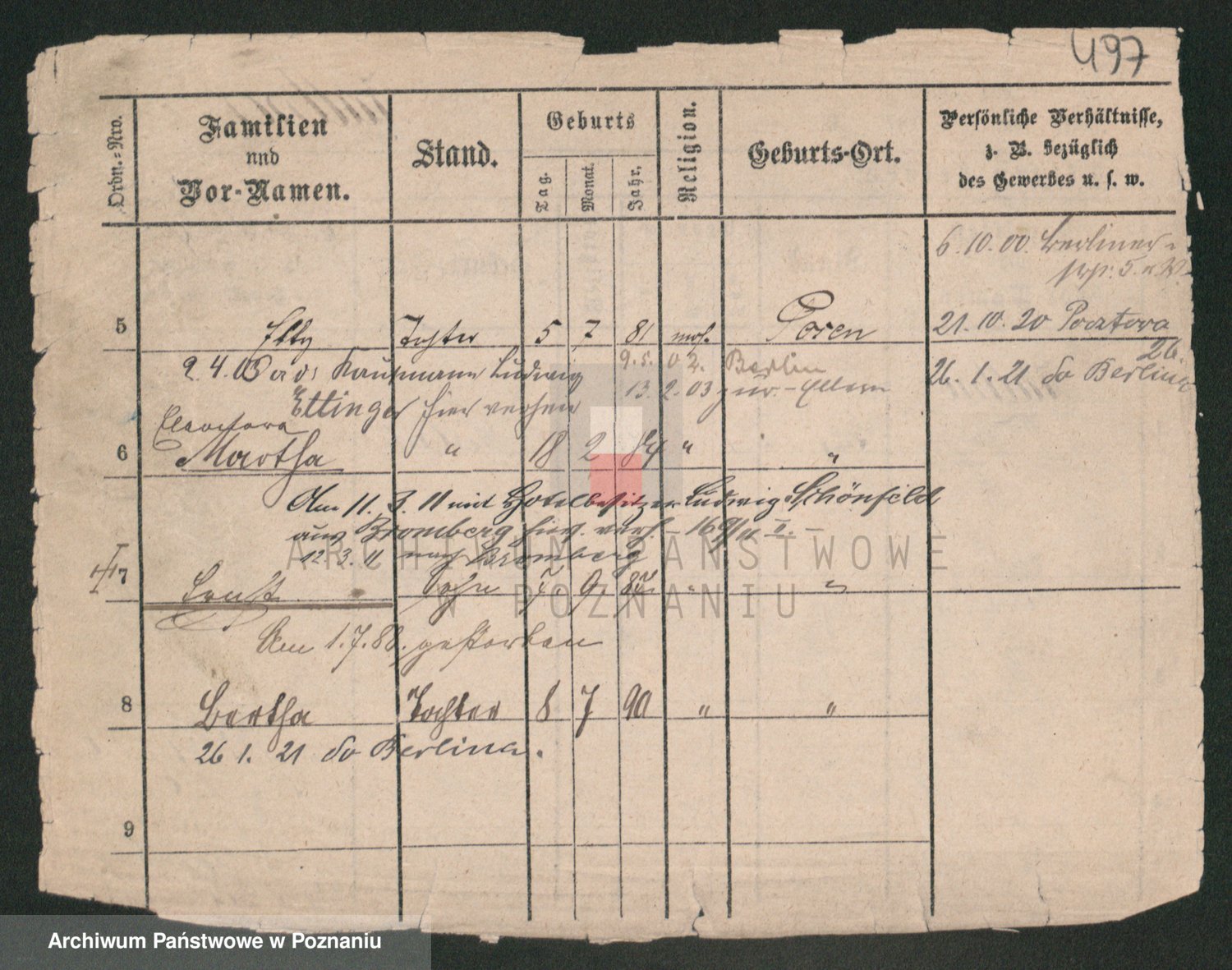 Podgląd karty osobowej dostępny jest po kliknięciu na nazwisko lub ikonkę karty. Można dokonywać powiększenia (ikony na górze) lub przechodzić między kolejnymi skanami (strzałki po bokach).