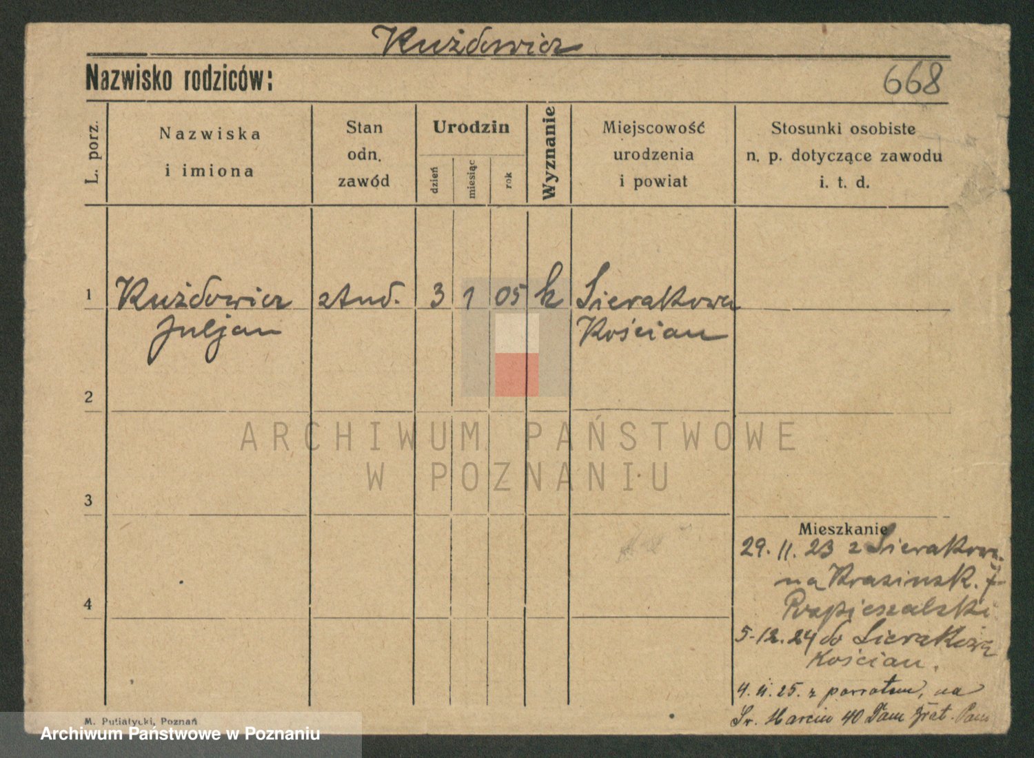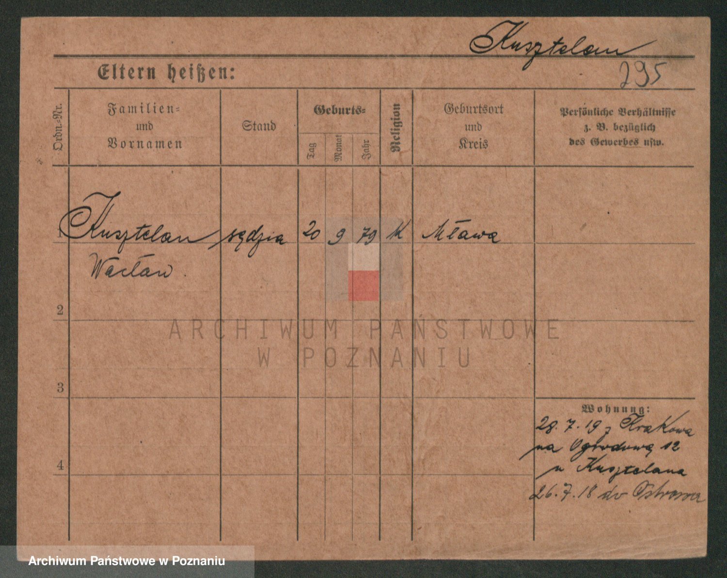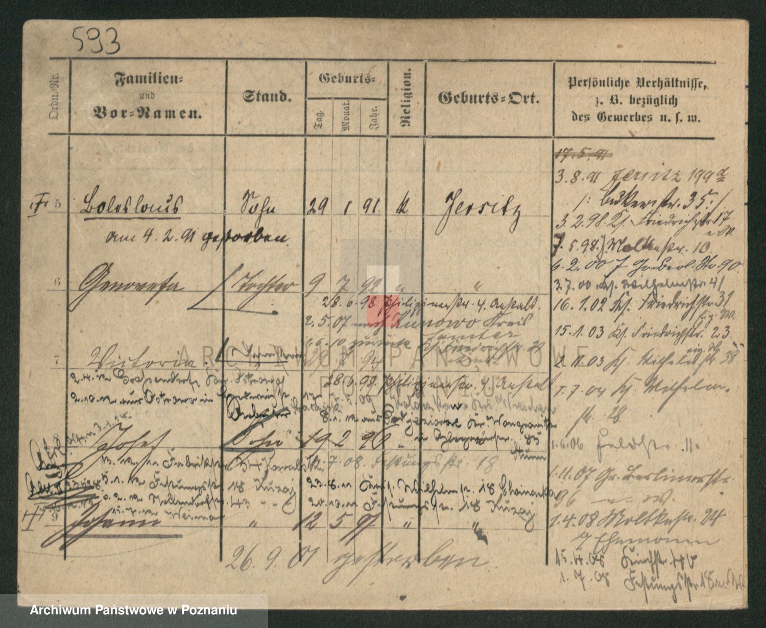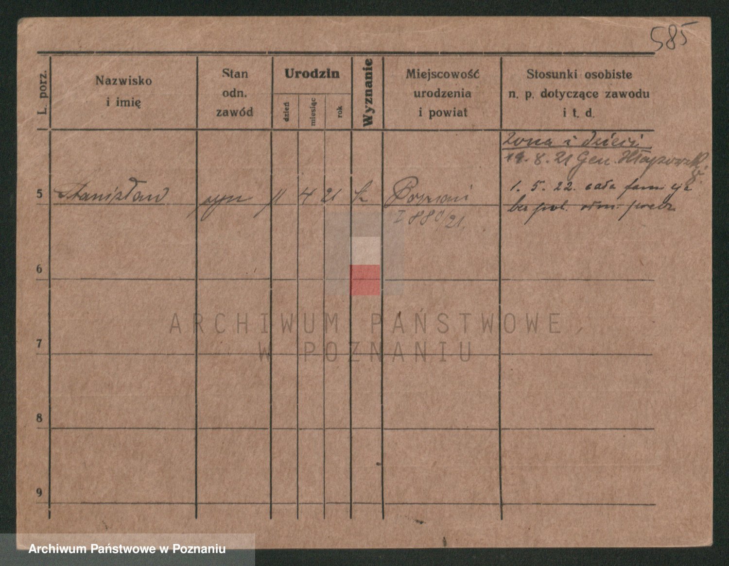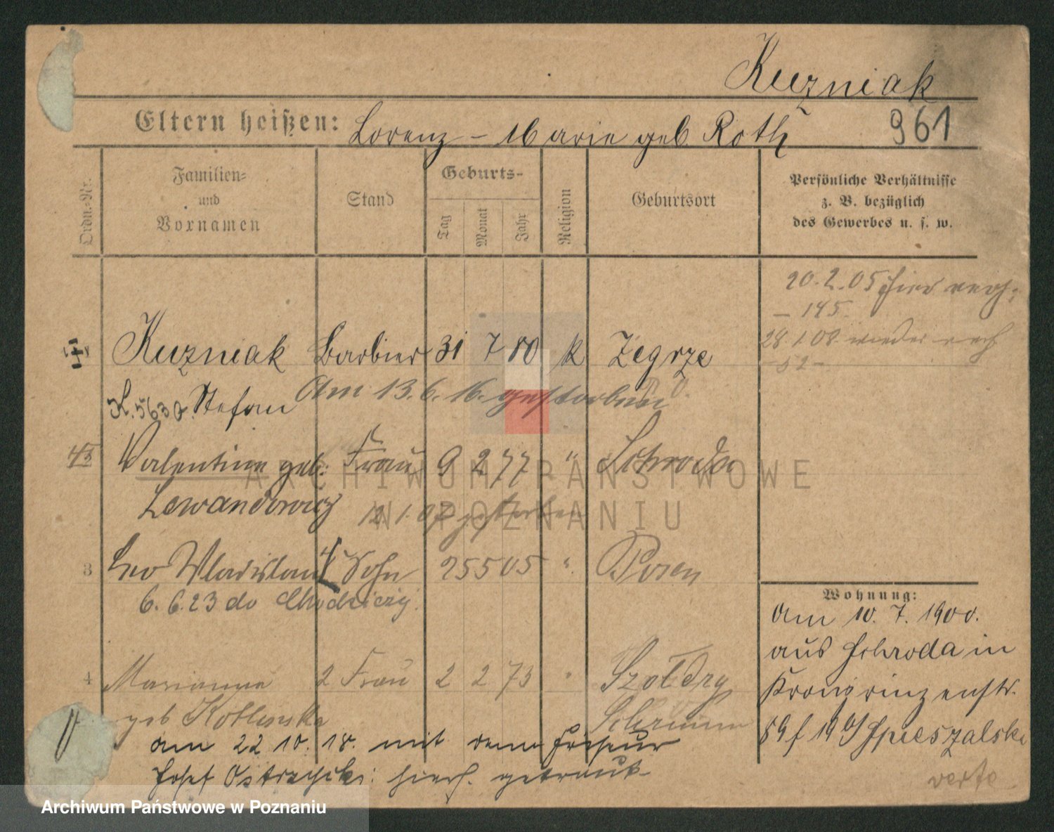 Podgląd karty osobowej dostępny jest po kliknięciu na nazwisko lub ikonkę karty. Można dokonywać powiększenia (ikony na górze) lub przechodzić między kolejnymi skanami (strzałki po bokach).