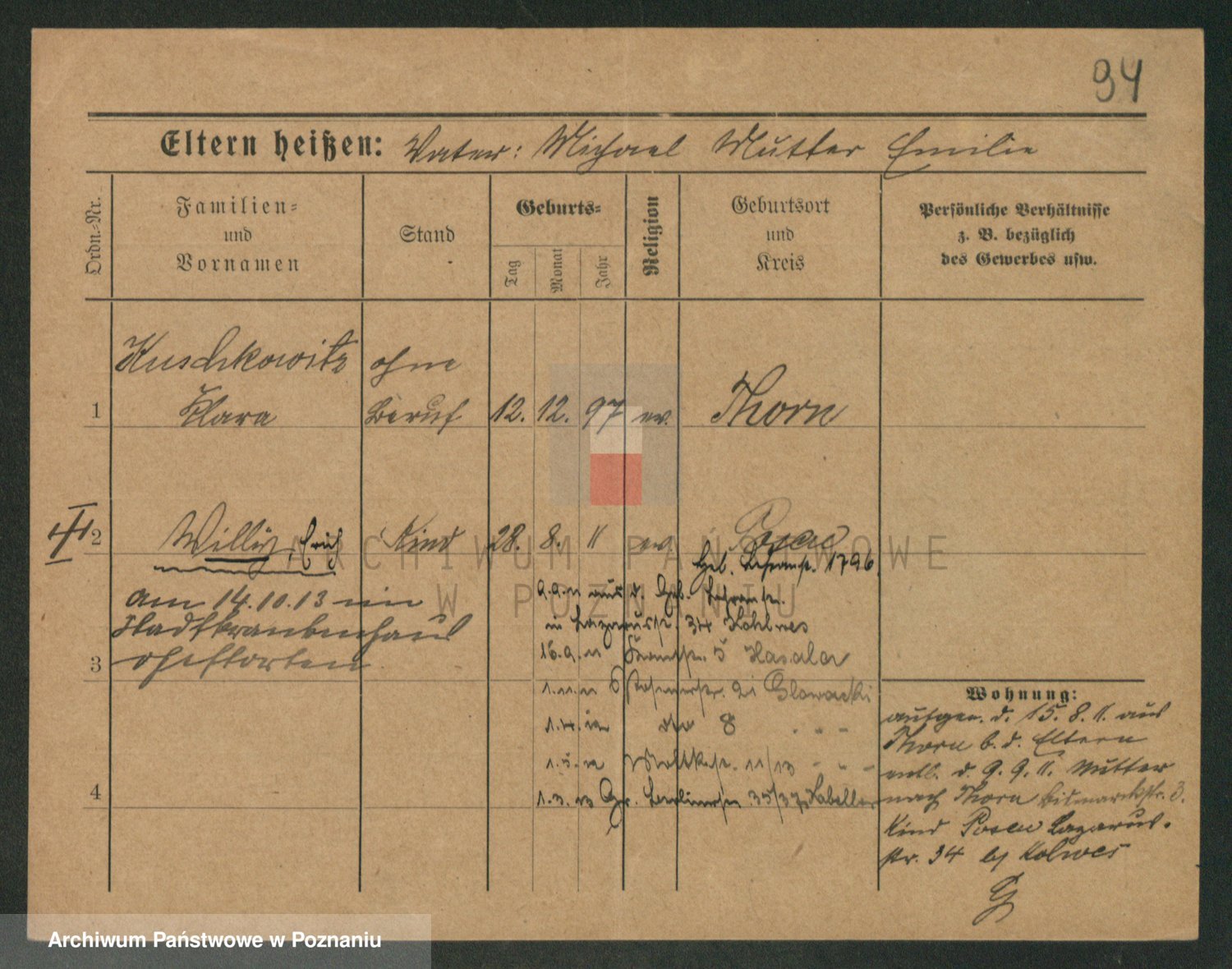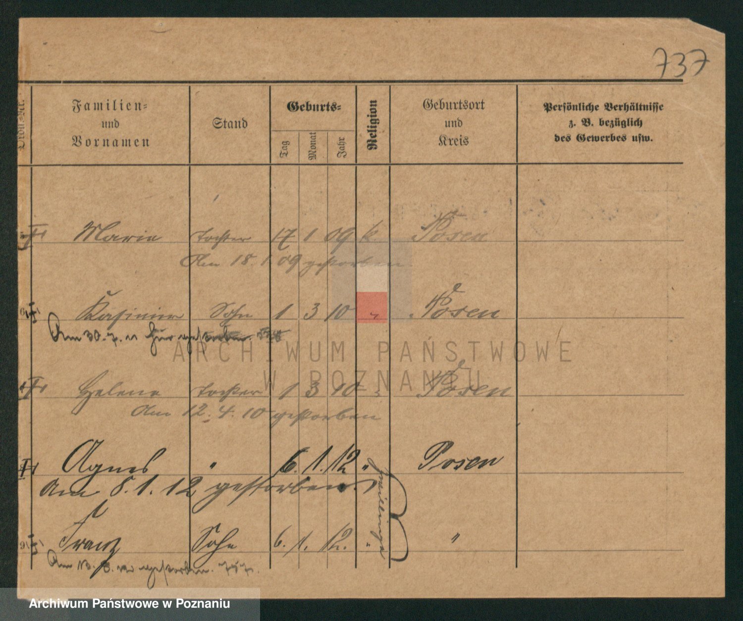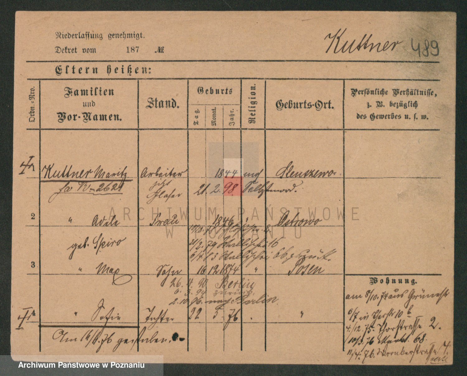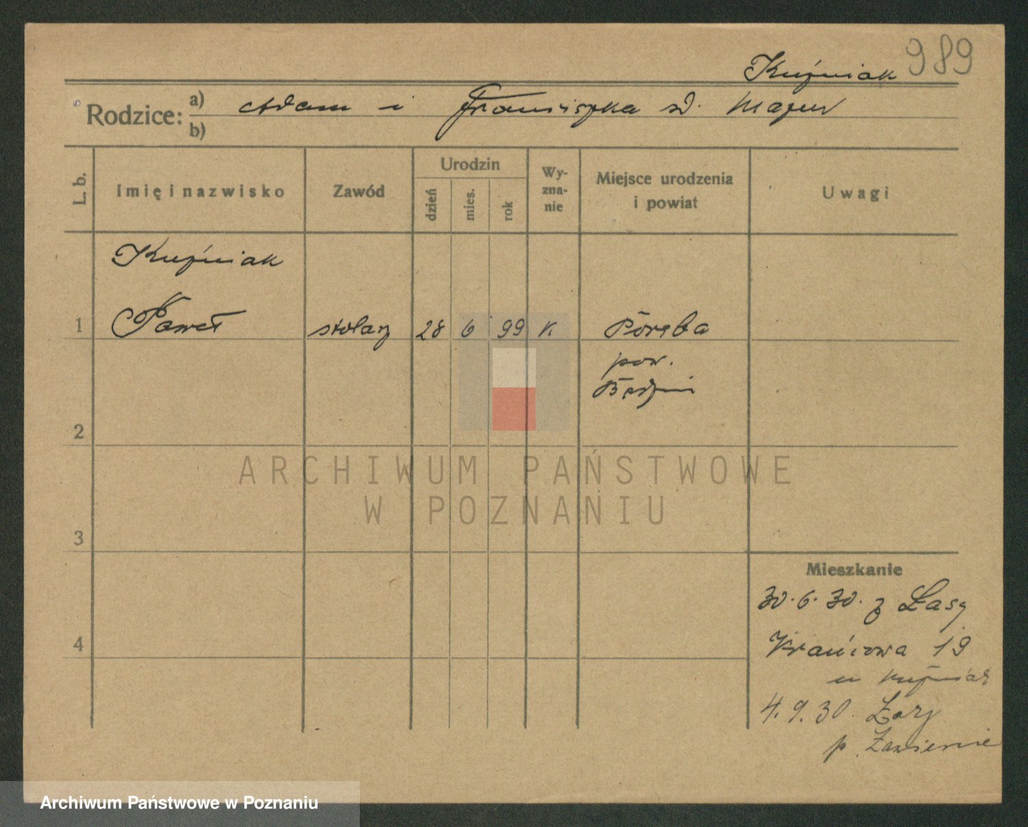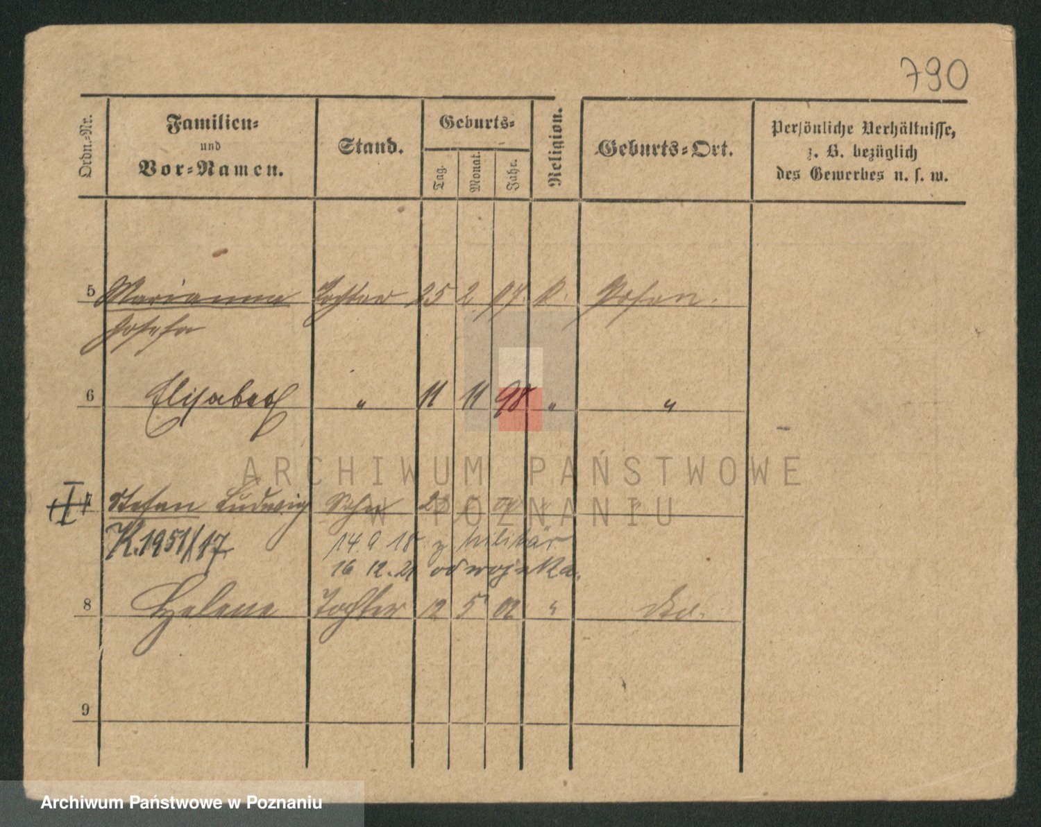 Podgląd karty osobowej dostępny jest po kliknięciu na nazwisko lub ikonkę karty. Można dokonywać powiększenia (ikony na górze) lub przechodzić między kolejnymi skanami (strzałki po bokach).