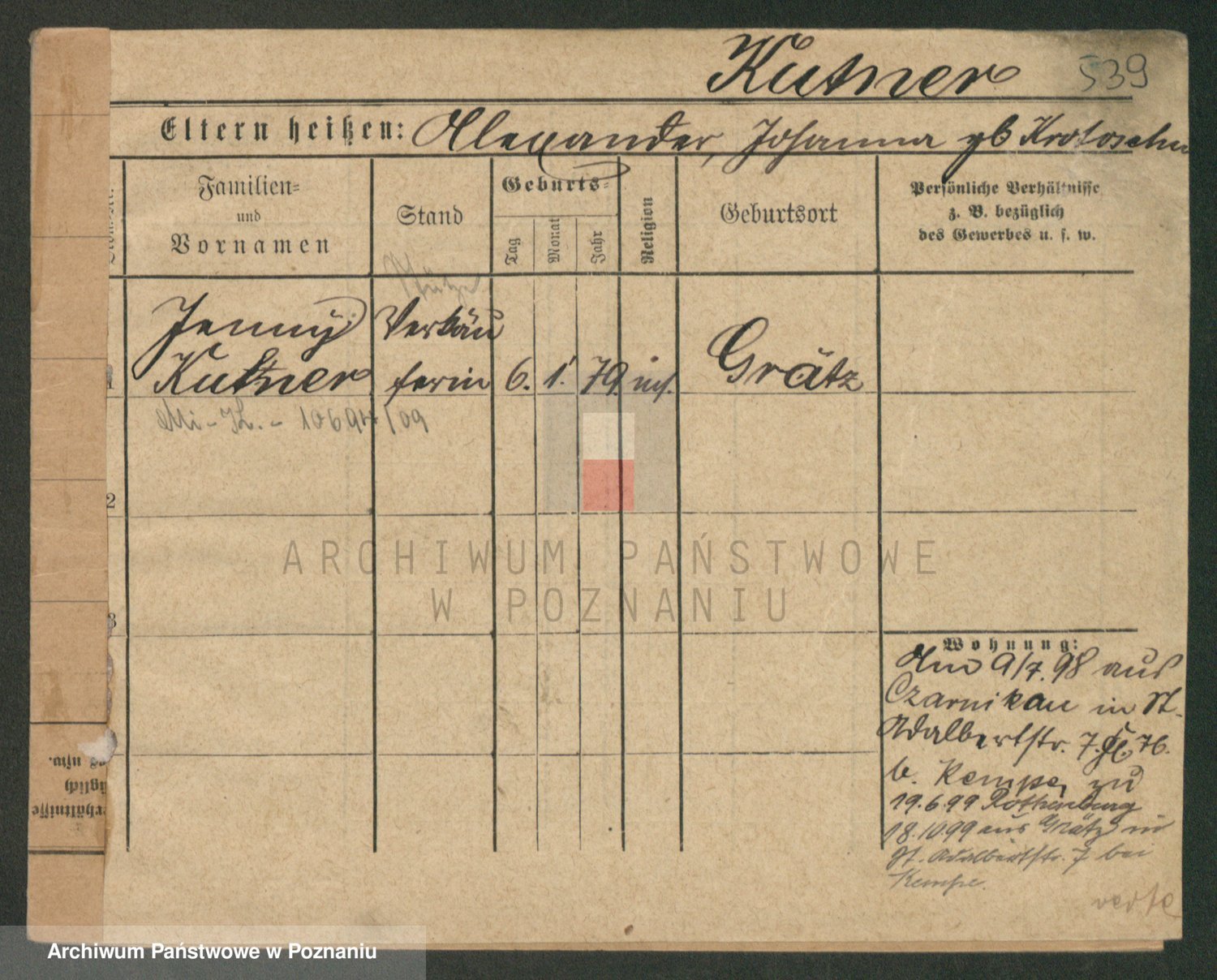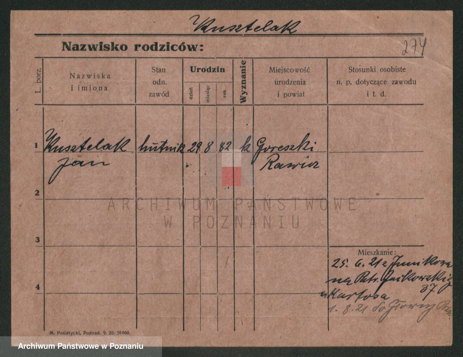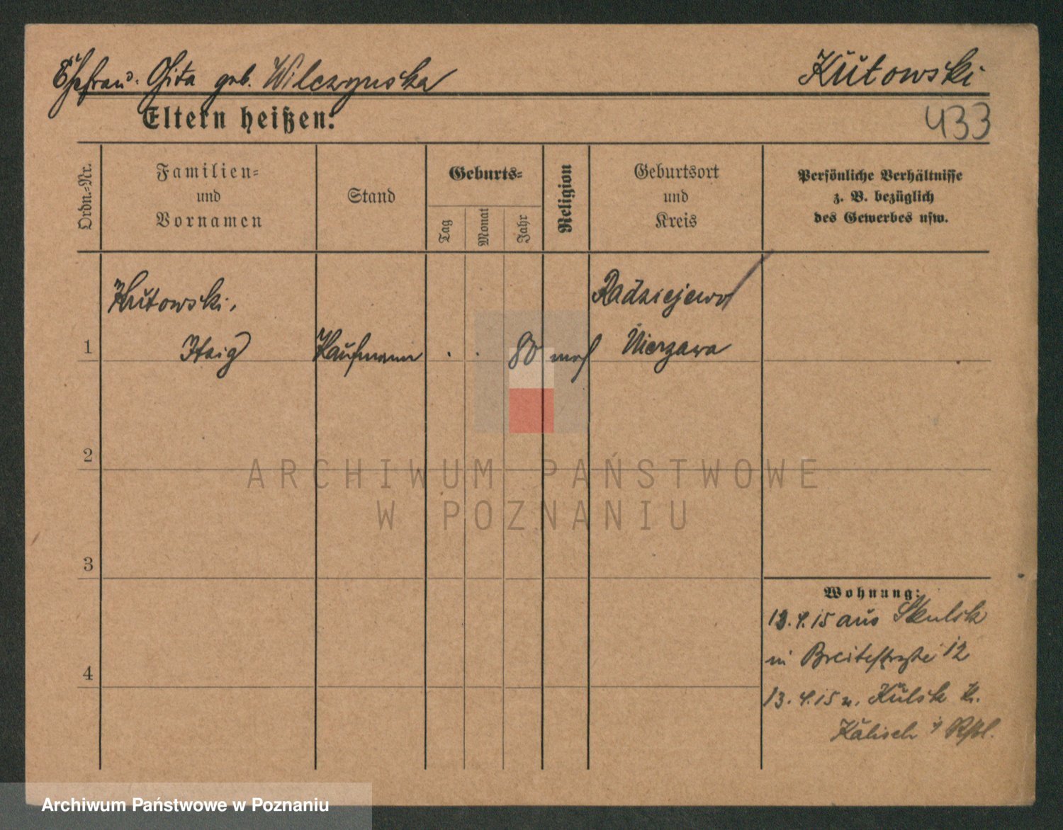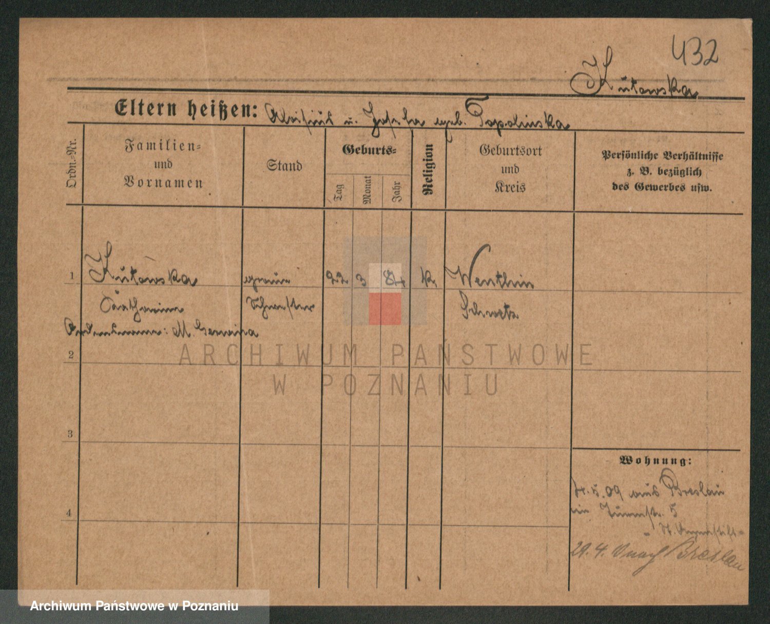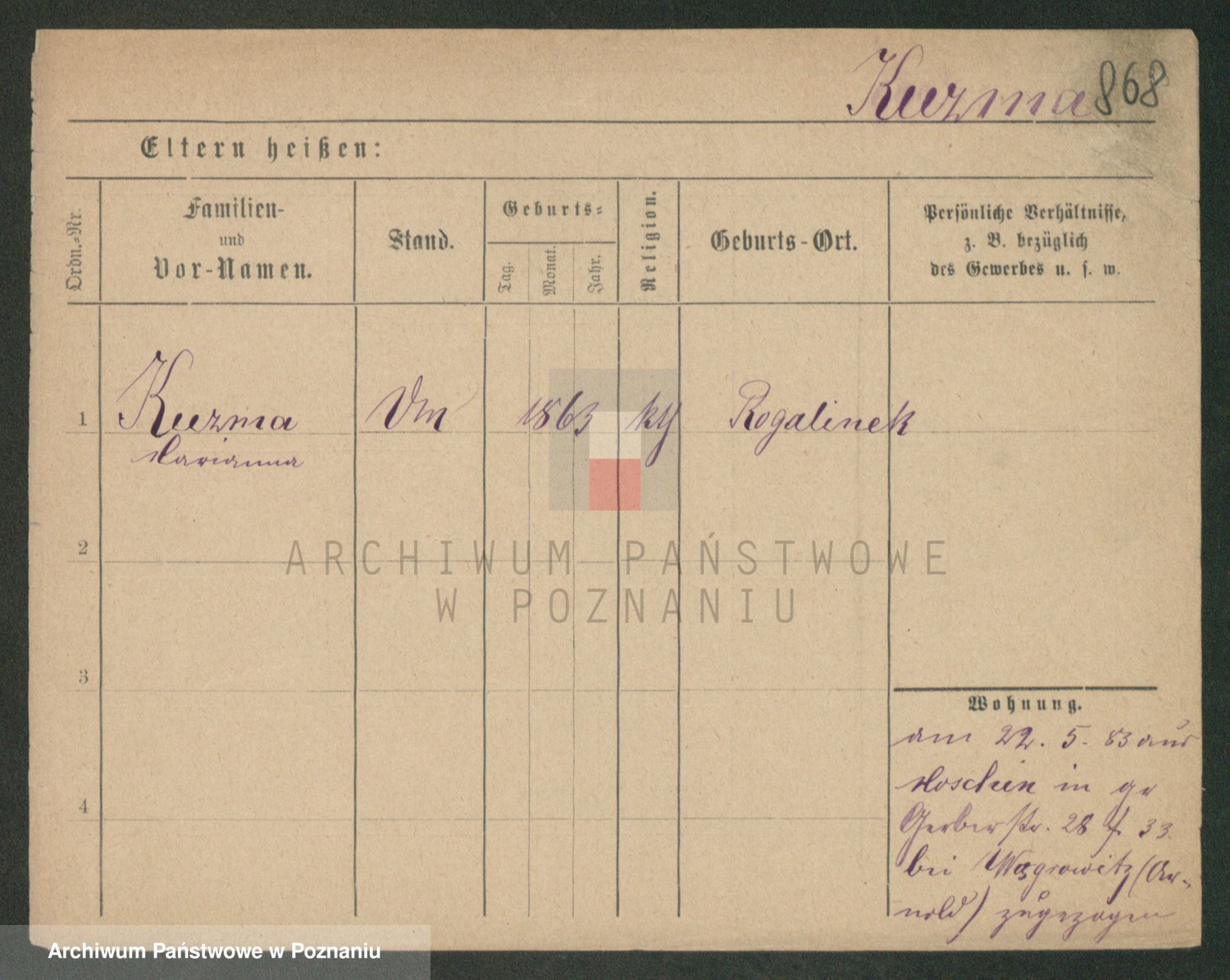 Podgląd karty osobowej dostępny jest po kliknięciu na nazwisko lub ikonkę karty. Można dokonywać powiększenia (ikony na górze) lub przechodzić między kolejnymi skanami (strzałki po bokach).