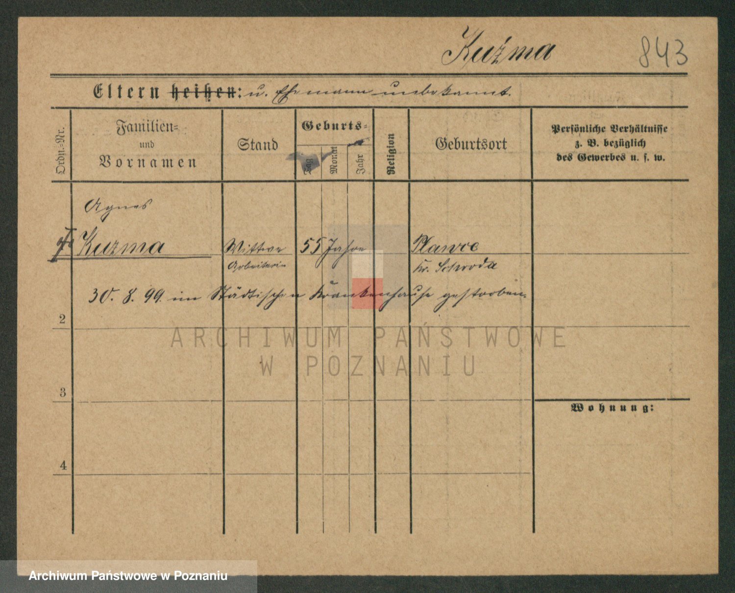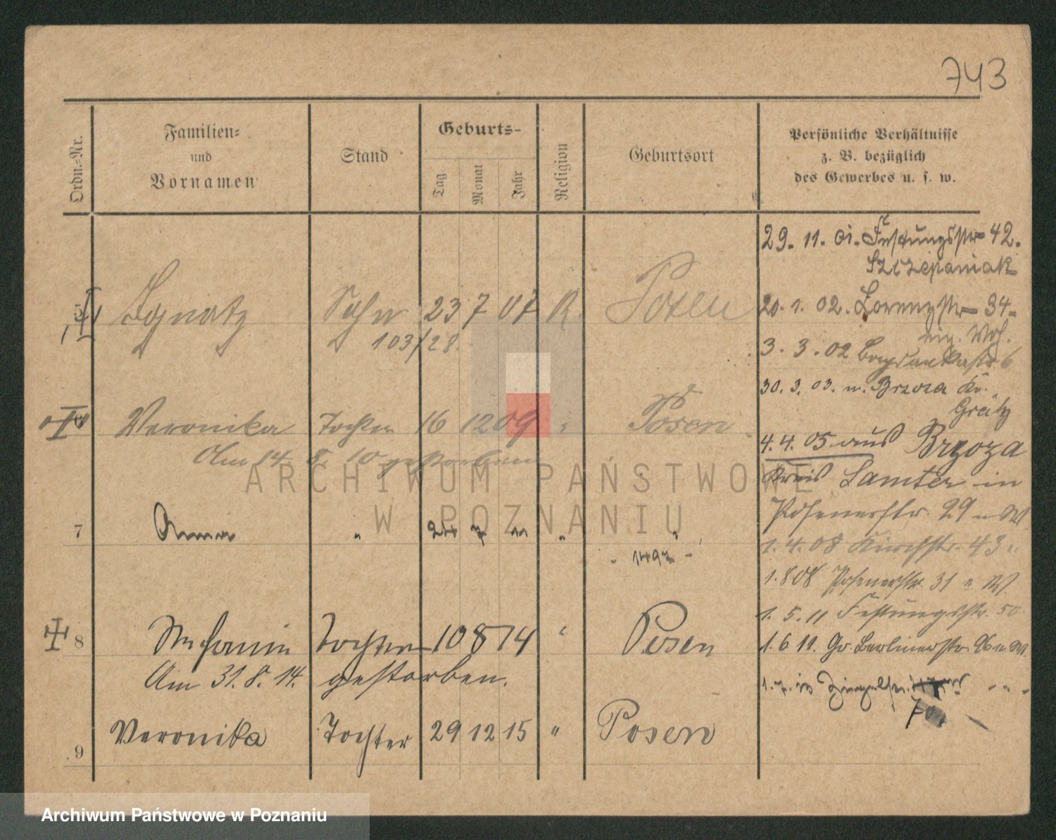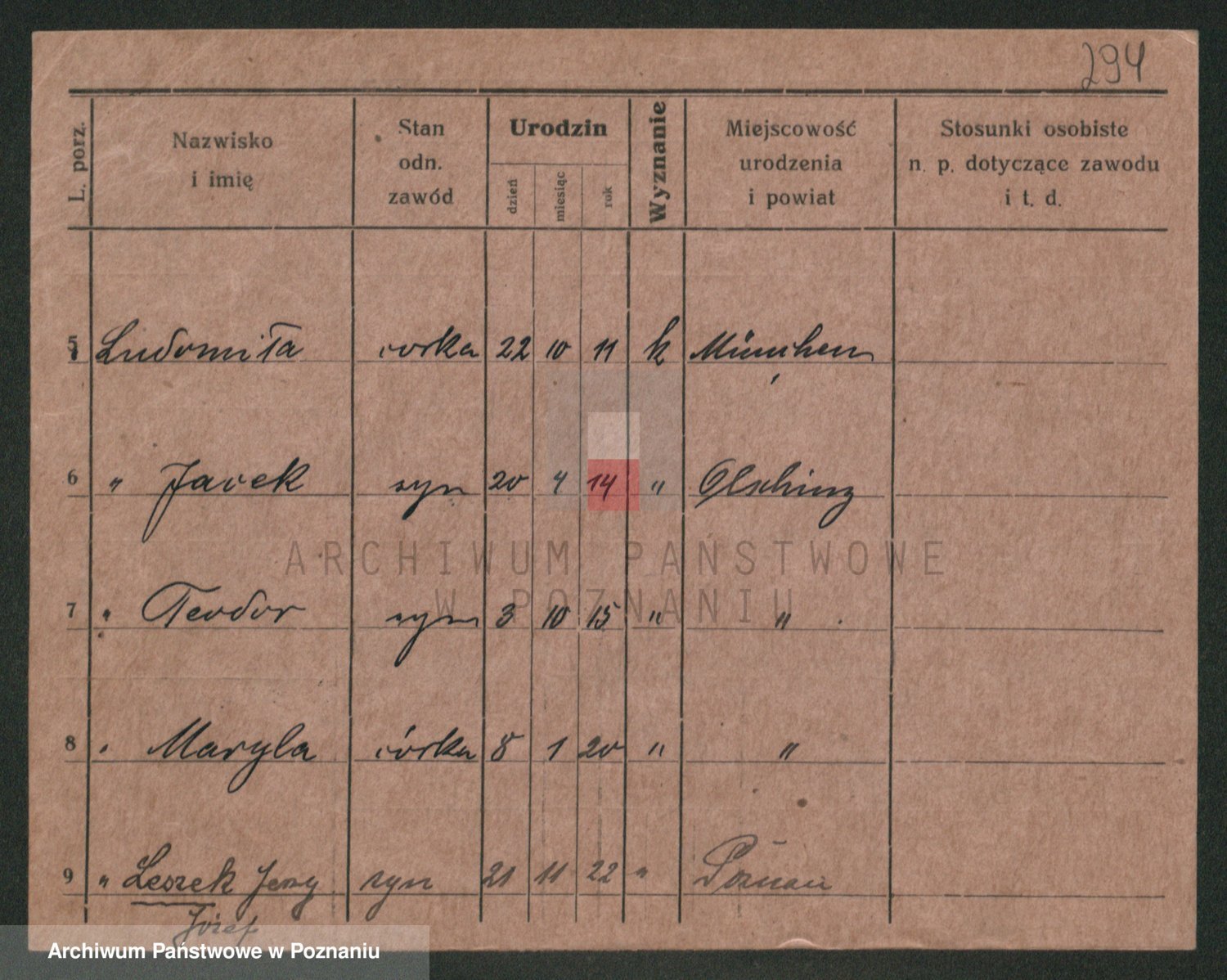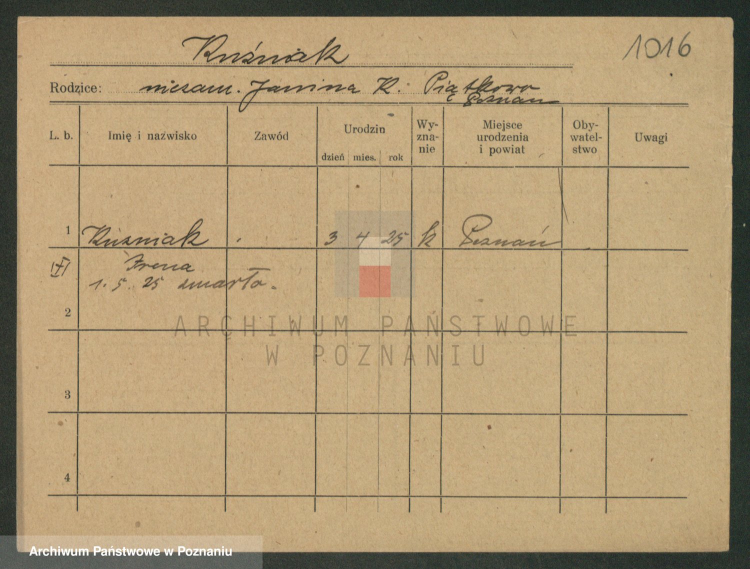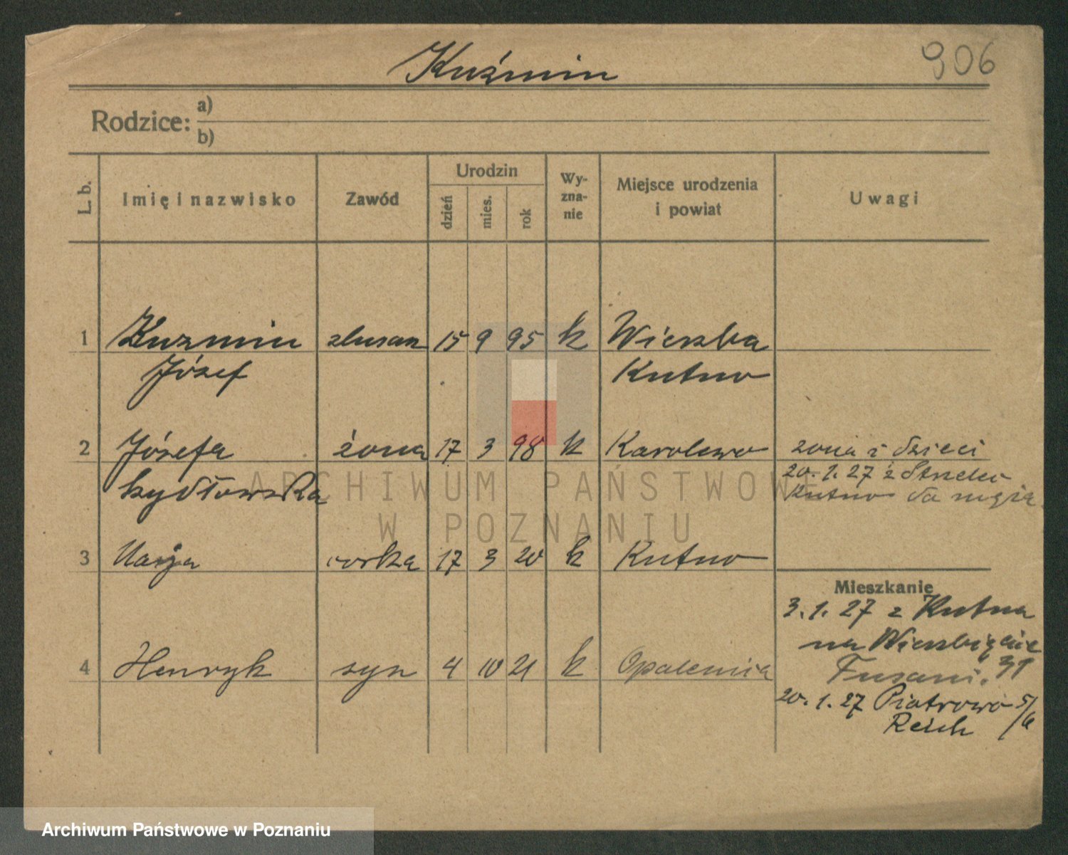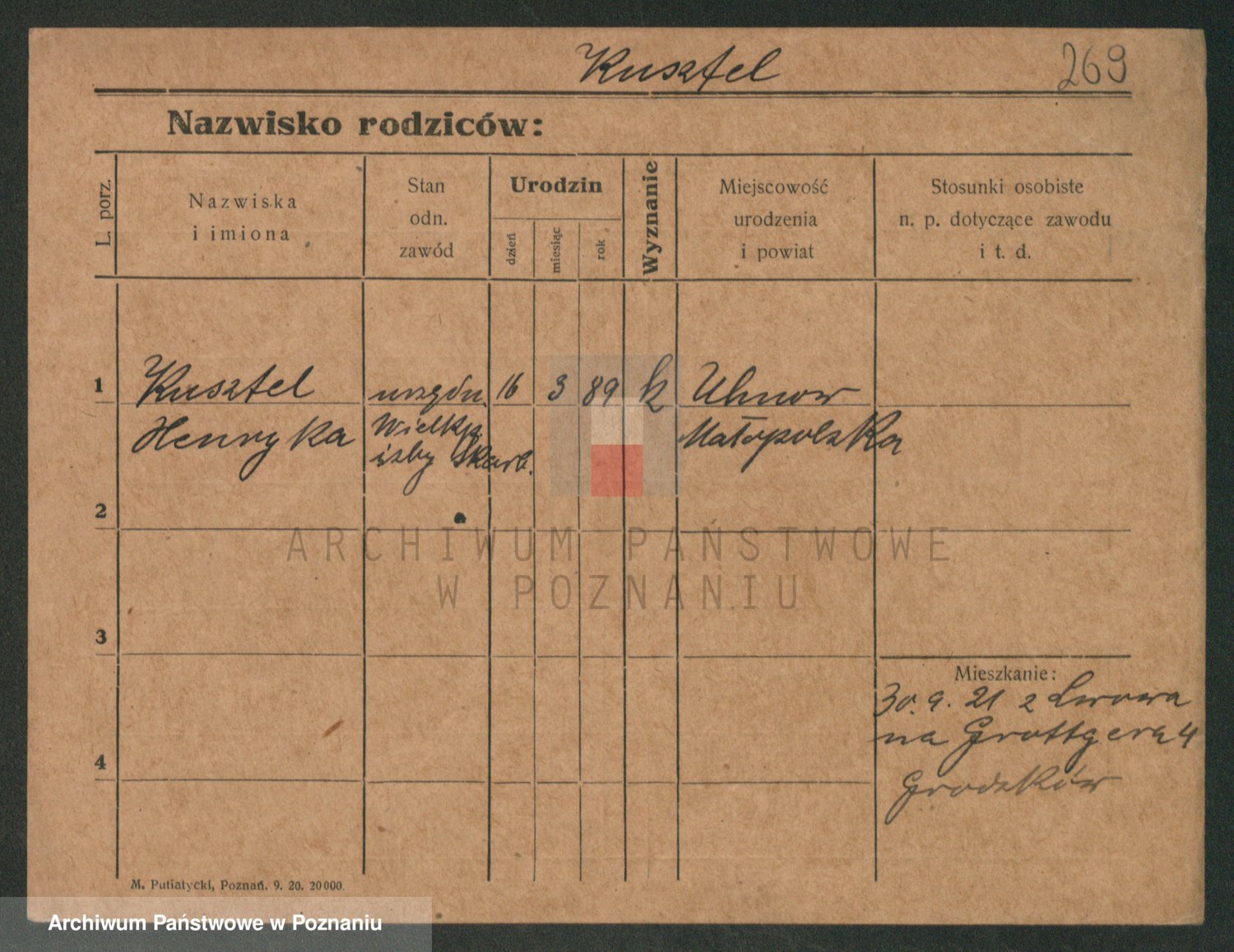 Podgląd karty osobowej dostępny jest po kliknięciu na nazwisko lub ikonkę karty. Można dokonywać powiększenia (ikony na górze) lub przechodzić między kolejnymi skanami (strzałki po bokach).