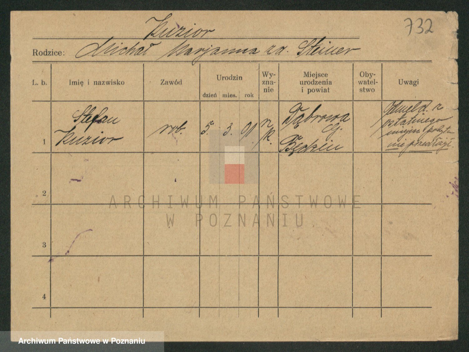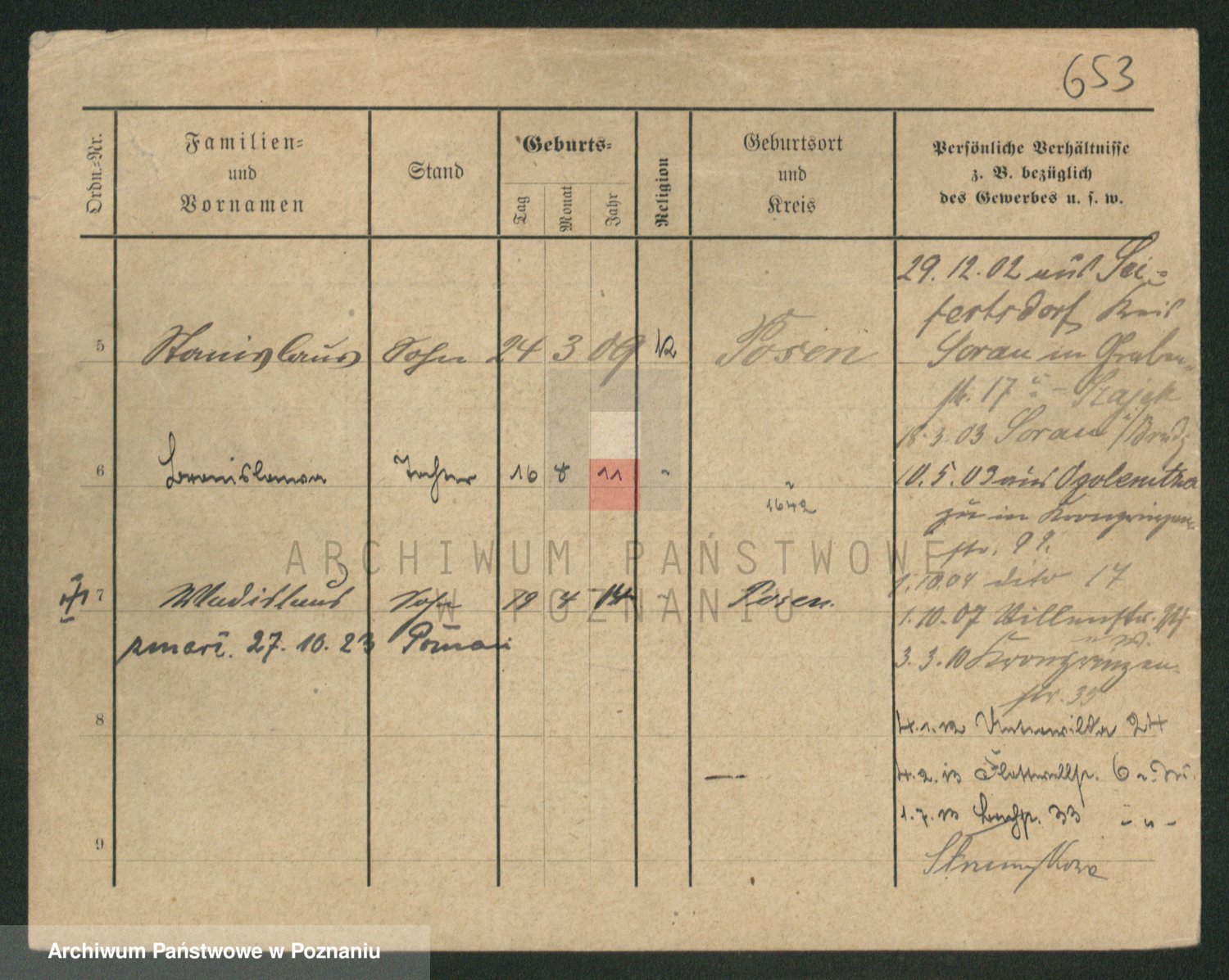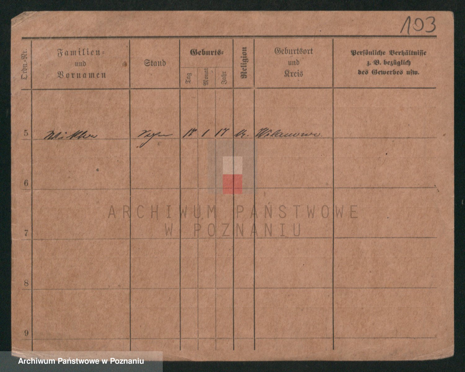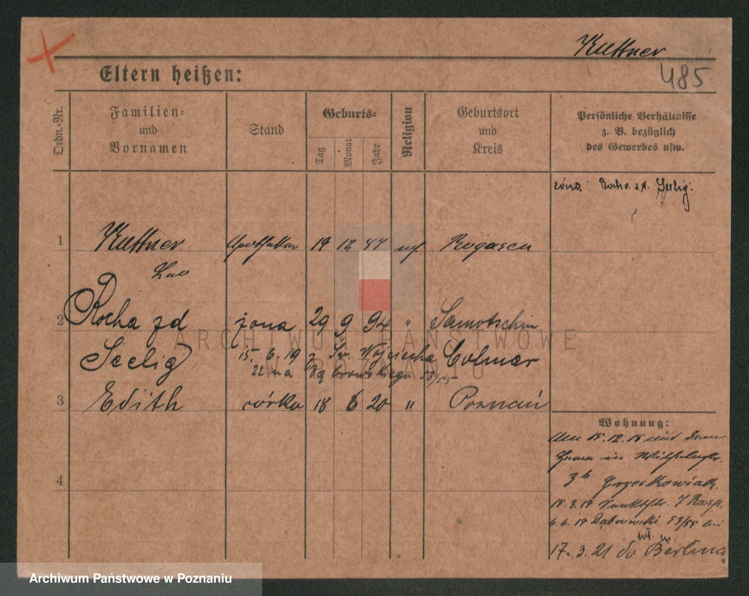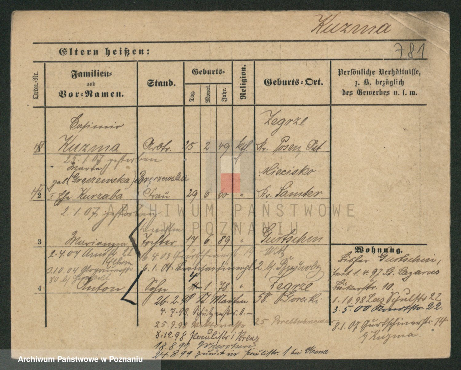 Podgląd karty osobowej dostępny jest po kliknięciu na nazwisko lub ikonkę karty. Można dokonywać powiększenia (ikony na górze) lub przechodzić między kolejnymi skanami (strzałki po bokach).