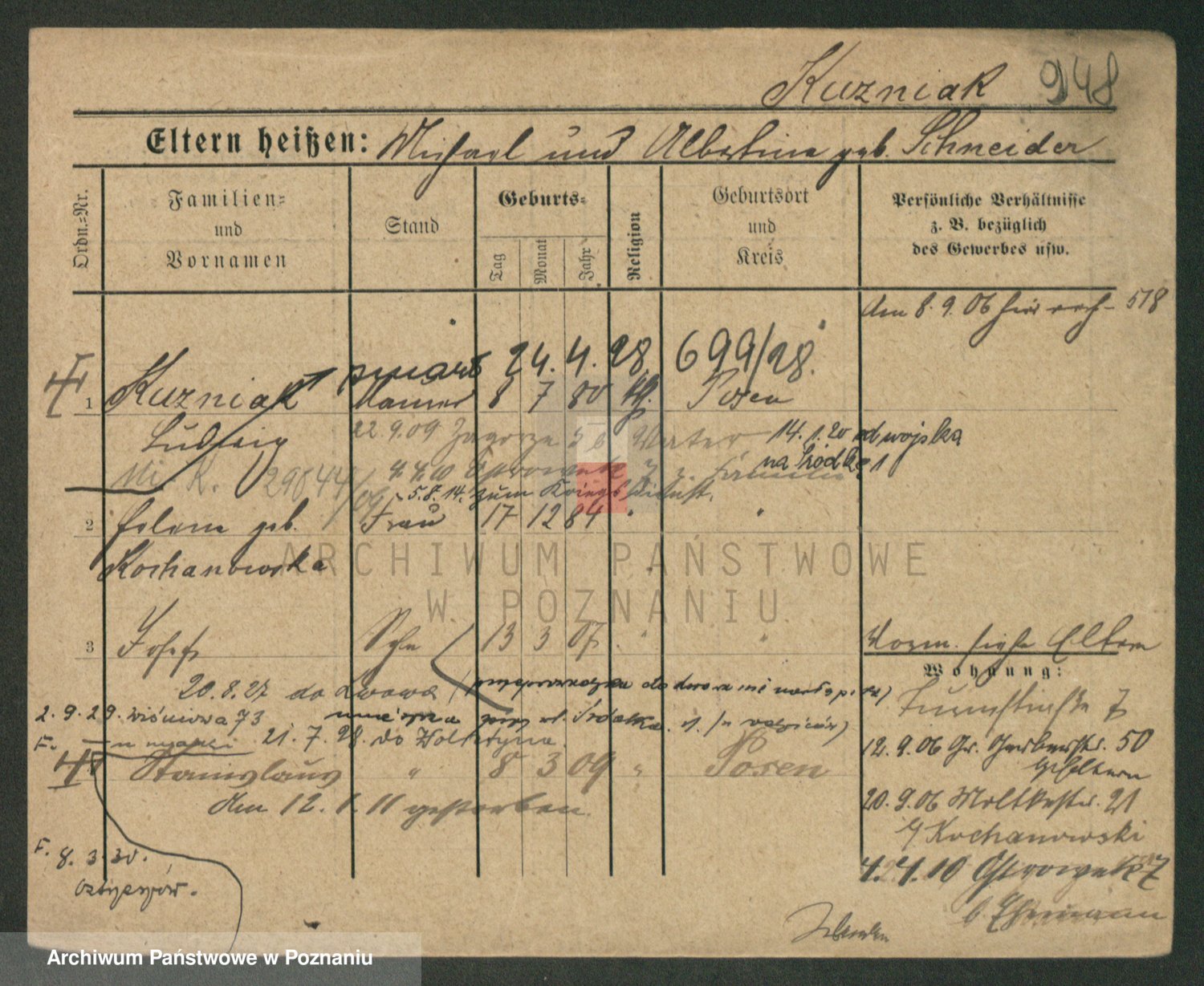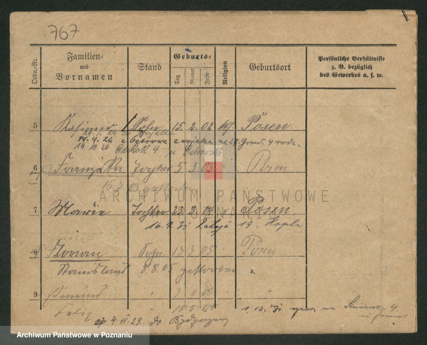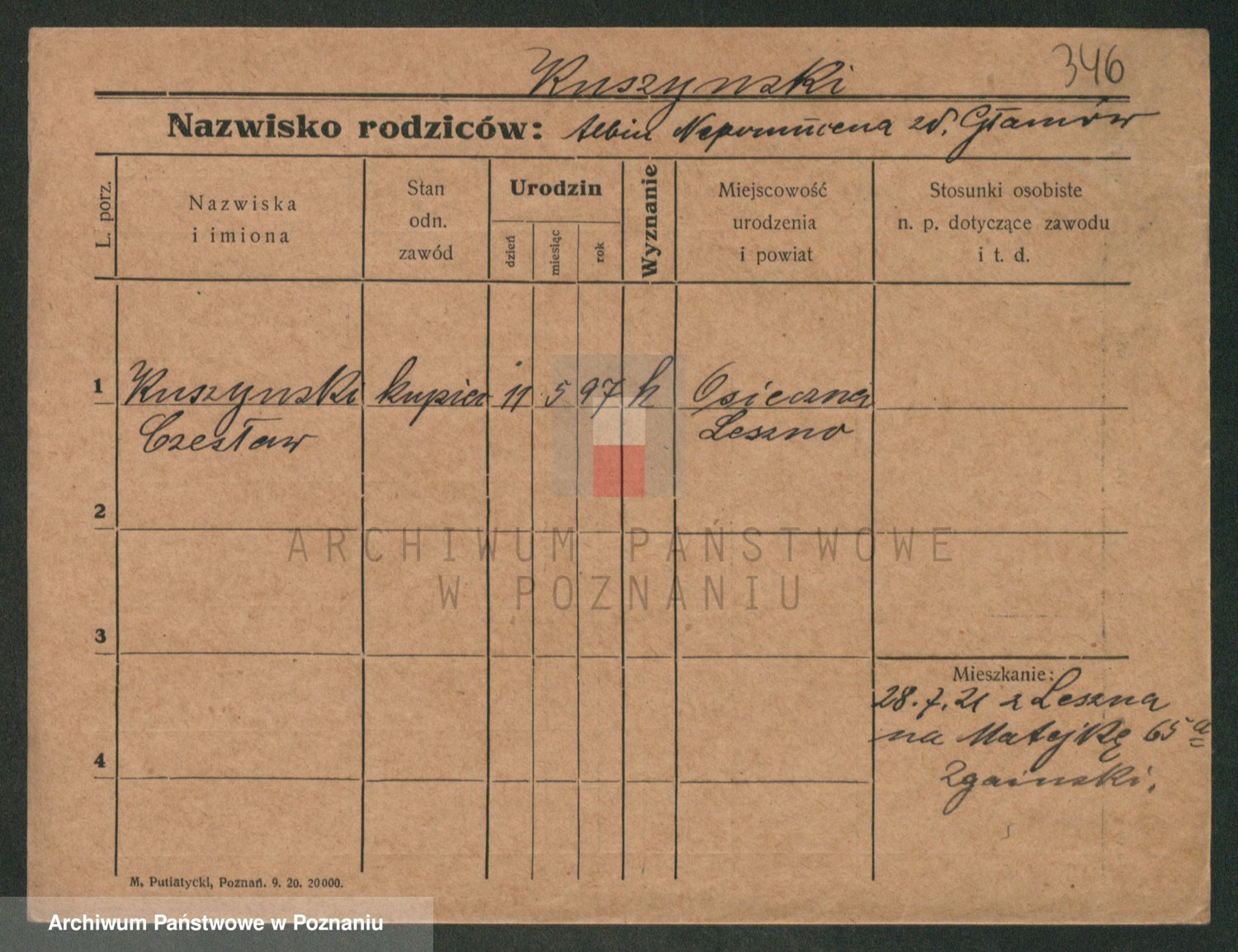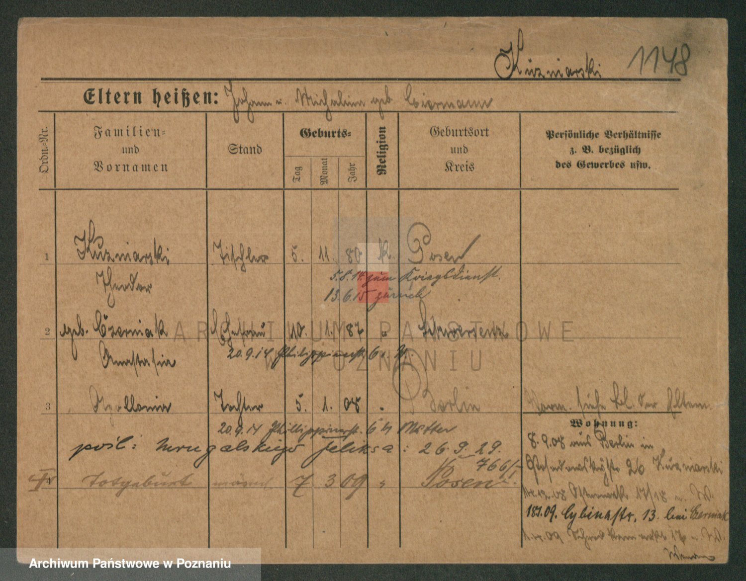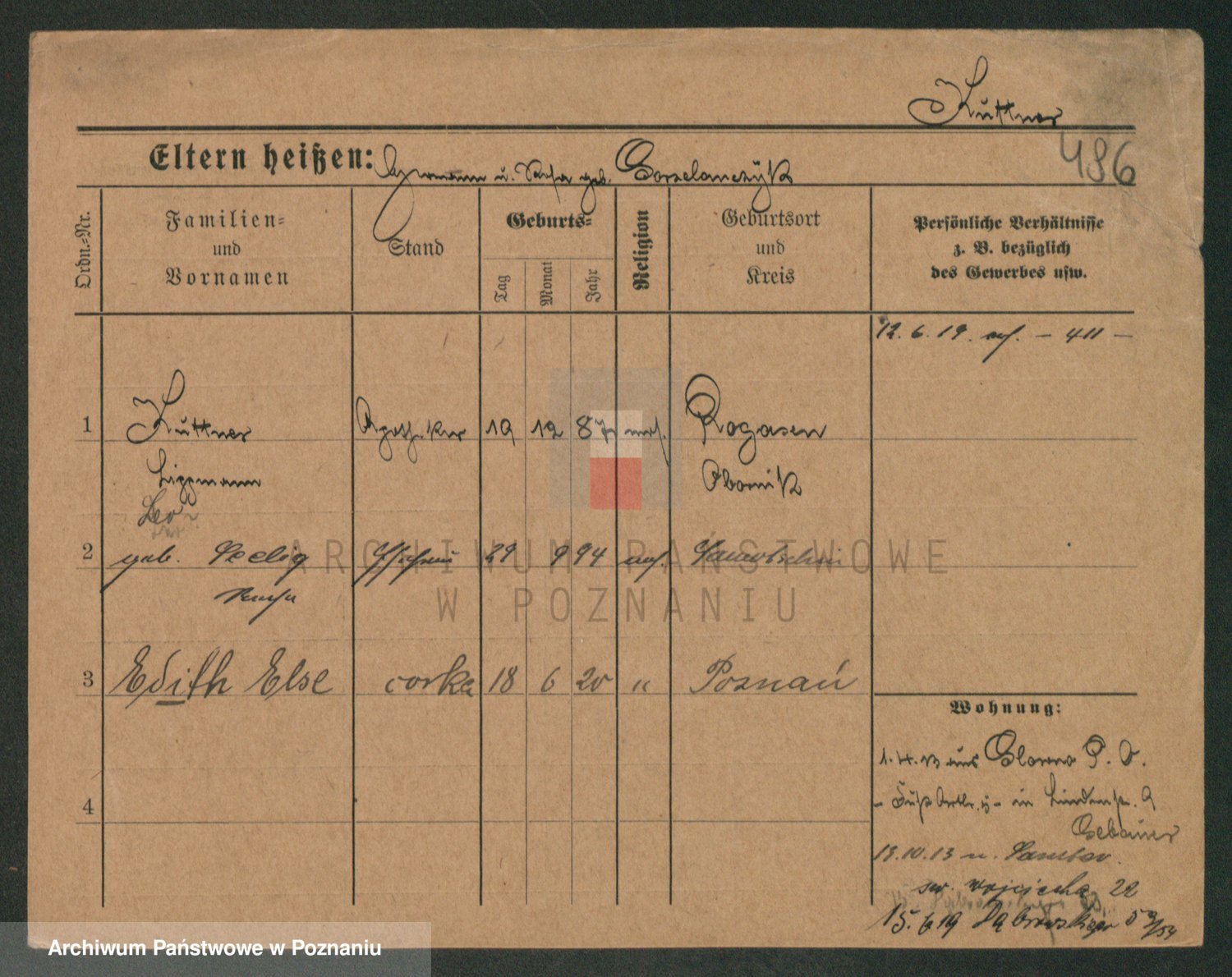 Podgląd karty osobowej dostępny jest po kliknięciu na nazwisko lub ikonkę karty. Można dokonywać powiększenia (ikony na górze) lub przechodzić między kolejnymi skanami (strzałki po bokach).