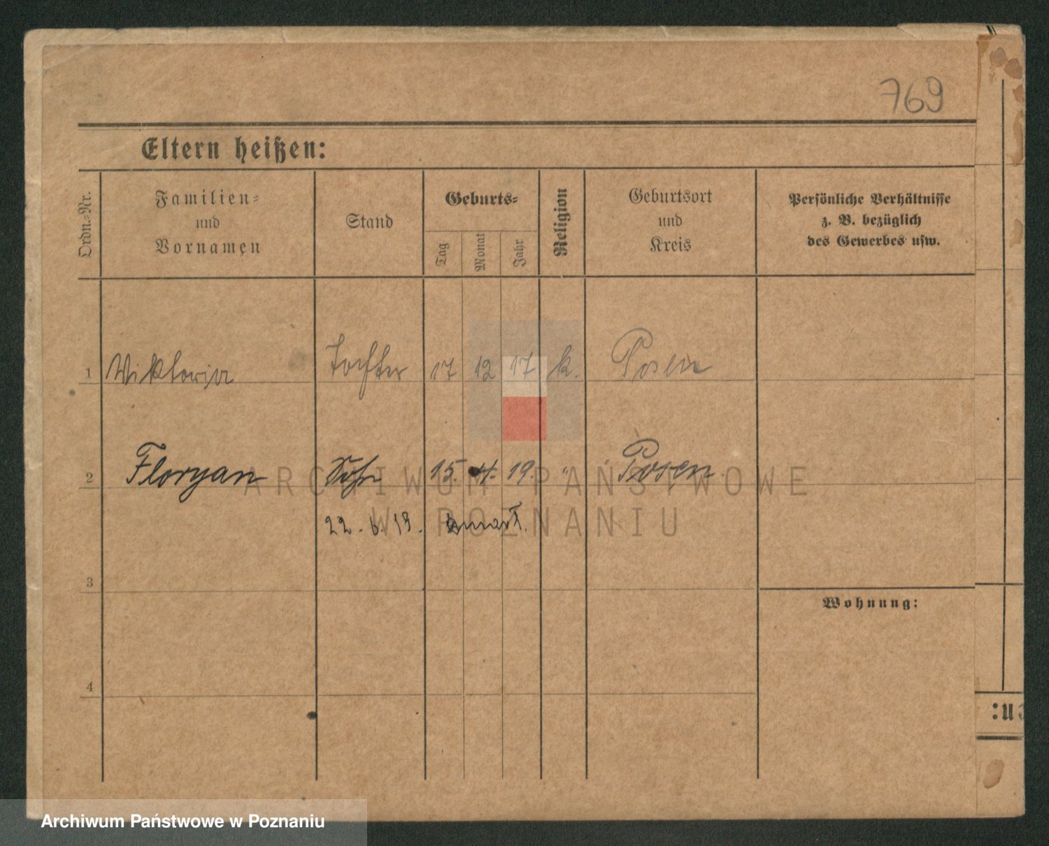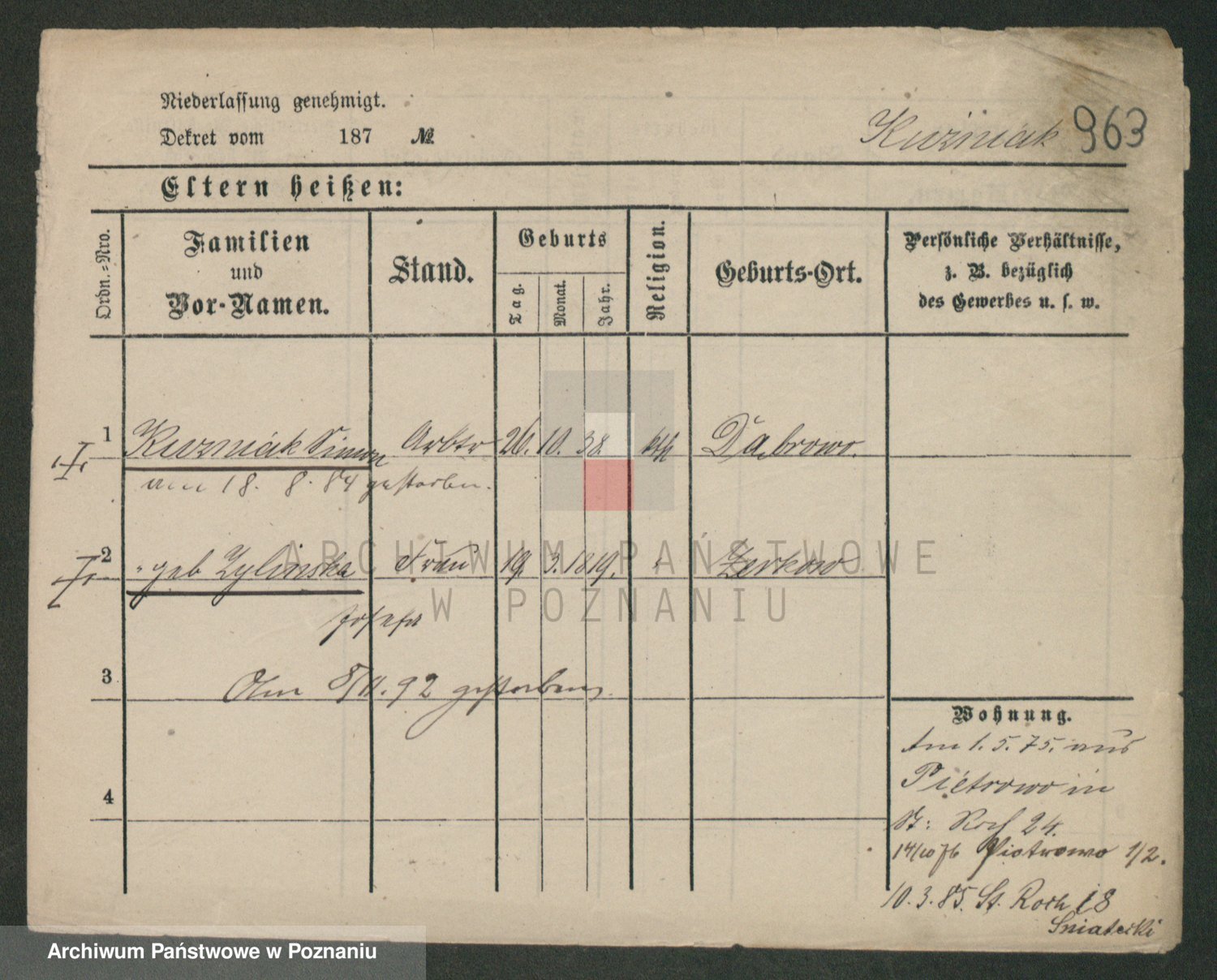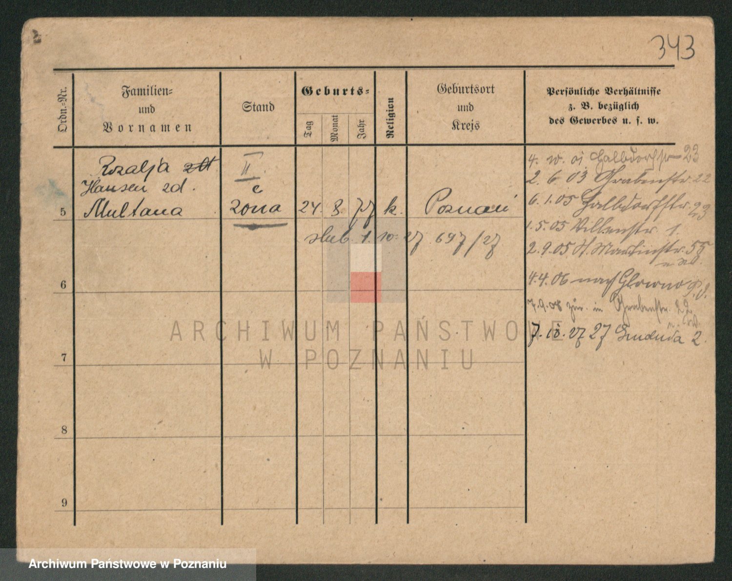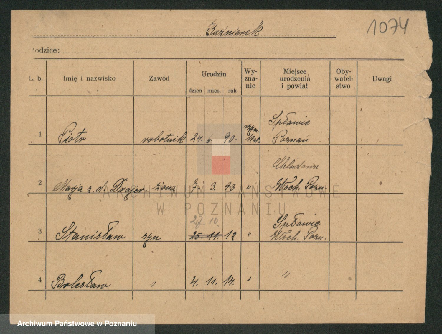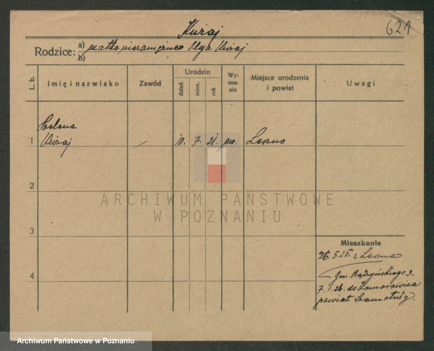 Podgląd karty osobowej dostępny jest po kliknięciu na nazwisko lub ikonkę karty. Można dokonywać powiększenia (ikony na górze) lub przechodzić między kolejnymi skanami (strzałki po bokach).