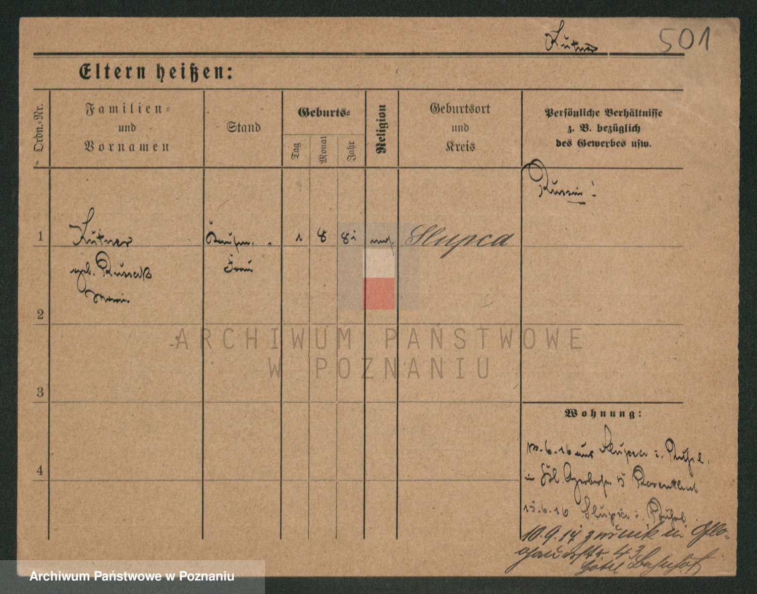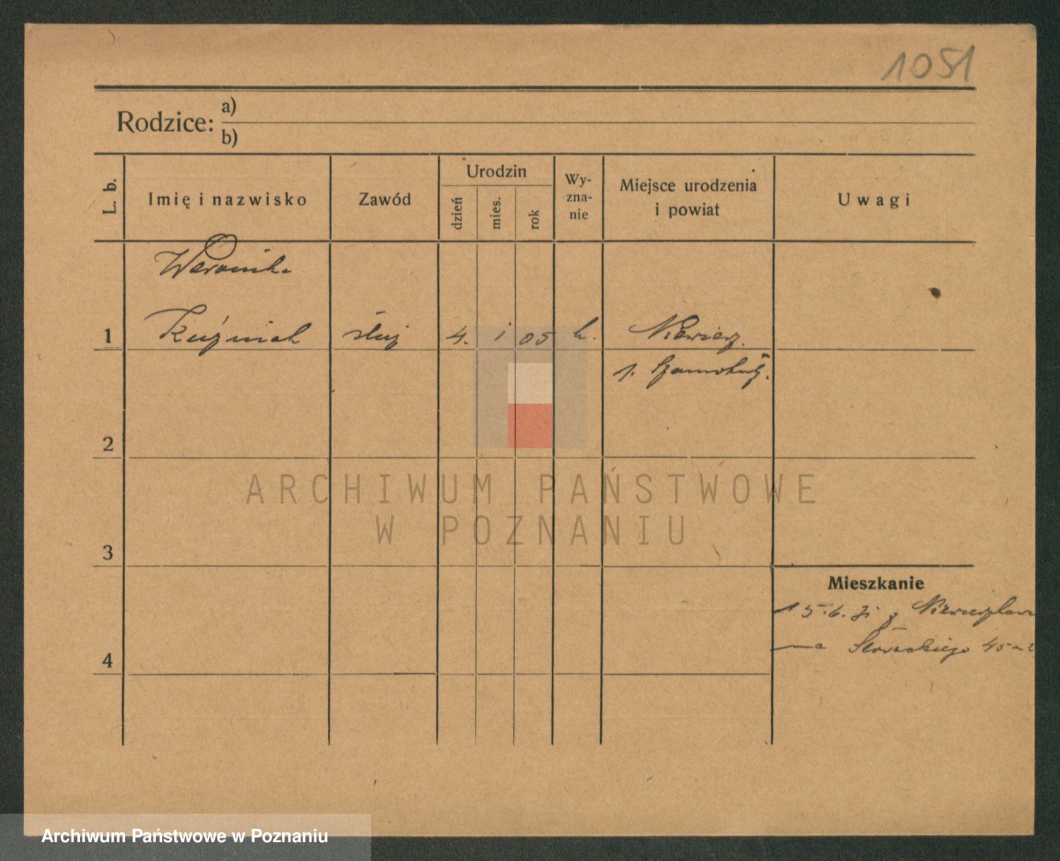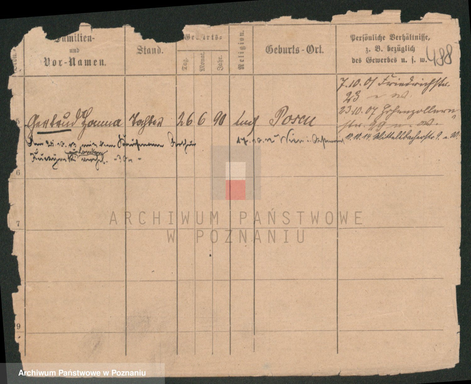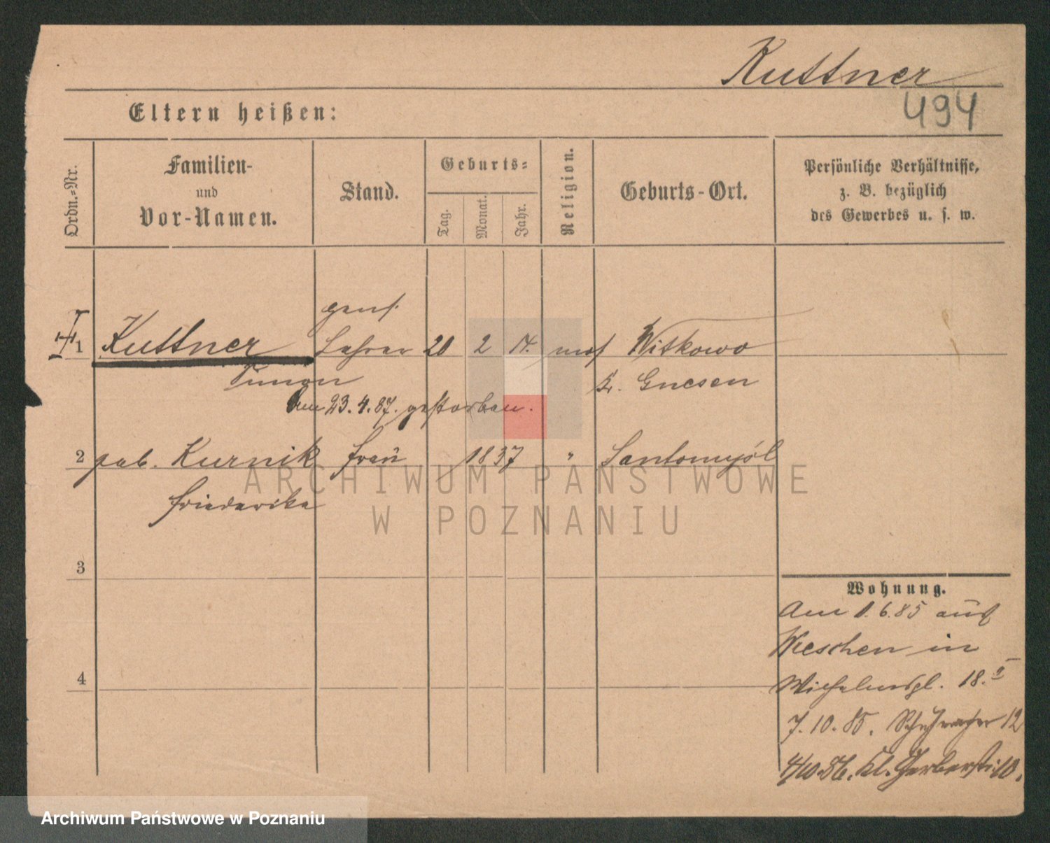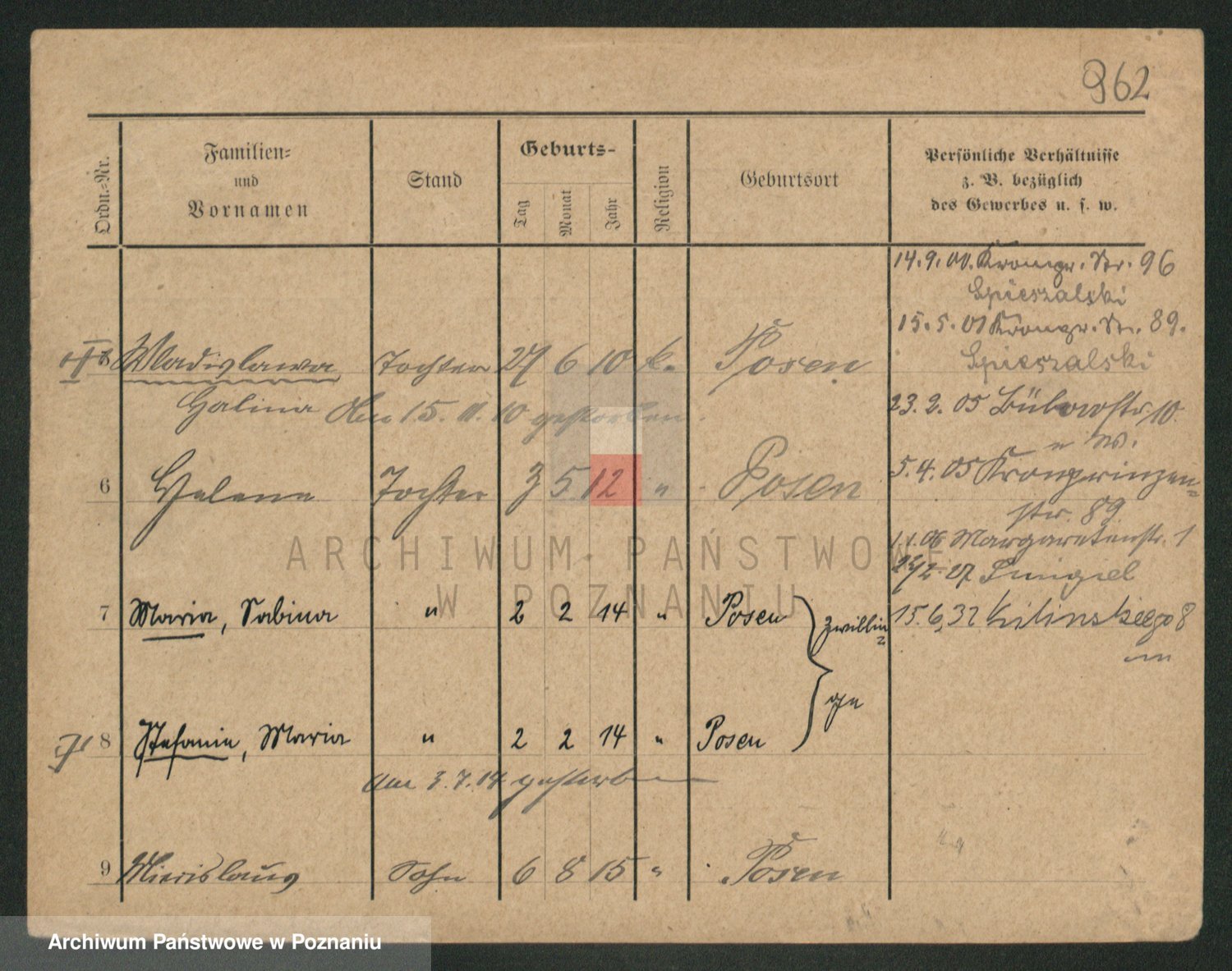 Podgląd karty osobowej dostępny jest po kliknięciu na nazwisko lub ikonkę karty. Można dokonywać powiększenia (ikony na górze) lub przechodzić między kolejnymi skanami (strzałki po bokach).