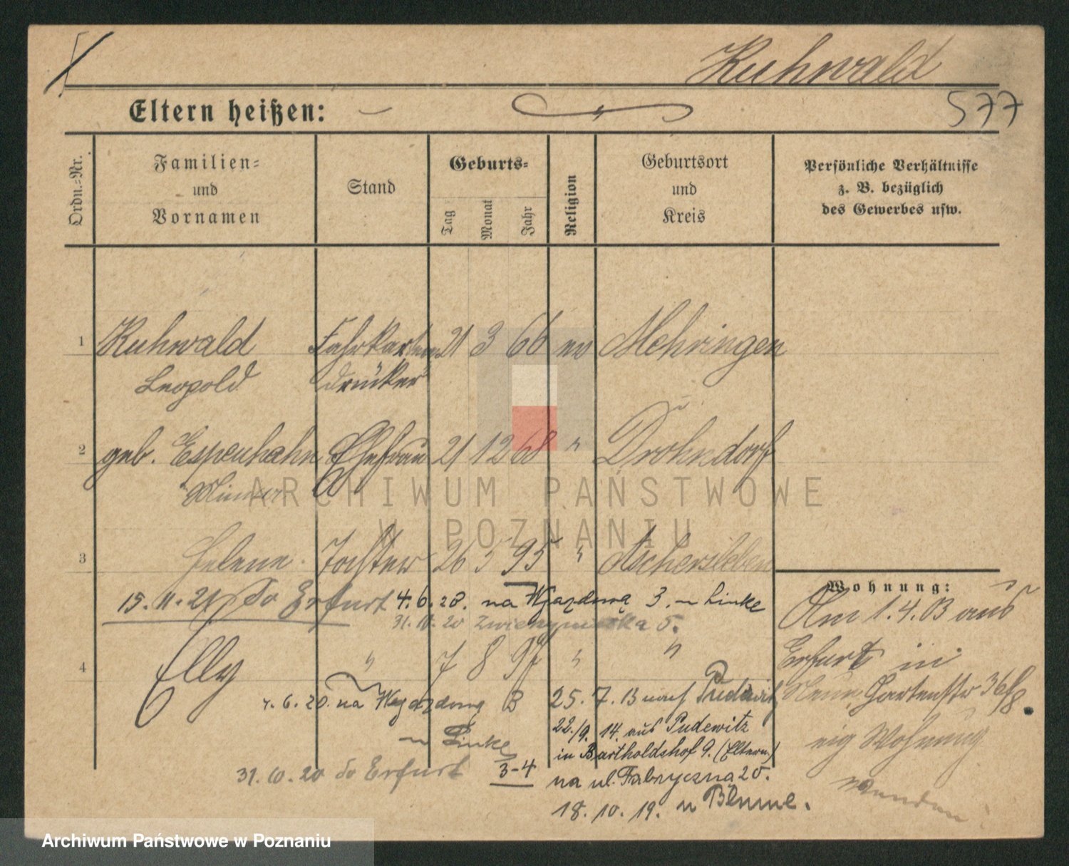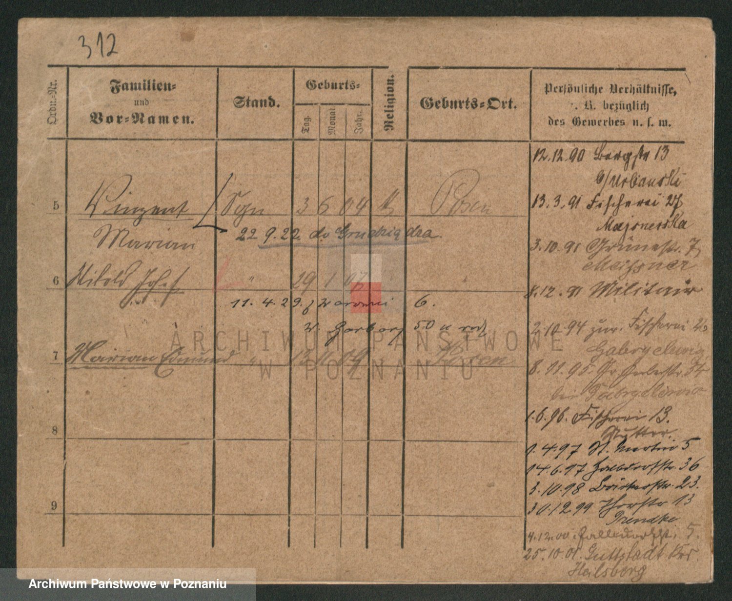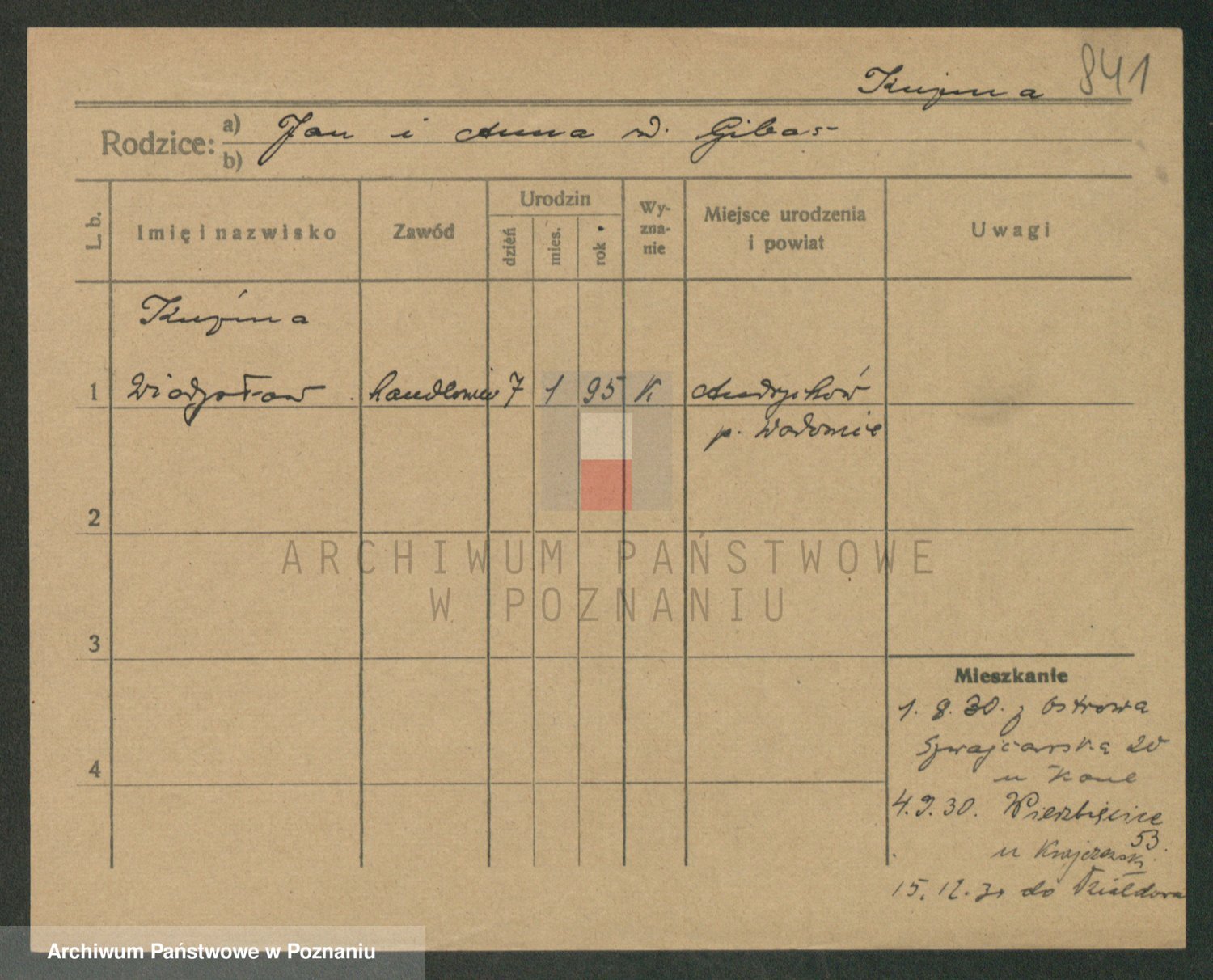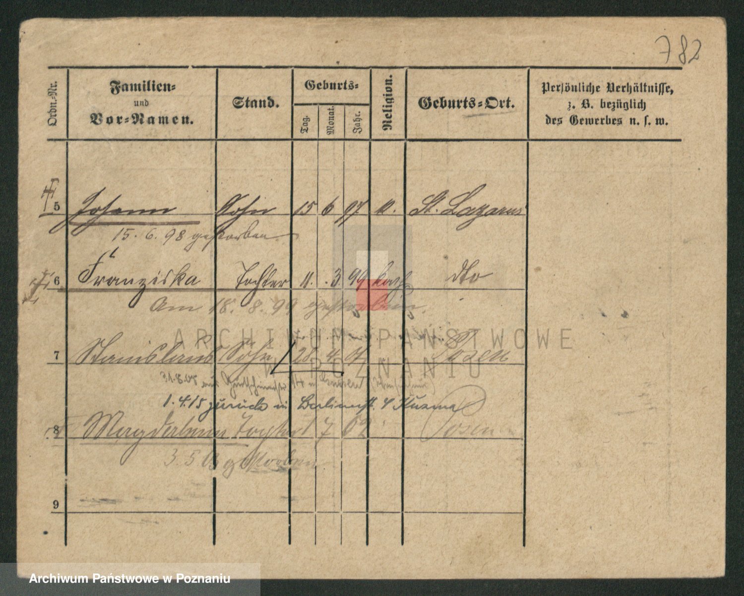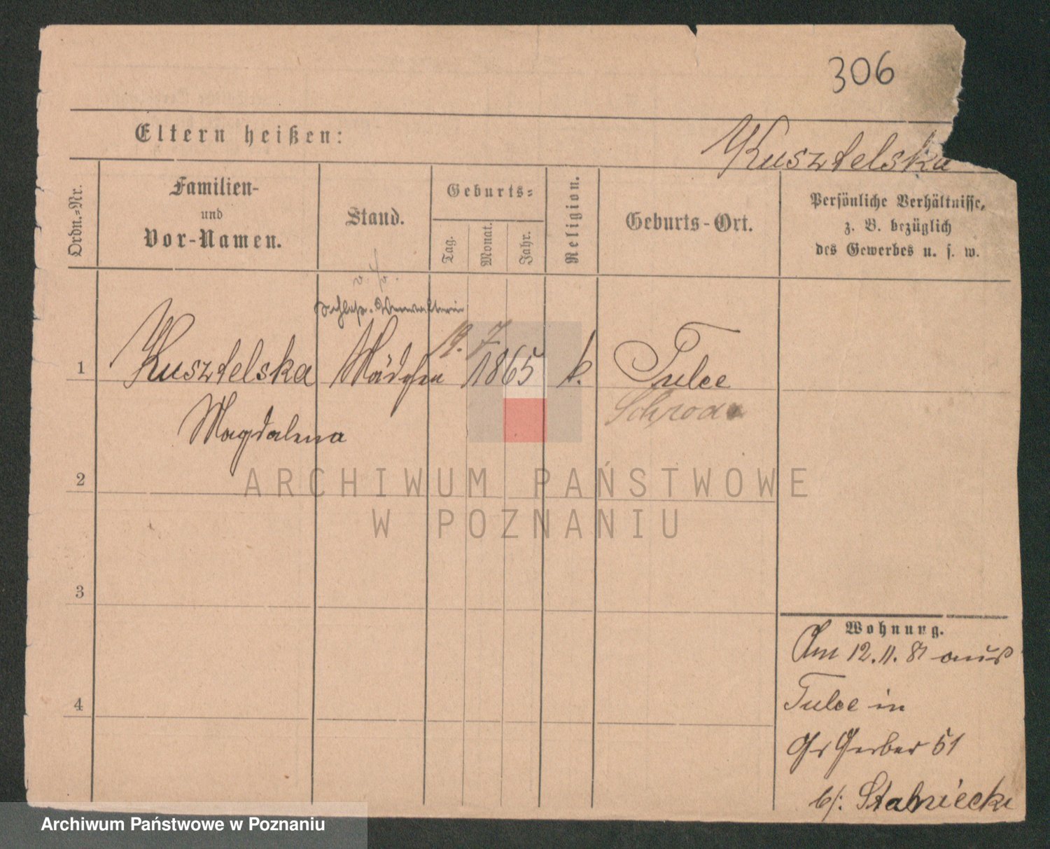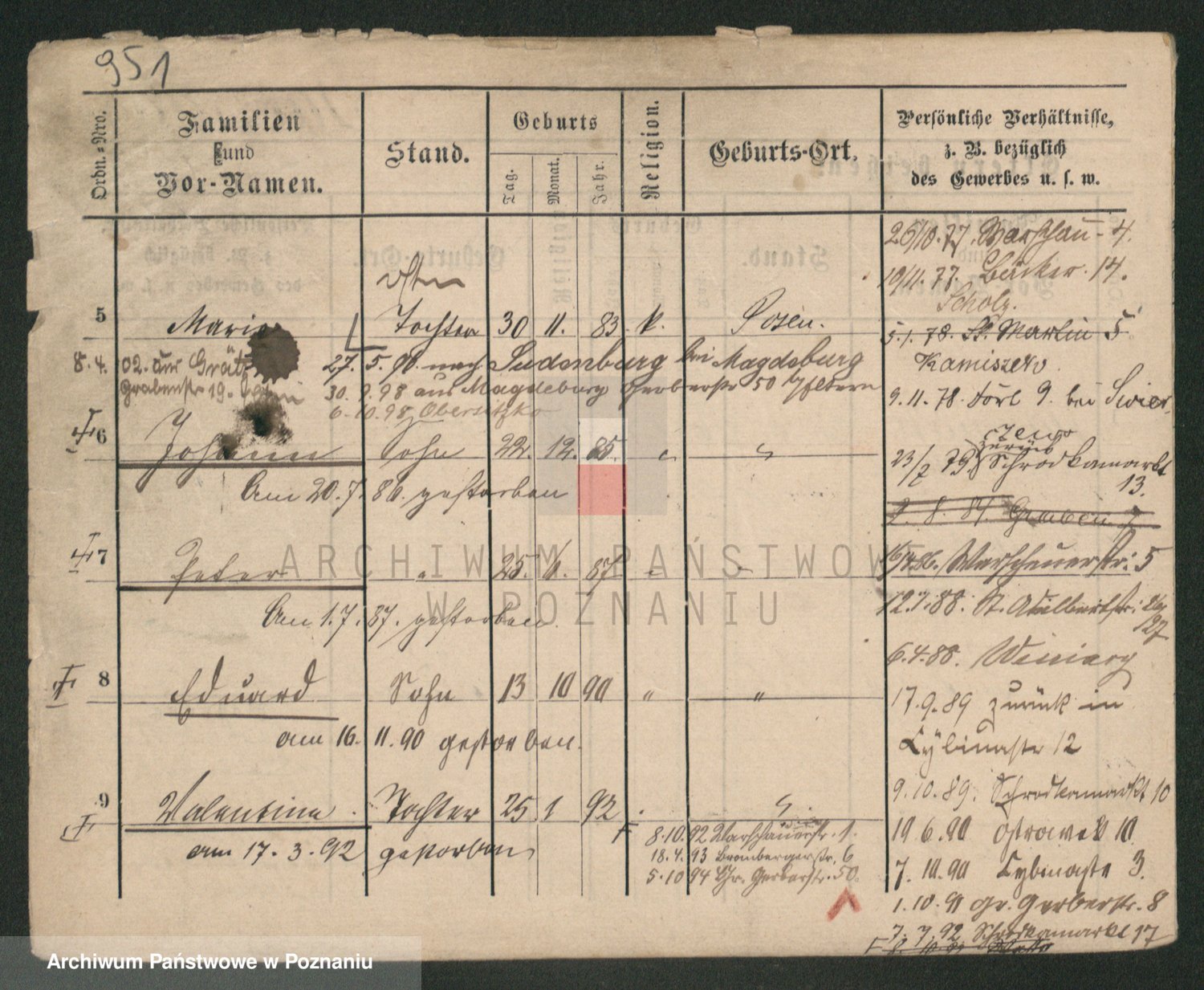 Podgląd karty osobowej dostępny jest po kliknięciu na nazwisko lub ikonkę karty. Można dokonywać powiększenia (ikony na górze) lub przechodzić między kolejnymi skanami (strzałki po bokach).