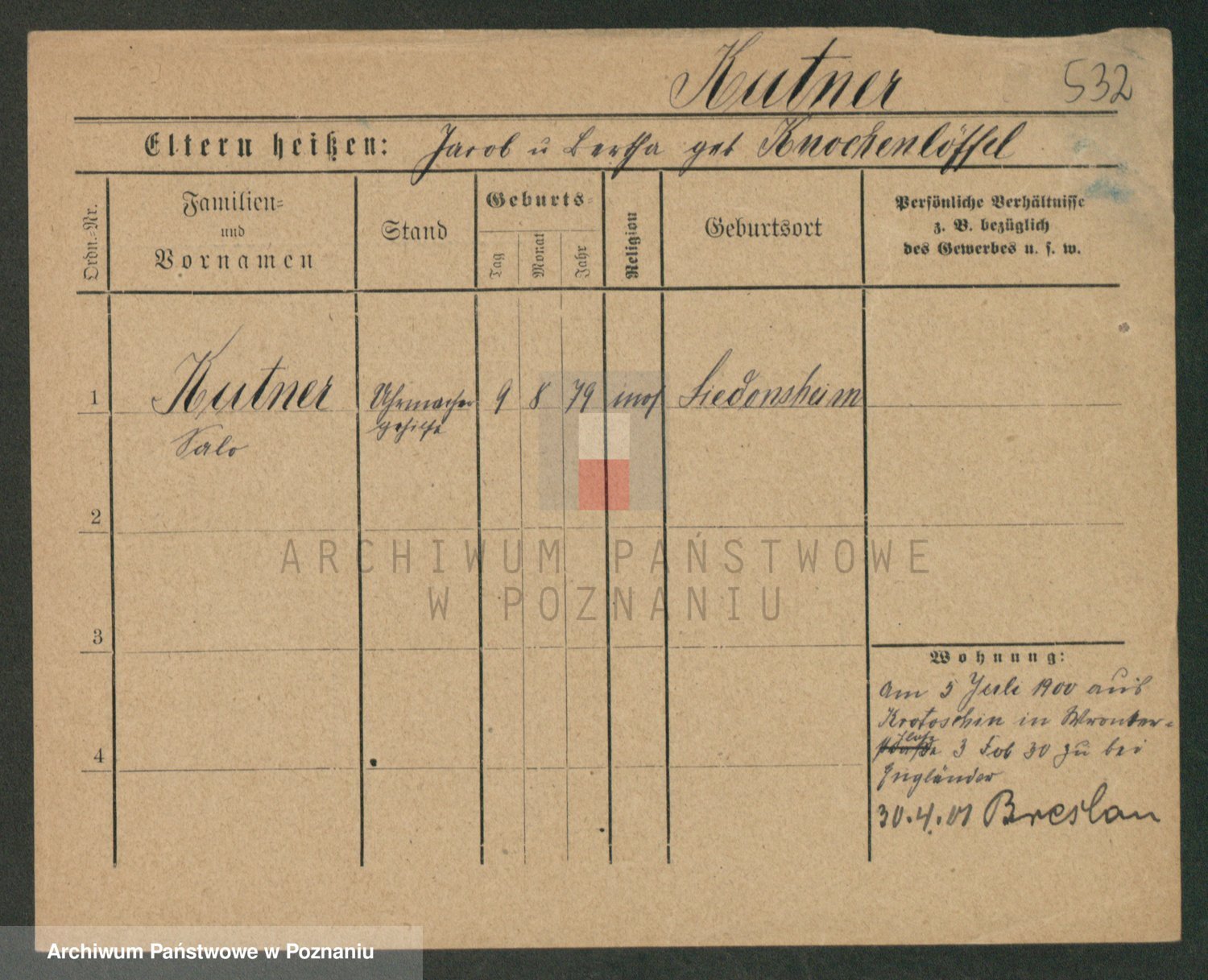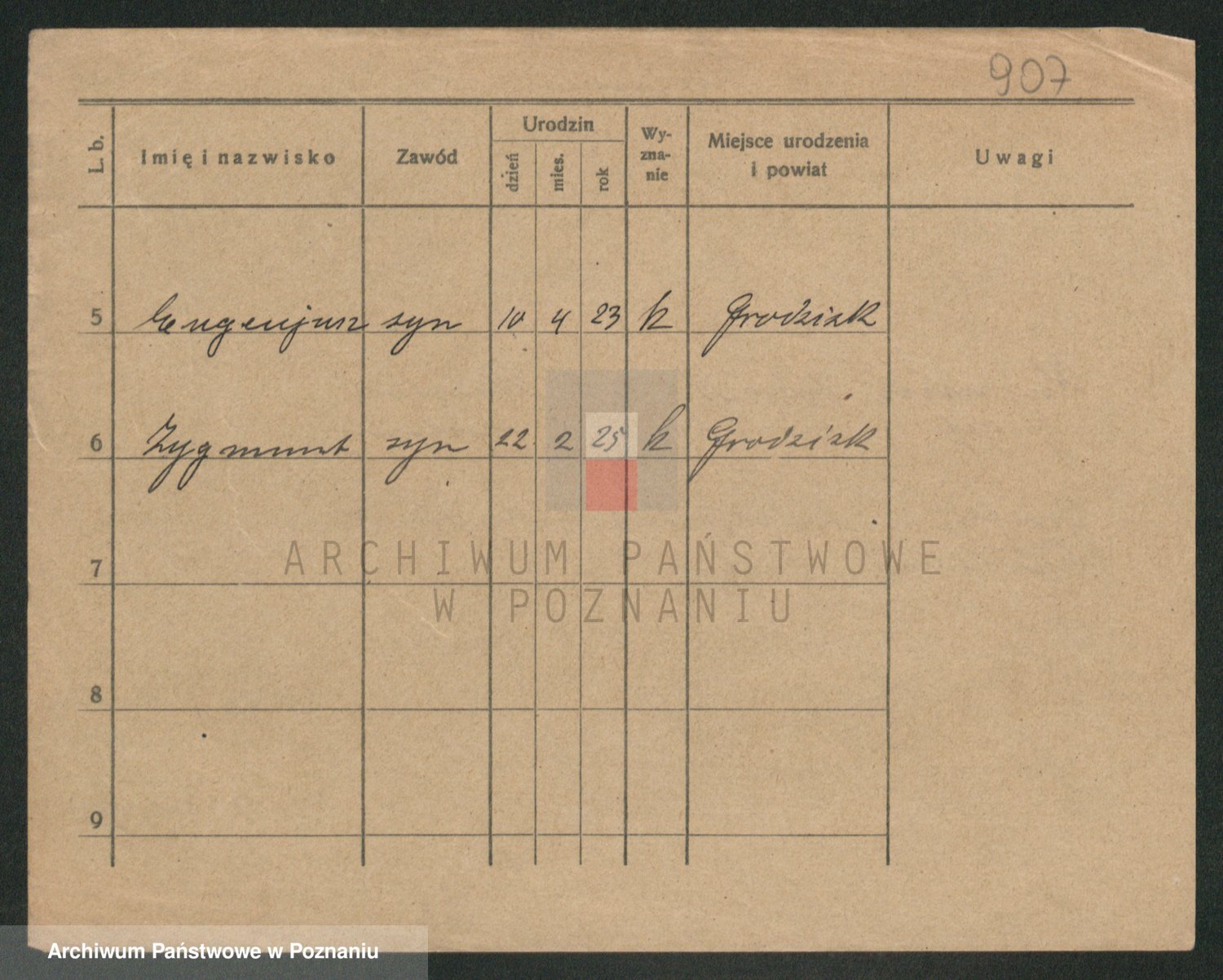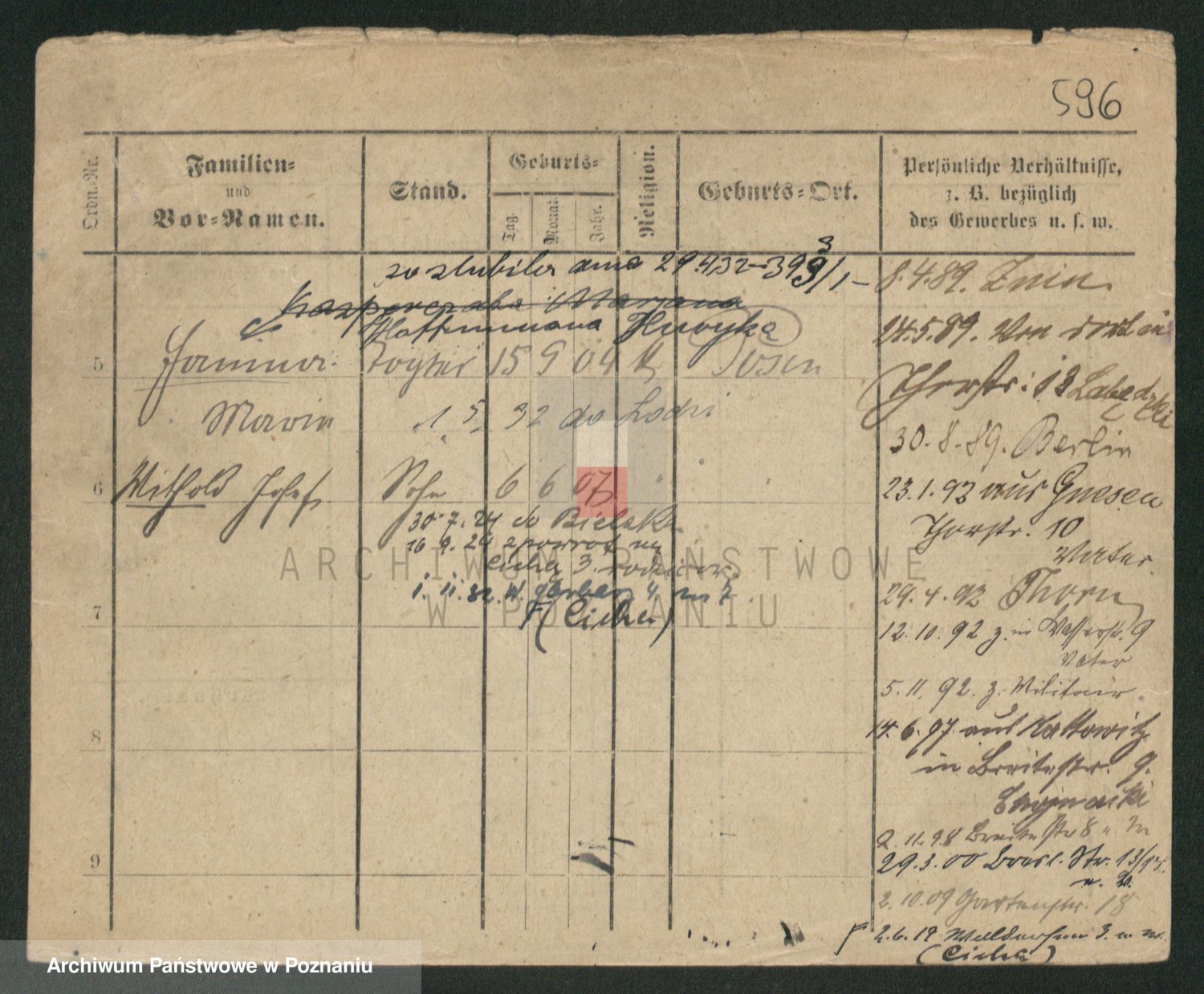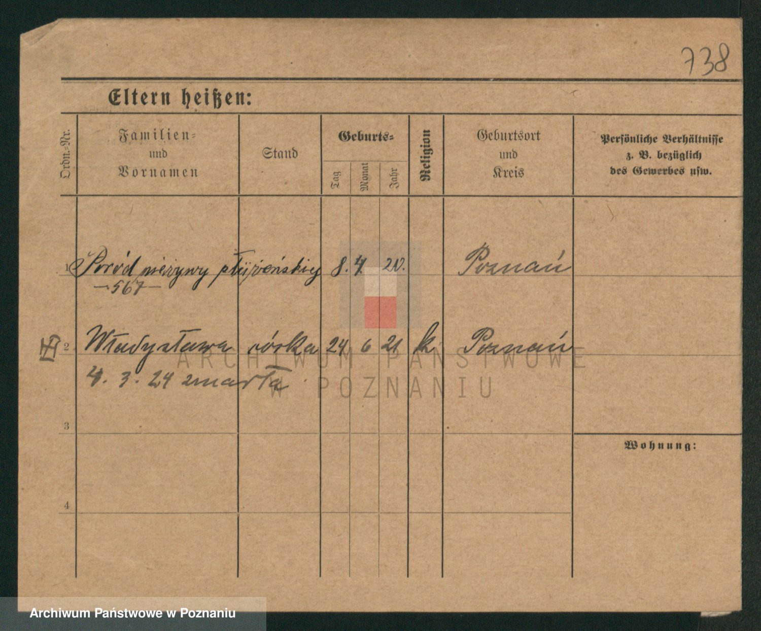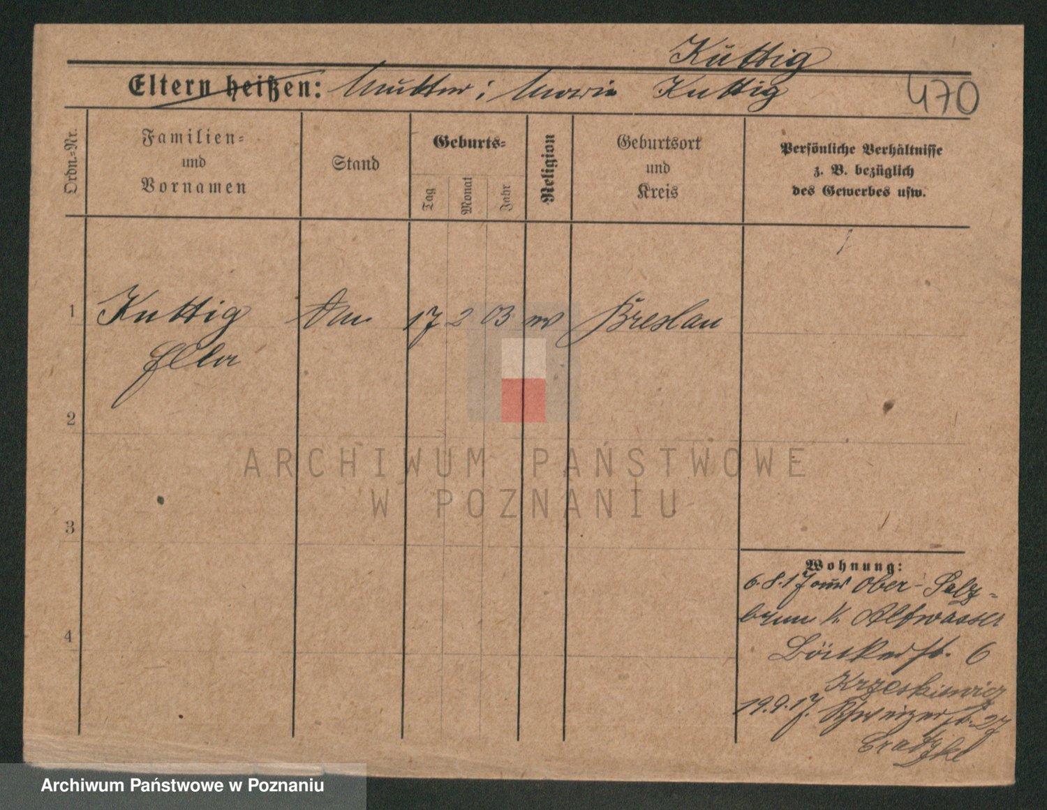Podgląd karty osobowej dostępny jest po kliknięciu na nazwisko lub ikonkę karty. Można dokonywać powiększenia (ikony na górze) lub przechodzić między kolejnymi skanami (strzałki po bokach).
