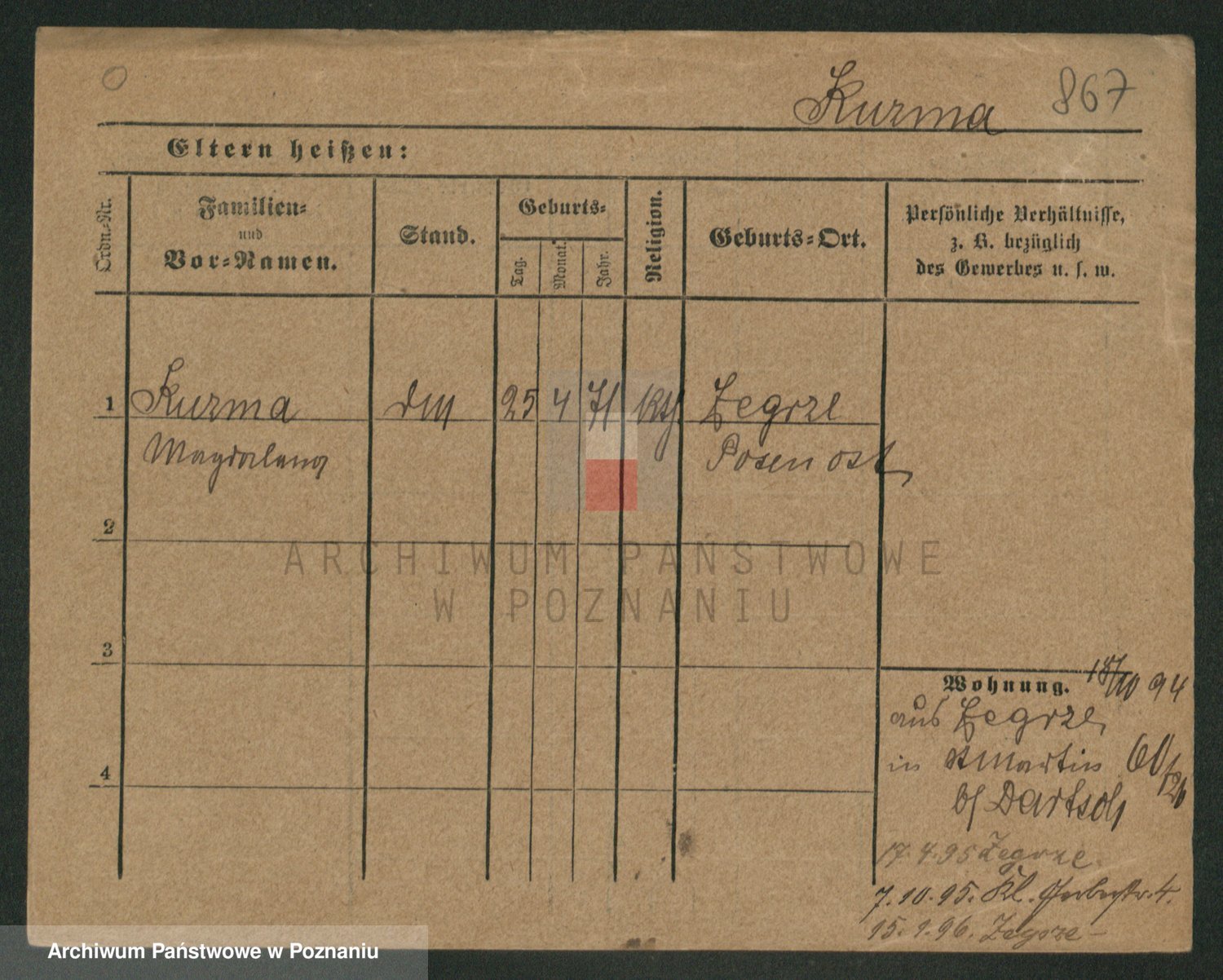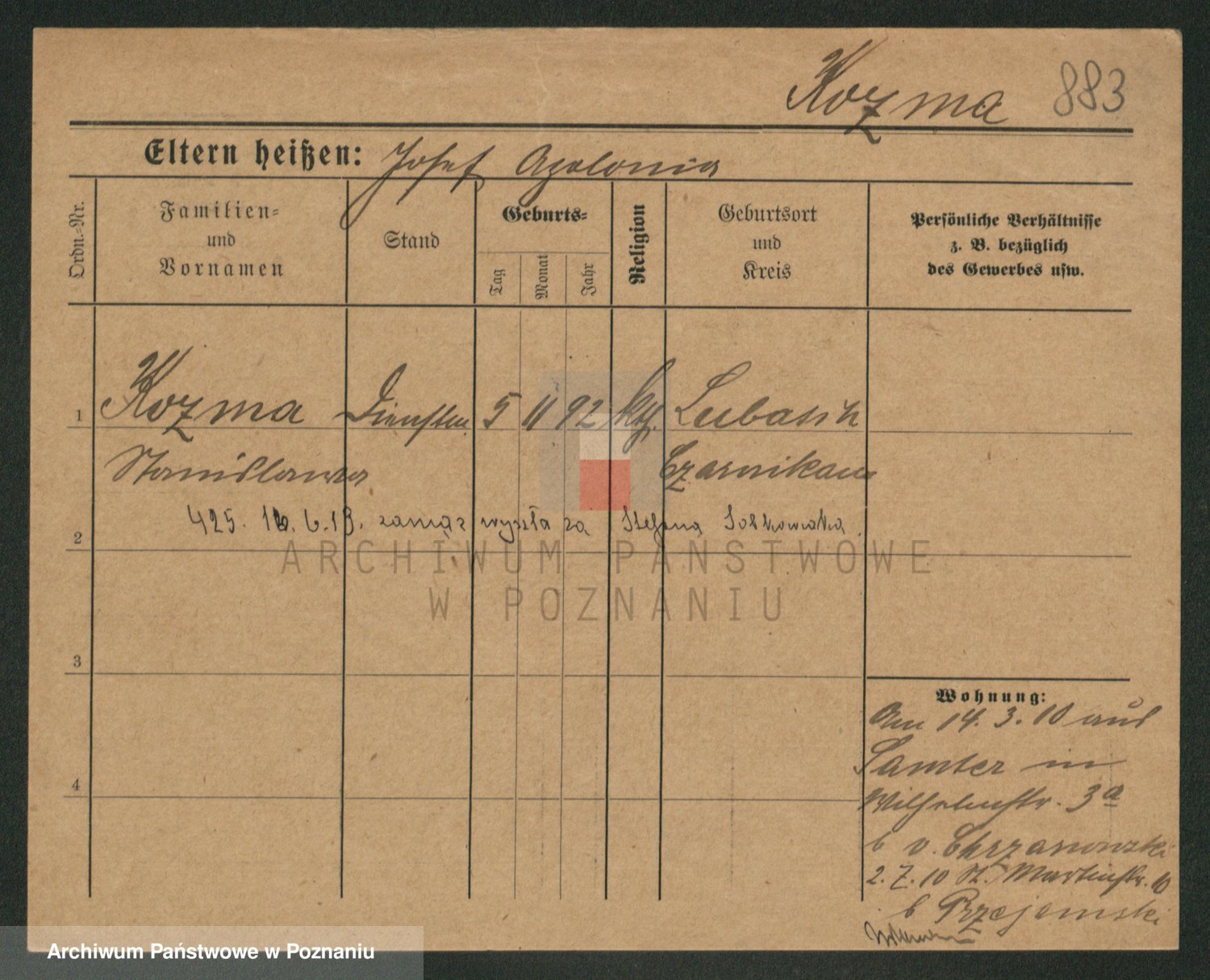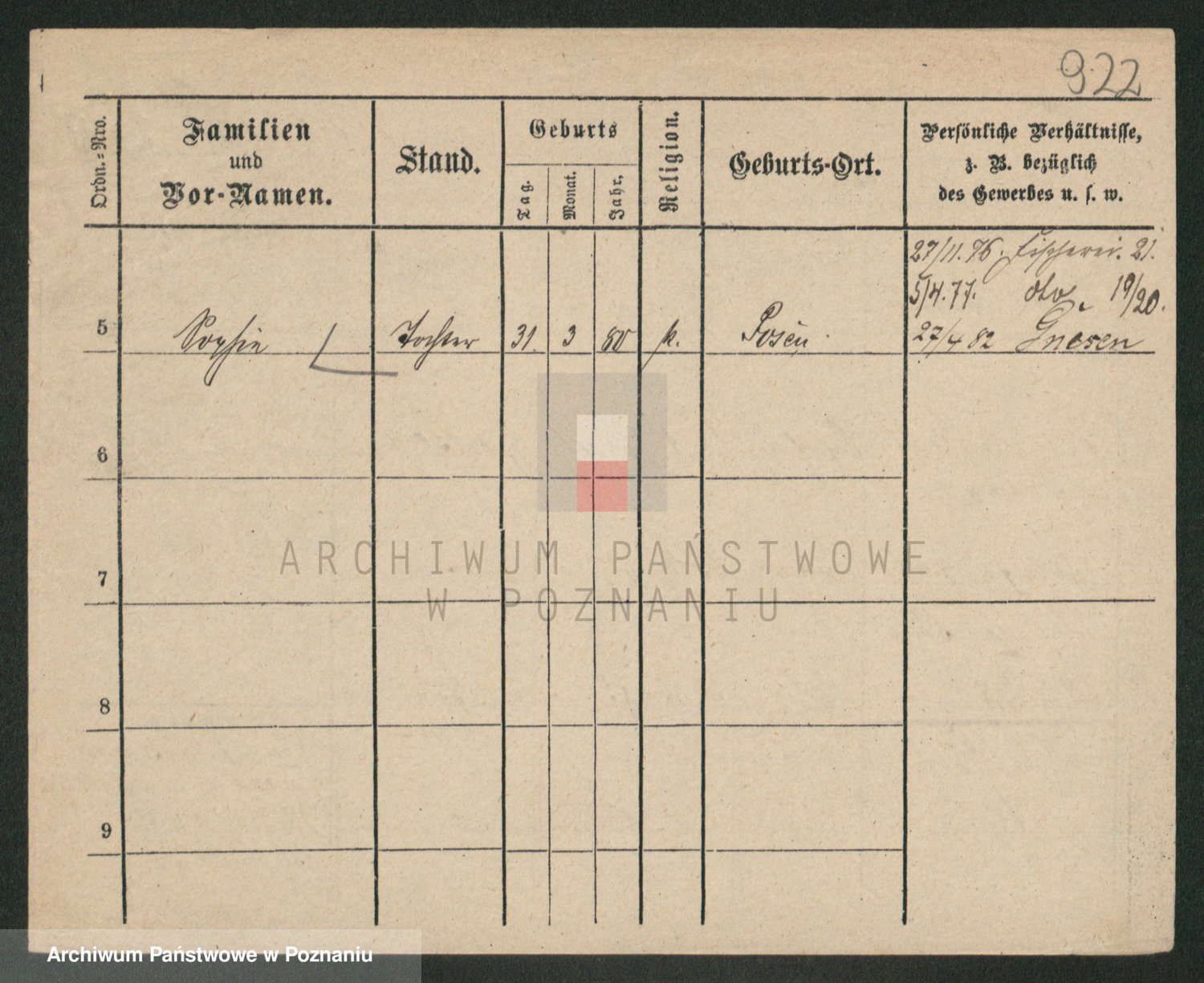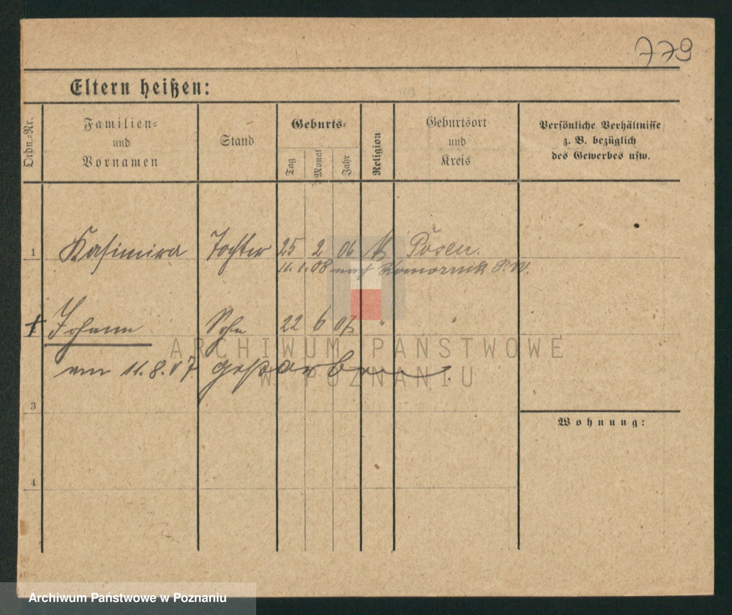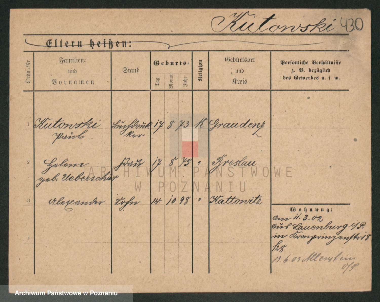 Podgląd karty osobowej dostępny jest po kliknięciu na nazwisko lub ikonkę karty. Można dokonywać powiększenia (ikony na górze) lub przechodzić między kolejnymi skanami (strzałki po bokach).