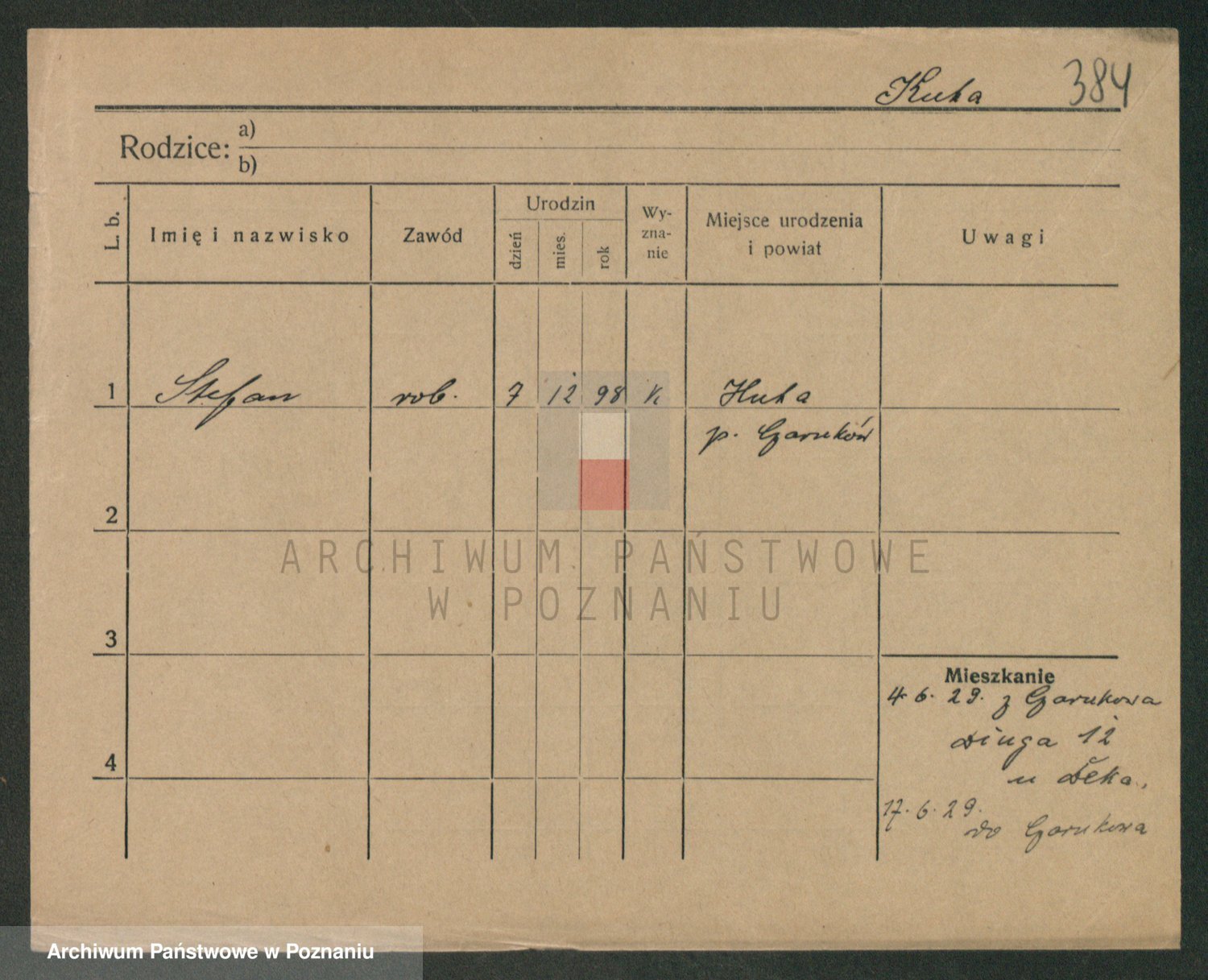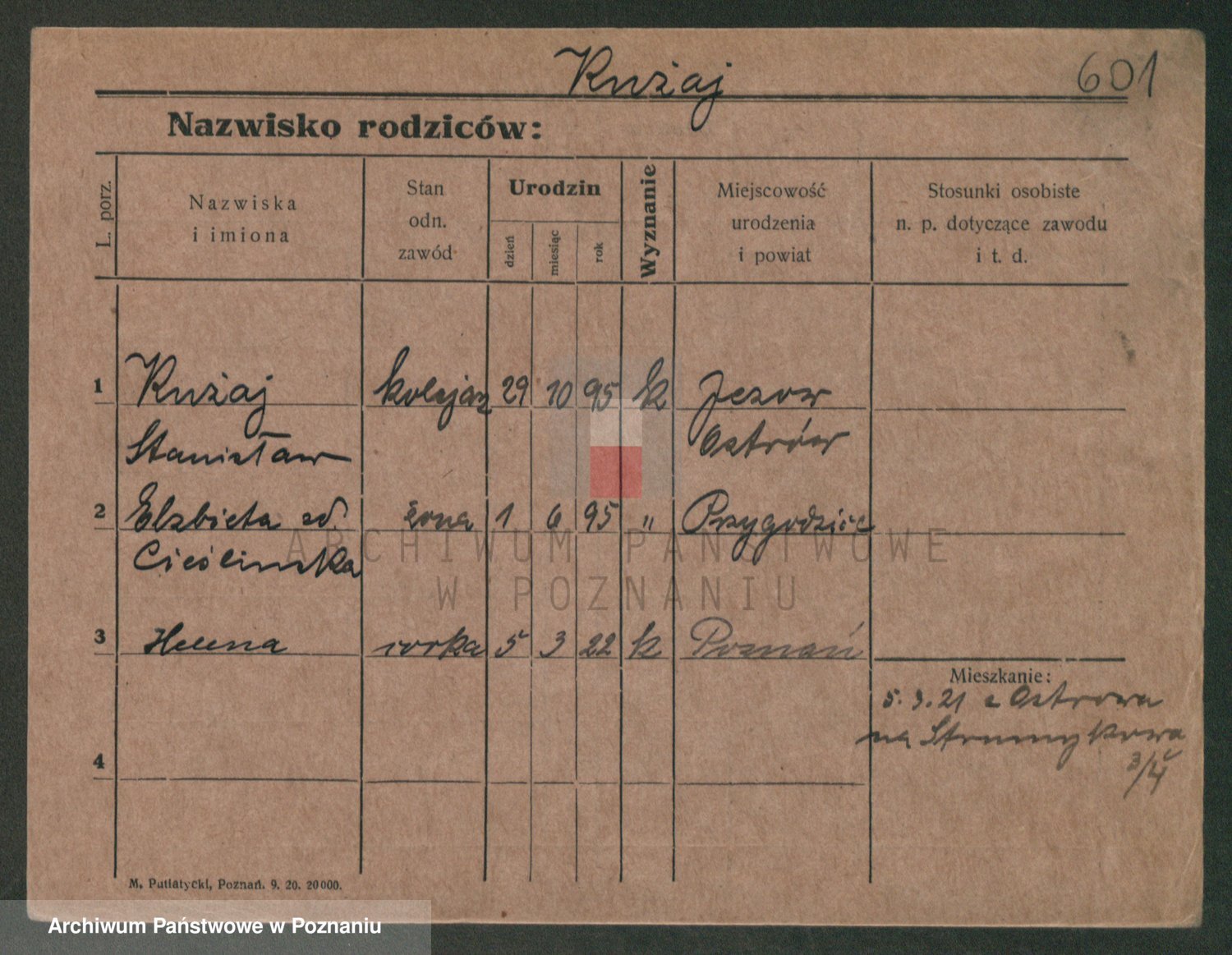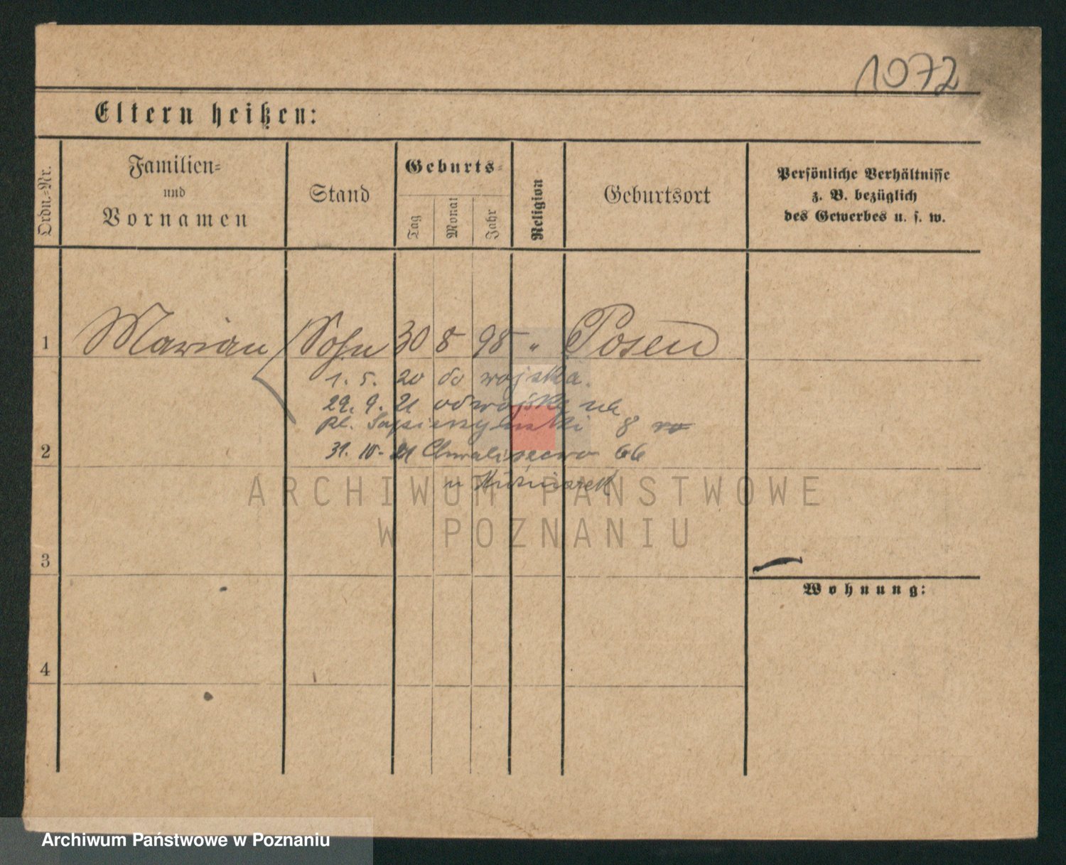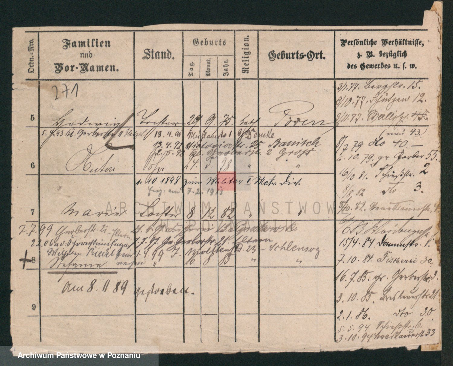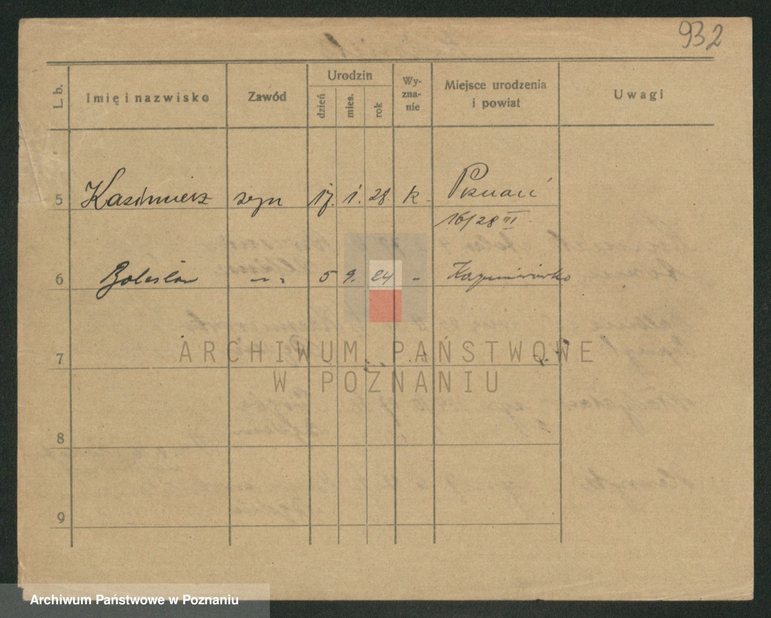 Podgląd karty osobowej dostępny jest po kliknięciu na nazwisko lub ikonkę karty. Można dokonywać powiększenia (ikony na górze) lub przechodzić między kolejnymi skanami (strzałki po bokach).