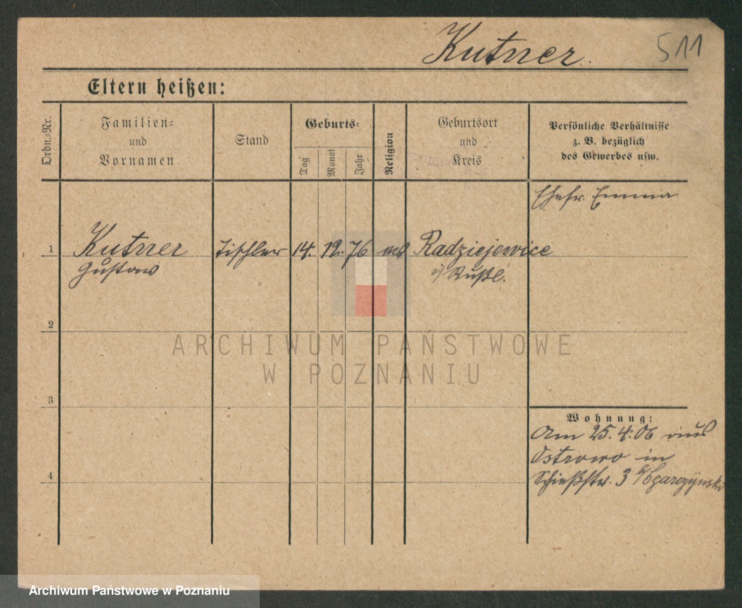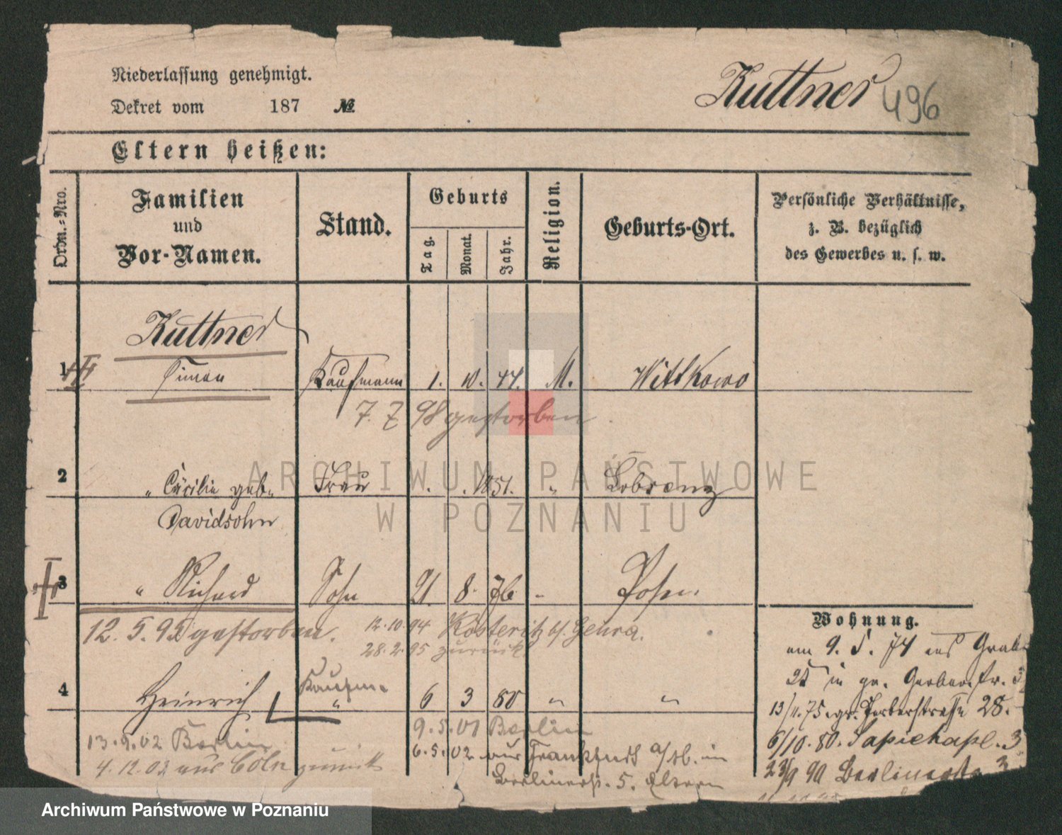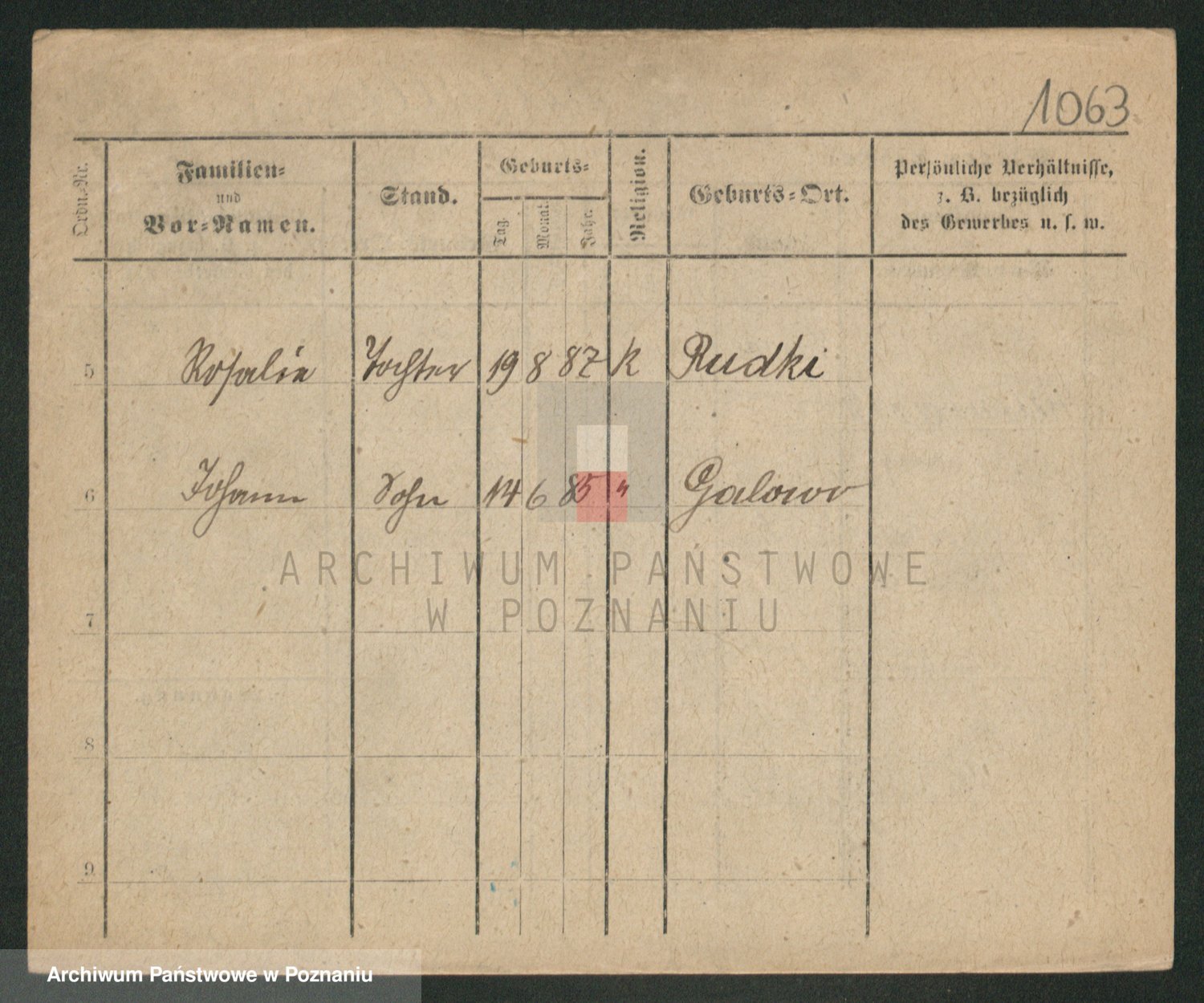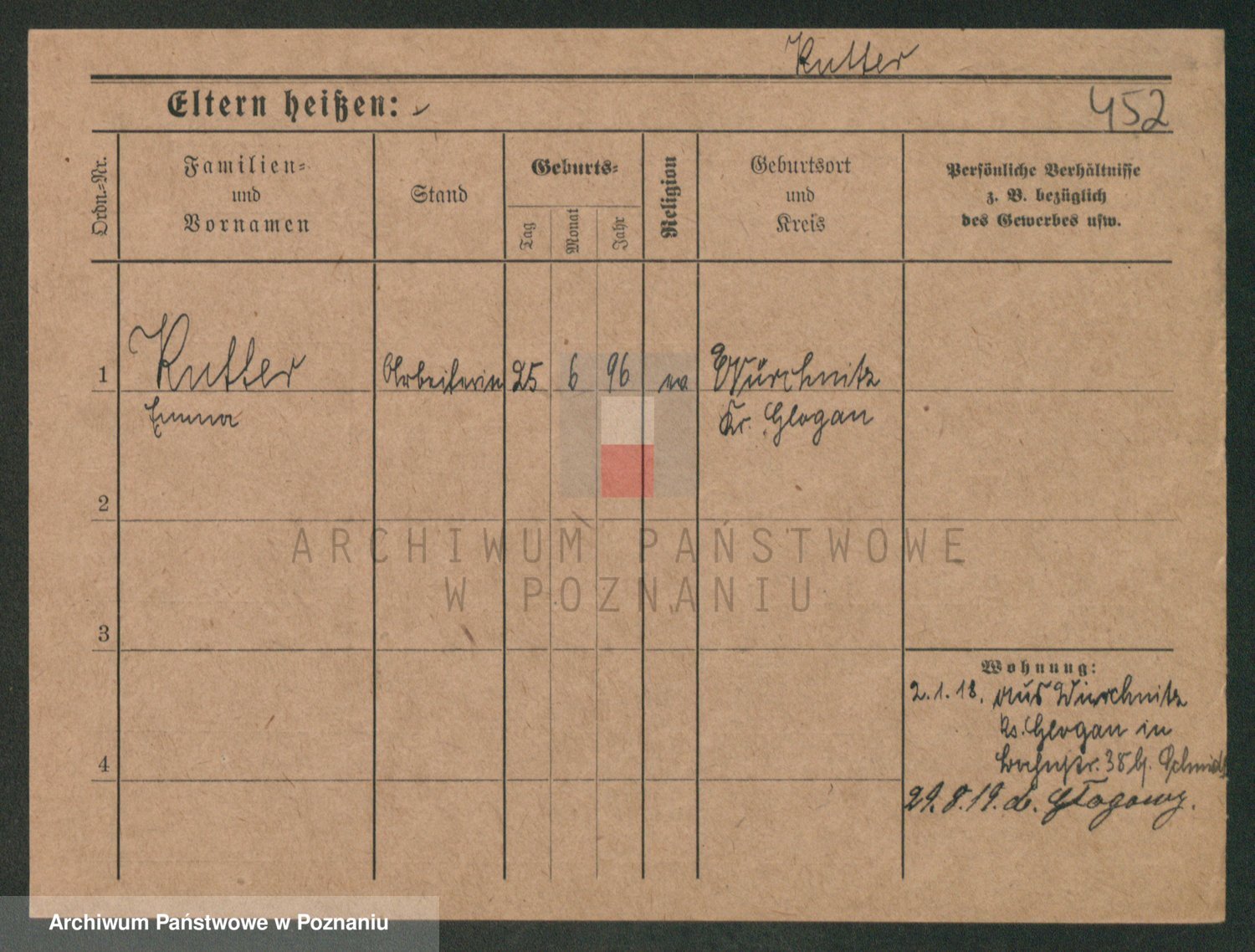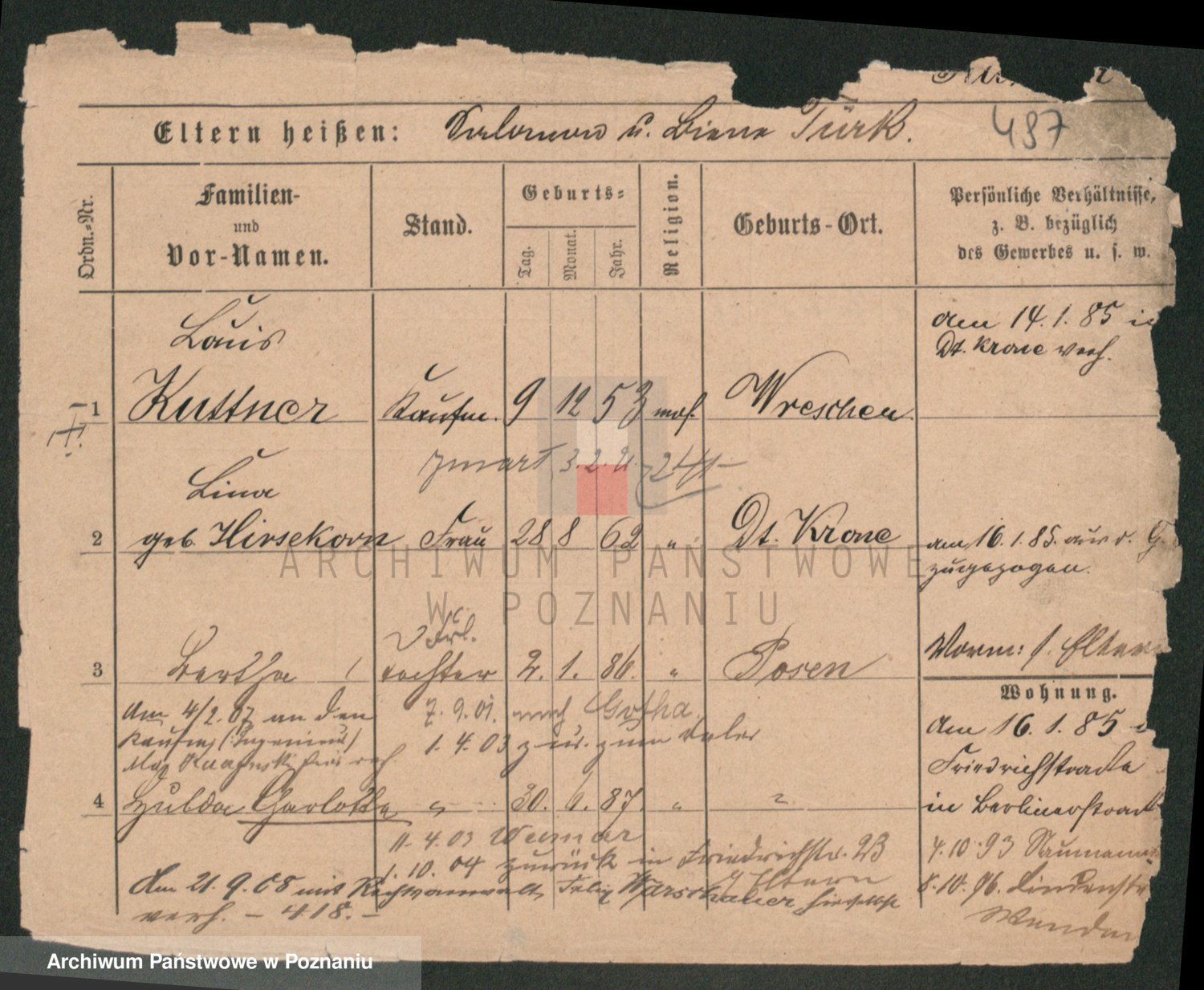 Podgląd karty osobowej dostępny jest po kliknięciu na nazwisko lub ikonkę karty. Można dokonywać powiększenia (ikony na górze) lub przechodzić między kolejnymi skanami (strzałki po bokach).