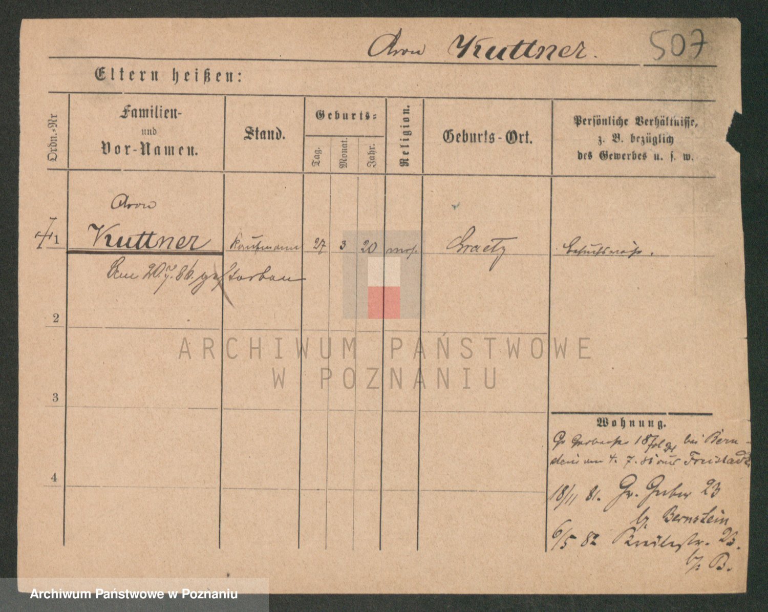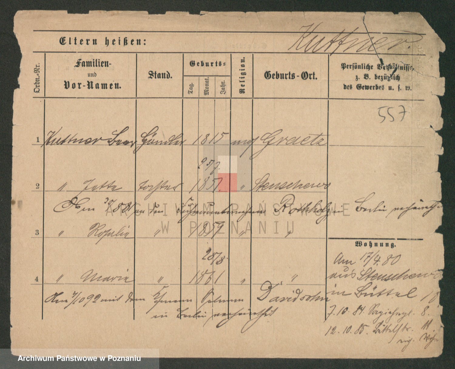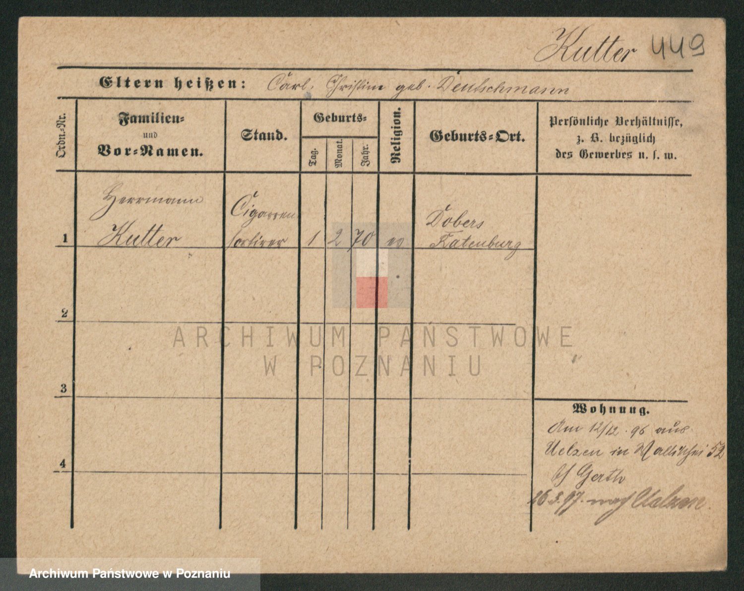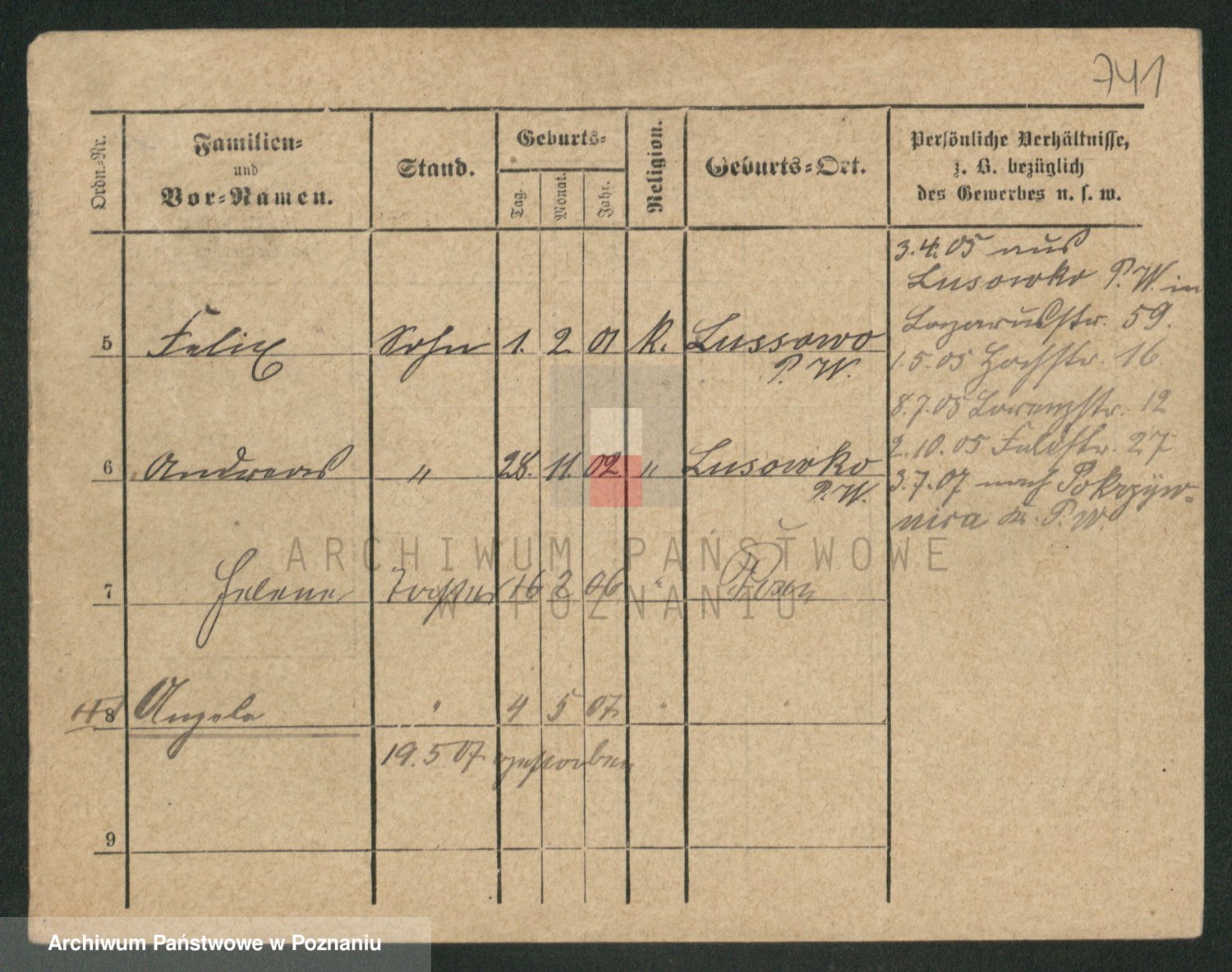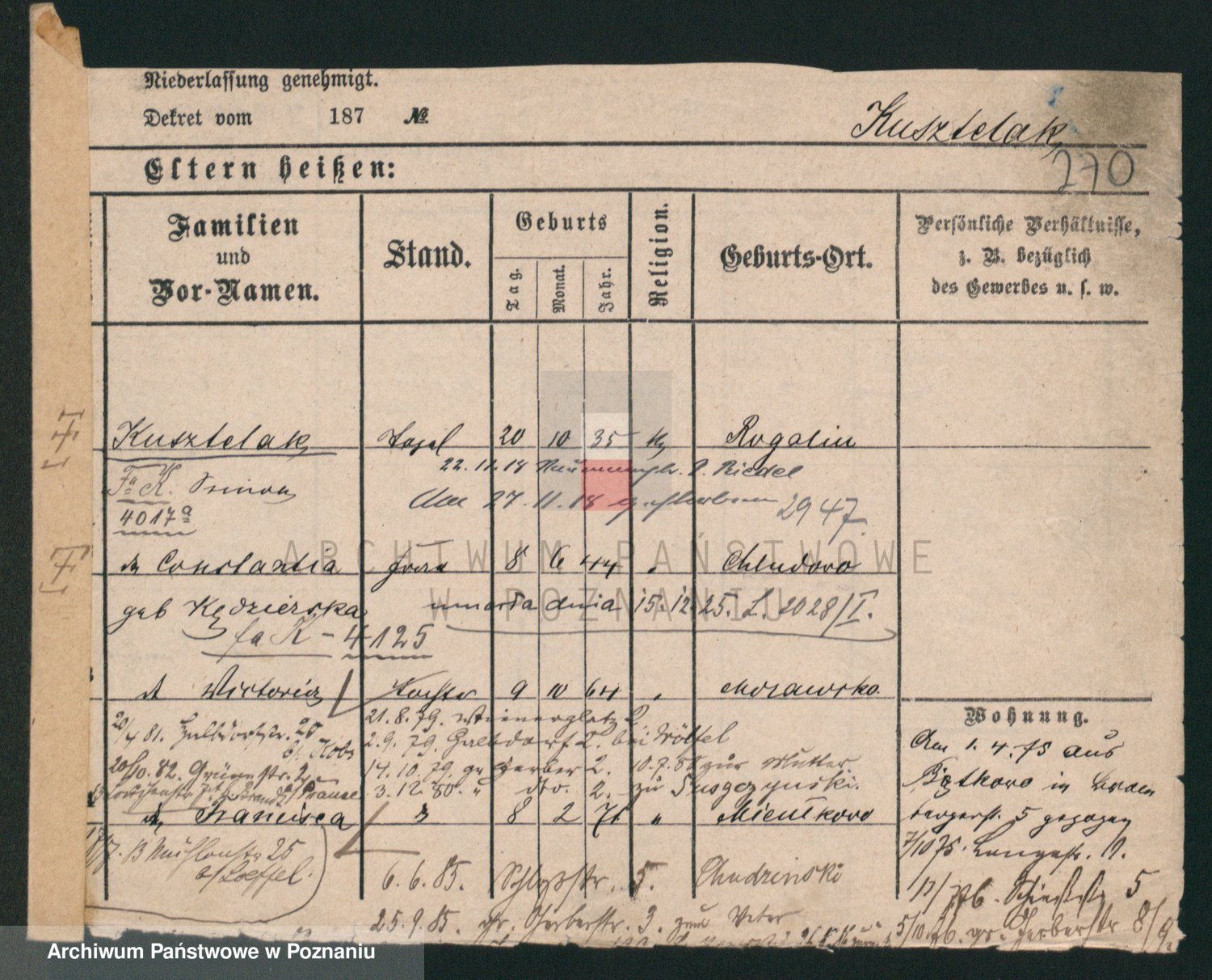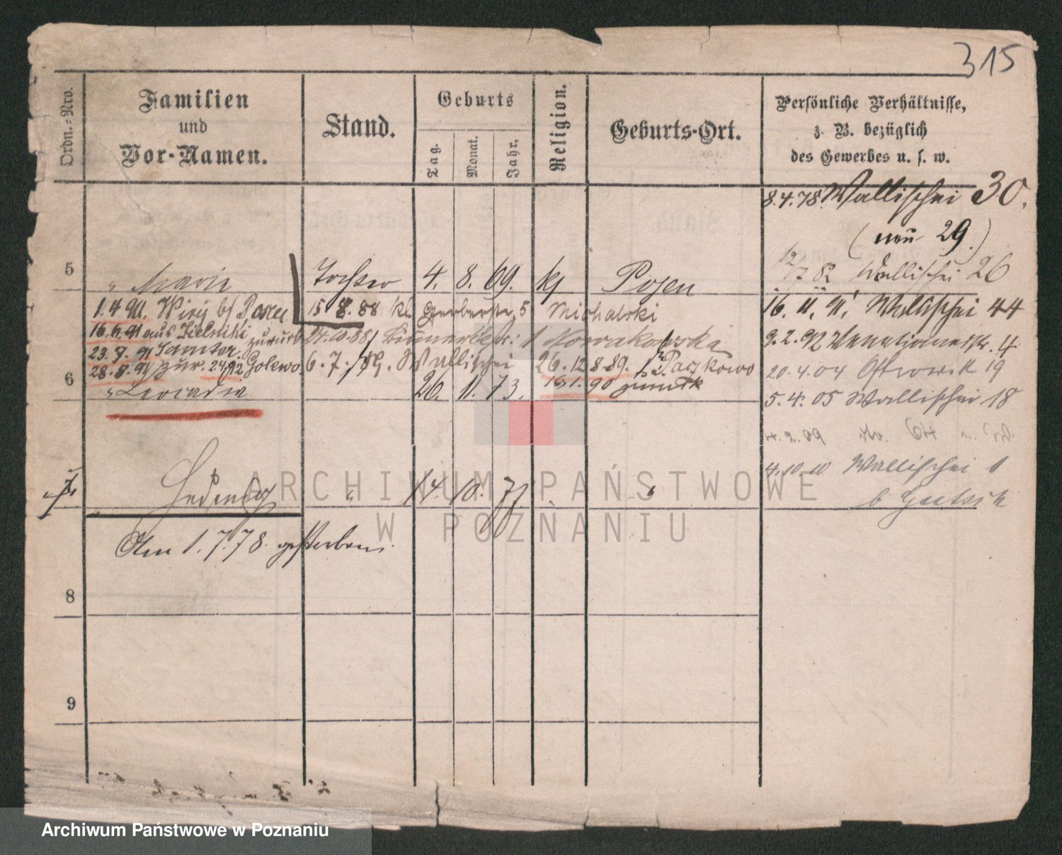 Podgląd karty osobowej dostępny jest po kliknięciu na nazwisko lub ikonkę karty. Można dokonywać powiększenia (ikony na górze) lub przechodzić między kolejnymi skanami (strzałki po bokach).