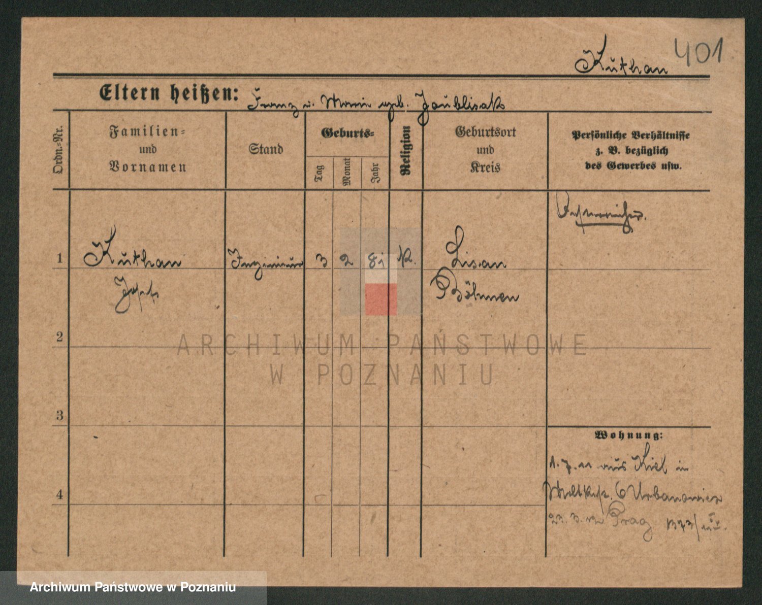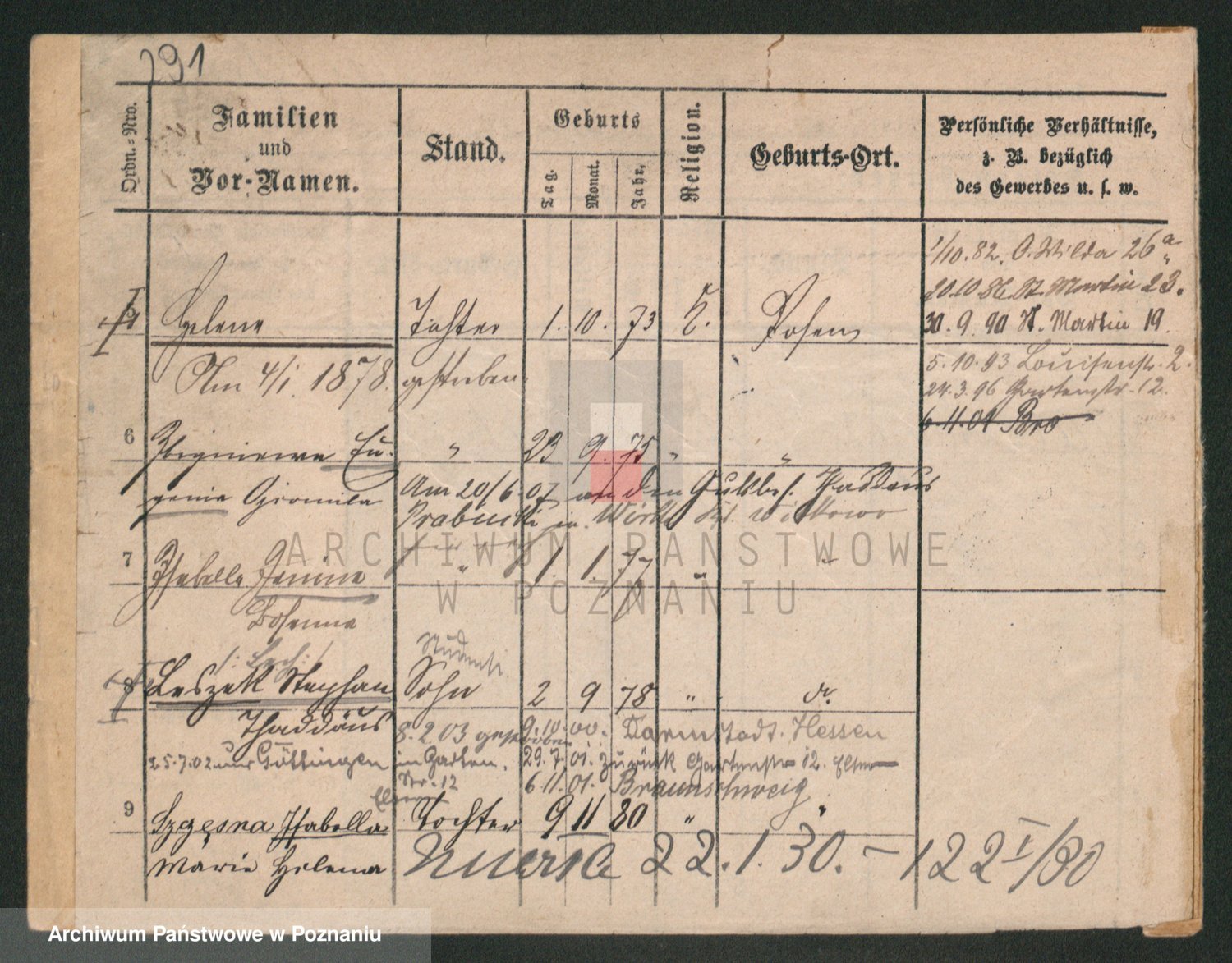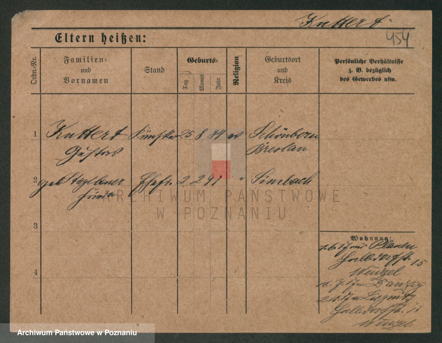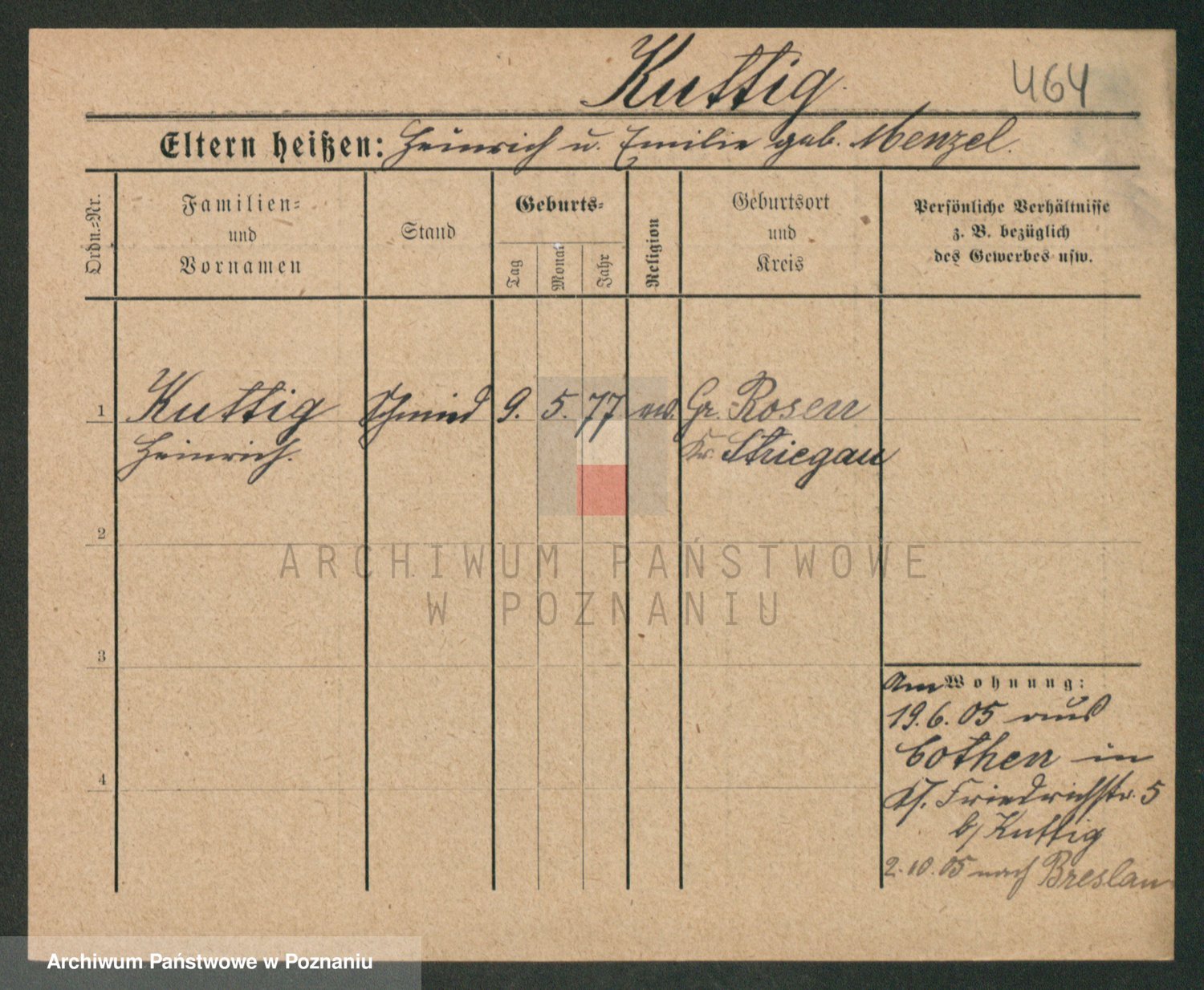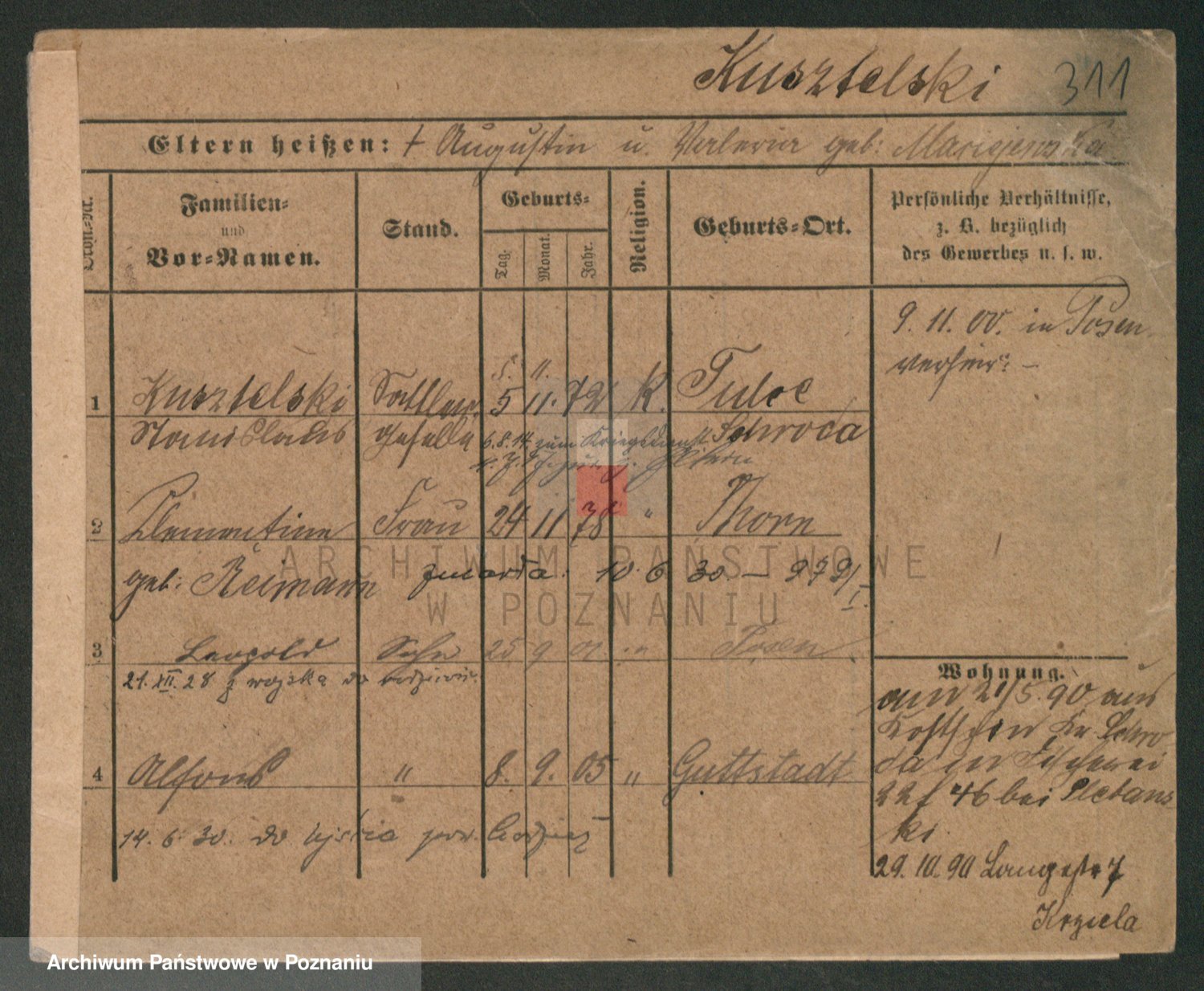 Podgląd karty osobowej dostępny jest po kliknięciu na nazwisko lub ikonkę karty. Można dokonywać powiększenia (ikony na górze) lub przechodzić między kolejnymi skanami (strzałki po bokach).