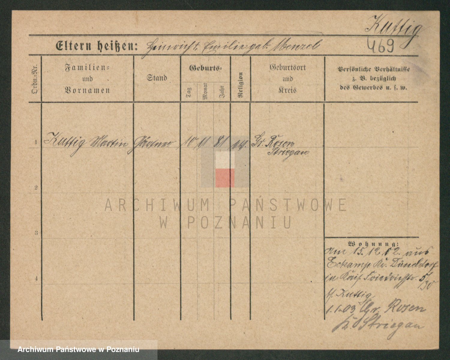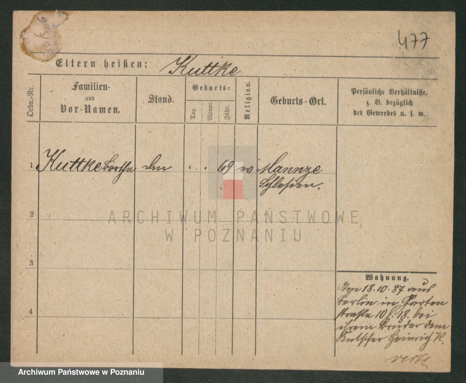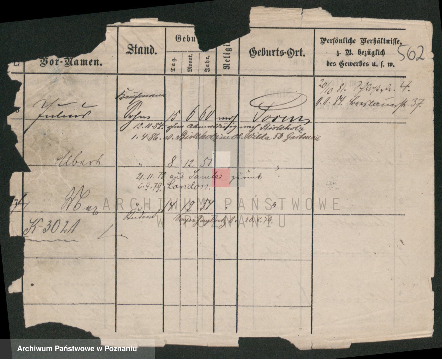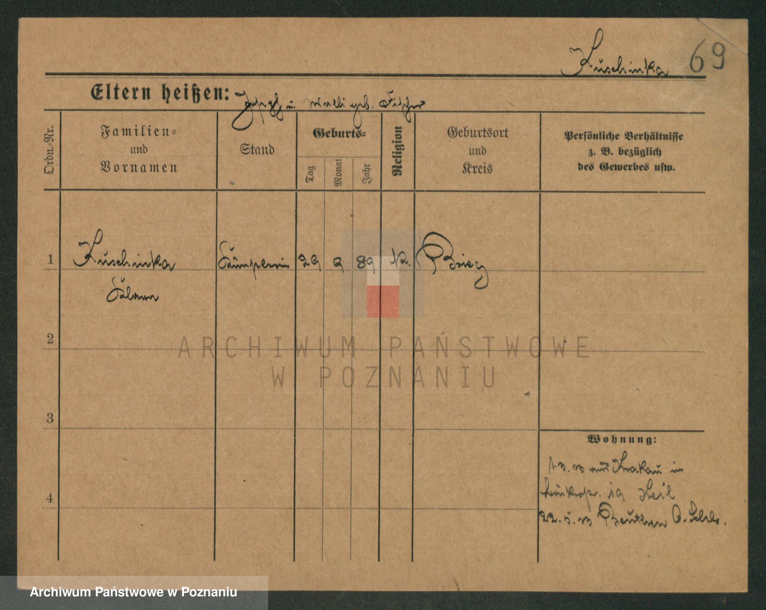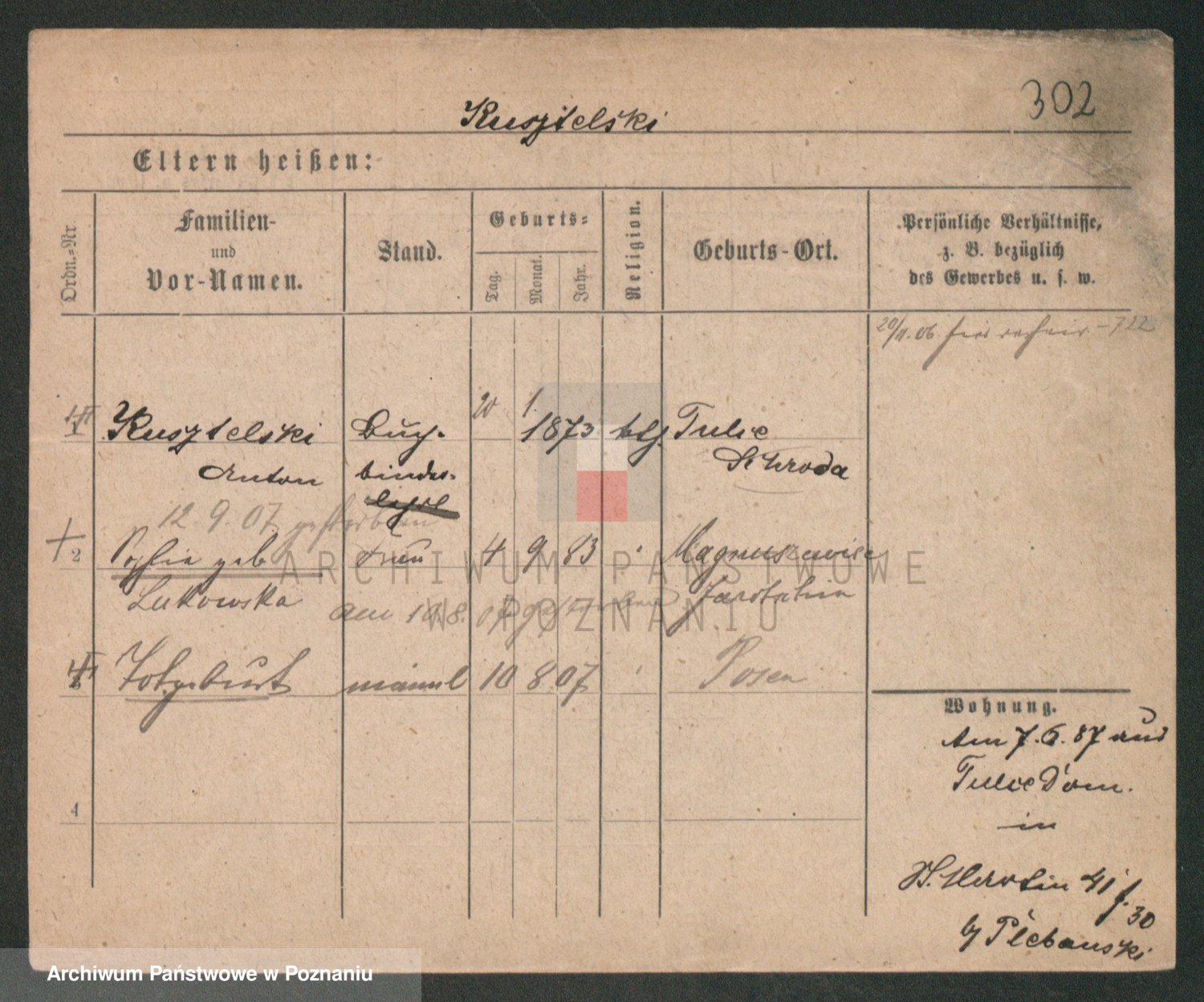 Podgląd karty osobowej dostępny jest po kliknięciu na nazwisko lub ikonkę karty. Można dokonywać powiększenia (ikony na górze) lub przechodzić między kolejnymi skanami (strzałki po bokach).