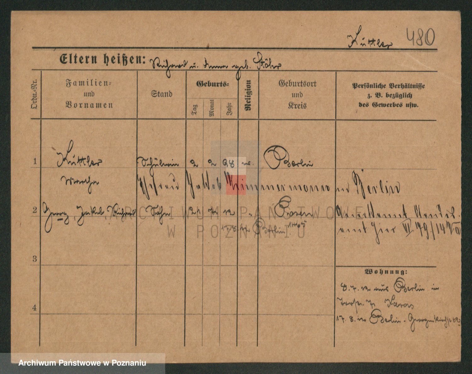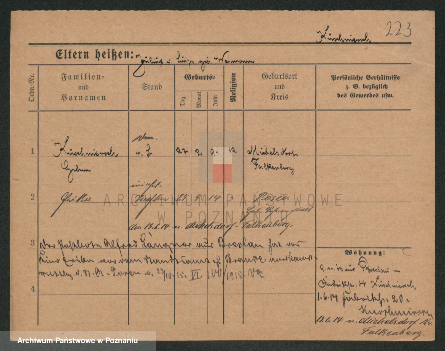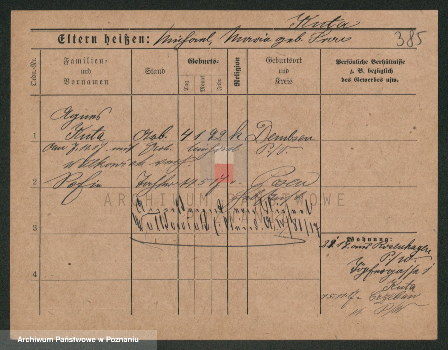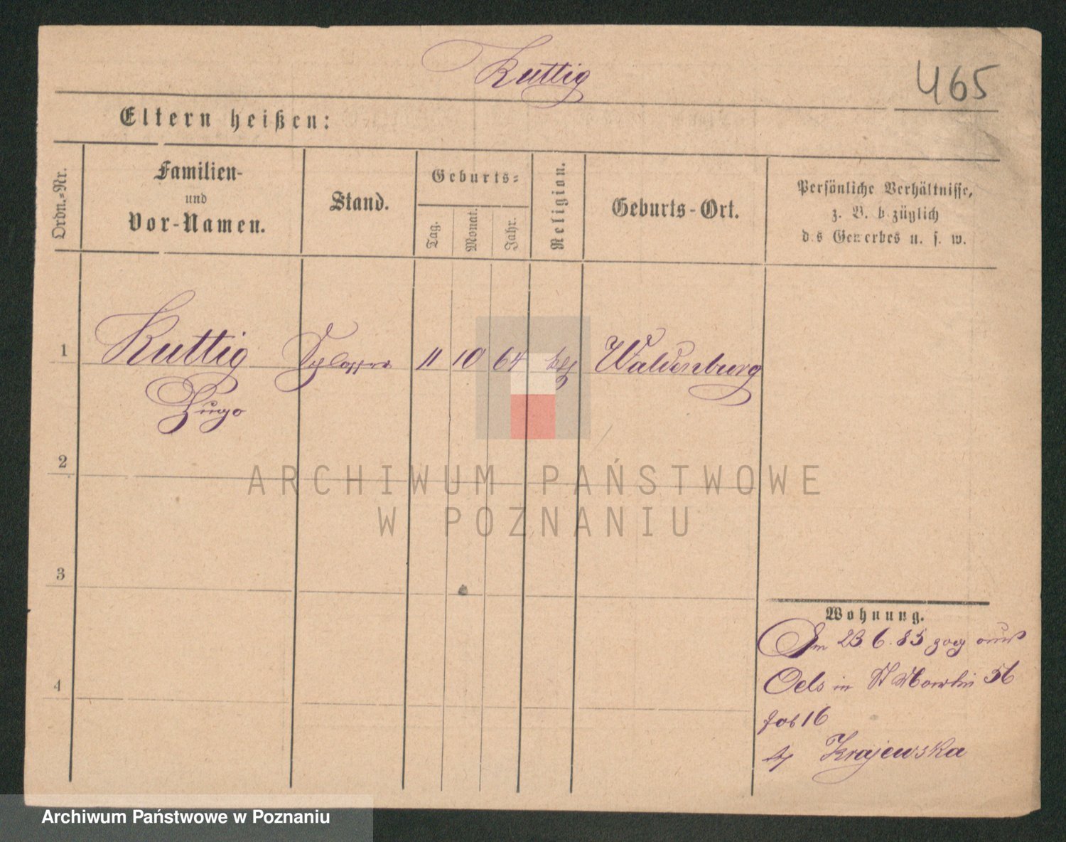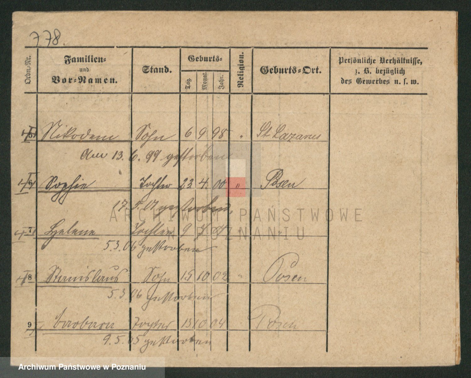 Podgląd karty osobowej dostępny jest po kliknięciu na nazwisko lub ikonkę karty. Można dokonywać powiększenia (ikony na górze) lub przechodzić między kolejnymi skanami (strzałki po bokach).