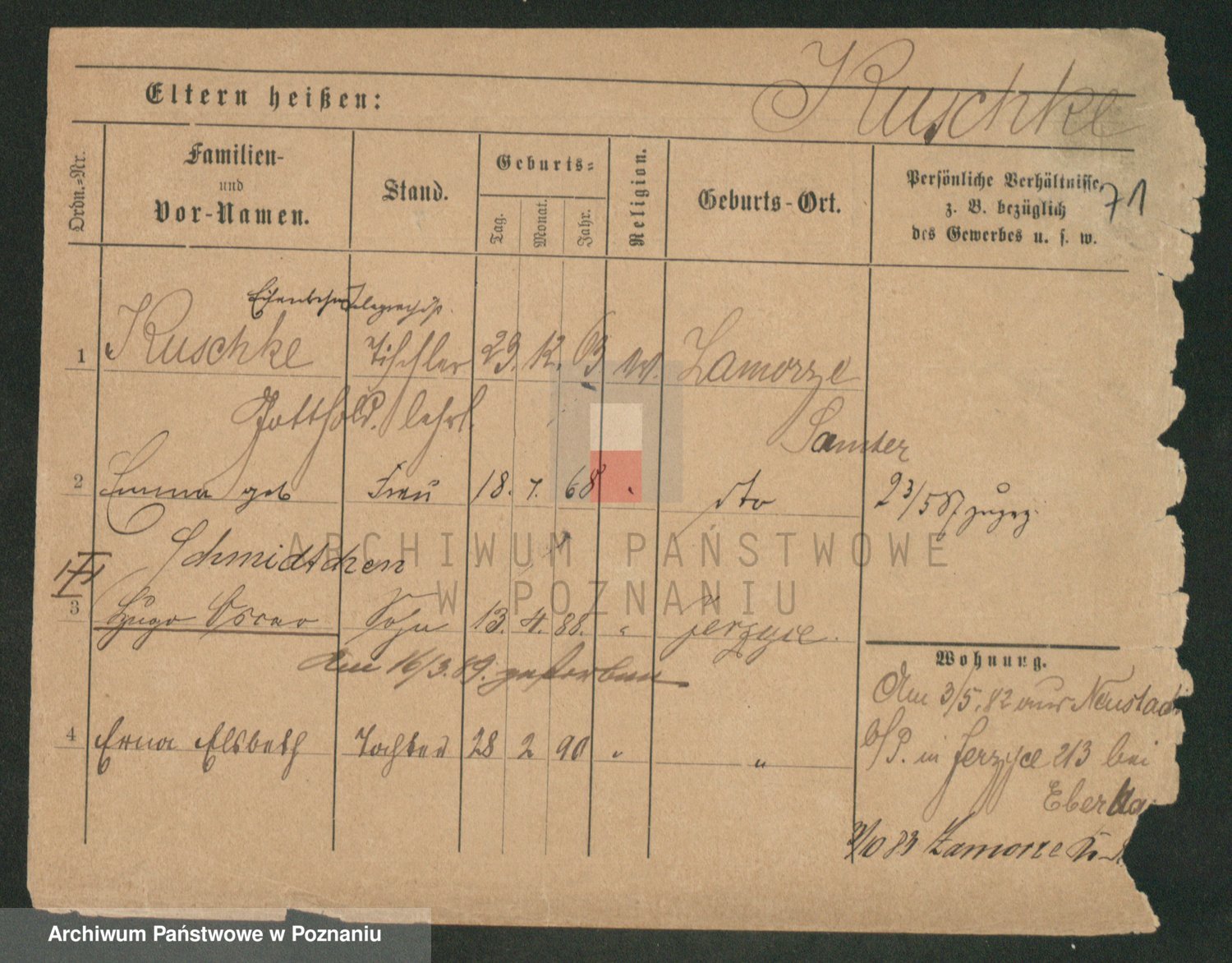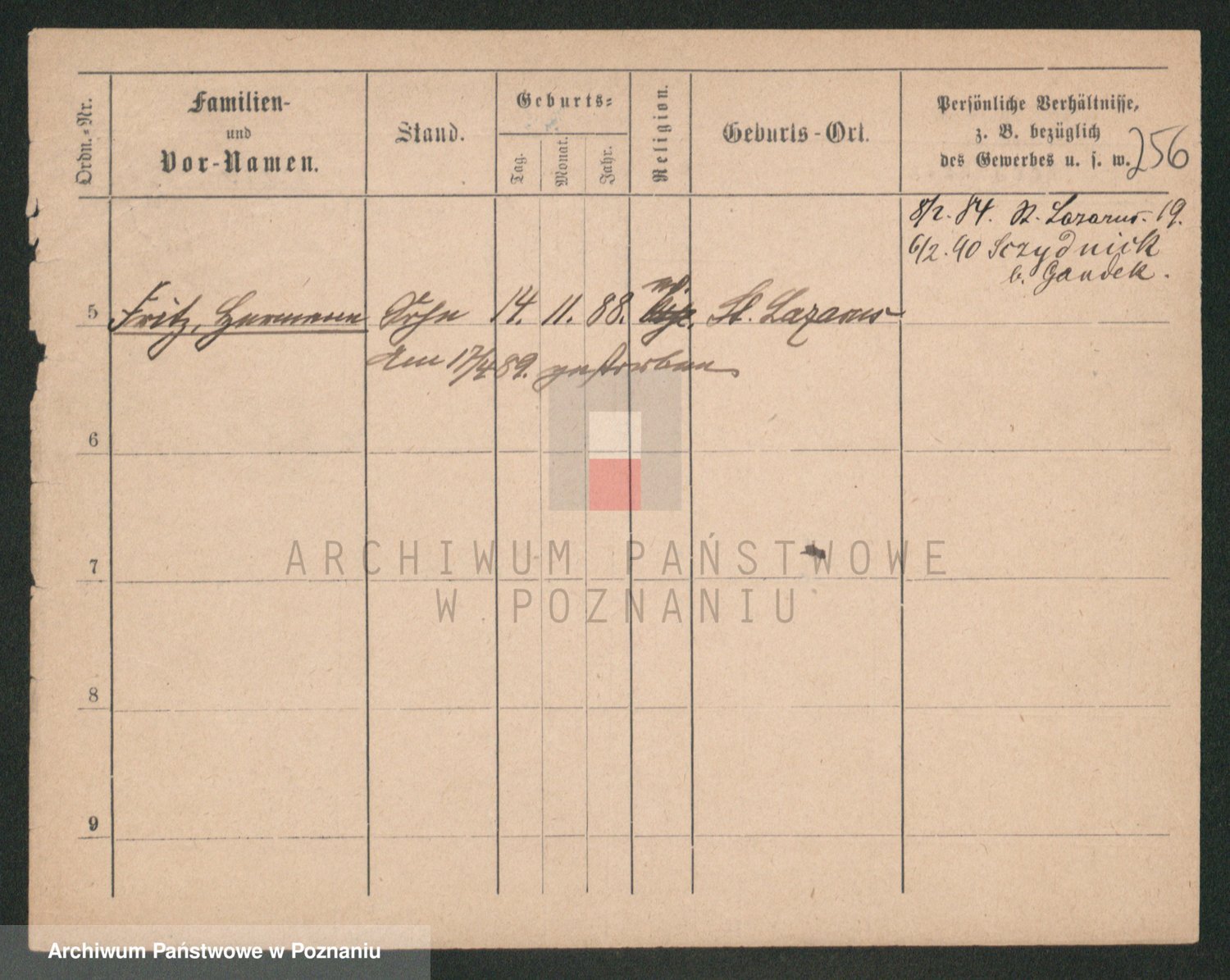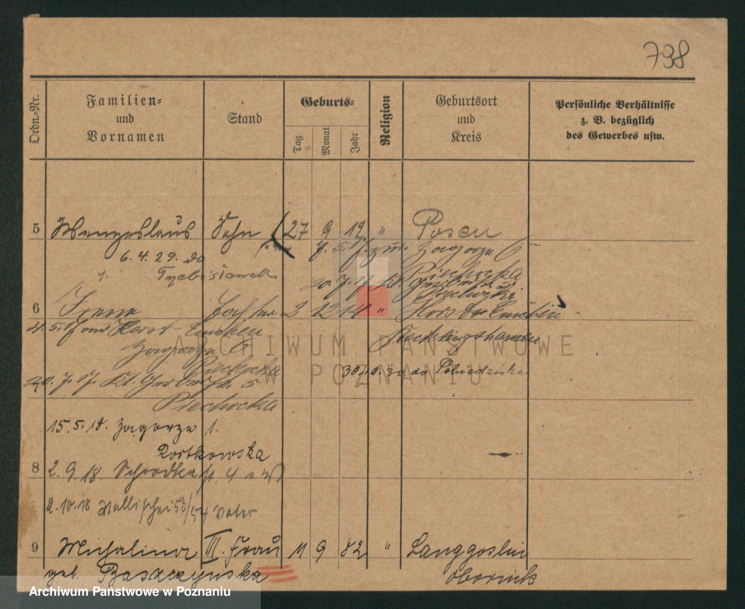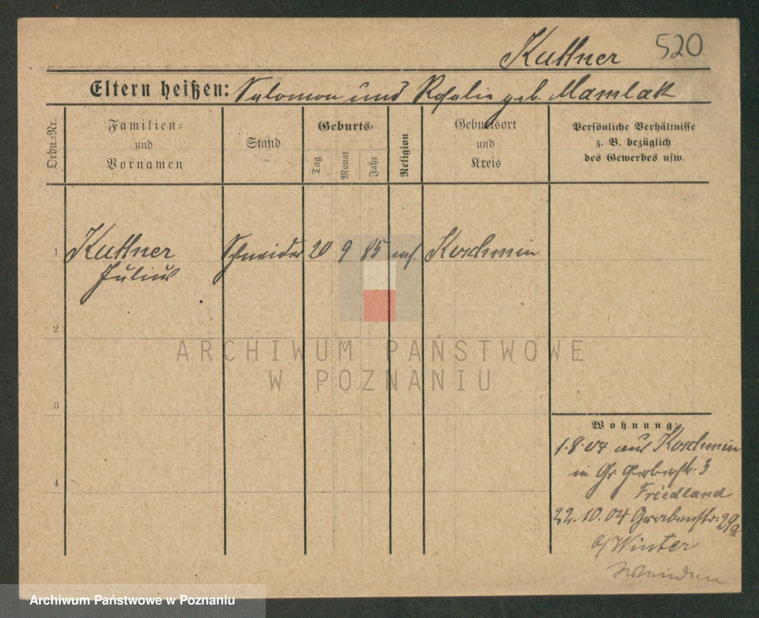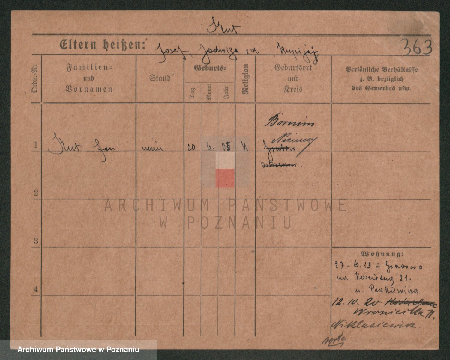 Podgląd karty osobowej dostępny jest po kliknięciu na nazwisko lub ikonkę karty. Można dokonywać powiększenia (ikony na górze) lub przechodzić między kolejnymi skanami (strzałki po bokach).