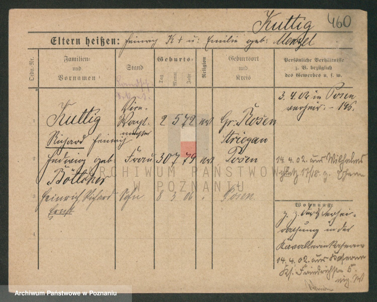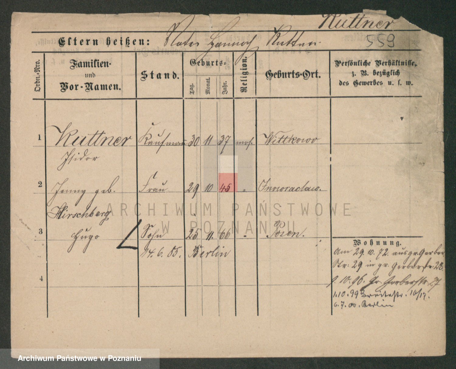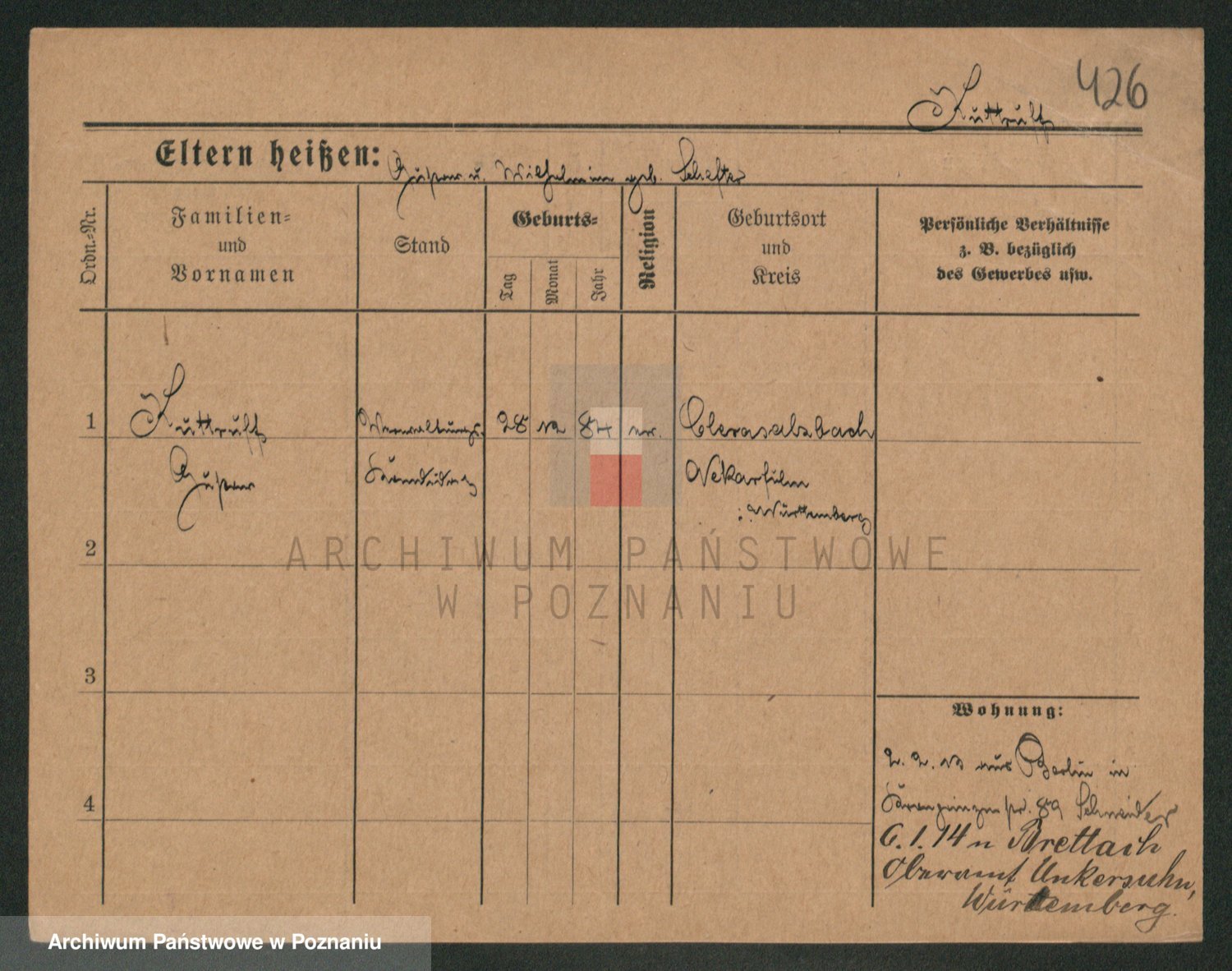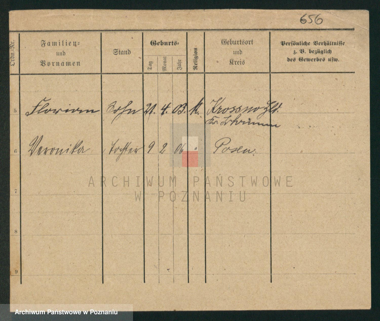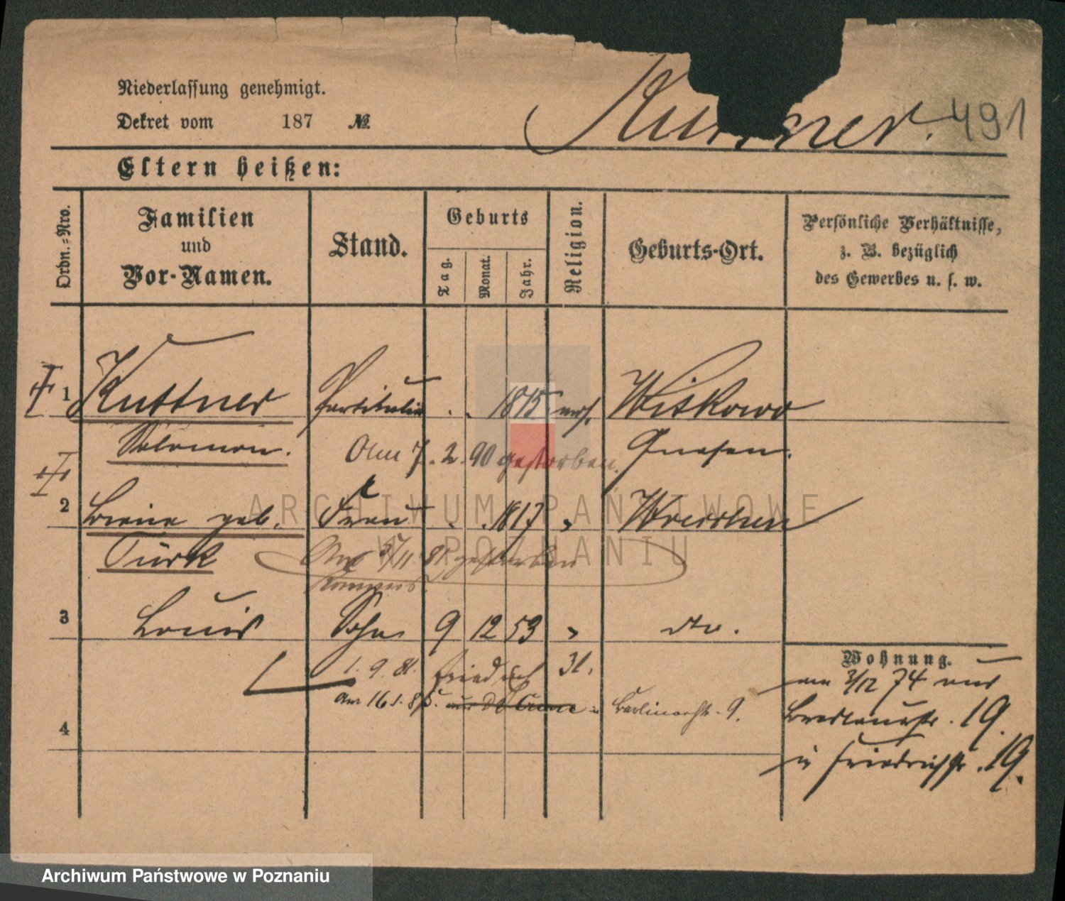 Podgląd karty osobowej dostępny jest po kliknięciu na nazwisko lub ikonkę karty. Można dokonywać powiększenia (ikony na górze) lub przechodzić między kolejnymi skanami (strzałki po bokach).