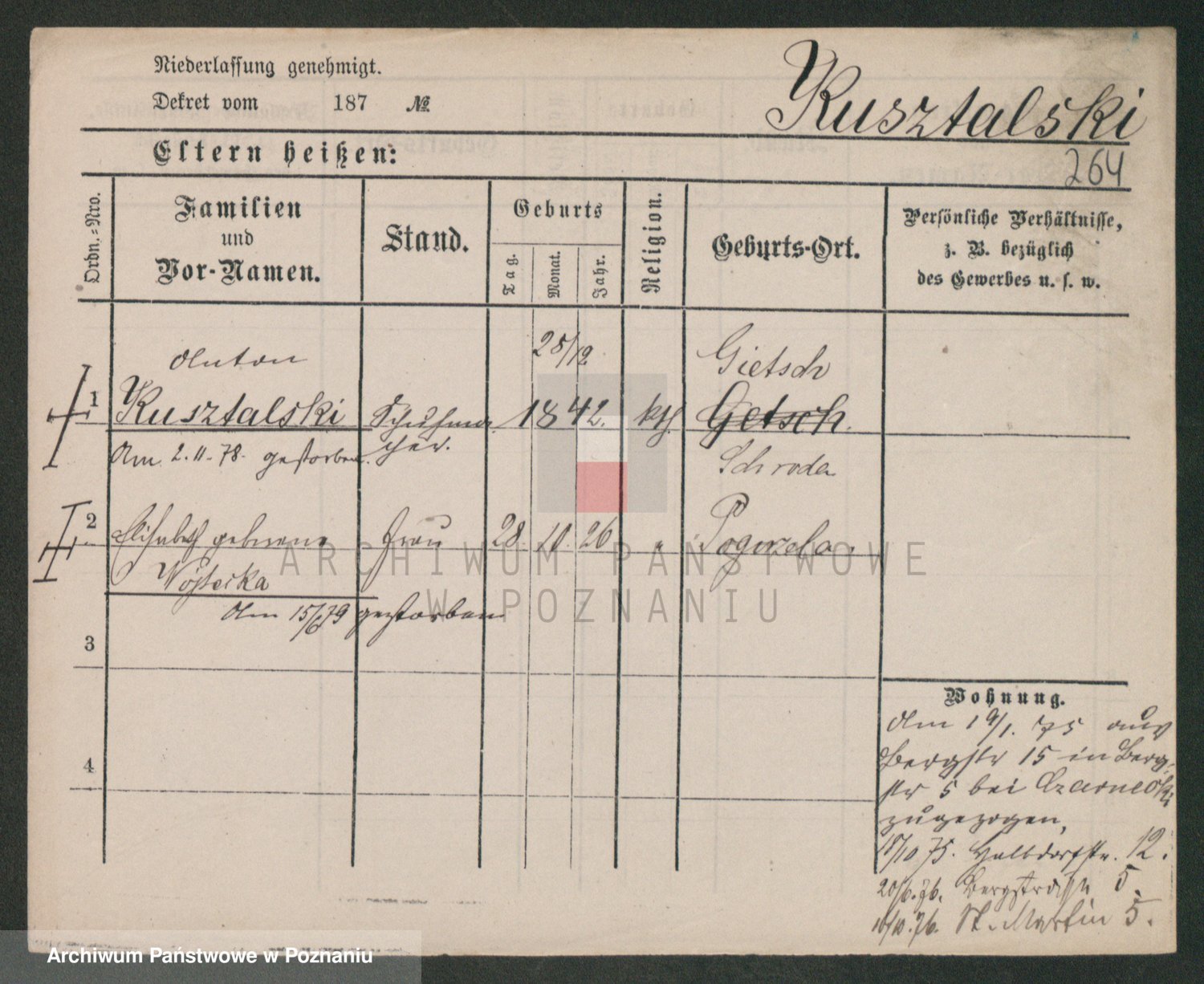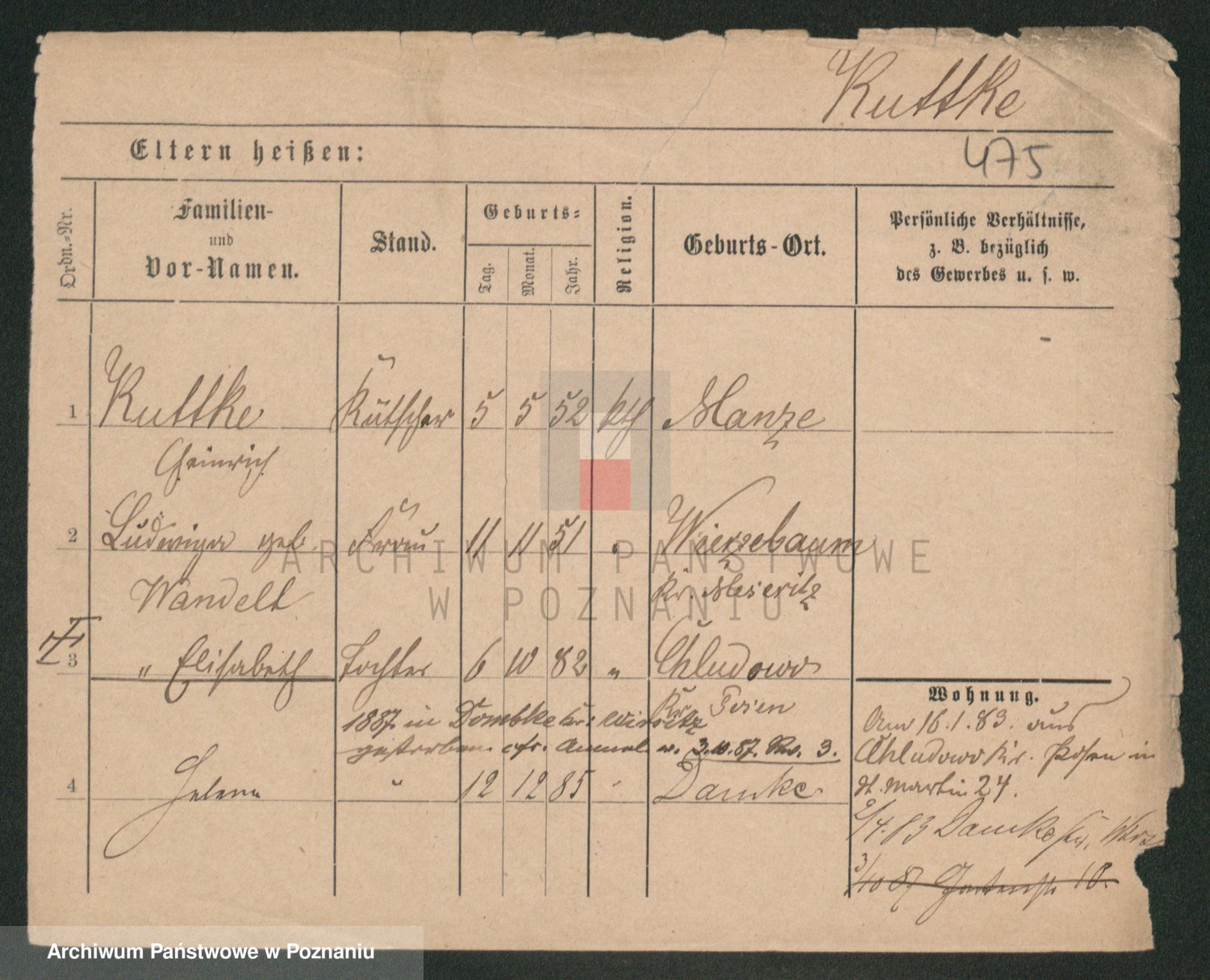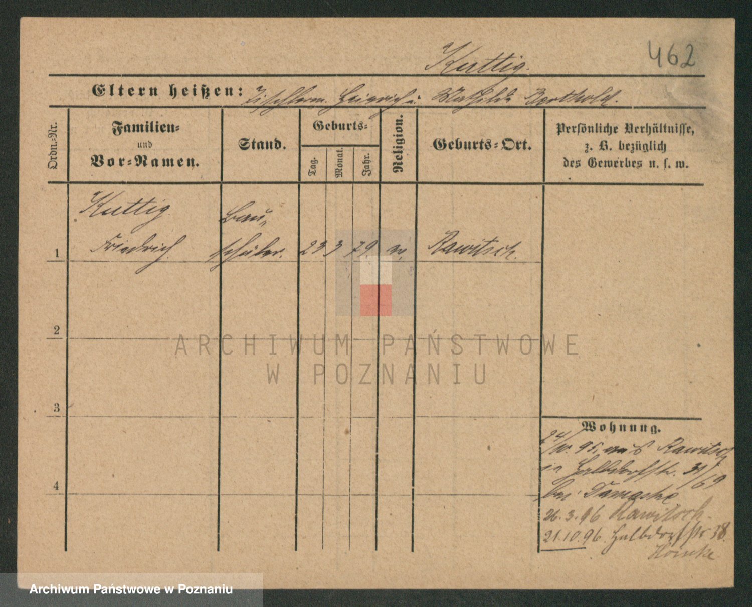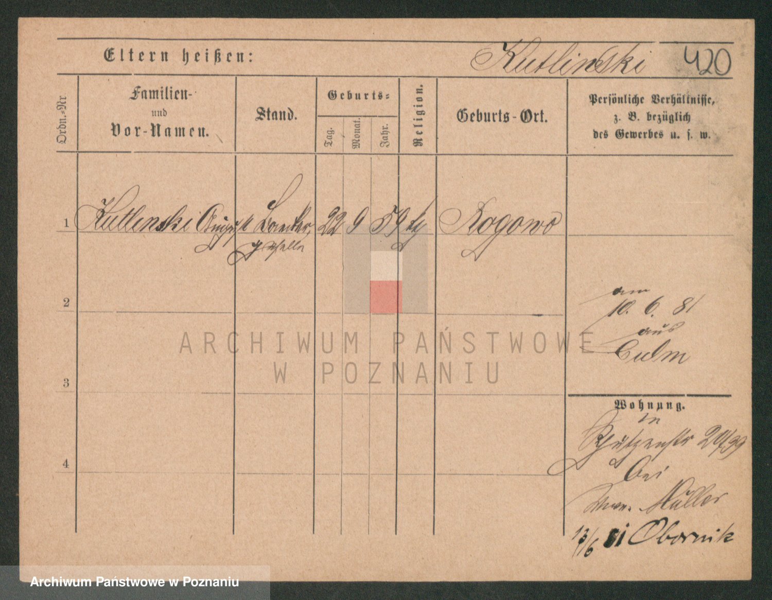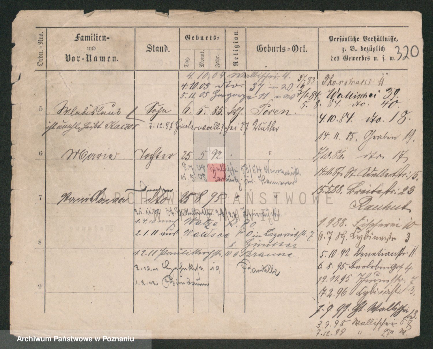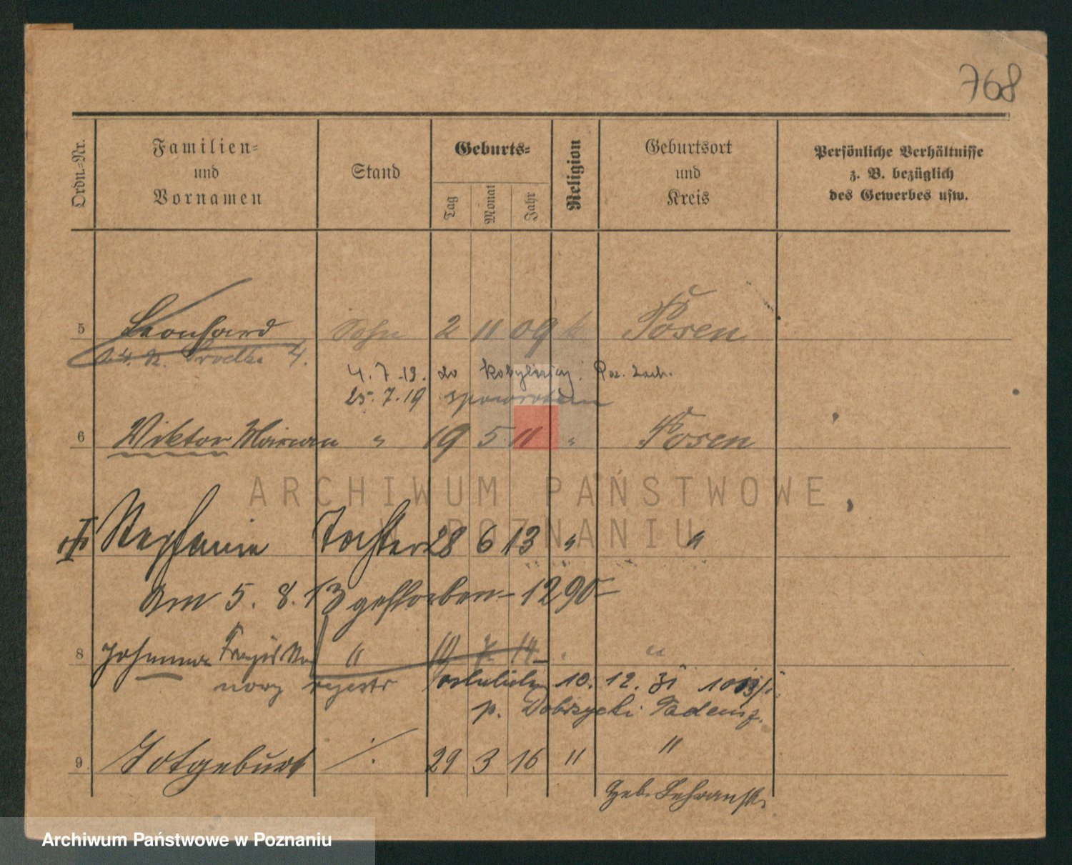 Podgląd karty osobowej dostępny jest po kliknięciu na nazwisko lub ikonkę karty. Można dokonywać powiększenia (ikony na górze) lub przechodzić między kolejnymi skanami (strzałki po bokach).