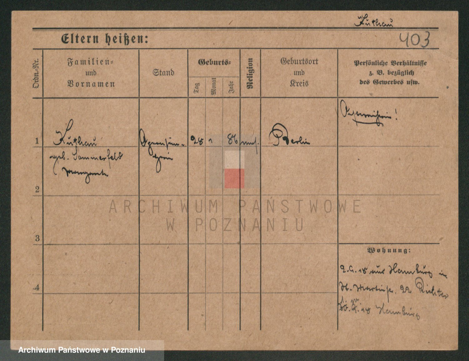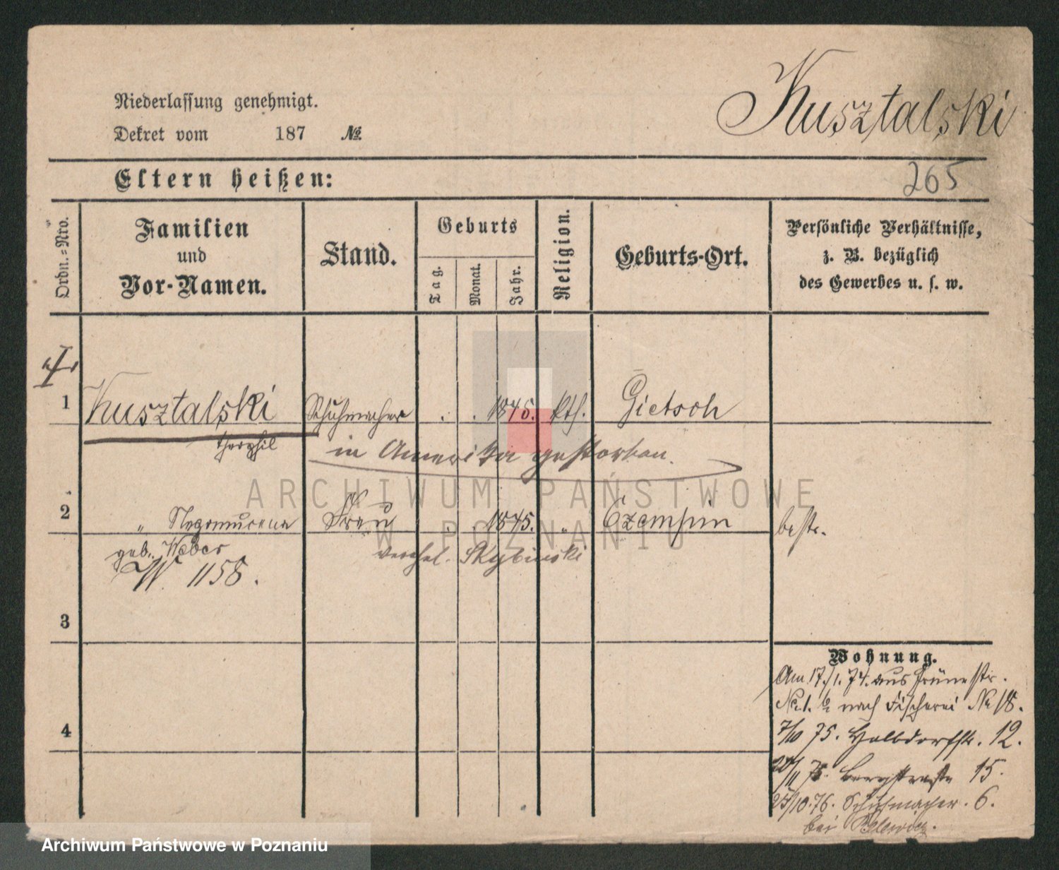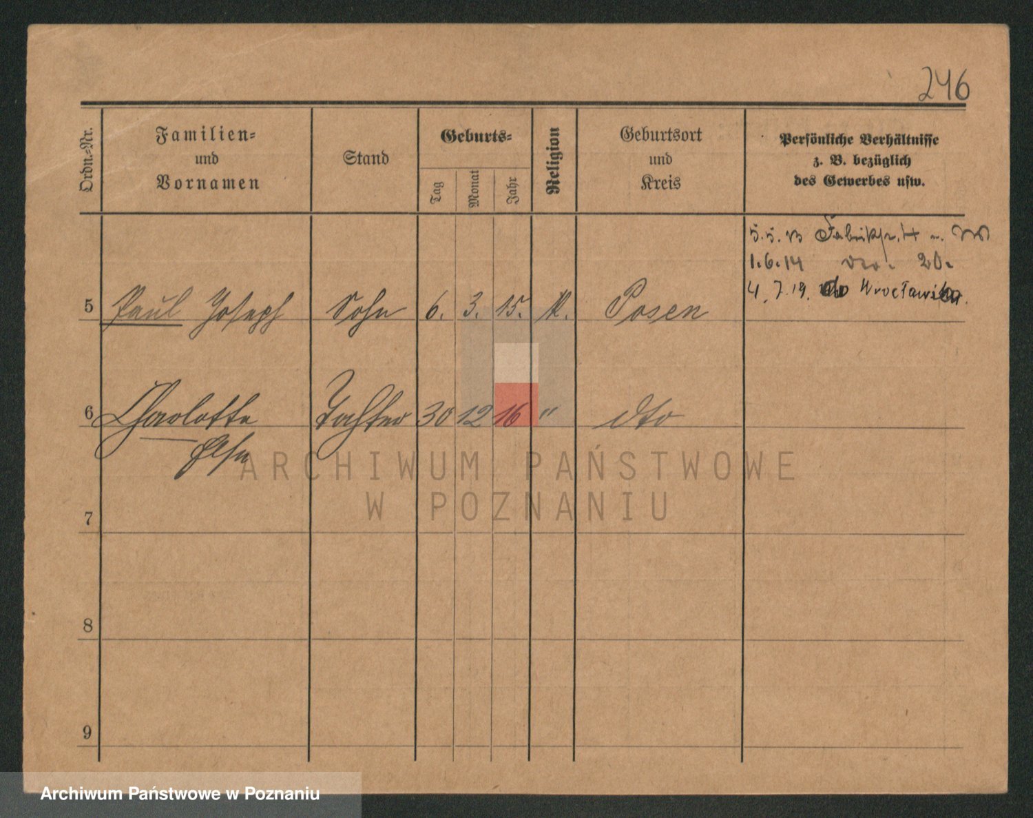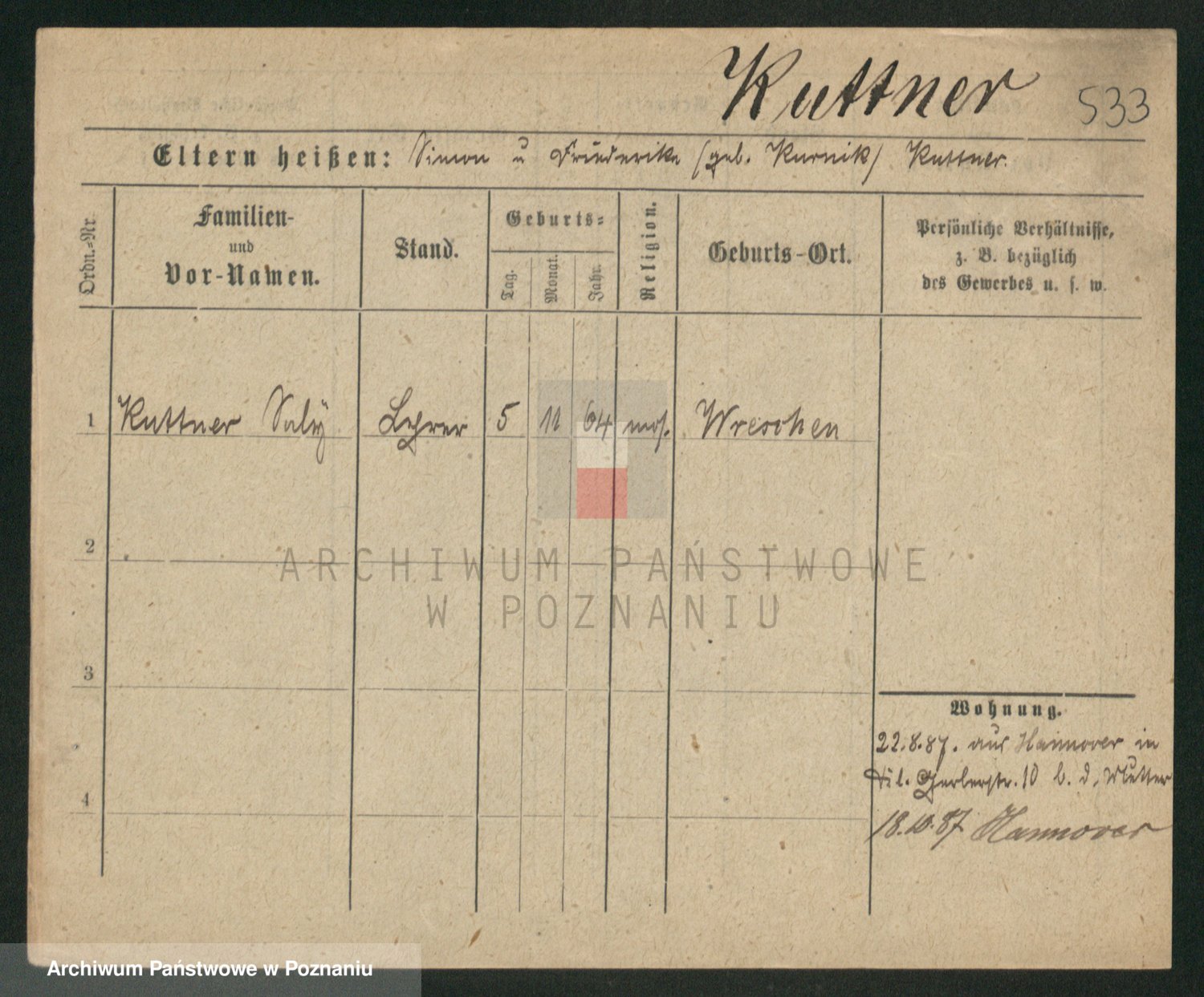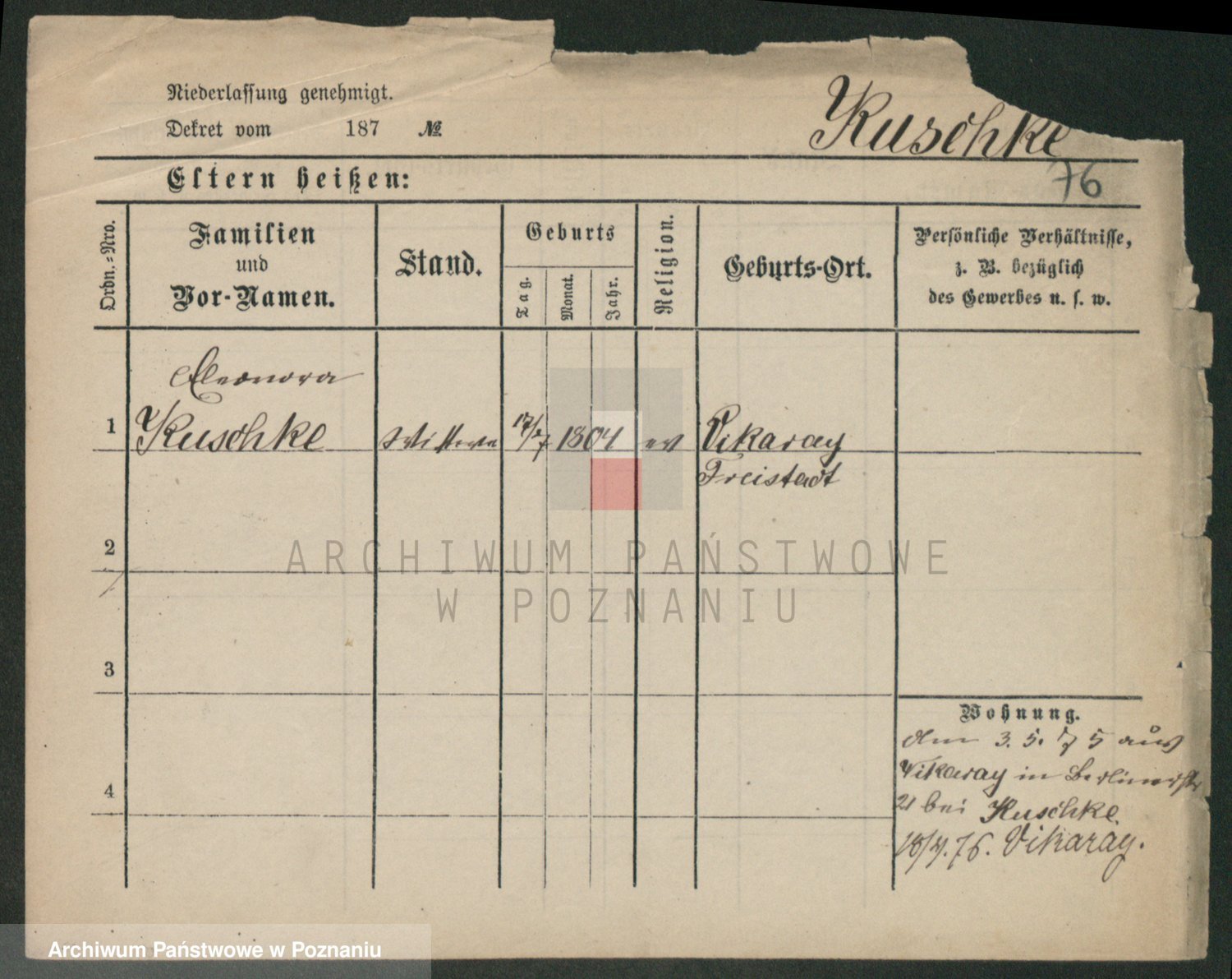Podgląd karty osobowej dostępny jest po kliknięciu na nazwisko lub ikonkę karty. Można dokonywać powiększenia (ikony na górze) lub przechodzić między kolejnymi skanami (strzałki po bokach).
