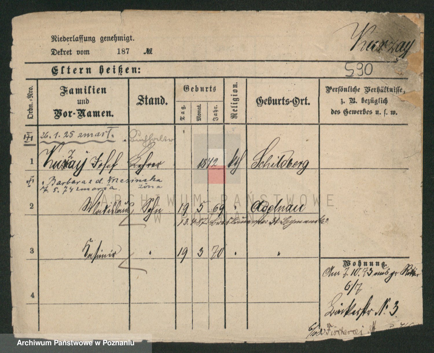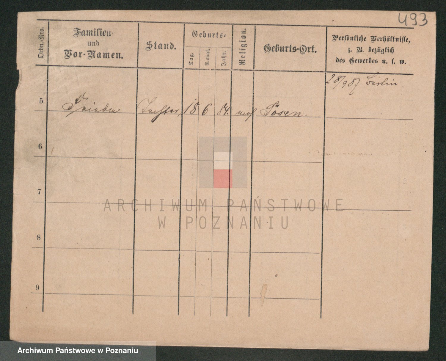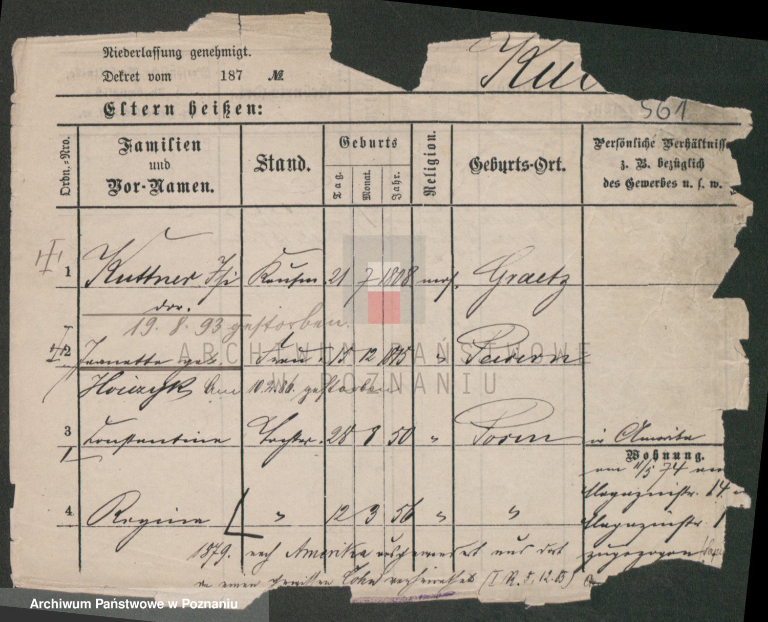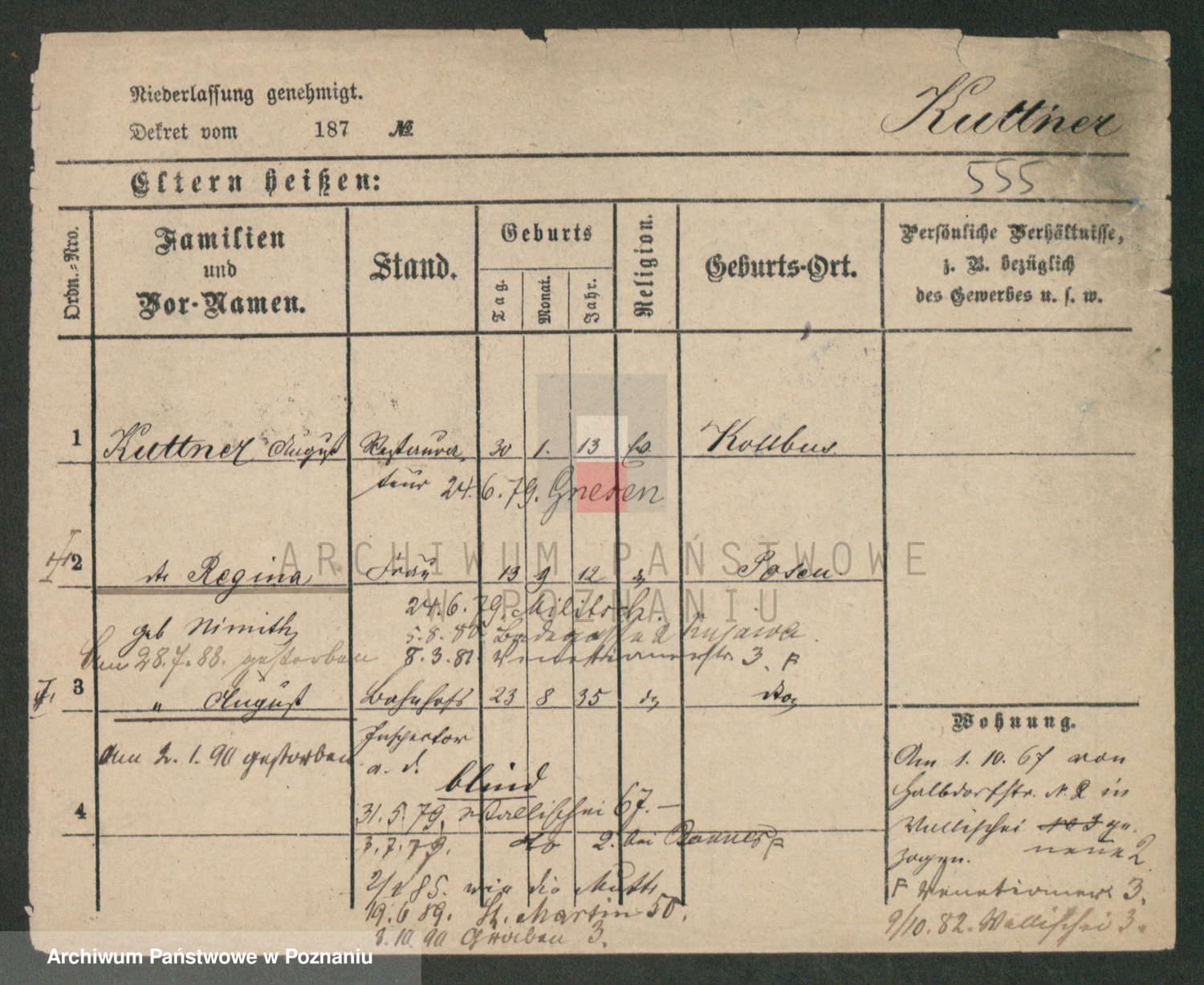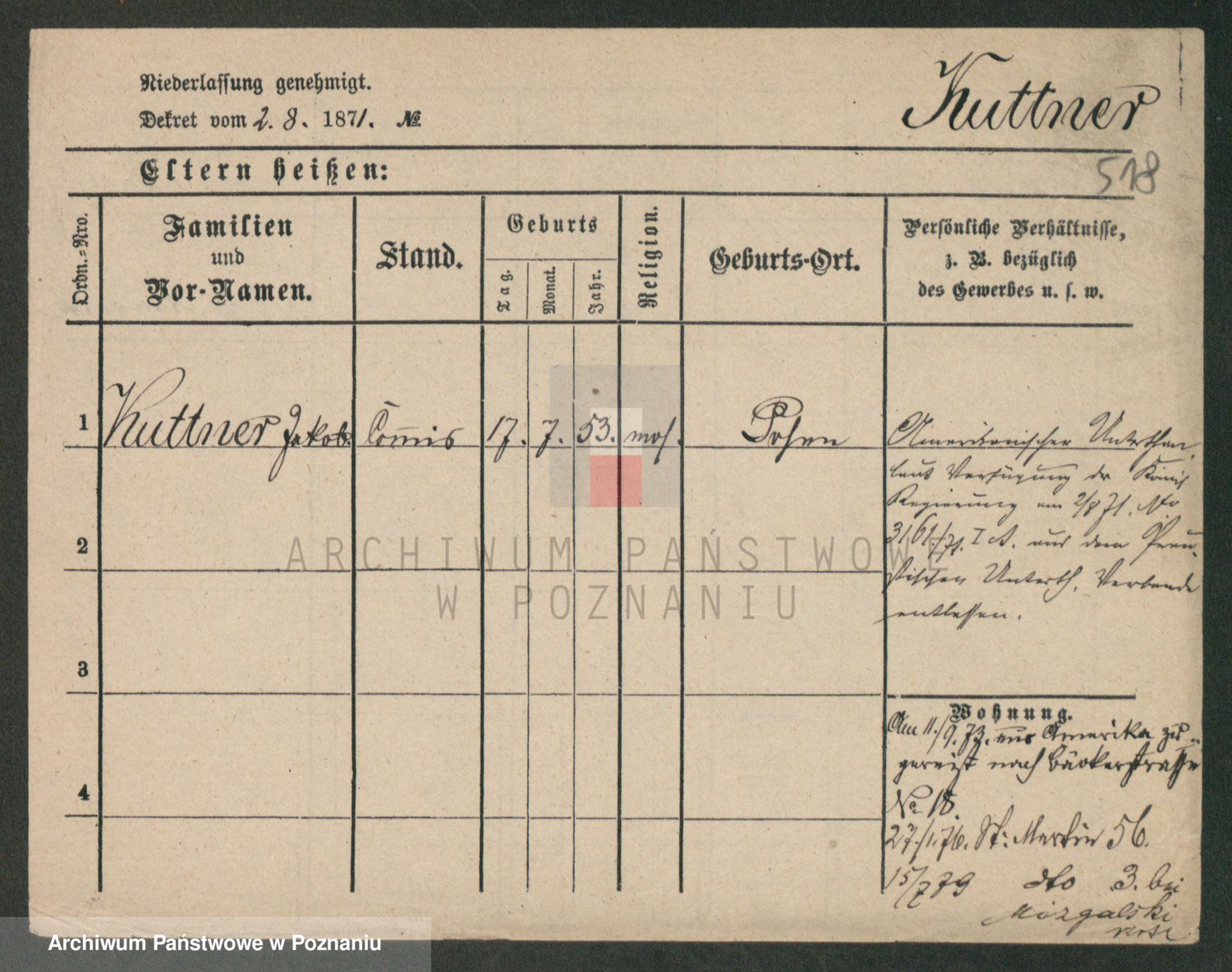 Podgląd karty osobowej dostępny jest po kliknięciu na nazwisko lub ikonkę karty. Można dokonywać powiększenia (ikony na górze) lub przechodzić między kolejnymi skanami (strzałki po bokach).