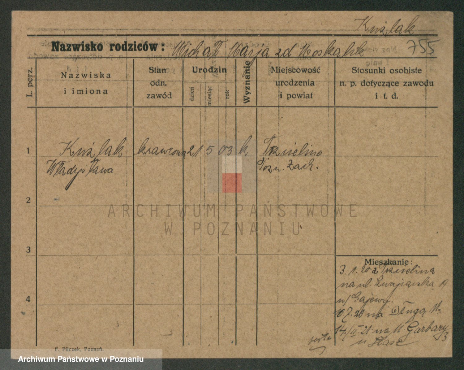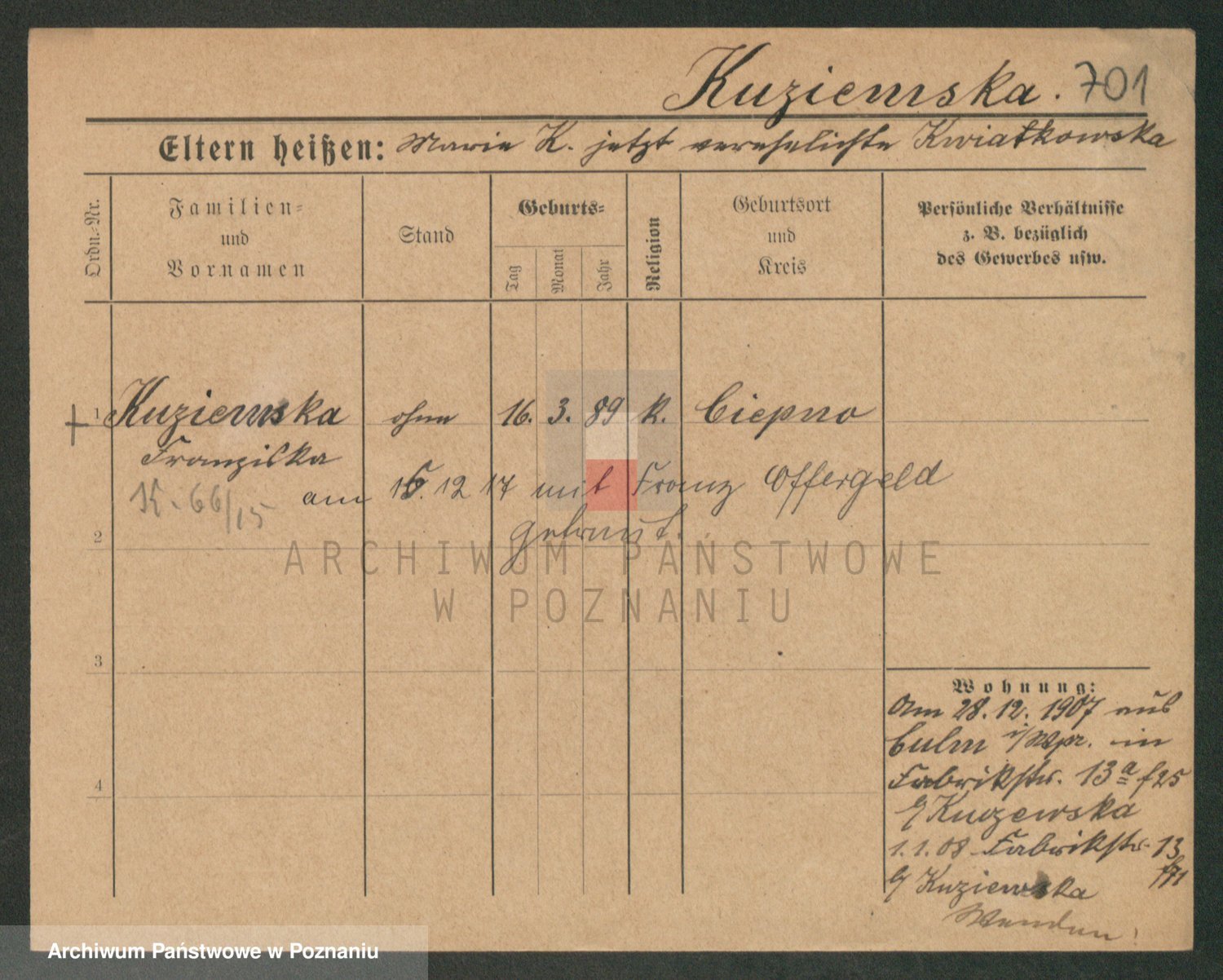 Kuzniarski z d. Wolna, Bronislawa