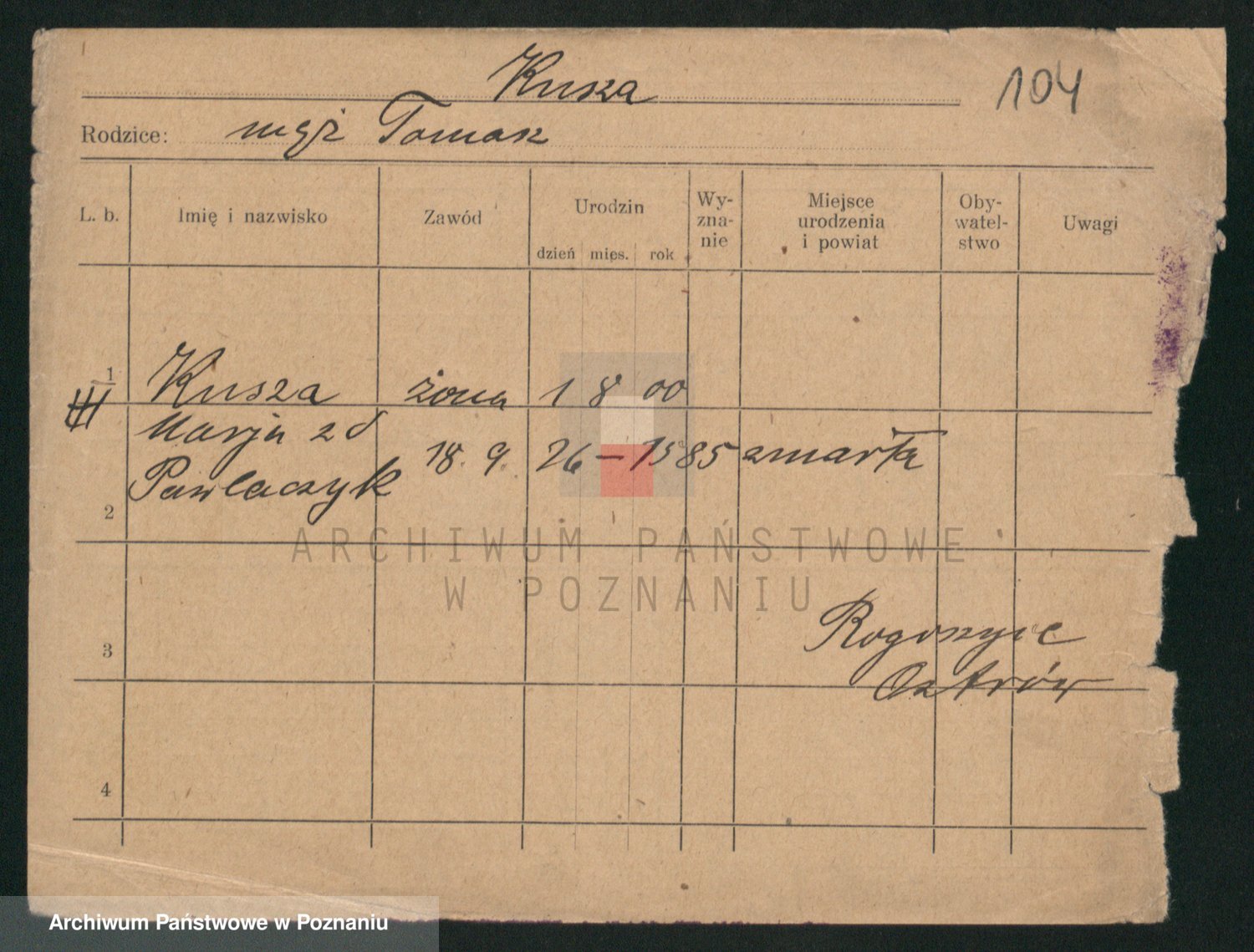 Kuzniarski z d. Czerniak, Anastasia