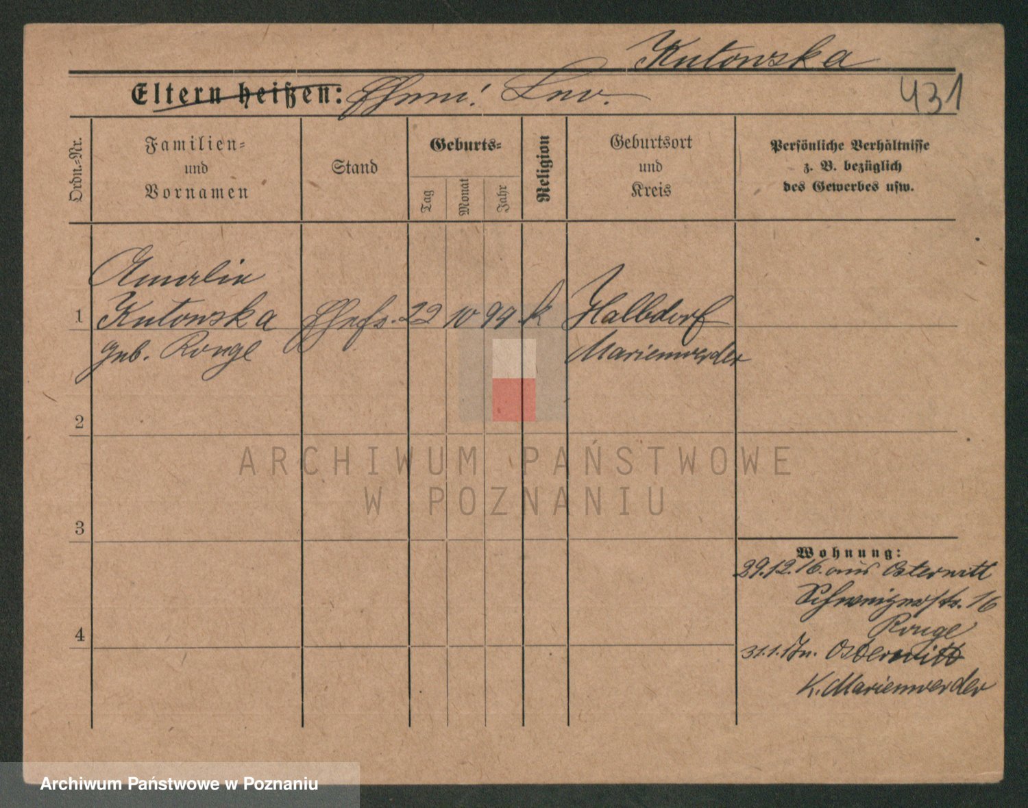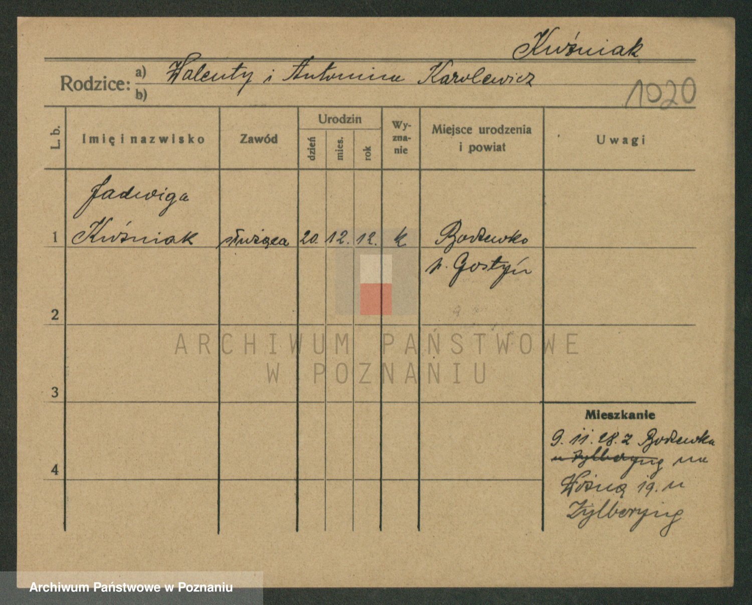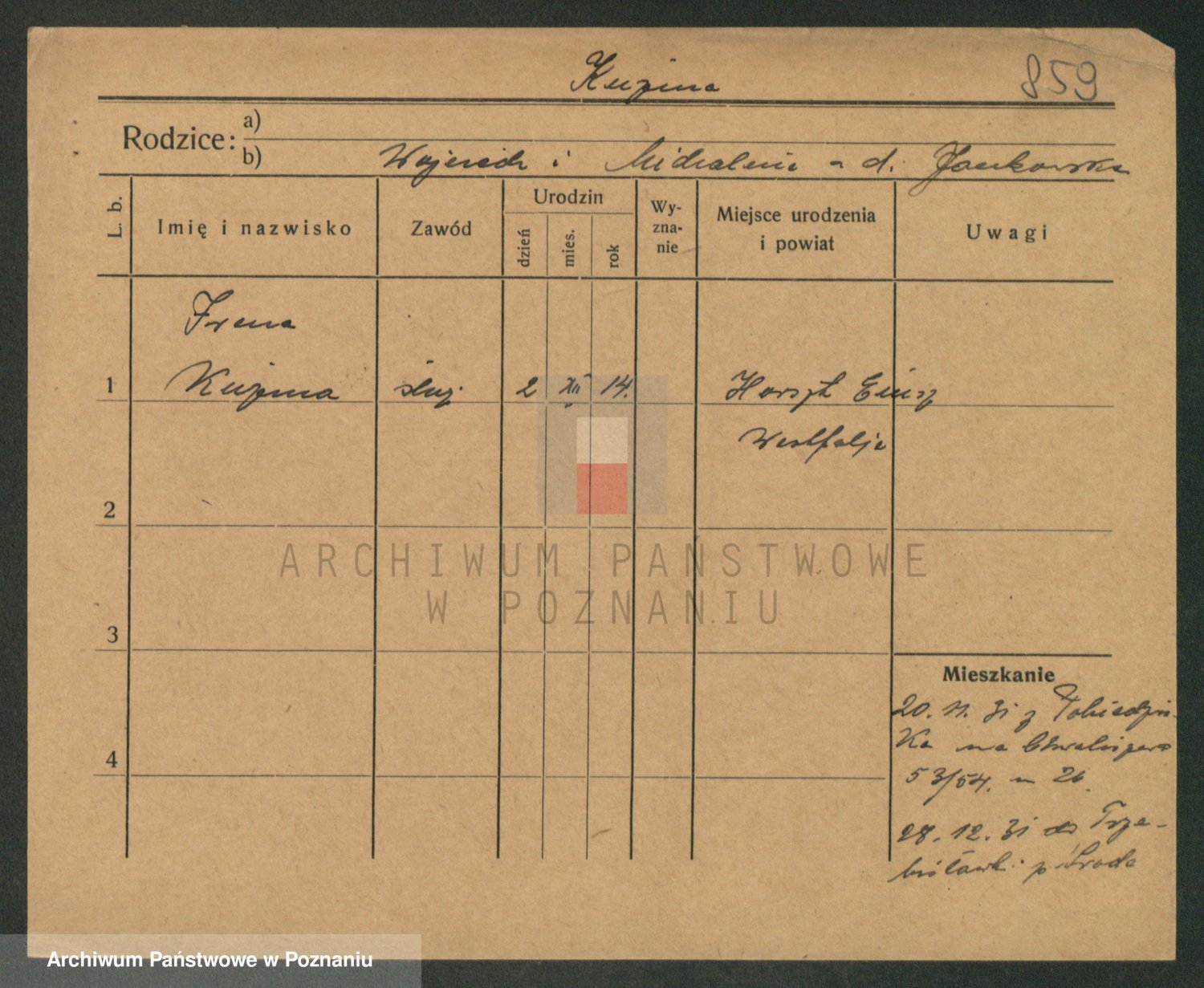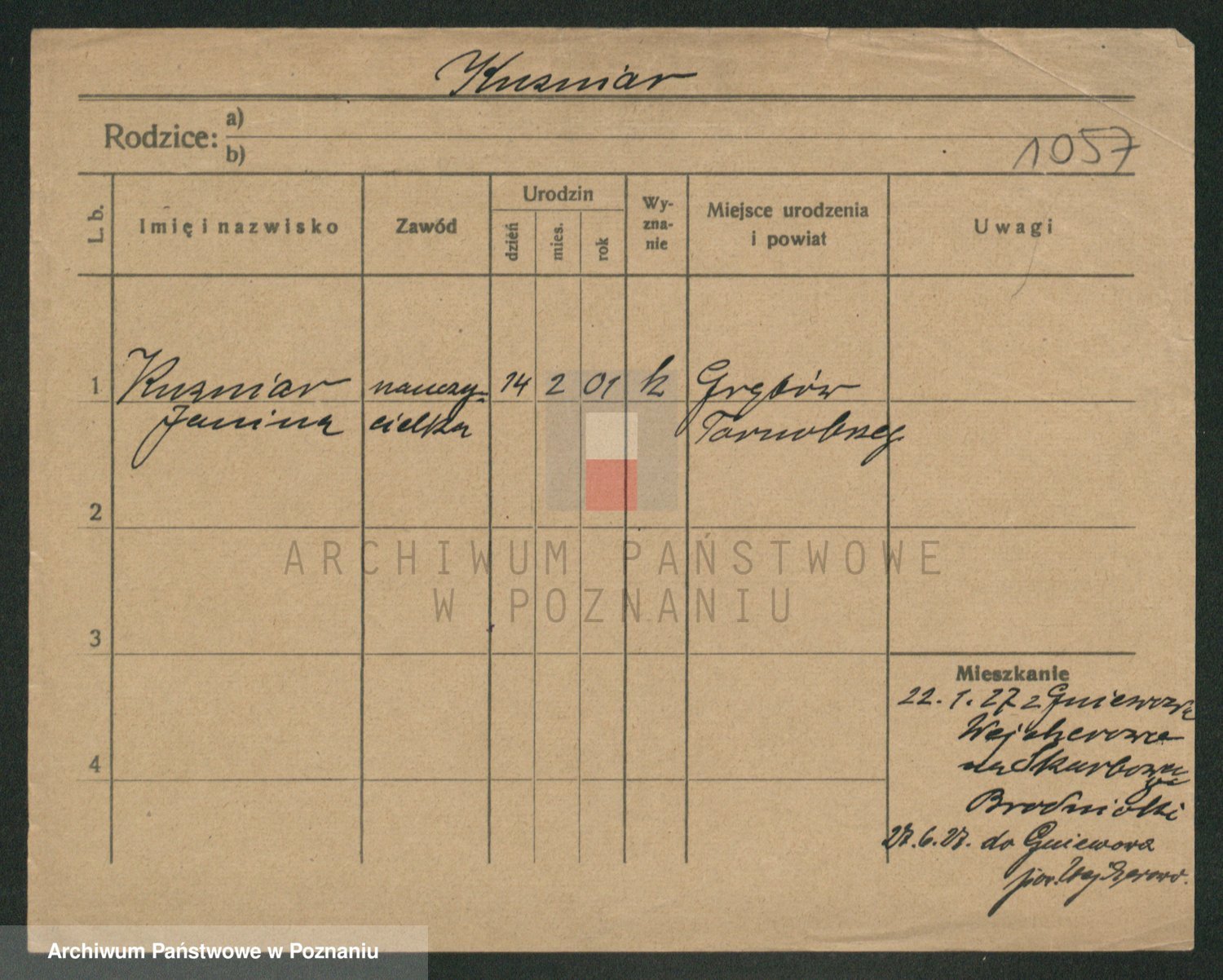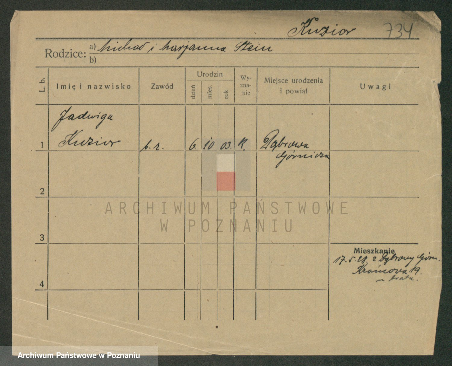 Kuzniarski z d. Matecka, Hedwig