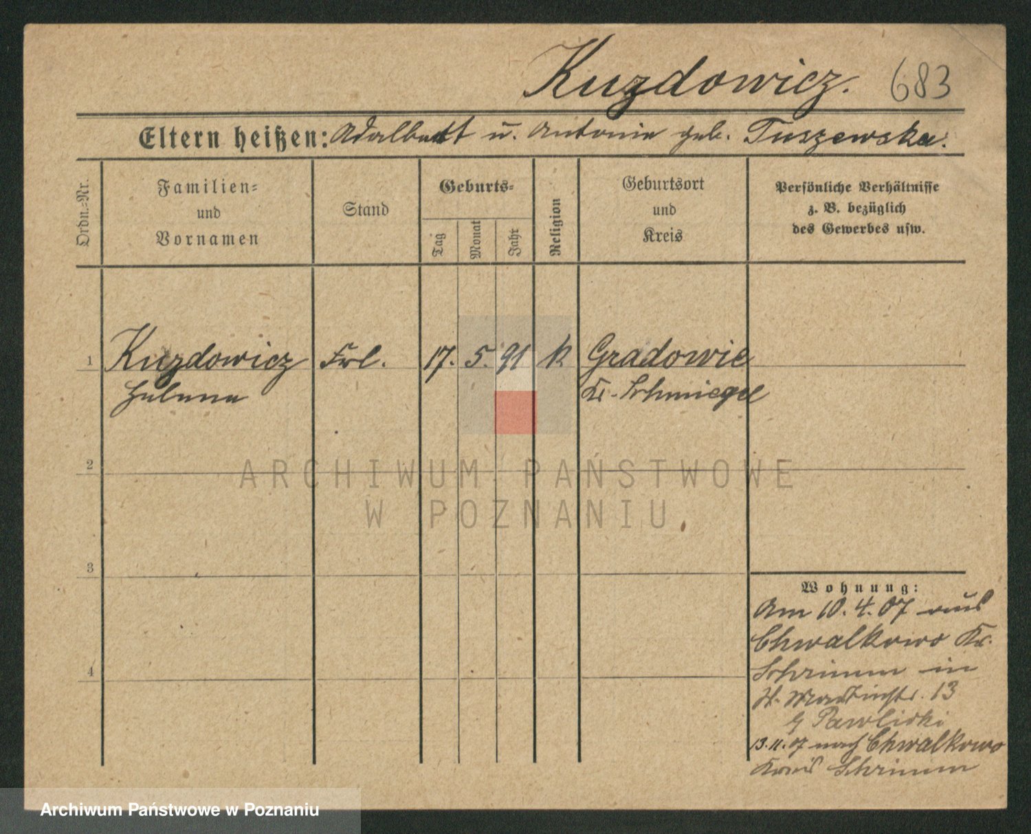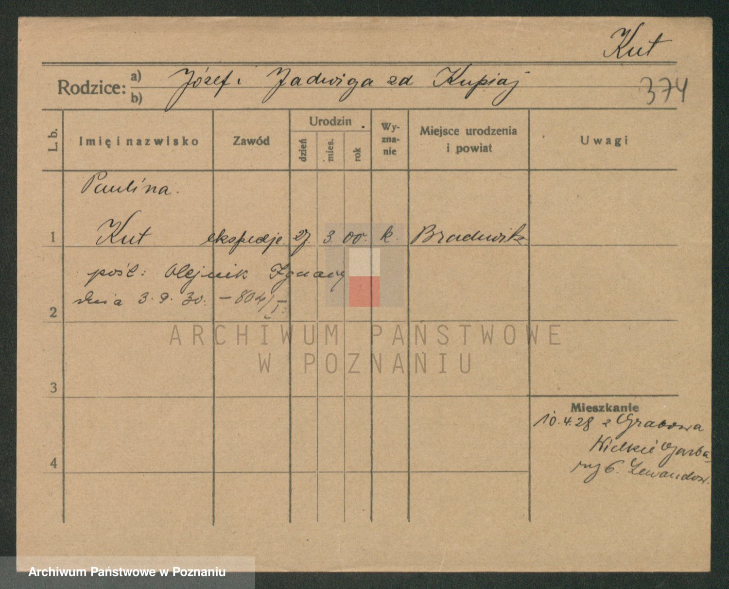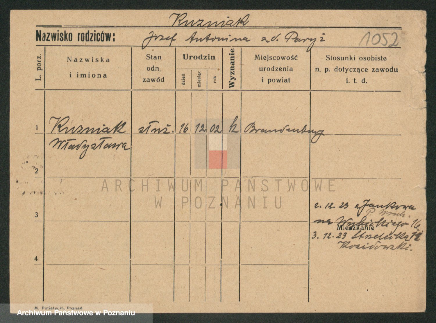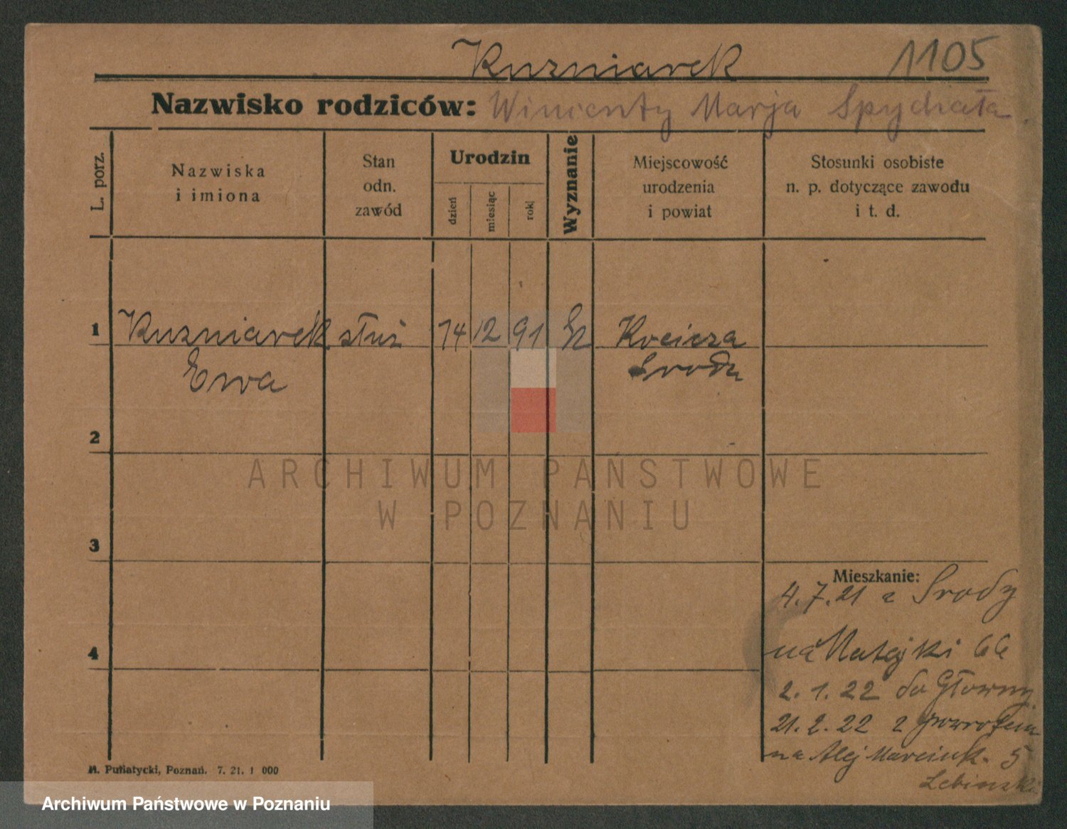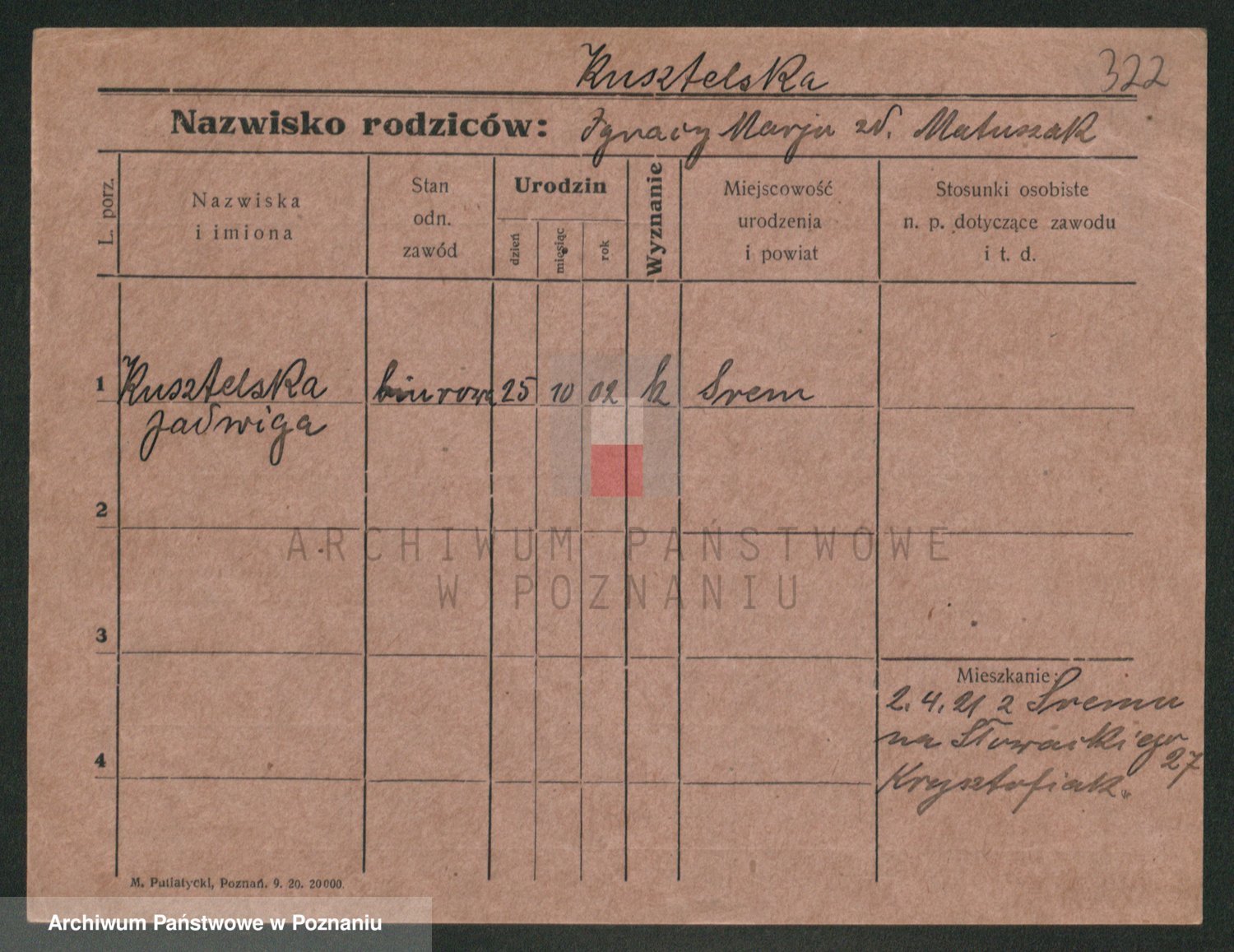 Kuzniarski z d. Matecka, Hedwig