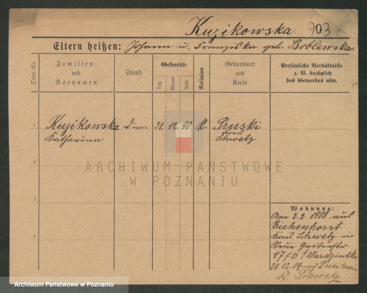 Kuschek z d. Sadlowski, Marie