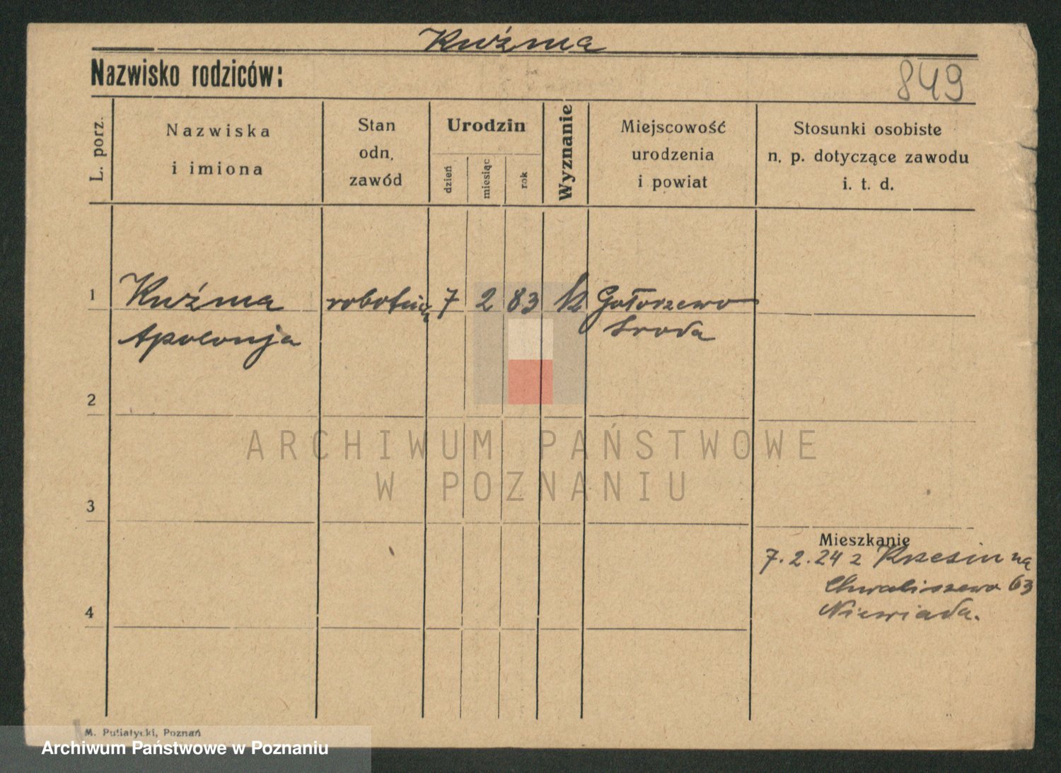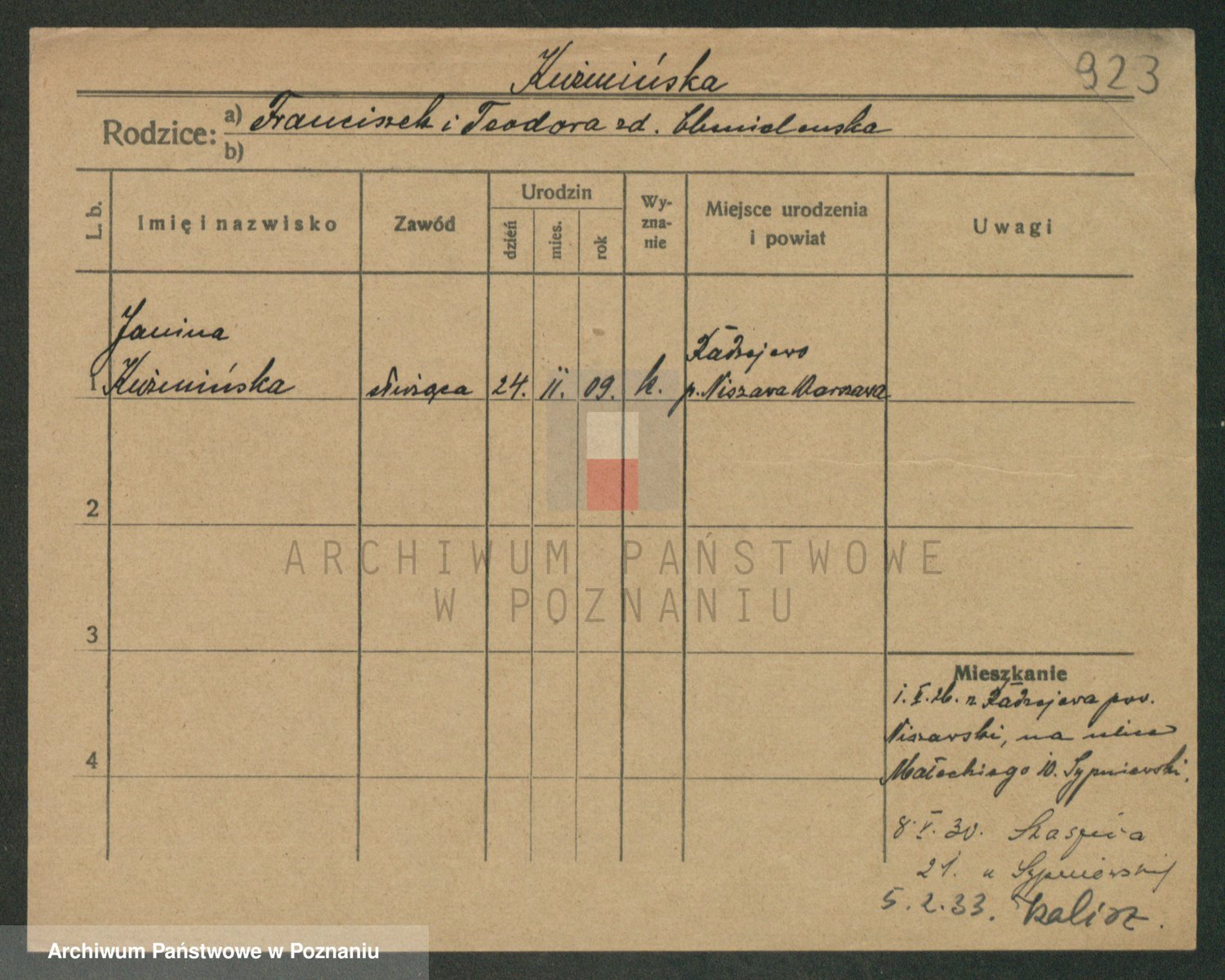 Kuźniarski z d. Chłabuszewska, Marja