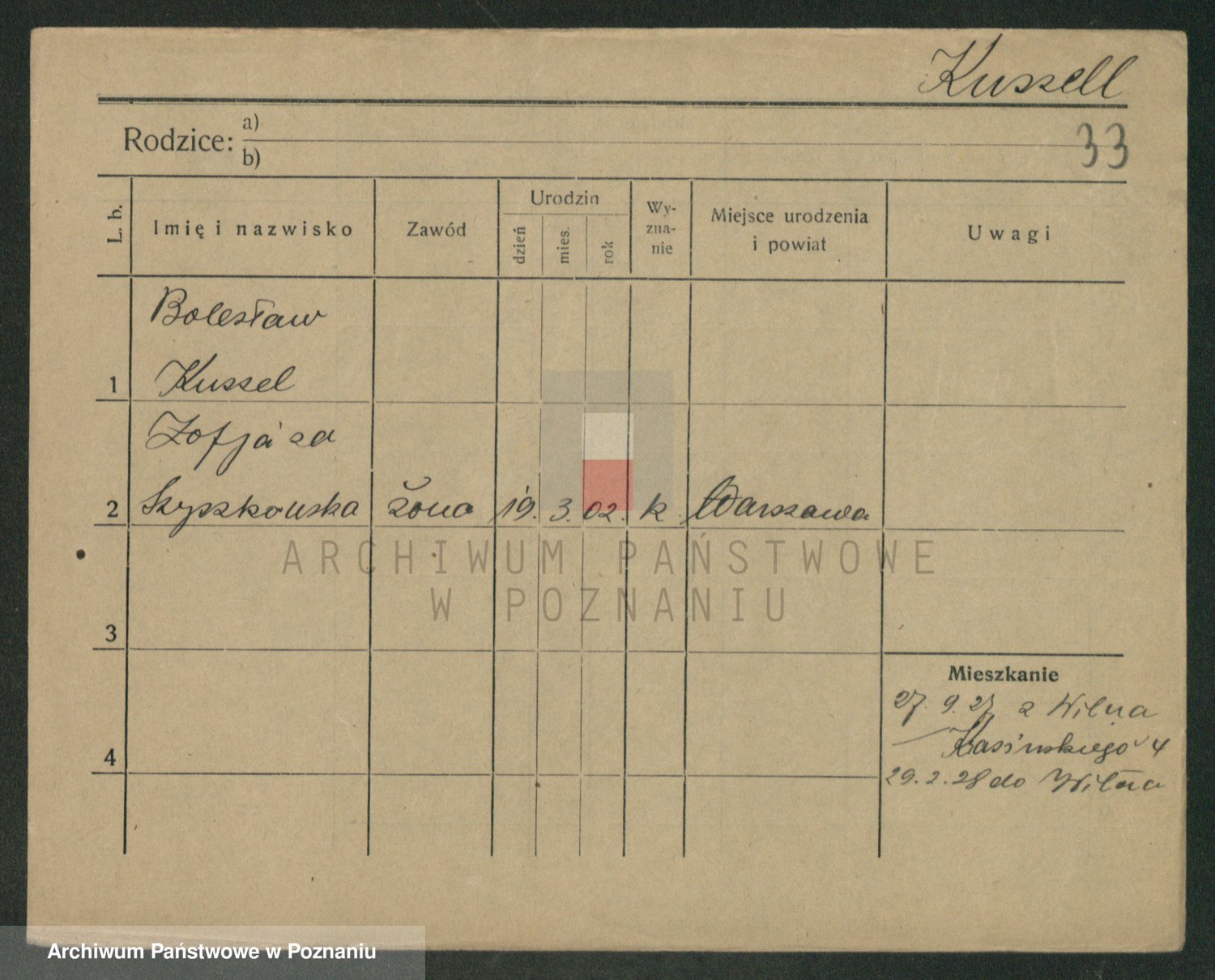 Kussel z d. Szyszkowska, Zofja