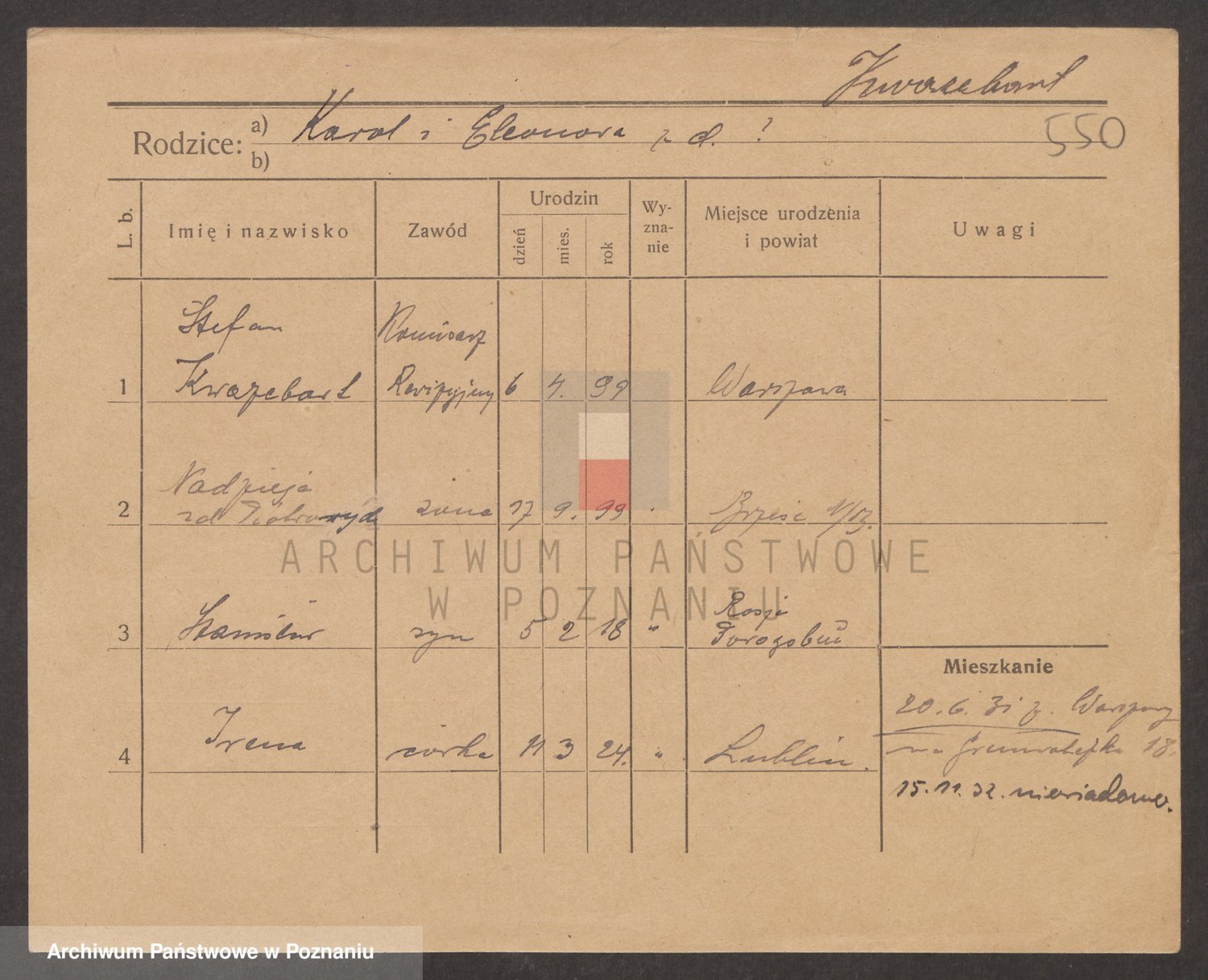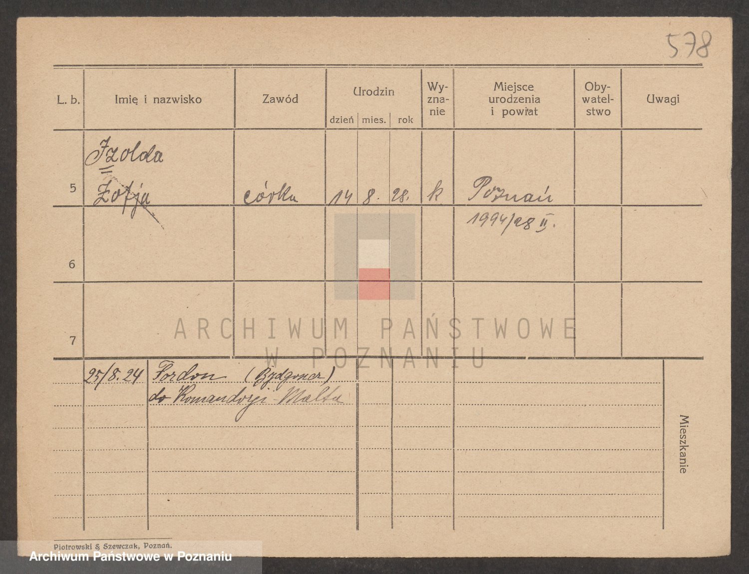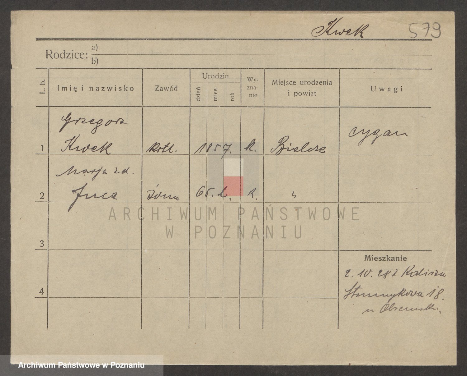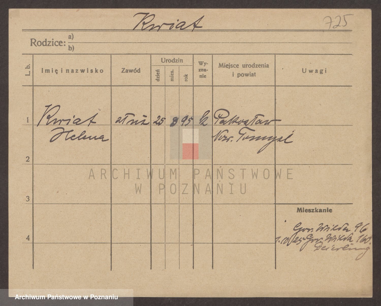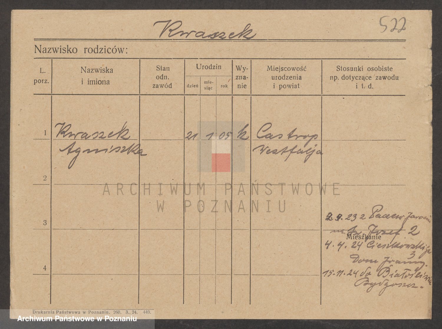 Podgląd karty osobowej dostępny jest po kliknięciu na nazwisko lub ikonkę karty. Można dokonywać powiększenia (ikony na górze) lub przechodzić między kolejnymi skanami (strzałki po bokach).