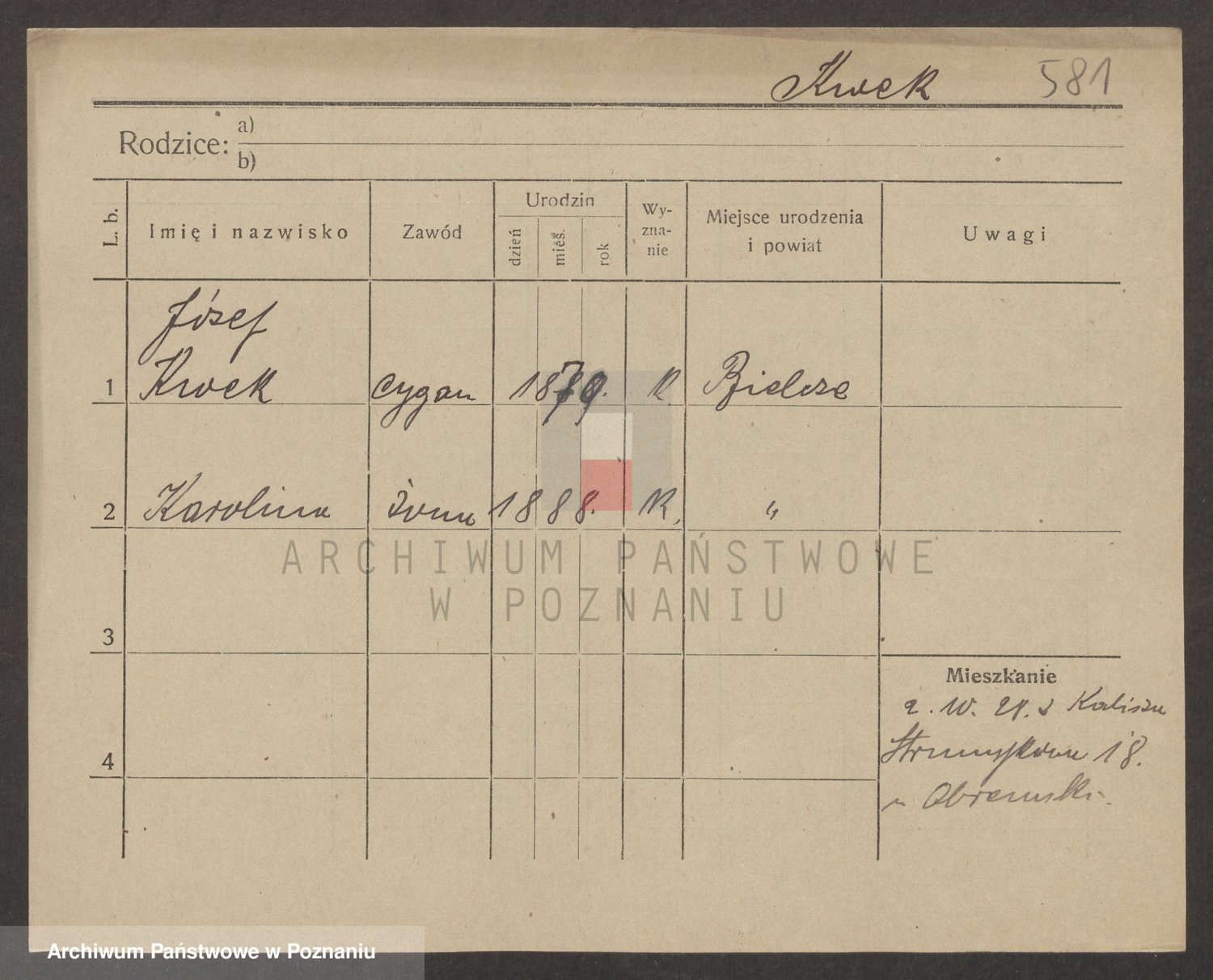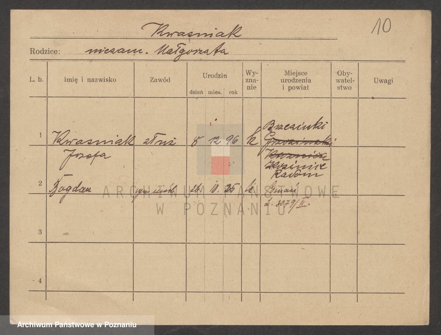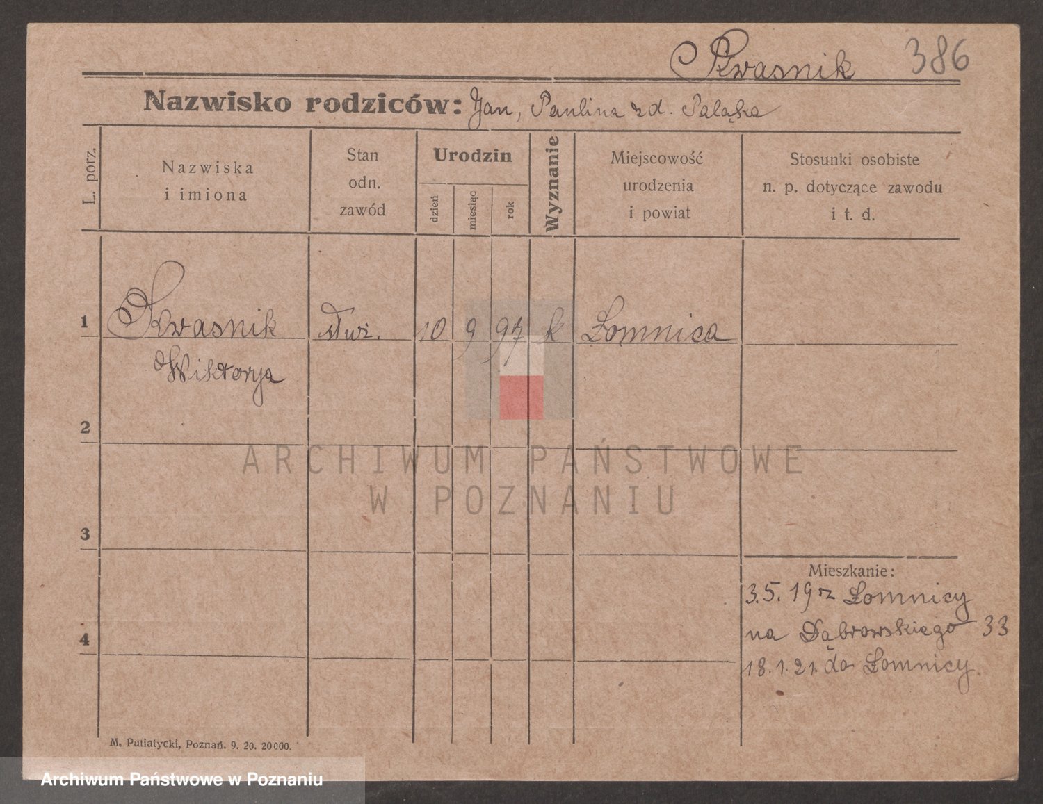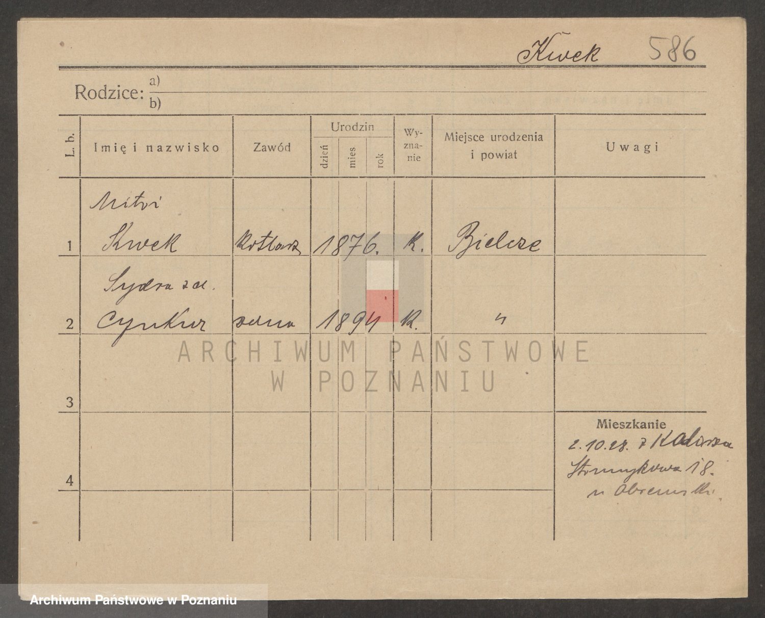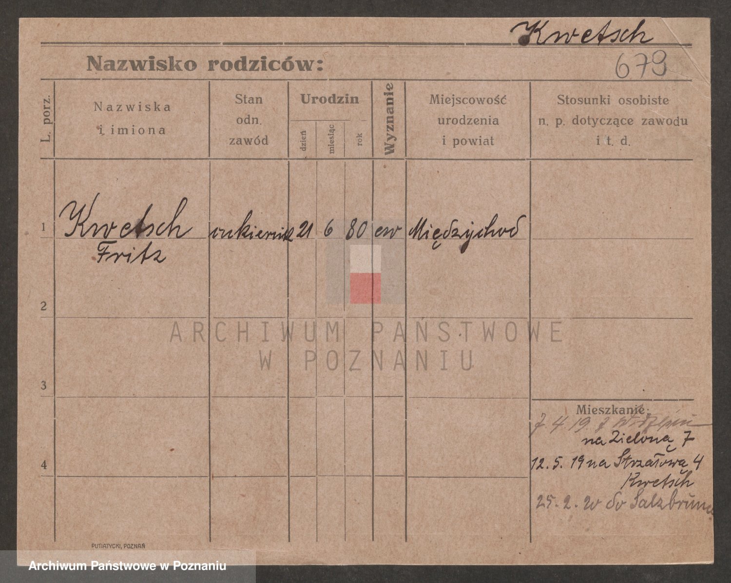 Podgląd karty osobowej dostępny jest po kliknięciu na nazwisko lub ikonkę karty. Można dokonywać powiększenia (ikony na górze) lub przechodzić między kolejnymi skanami (strzałki po bokach).