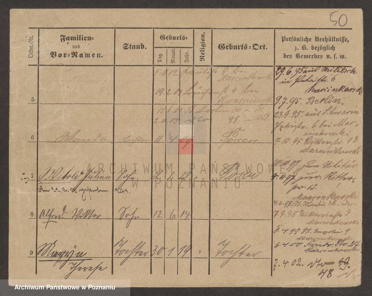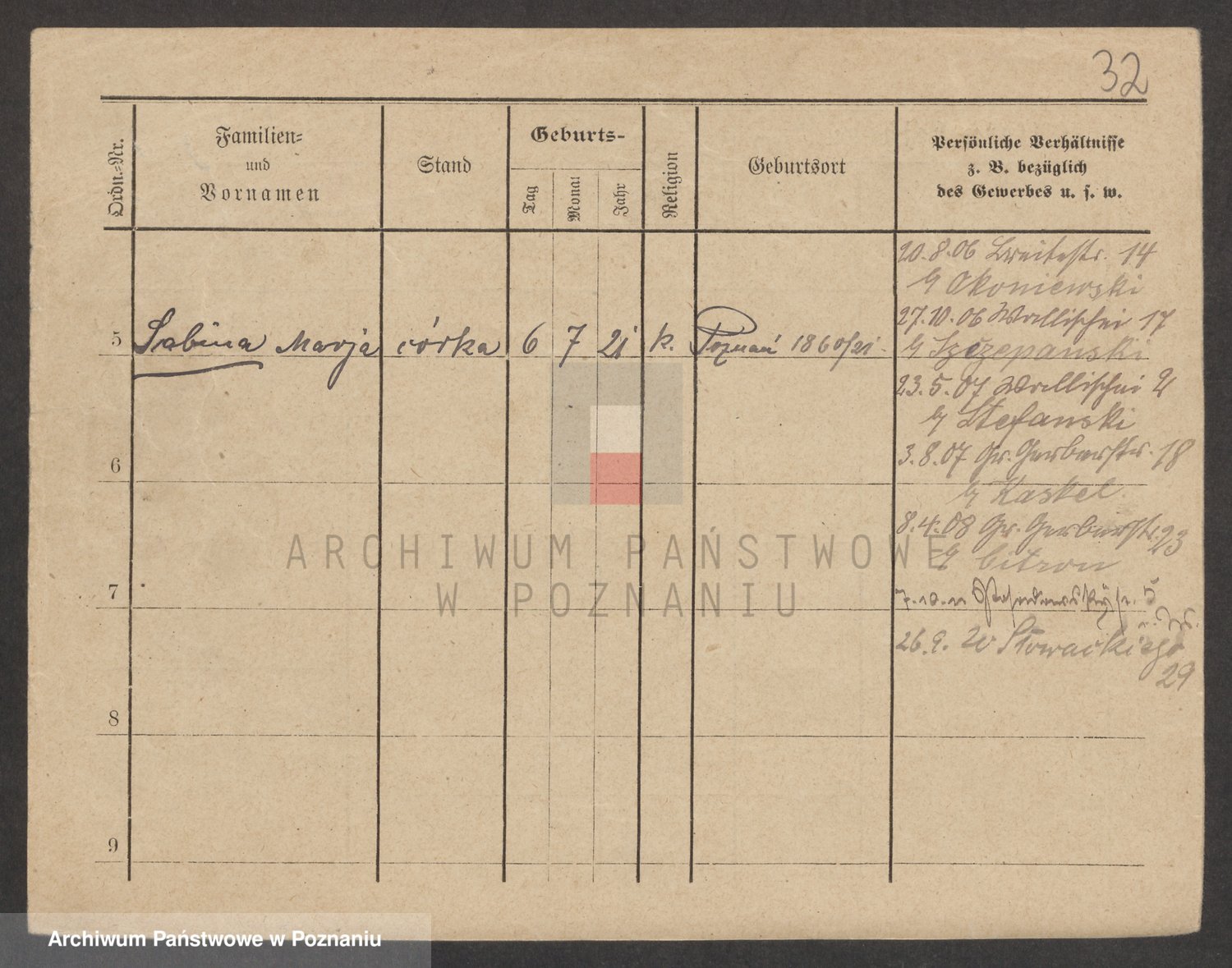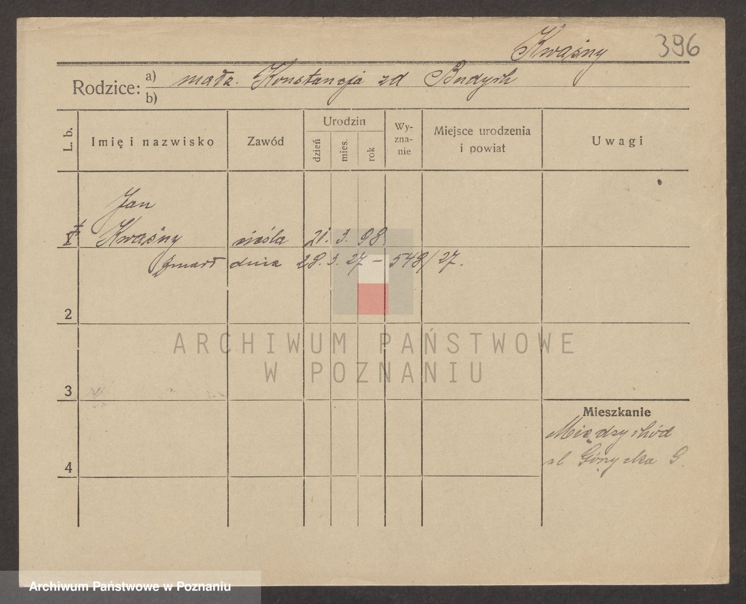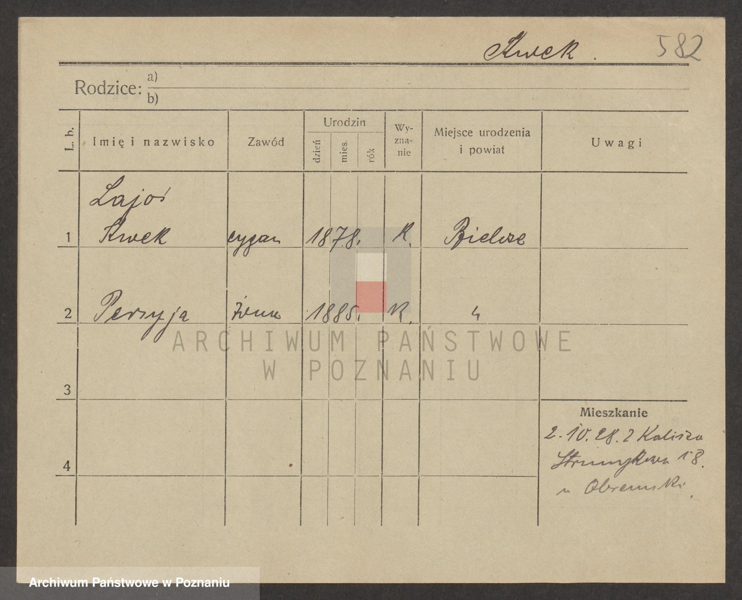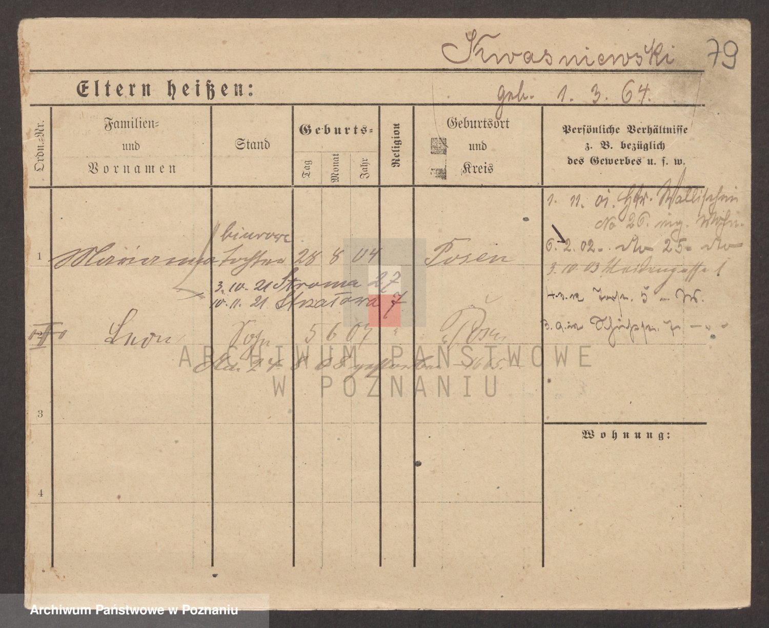 Podgląd karty osobowej dostępny jest po kliknięciu na nazwisko lub ikonkę karty. Można dokonywać powiększenia (ikony na górze) lub przechodzić między kolejnymi skanami (strzałki po bokach).