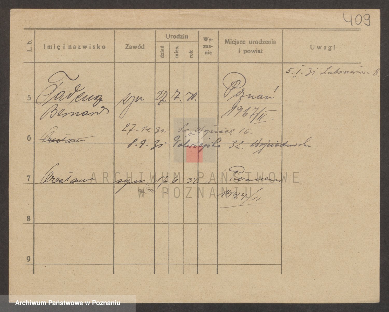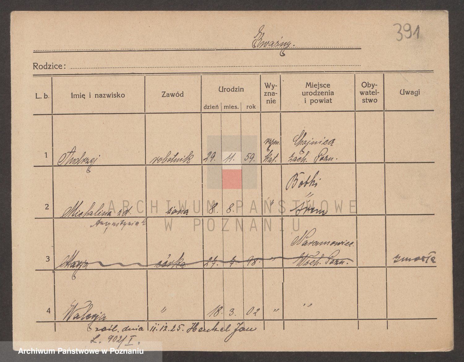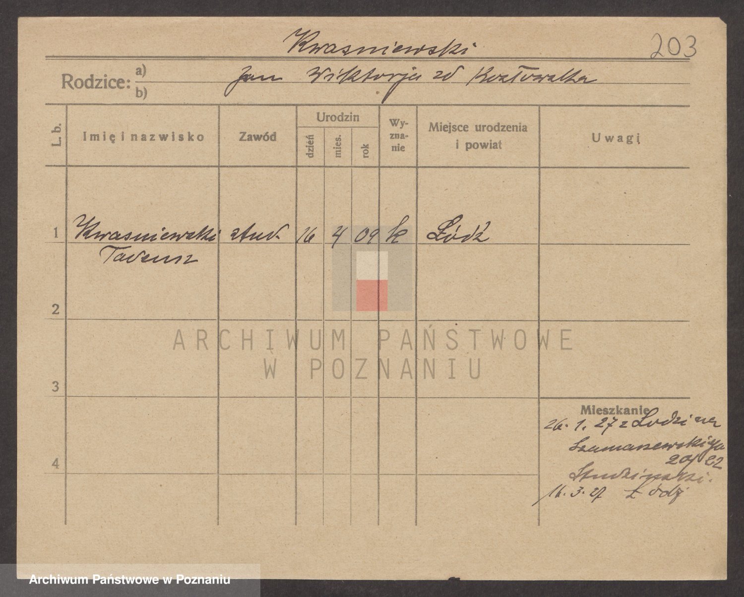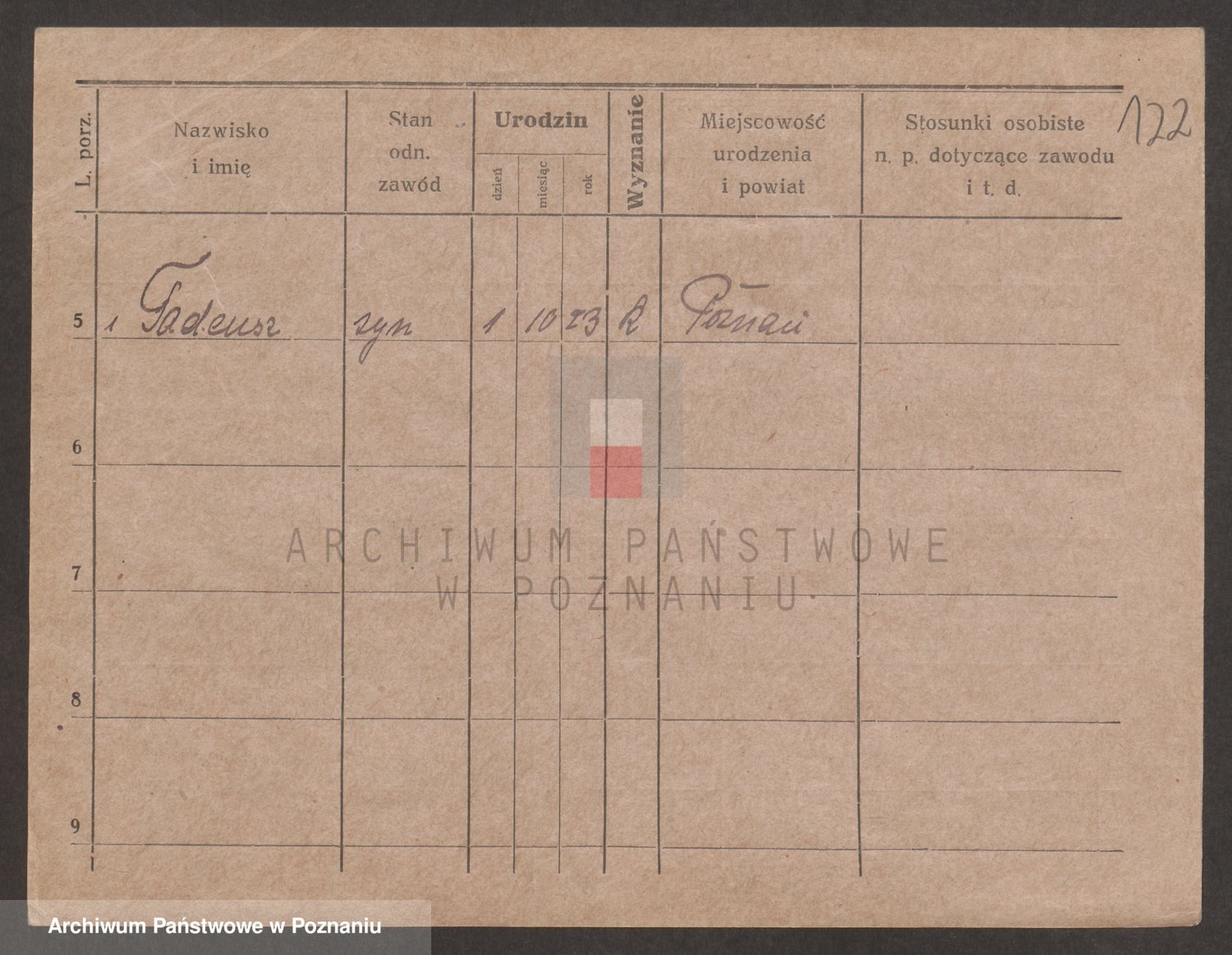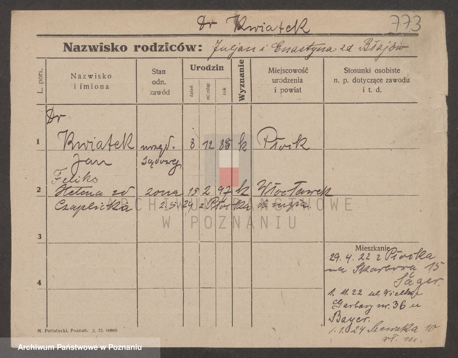 Podgląd karty osobowej dostępny jest po kliknięciu na nazwisko lub ikonkę karty. Można dokonywać powiększenia (ikony na górze) lub przechodzić między kolejnymi skanami (strzałki po bokach).