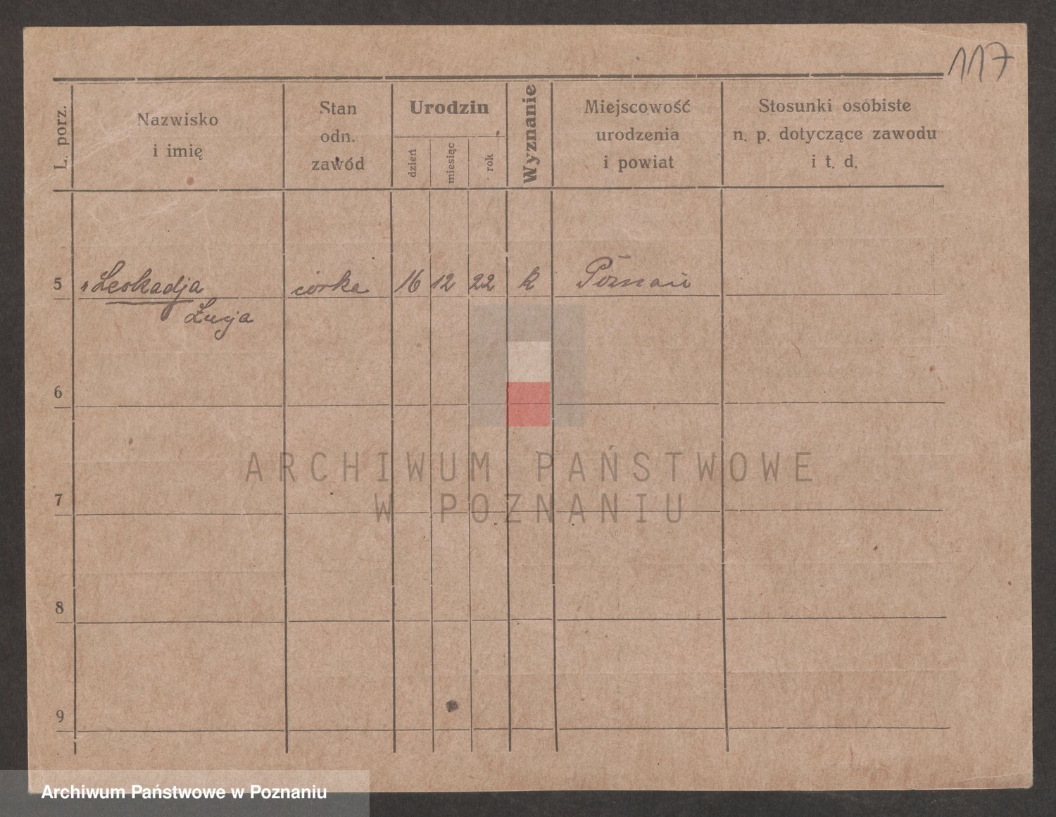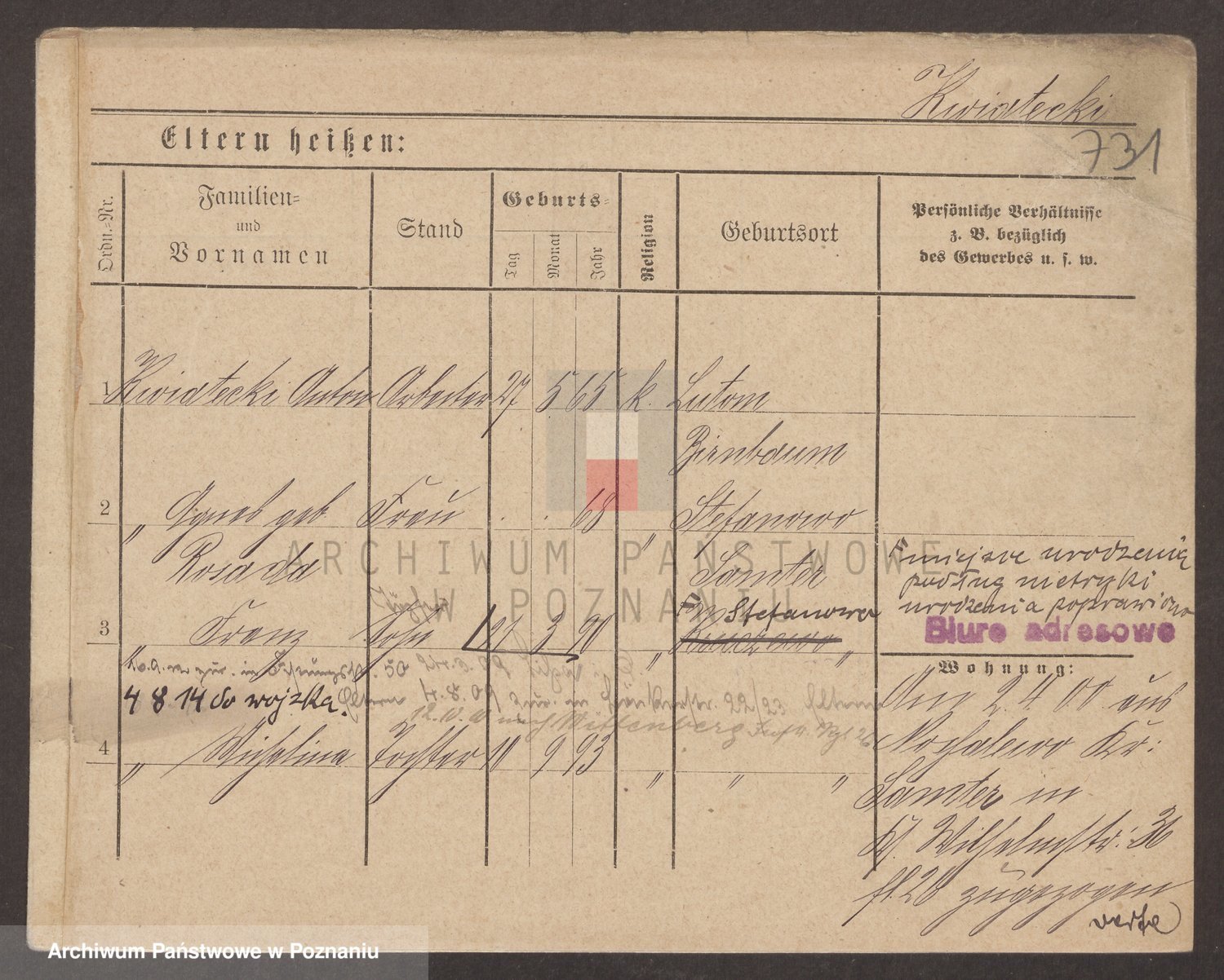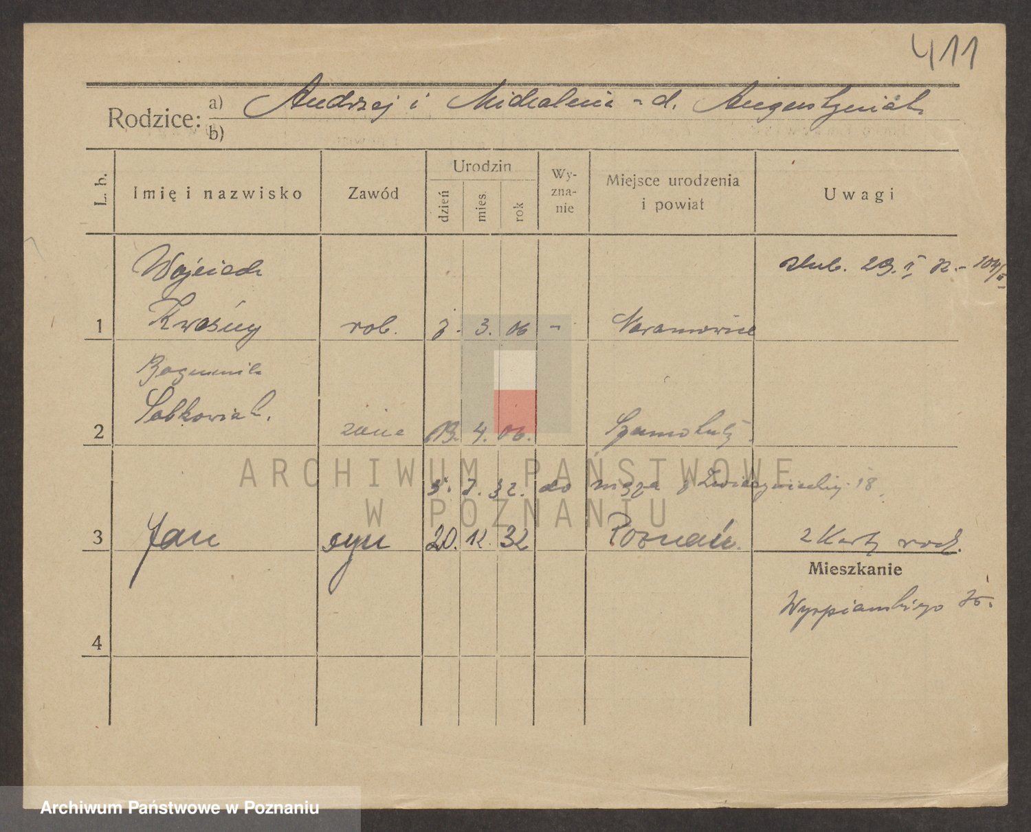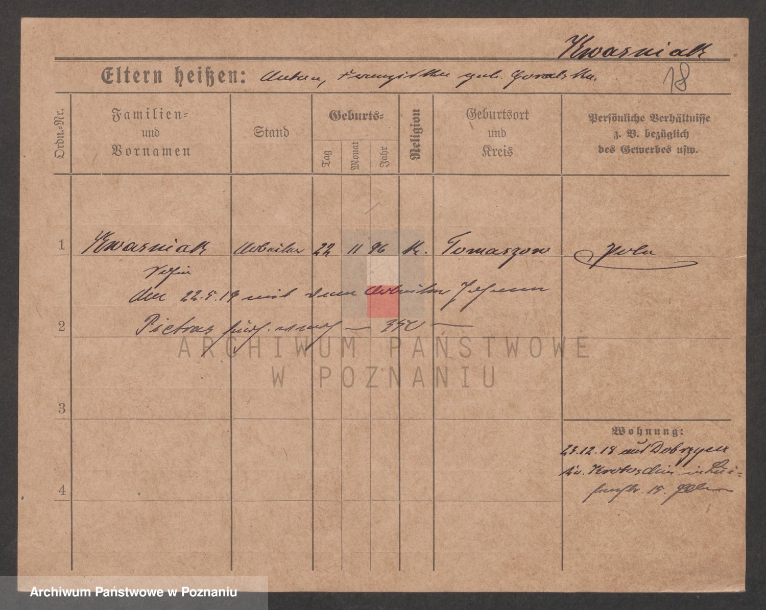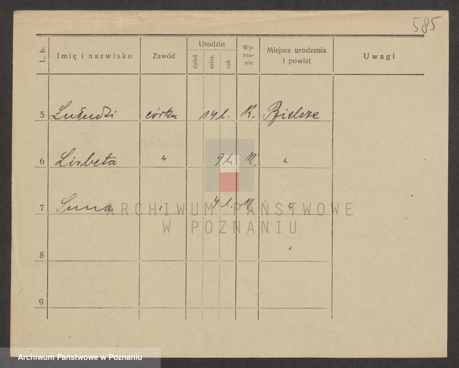 Podgląd karty osobowej dostępny jest po kliknięciu na nazwisko lub ikonkę karty. Można dokonywać powiększenia (ikony na górze) lub przechodzić między kolejnymi skanami (strzałki po bokach).