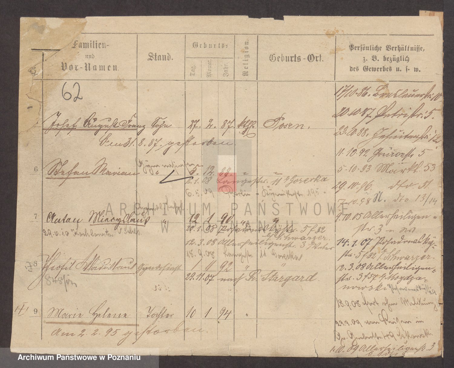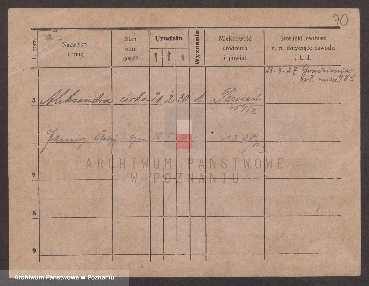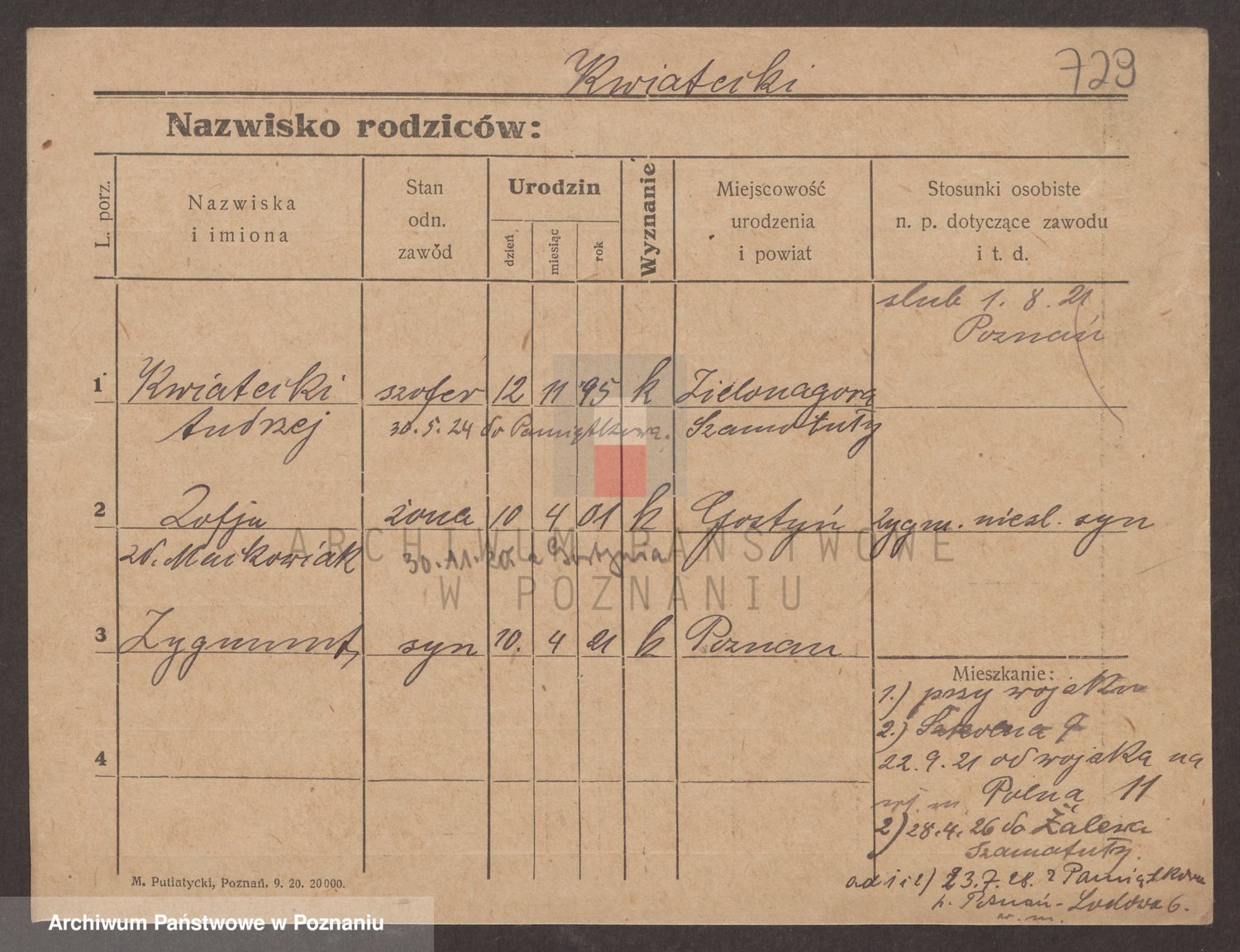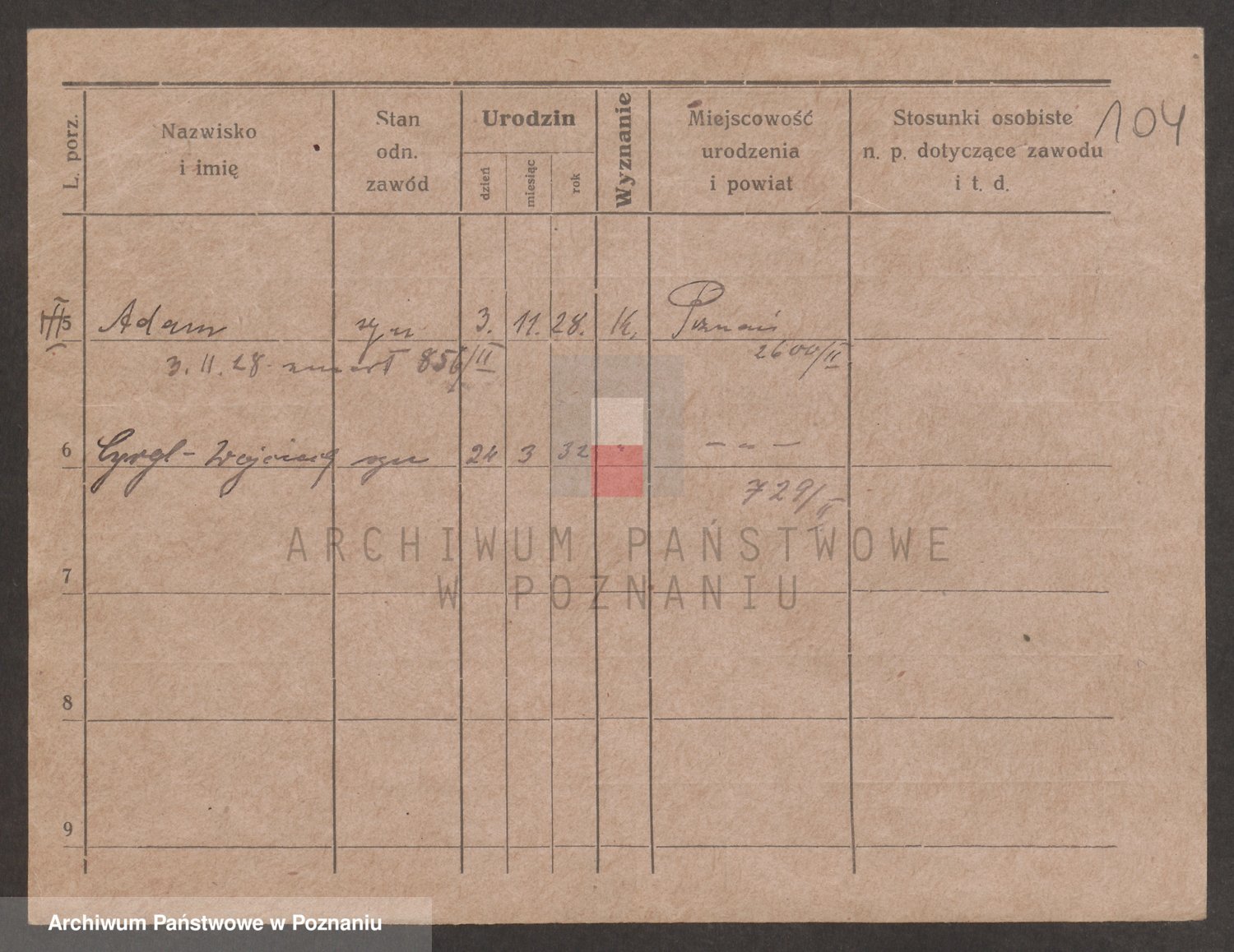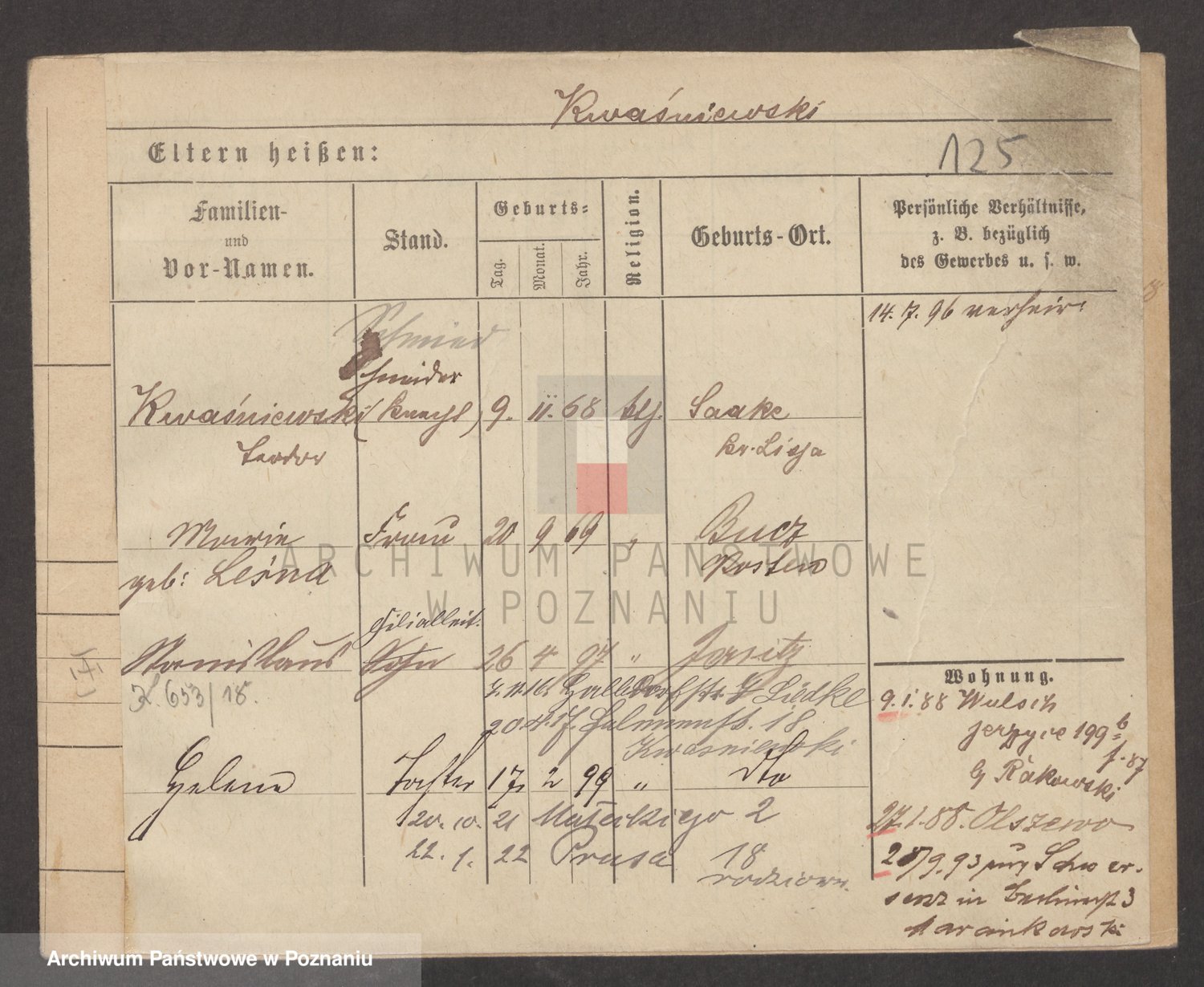 Podgląd karty osobowej dostępny jest po kliknięciu na nazwisko lub ikonkę karty. Można dokonywać powiększenia (ikony na górze) lub przechodzić między kolejnymi skanami (strzałki po bokach).