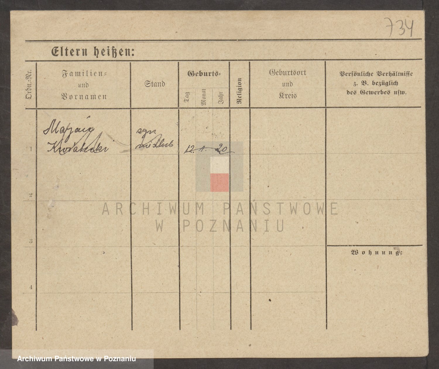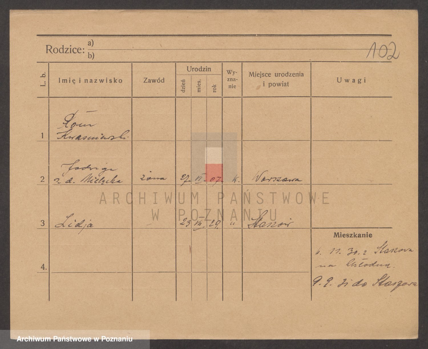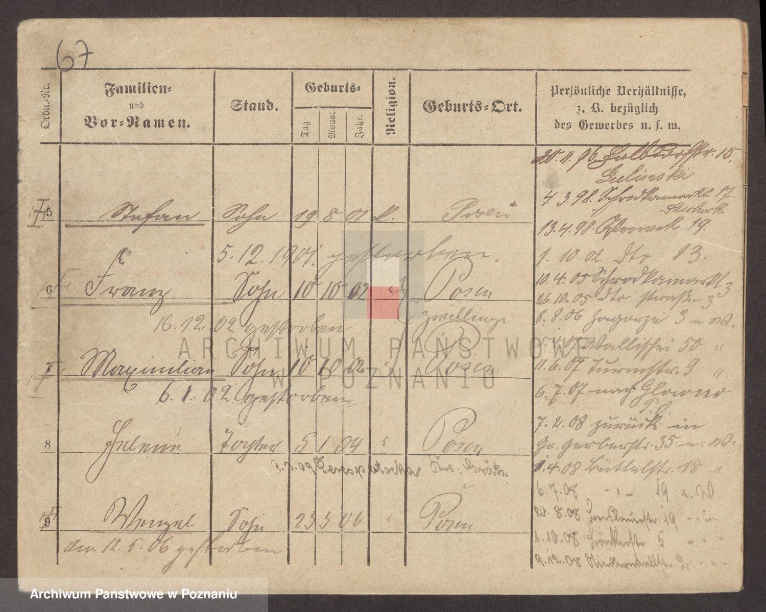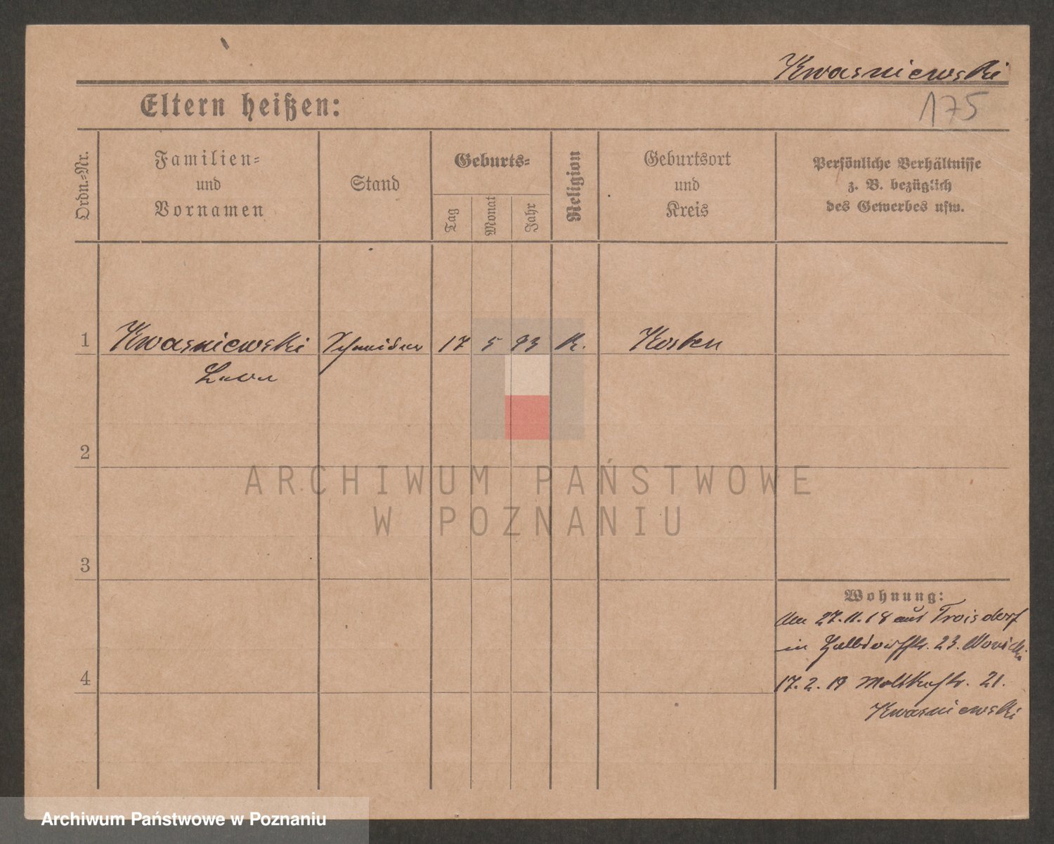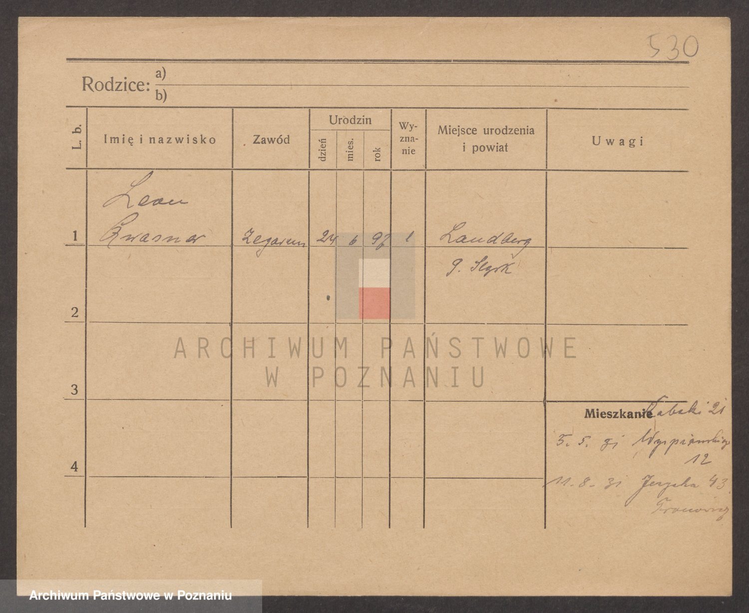 Podgląd karty osobowej dostępny jest po kliknięciu na nazwisko lub ikonkę karty. Można dokonywać powiększenia (ikony na górze) lub przechodzić między kolejnymi skanami (strzałki po bokach).