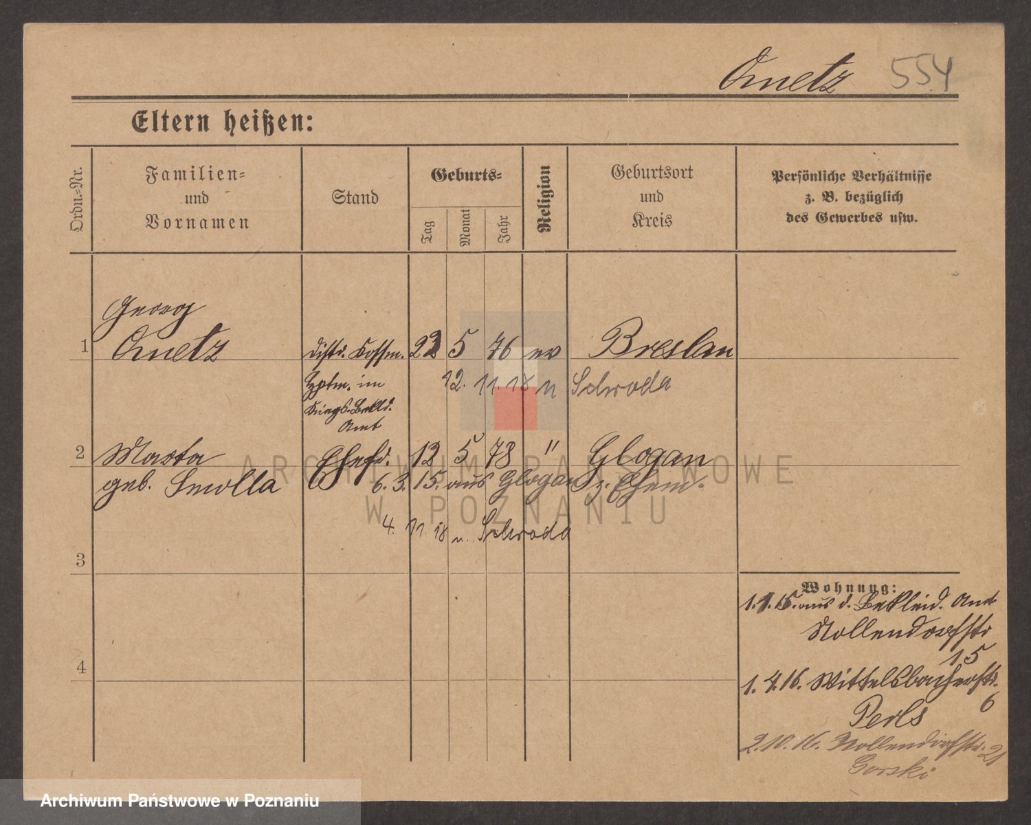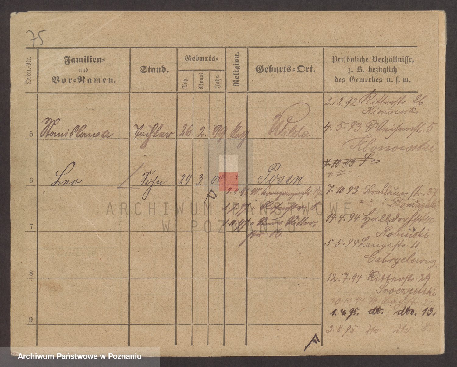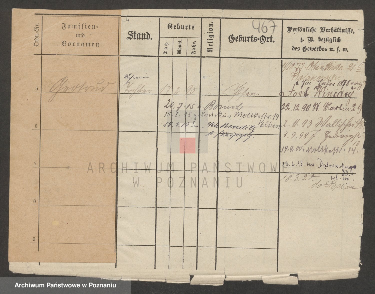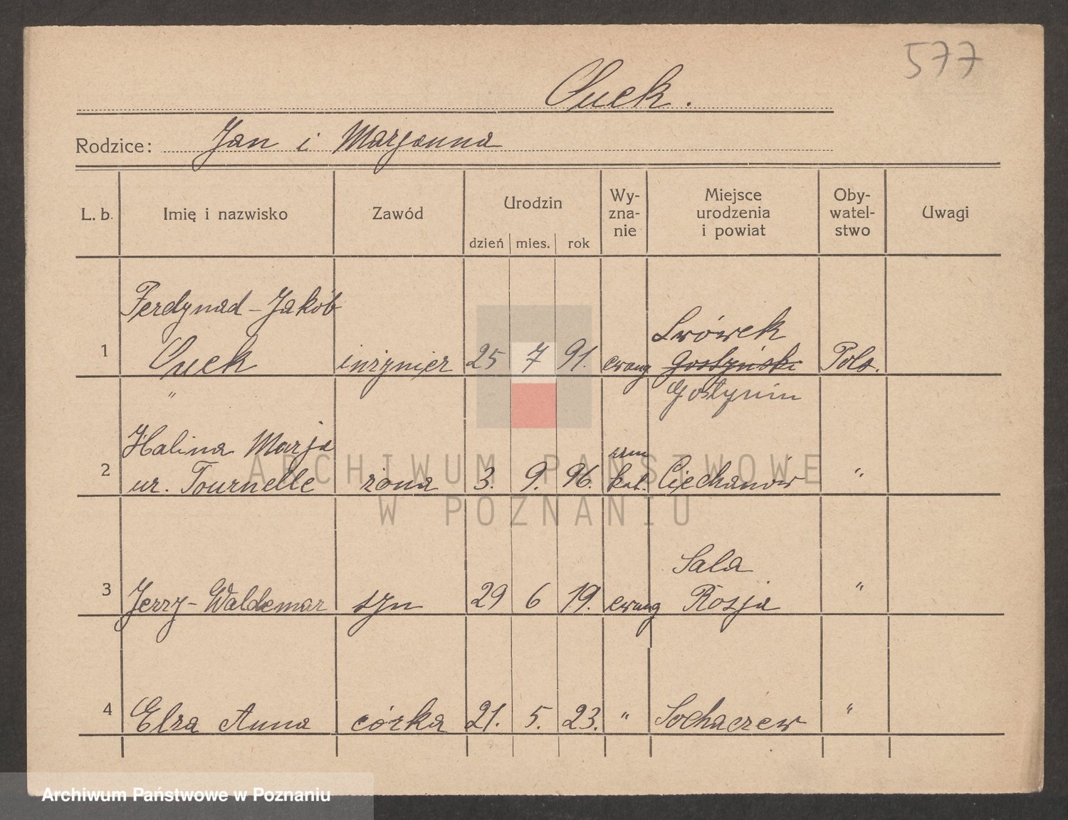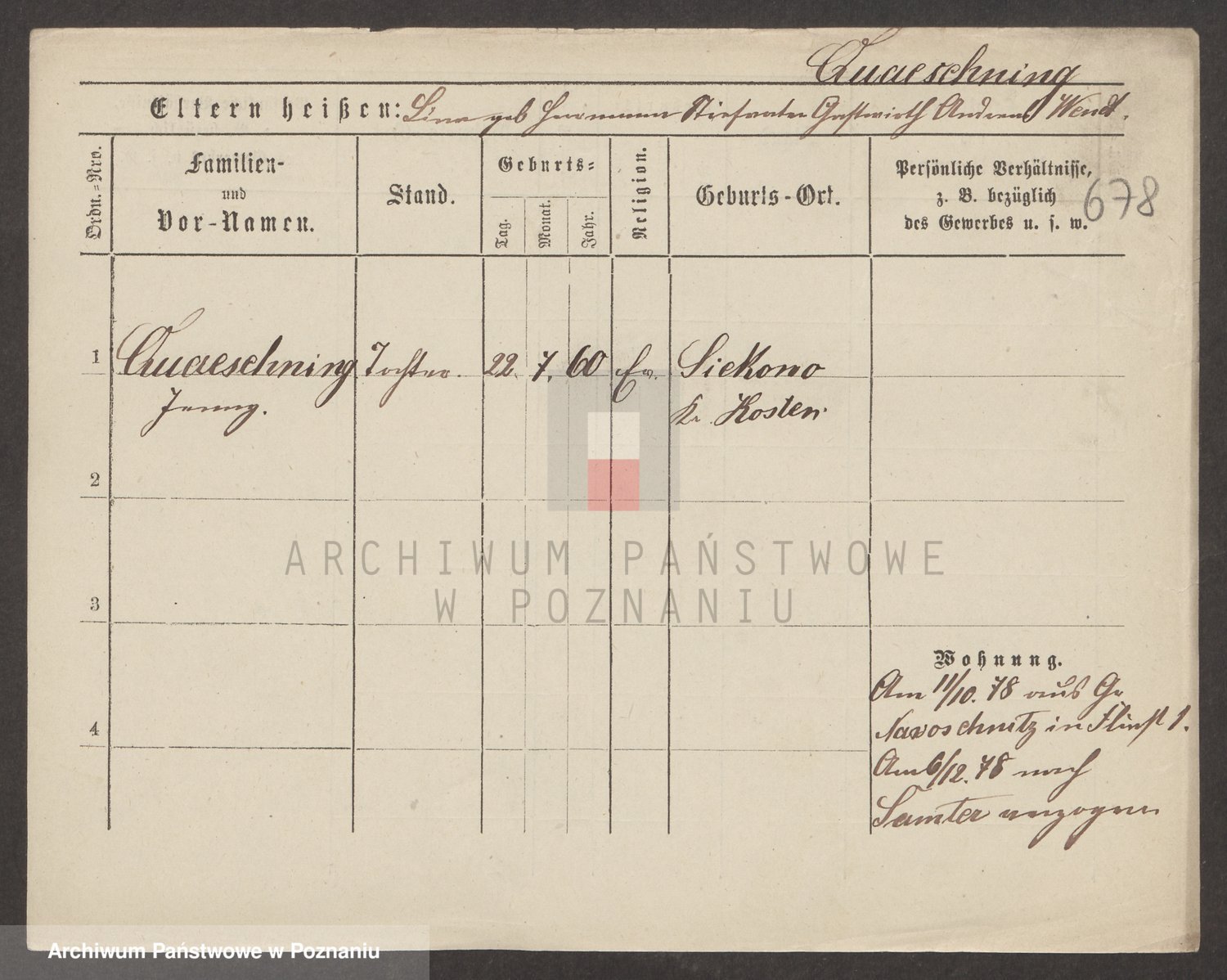 Podgląd karty osobowej dostępny jest po kliknięciu na nazwisko lub ikonkę karty. Można dokonywać powiększenia (ikony na górze) lub przechodzić między kolejnymi skanami (strzałki po bokach).