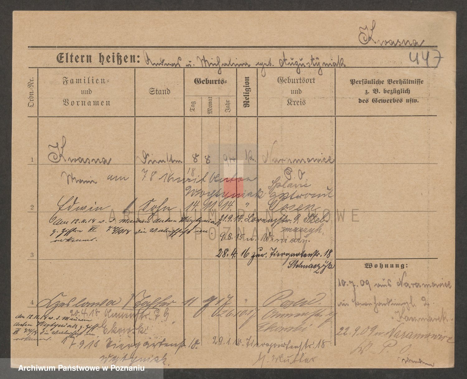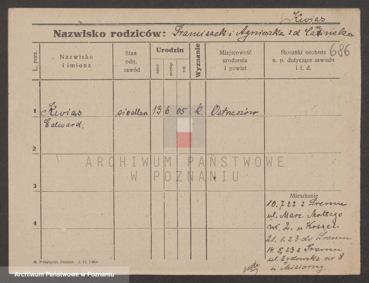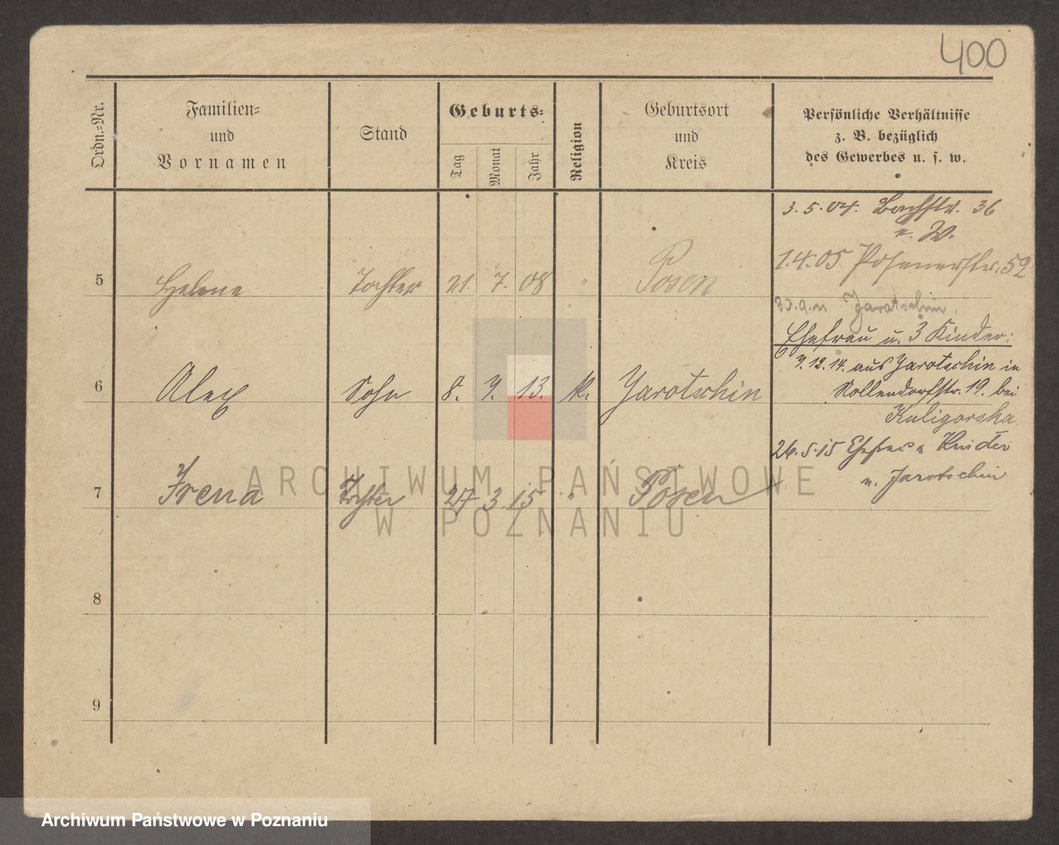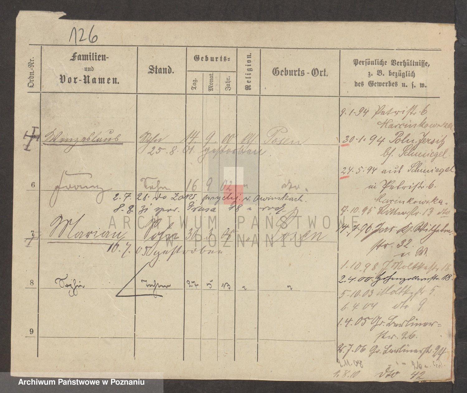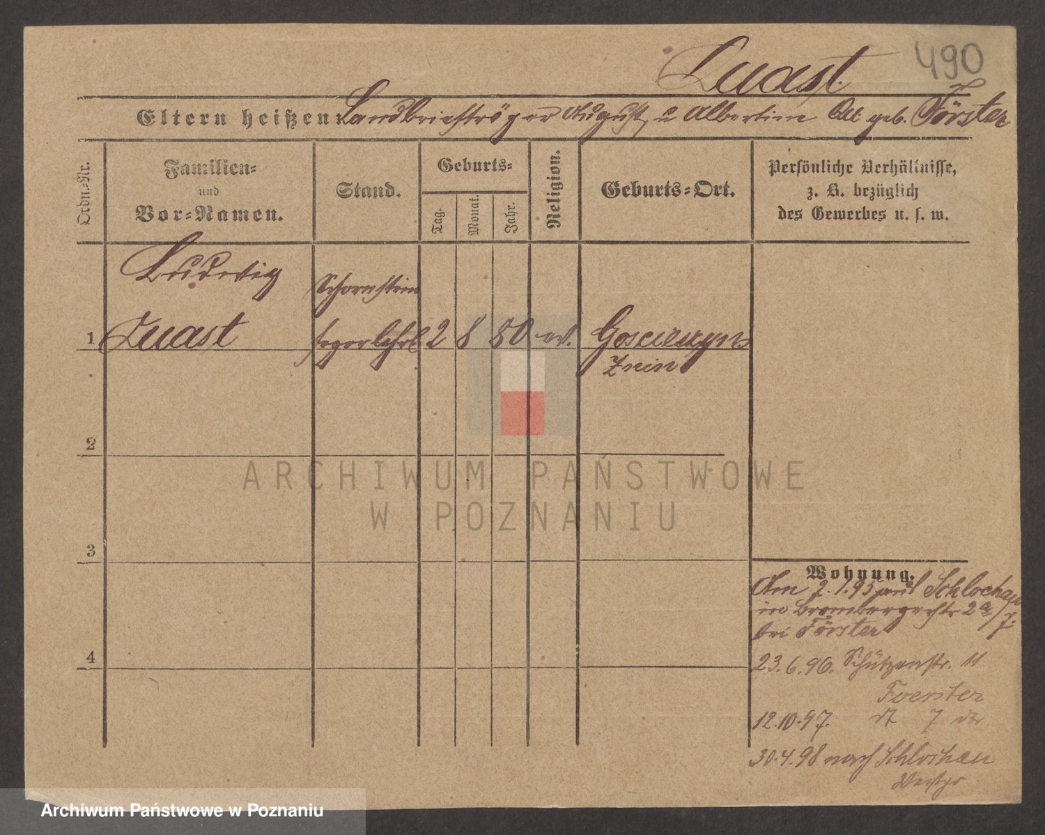 Podgląd karty osobowej dostępny jest po kliknięciu na nazwisko lub ikonkę karty. Można dokonywać powiększenia (ikony na górze) lub przechodzić między kolejnymi skanami (strzałki po bokach).