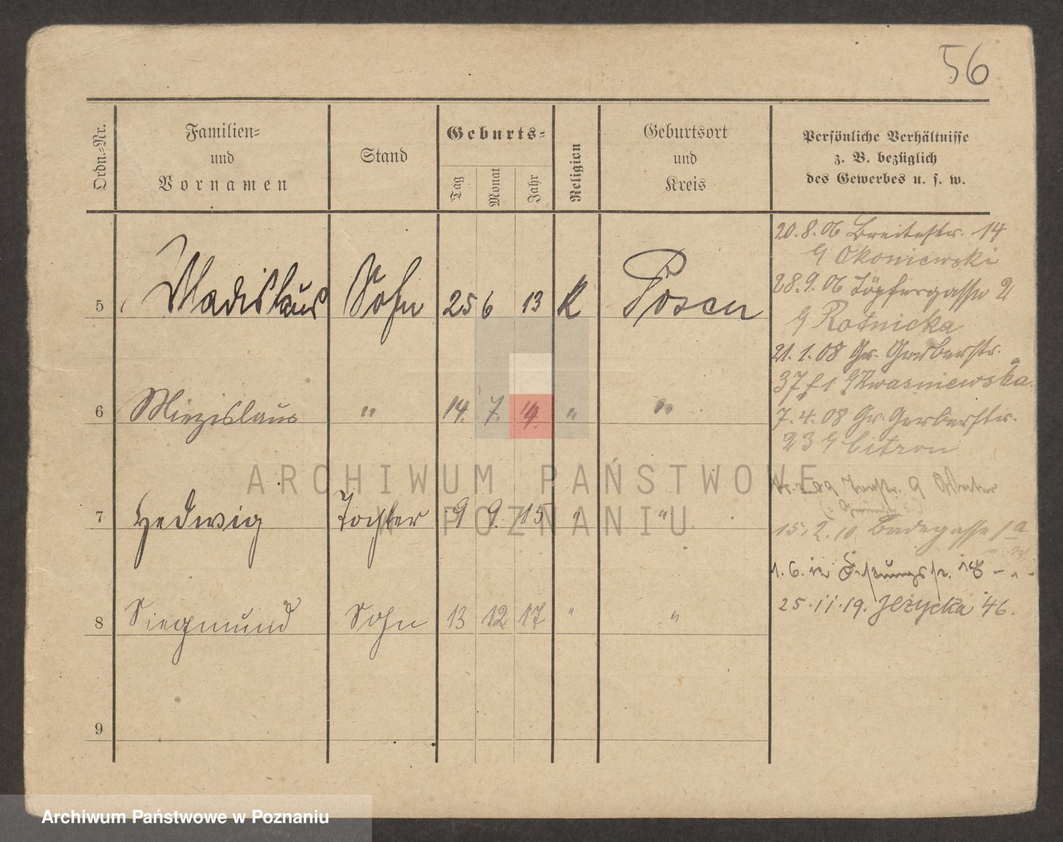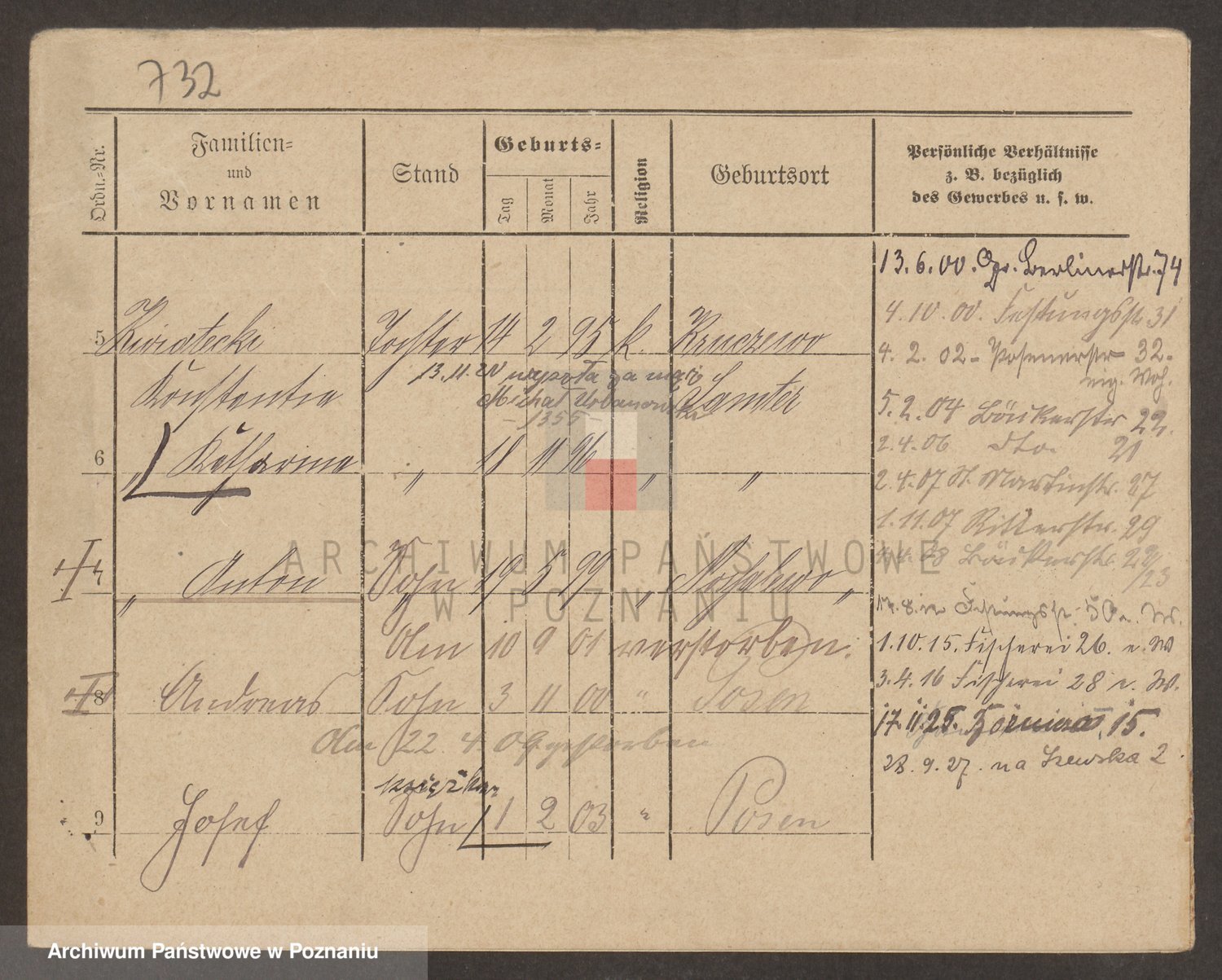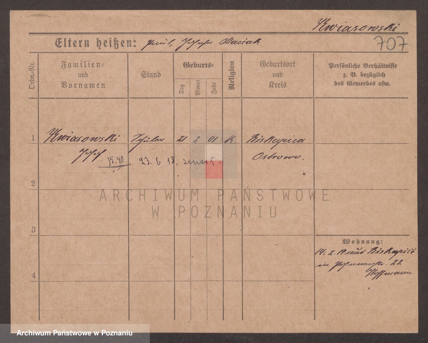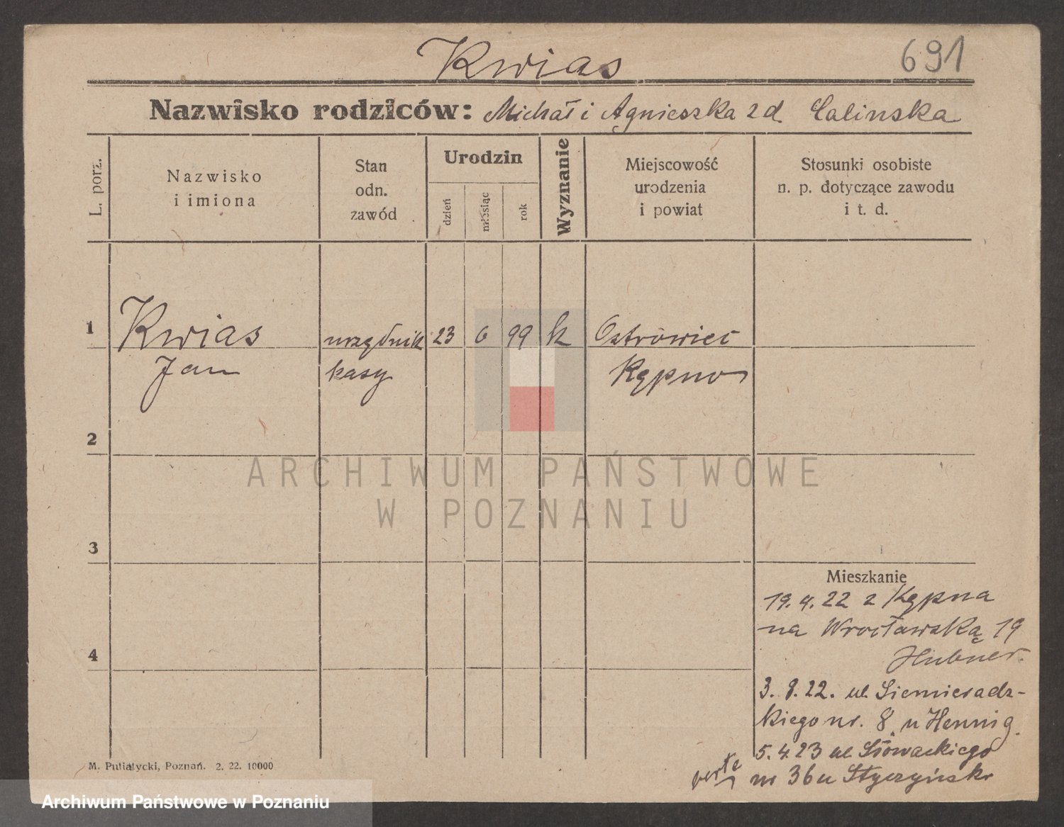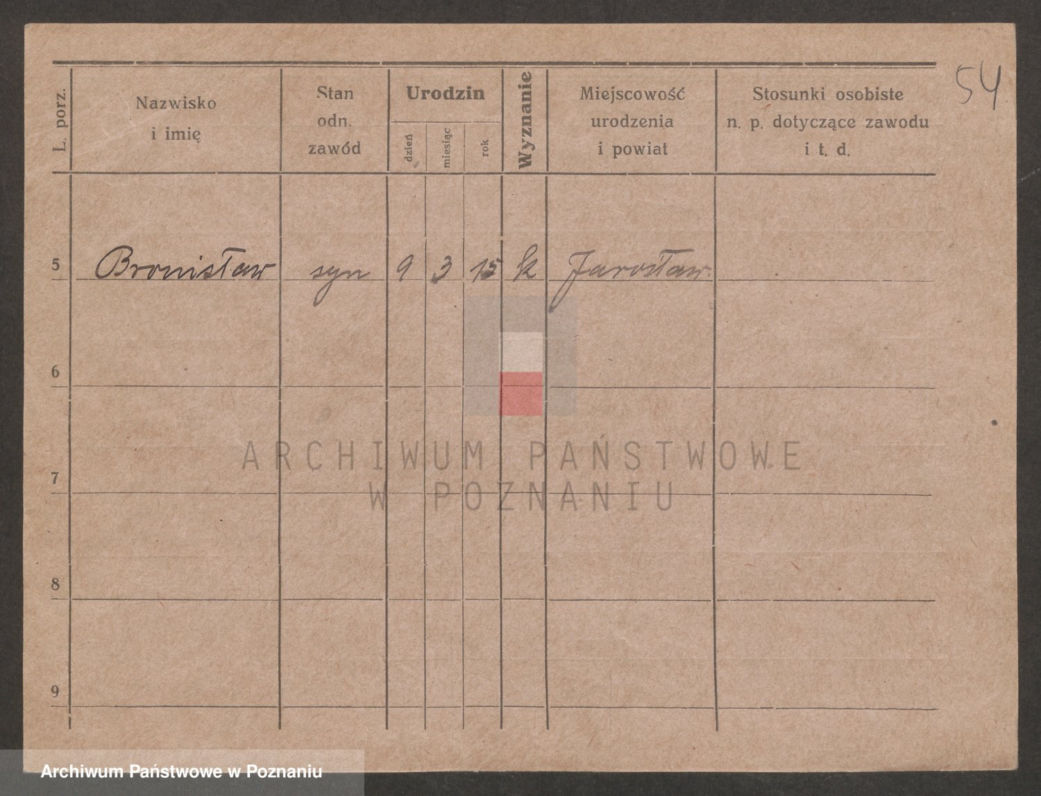 Podgląd karty osobowej dostępny jest po kliknięciu na nazwisko lub ikonkę karty. Można dokonywać powiększenia (ikony na górze) lub przechodzić między kolejnymi skanami (strzałki po bokach).